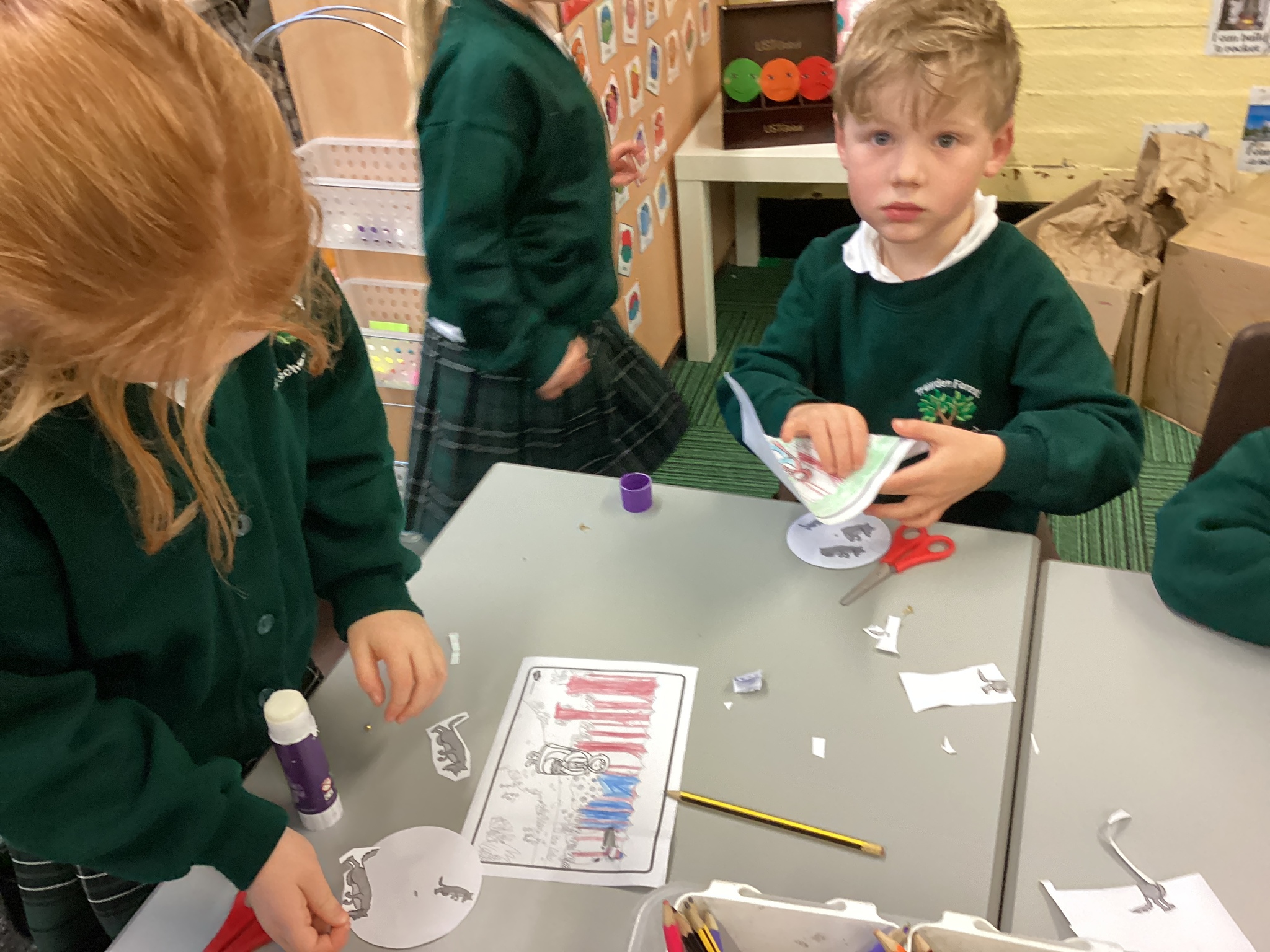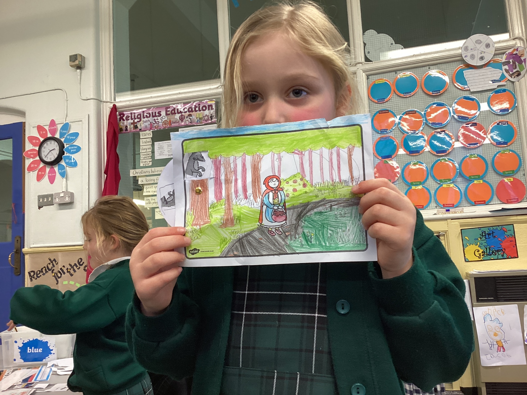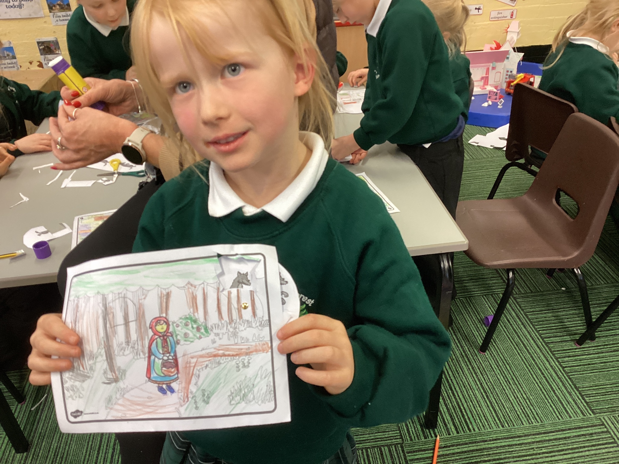 This week Y1 have been making wheel mechanisms to make the wolf creep nearer in a picture of Red Riding Hood.