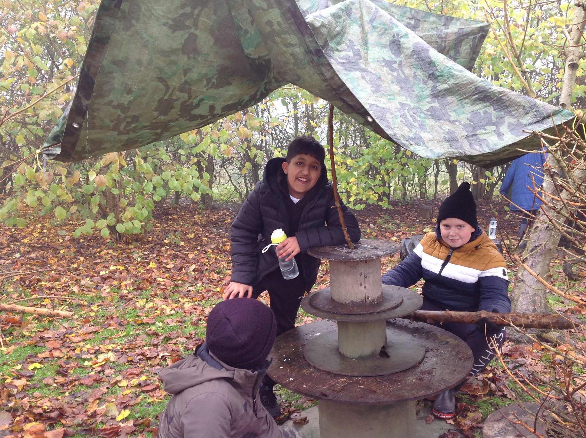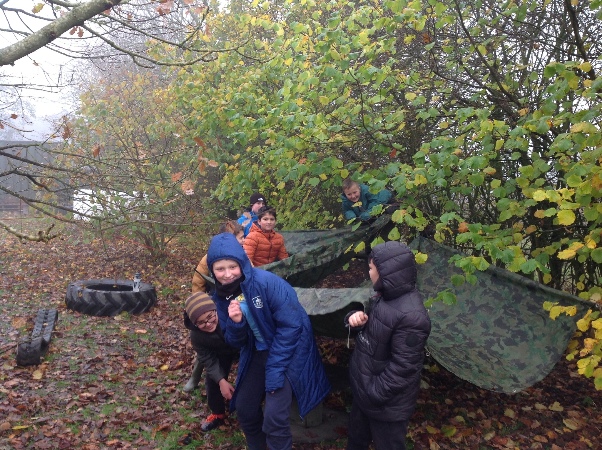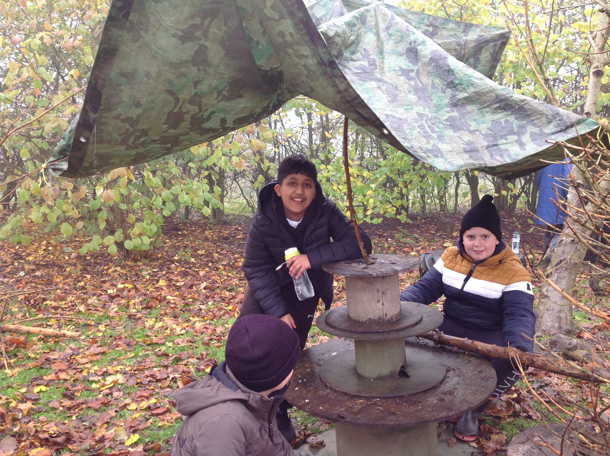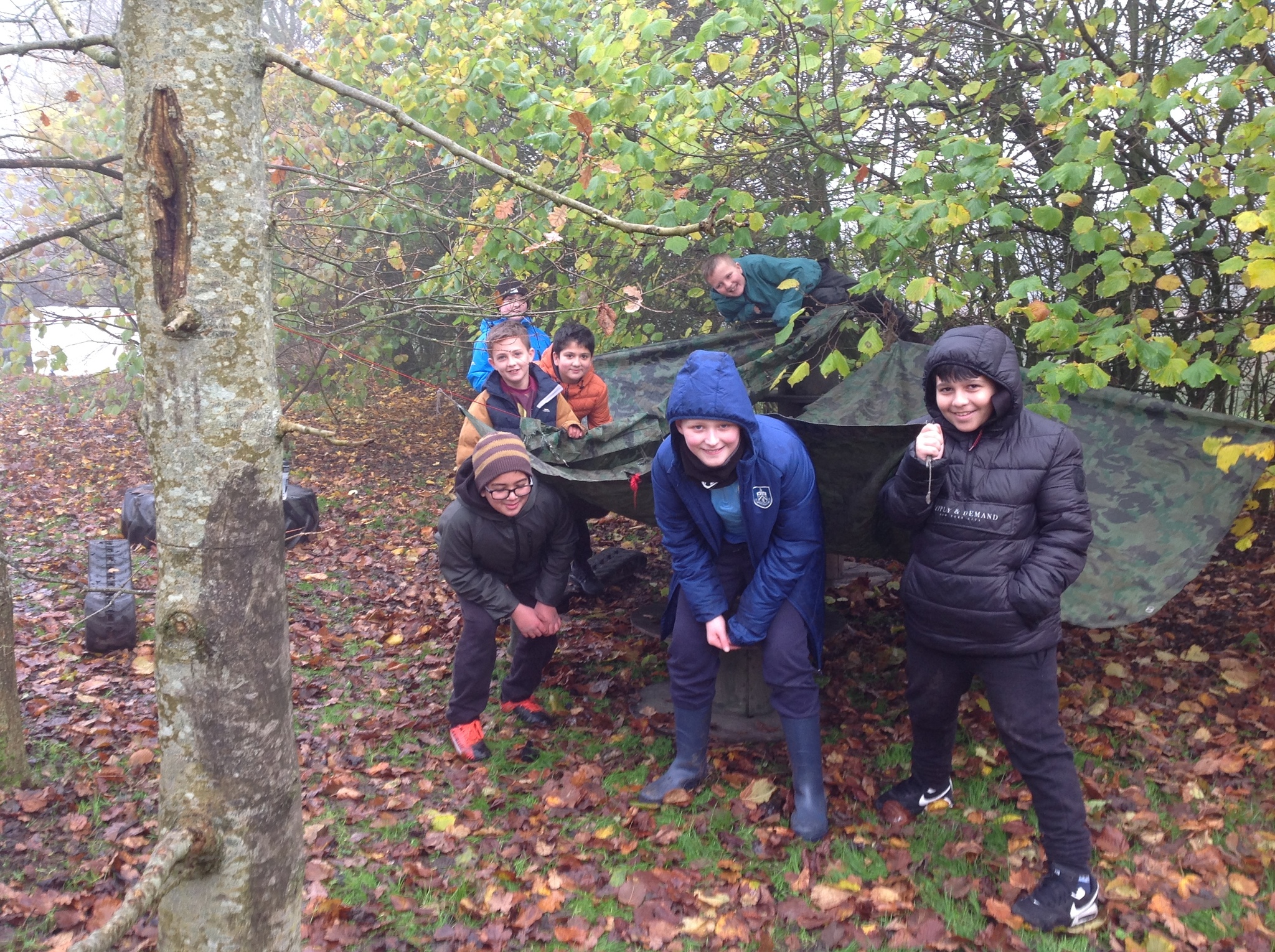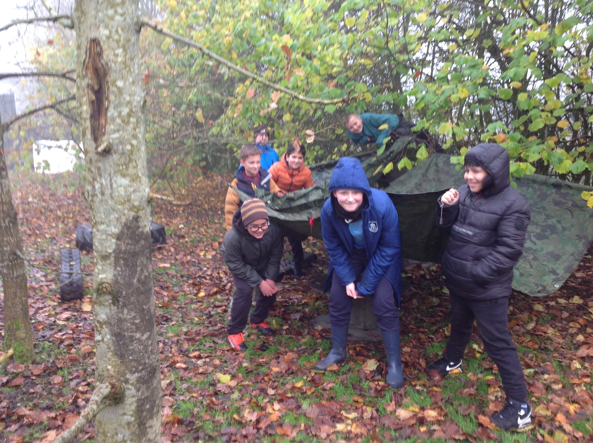 This afternoon Bradley Primary School Year 6 came to visit Elder class. We spent the afternoon in Forest School getting to know each other by completing a quiz, then the Elder class children showed our visitors how to build waterproof dens using tarpaulin and ropes attached to the trees. The children had great fun and had a wonderful time getting to know each other and we can't wait for them to come back in the spring.