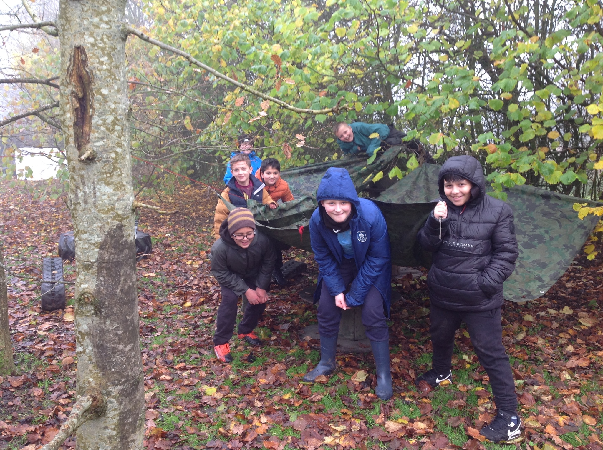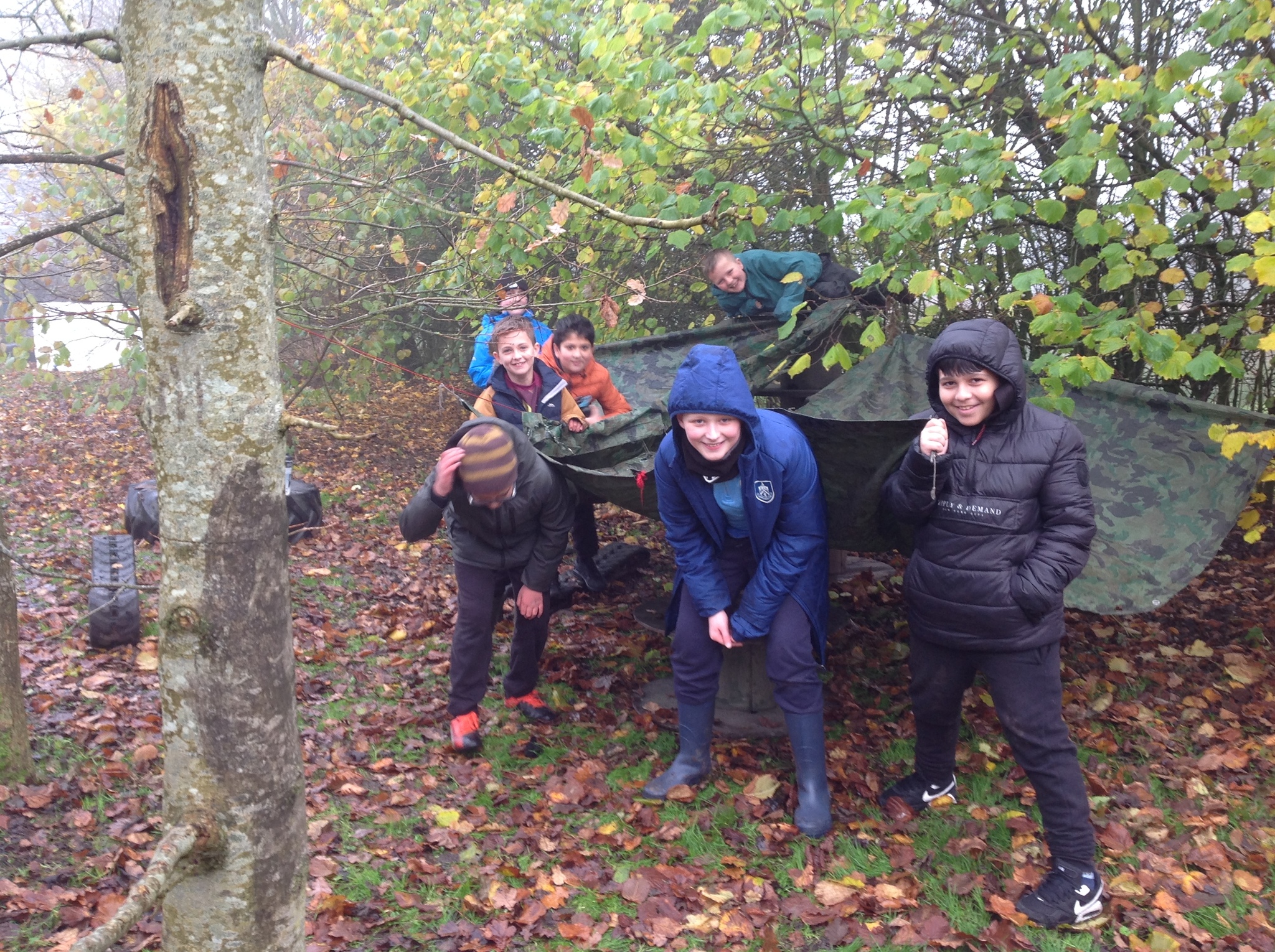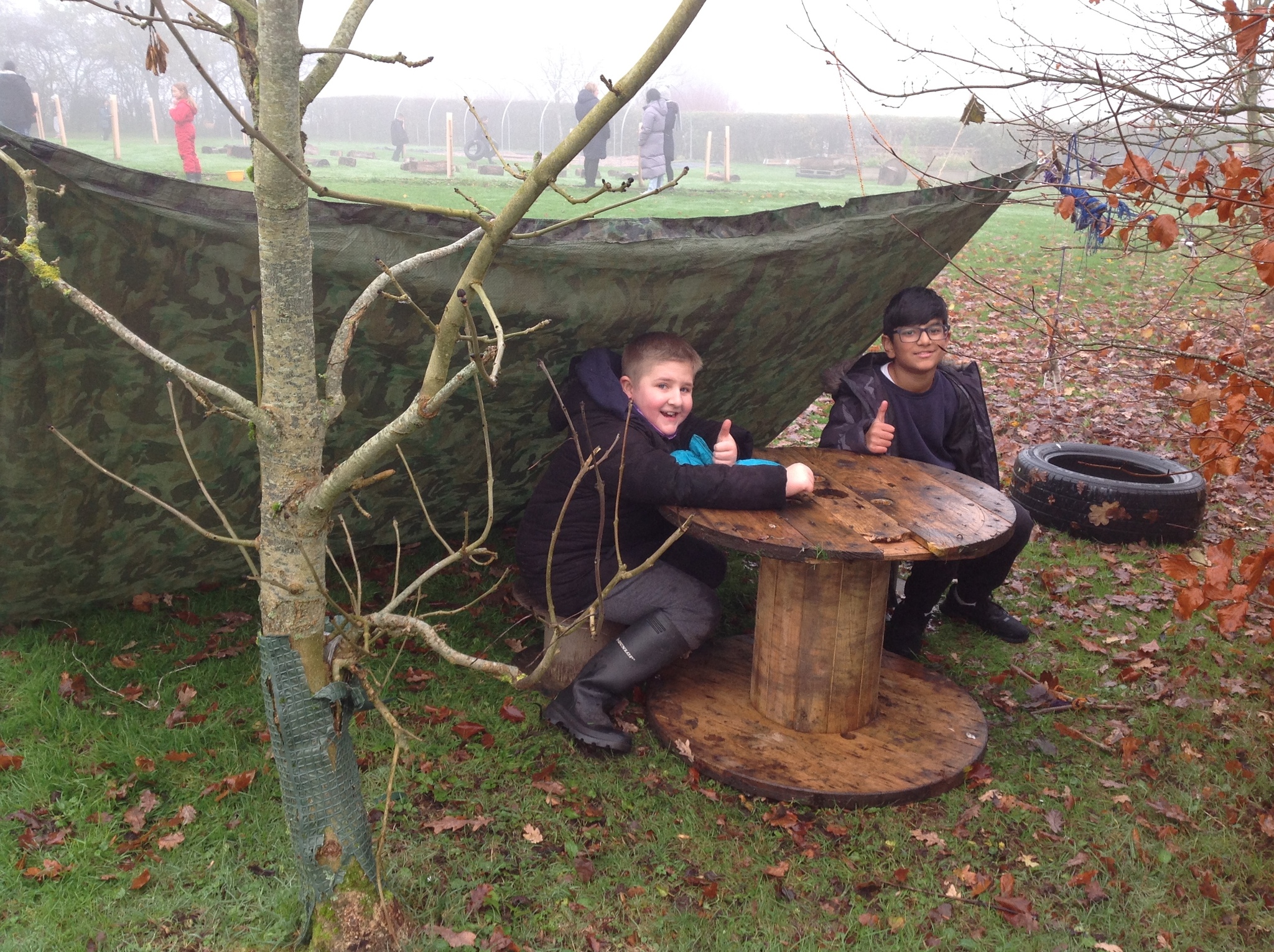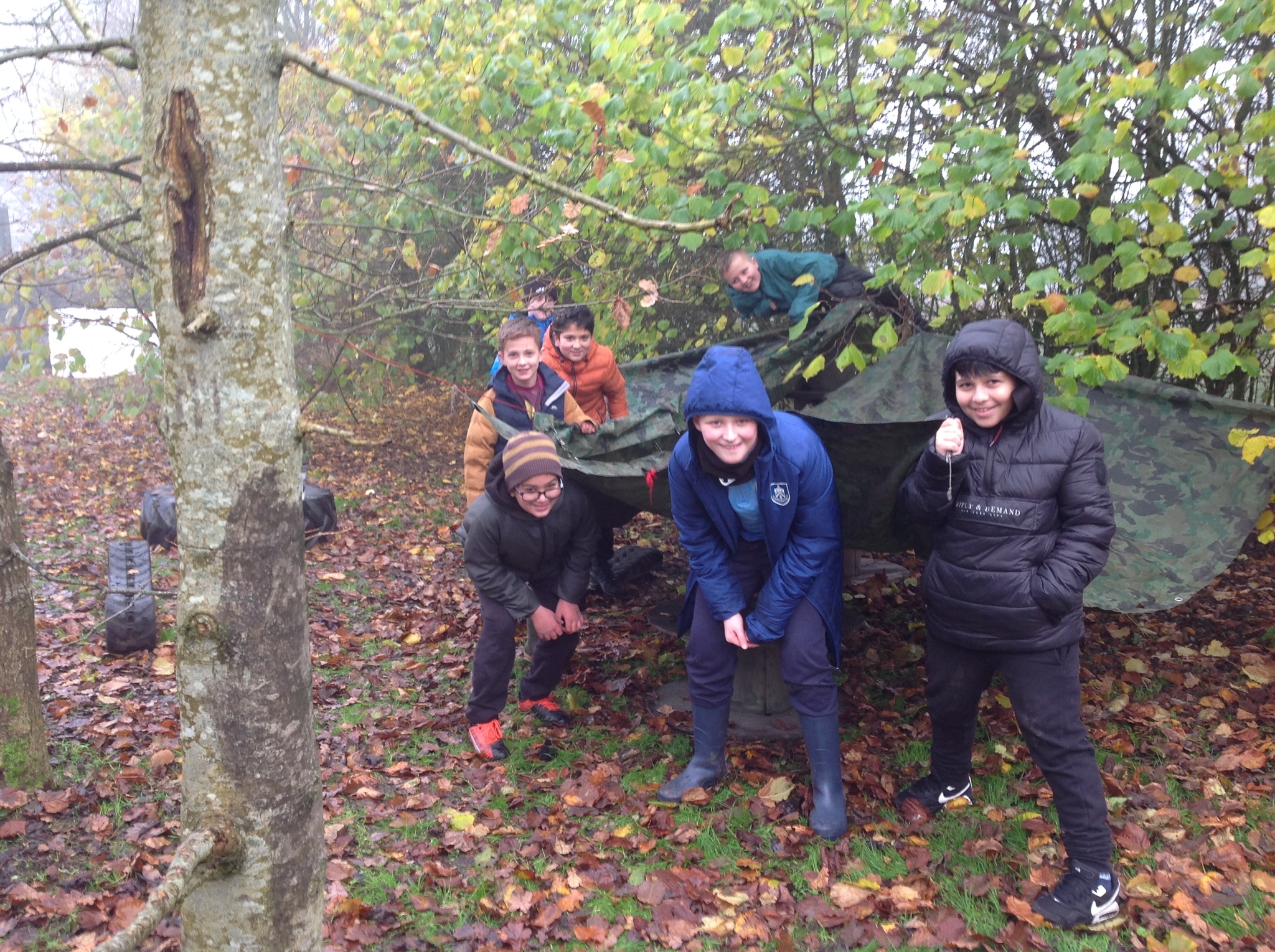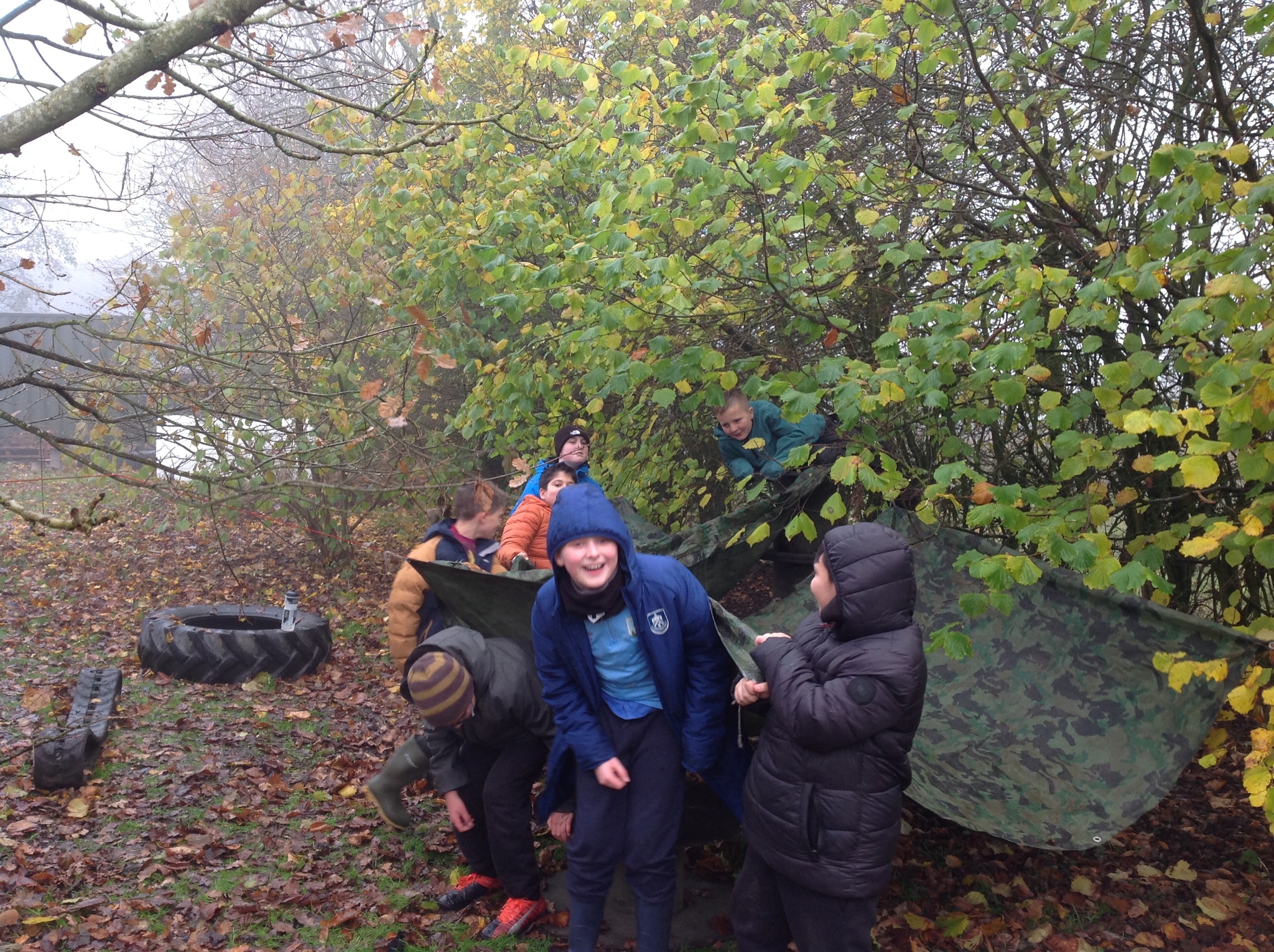 This afternoon Bradley Primary School Year 6 came to visit Elder class. We spent the afternoon in Forest School getting to know each other by completing a quiz, then the Elder class children showed our visitors how to build waterproof dens using tarpaulin and ropes attached to the trees. The children had great fun and had a wonderful time getting to know each other and we can't wait for them to come back in the spring.