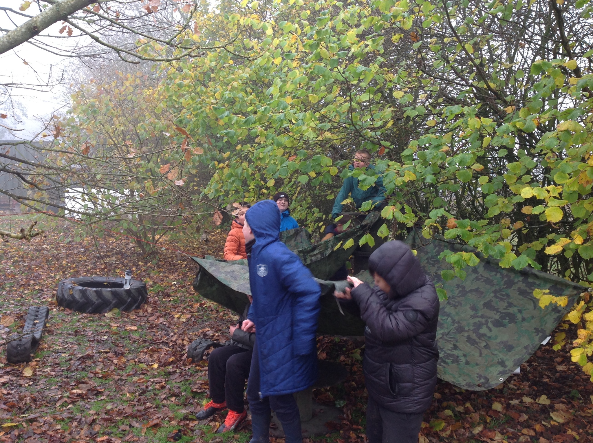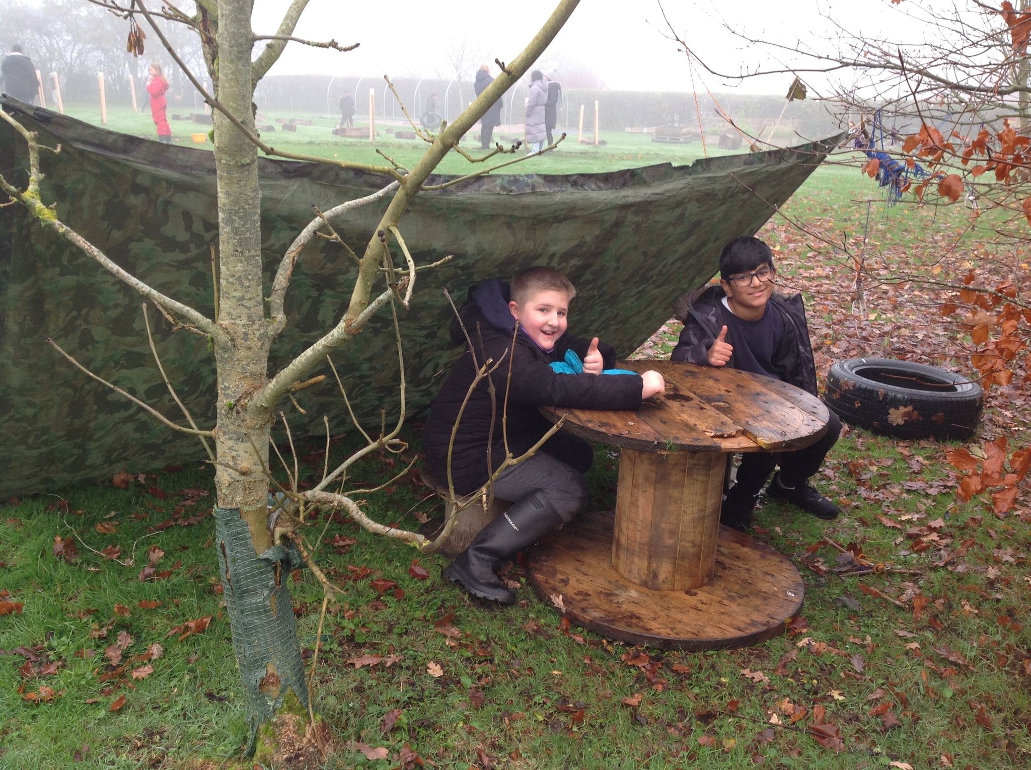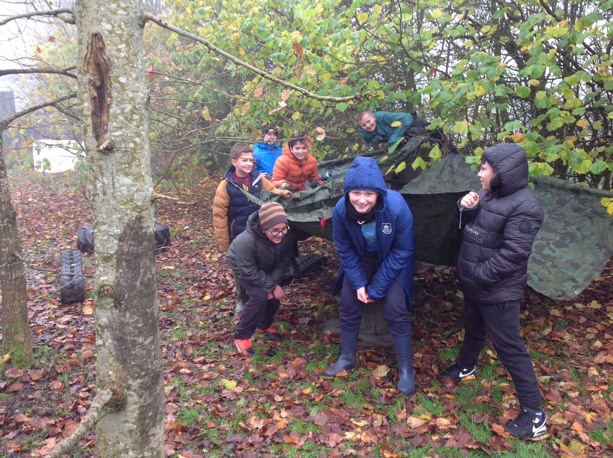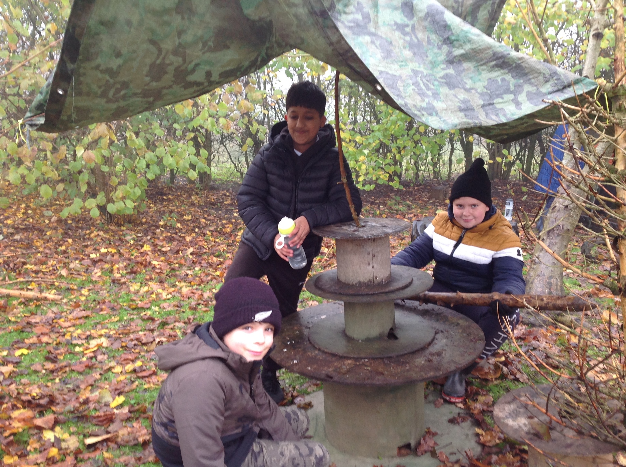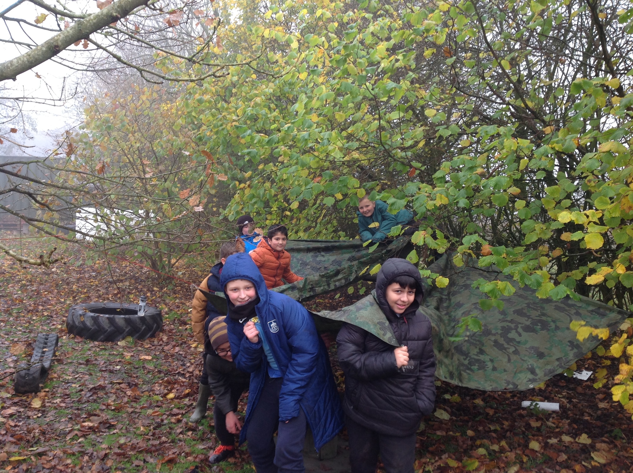 This afternoon Bradley Primary School Year 6 came to visit Elder class. We spent the afternoon in Forest School getting to know each other by completing a quiz, then the Elder class children showed our visitors how to build waterproof dens using tarpaulin and ropes attached to the trees. The children had great fun and had a wonderful time getting to know each other and we can't wait for them to come back in the spring.