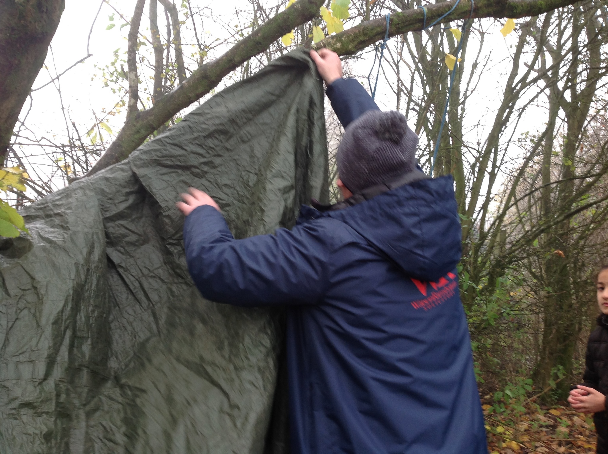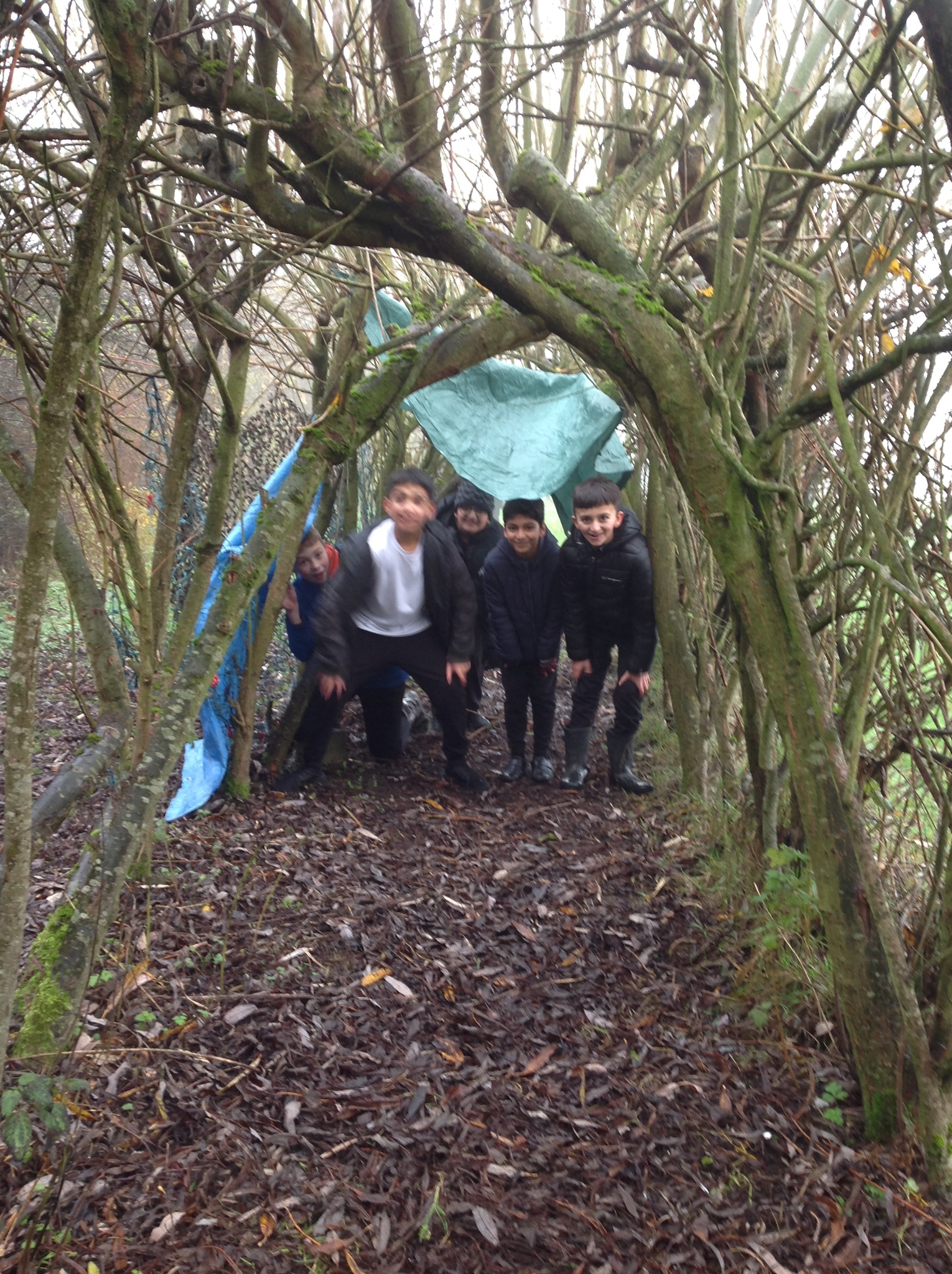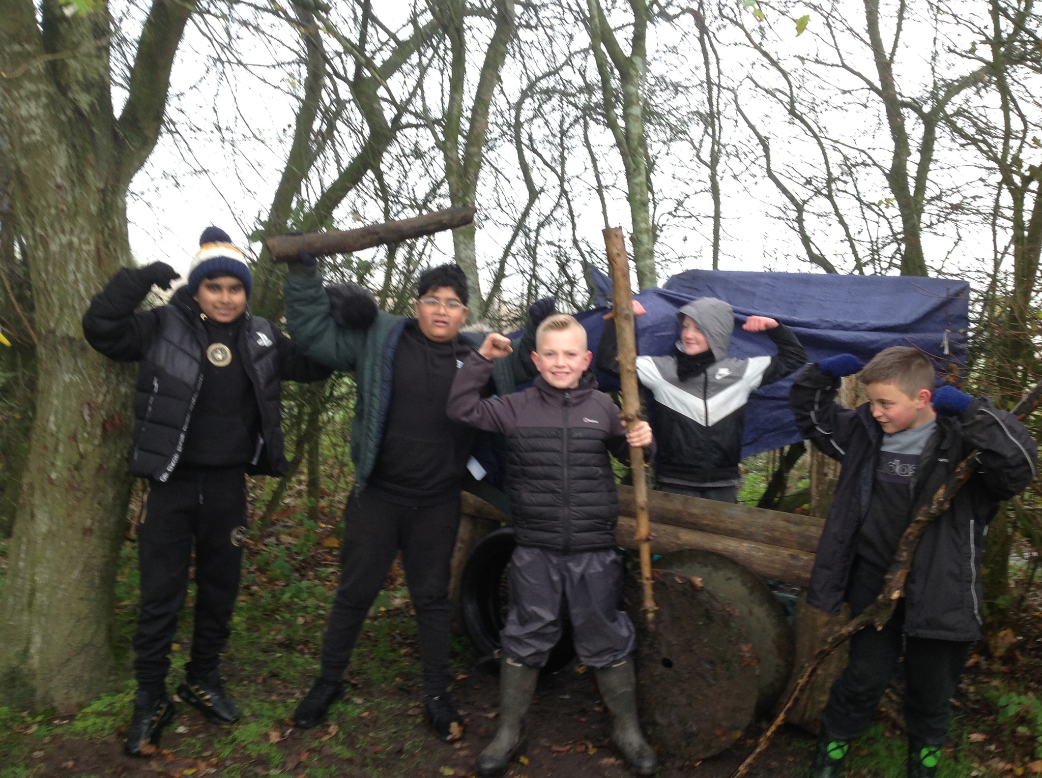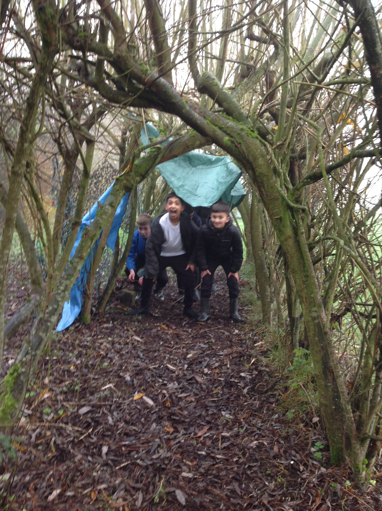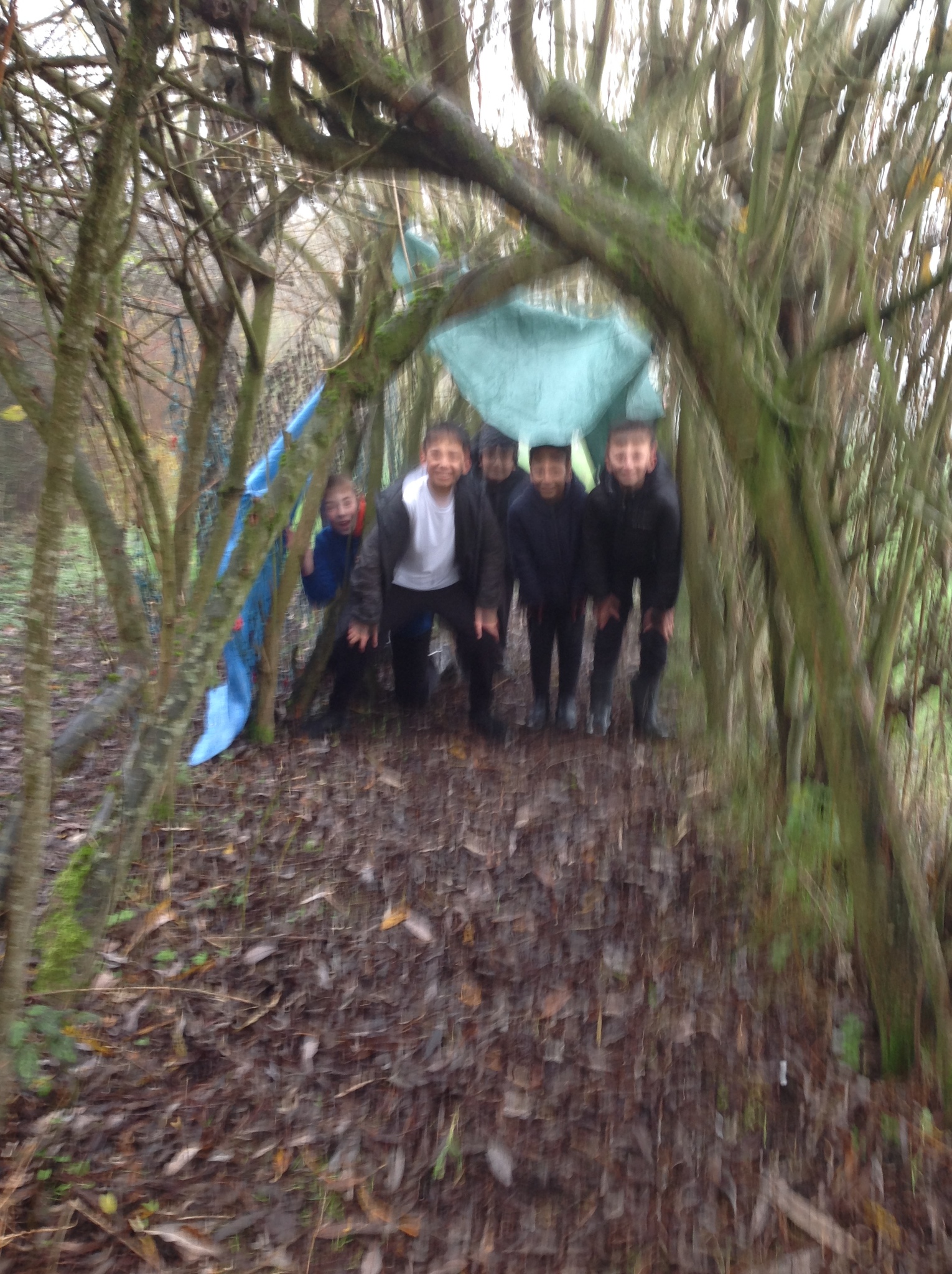 This afternoon Bradley Primary School Year 6 came to visit Elder class. We spent the afternoon in Forest School getting to know each other by completing a quiz, then the Elder class children showed our visitors how to build waterproof dens using tarpaulin and ropes attached to the trees. The children had great fun and had a wonderful time getting to know each other and we can't wait for them to come back in the spring.