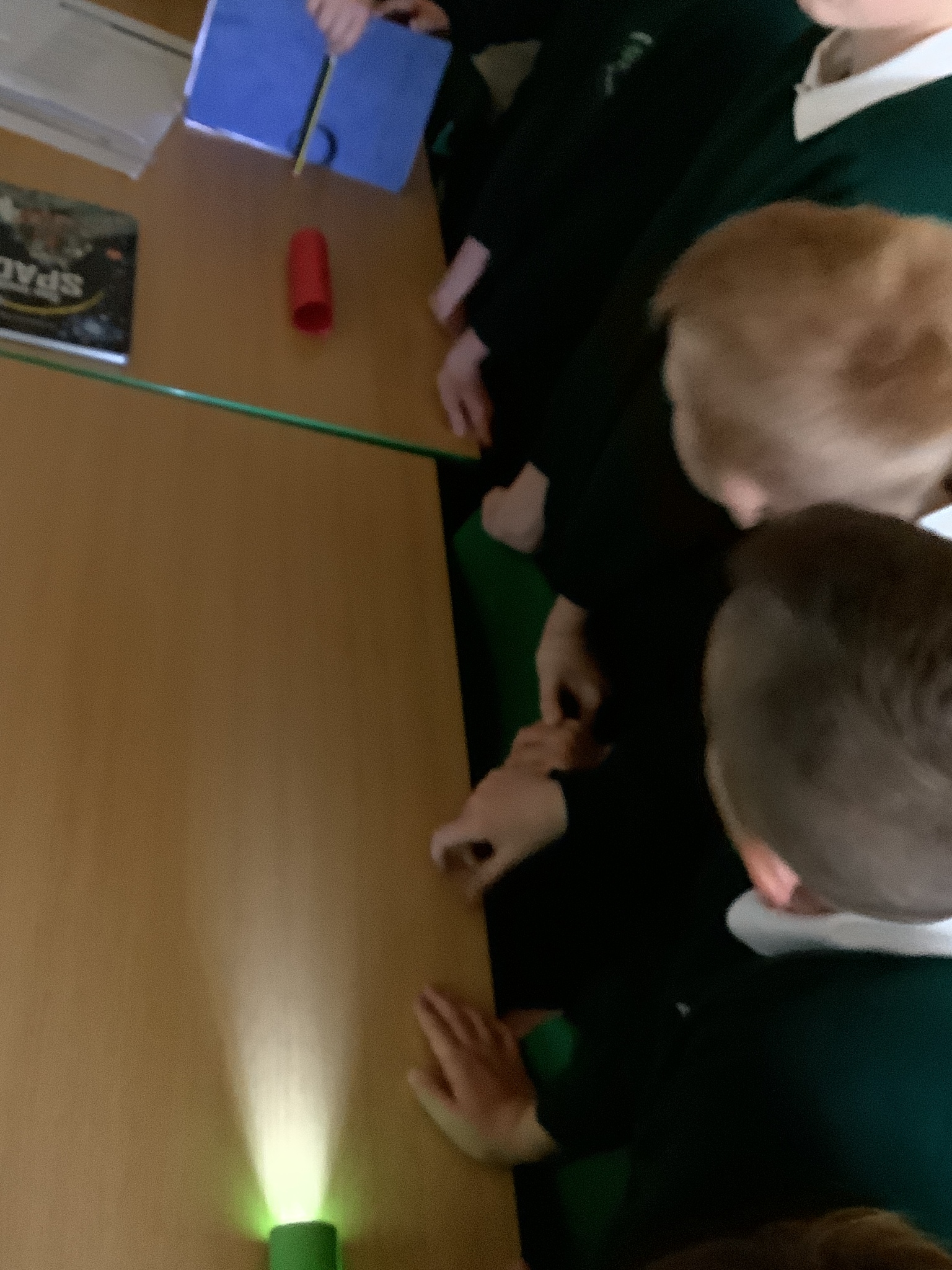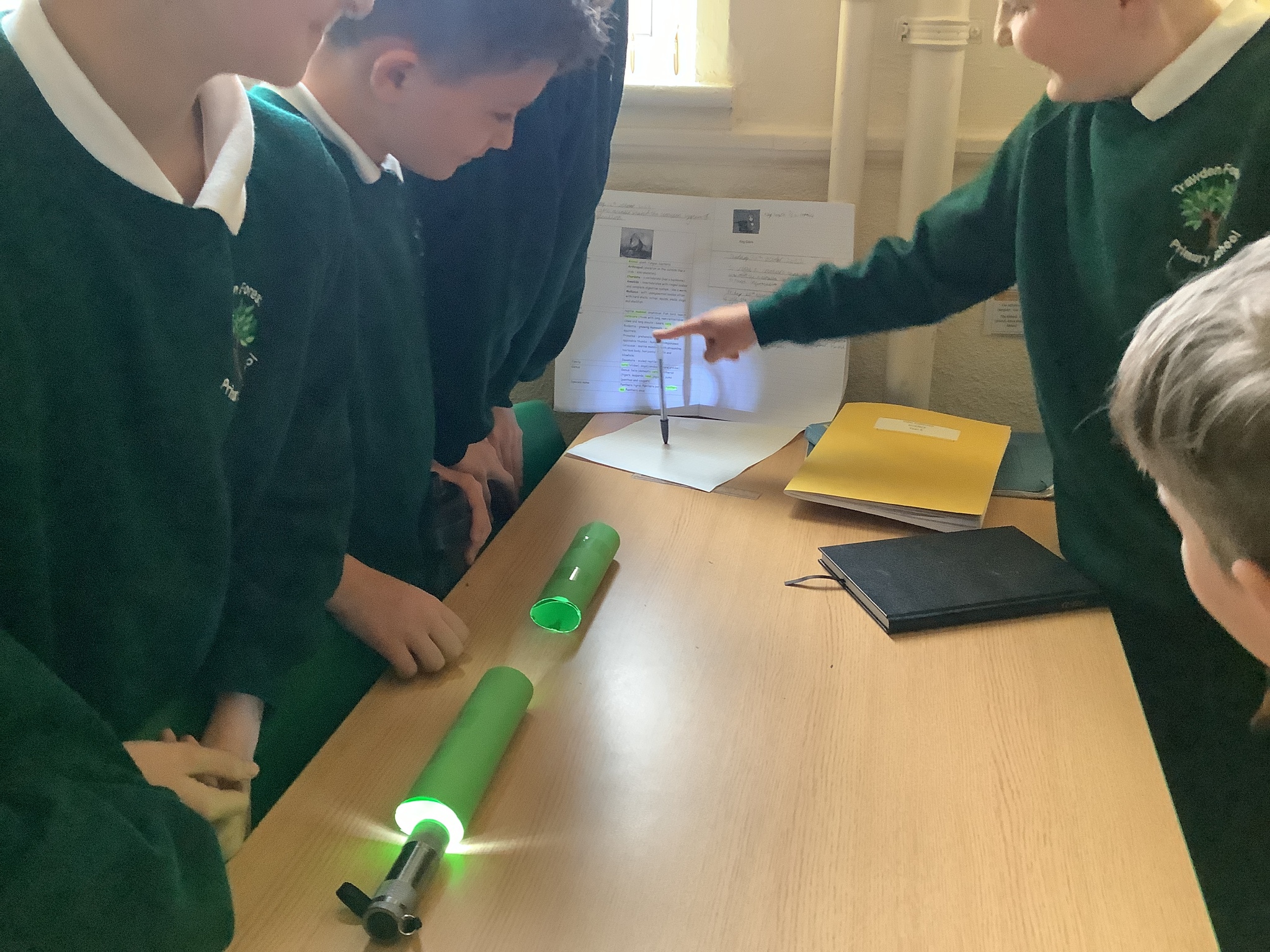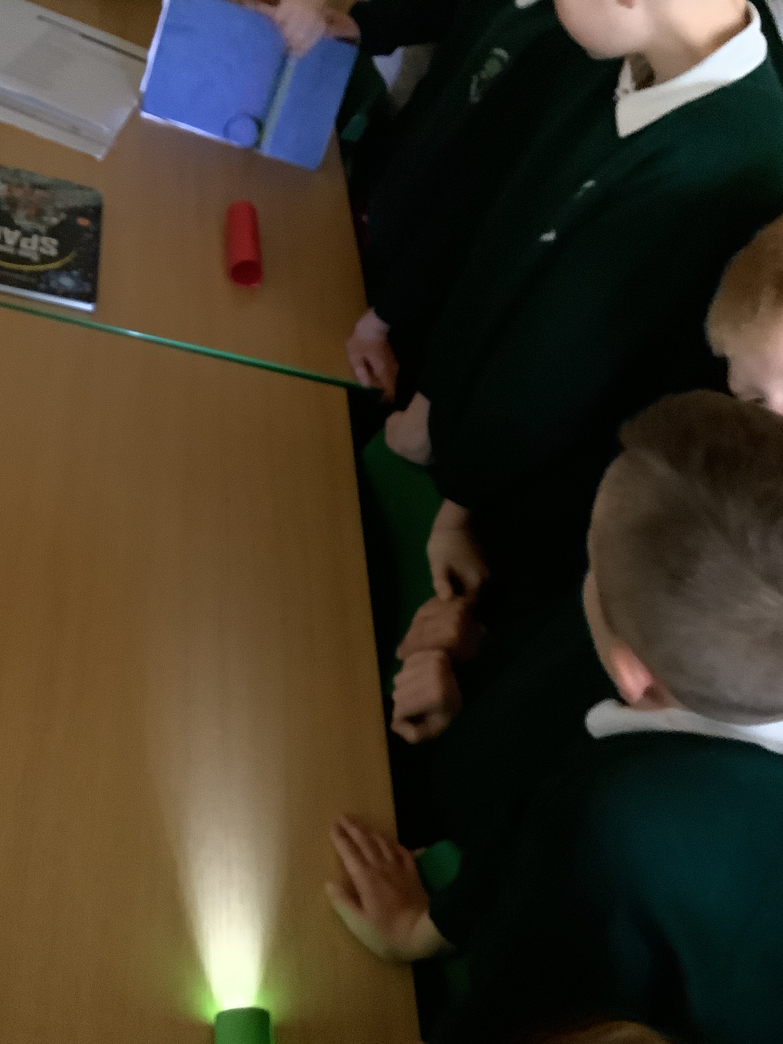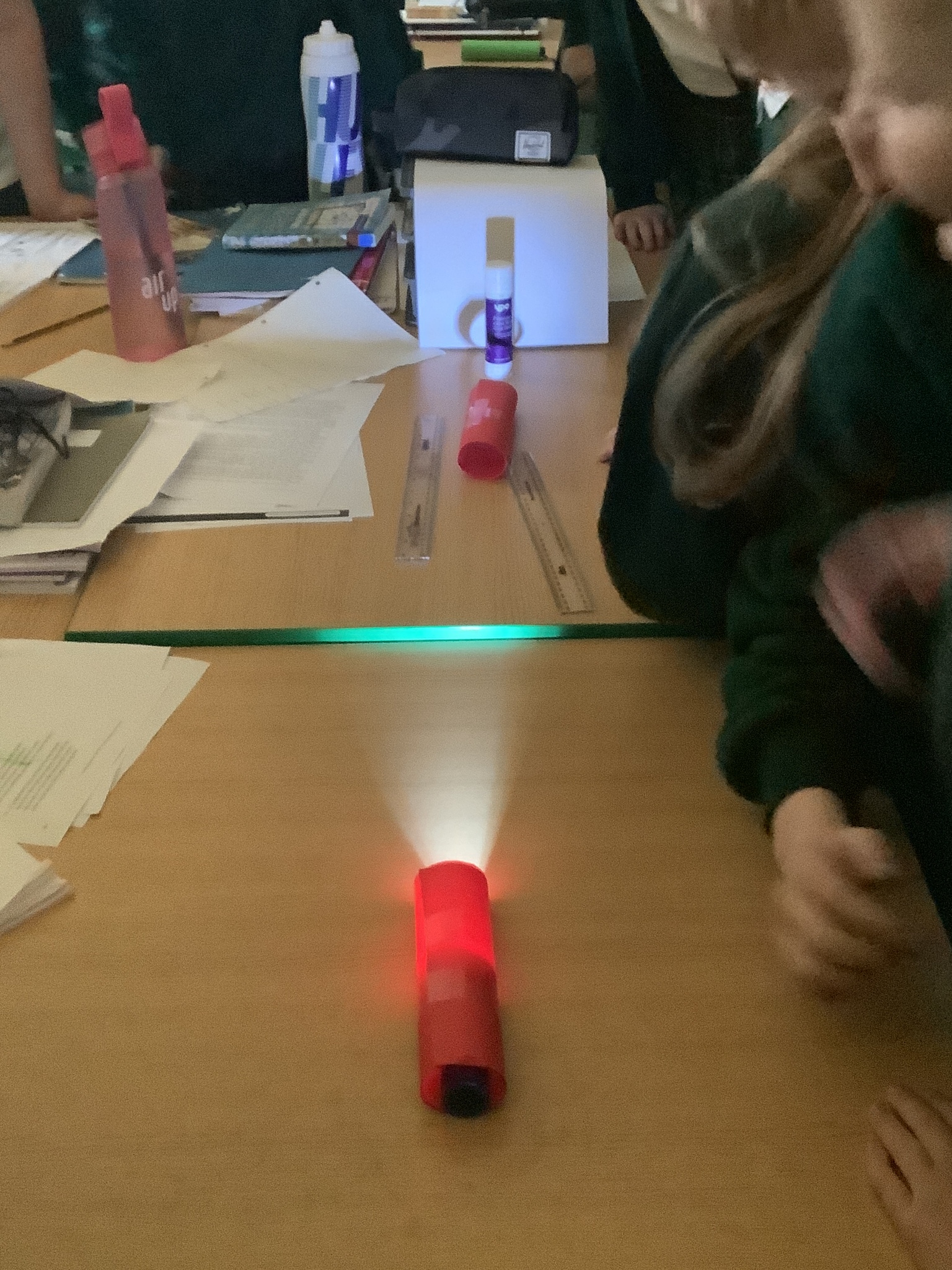 Today year 6 investigated light rays and the direction in which they travel. Their investigation helped them to explain this and to understand how shadows are created. They had a great time trying to see whether the light rays could bend!