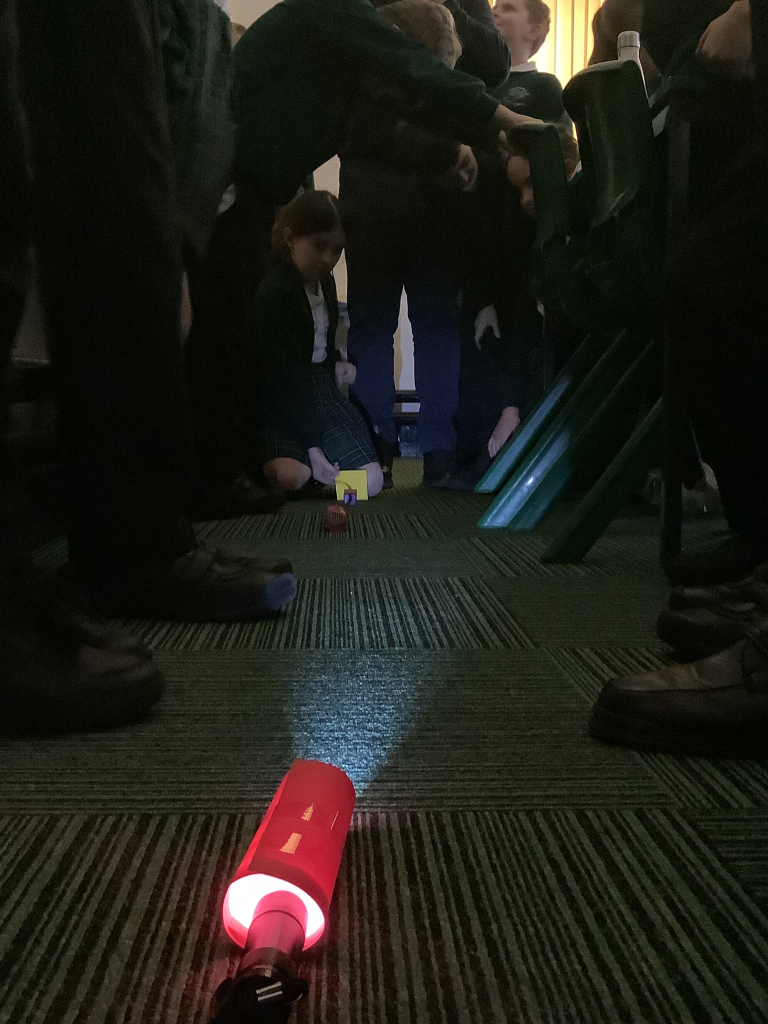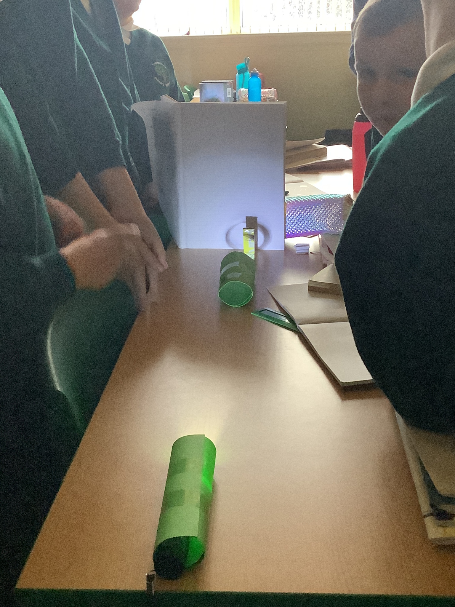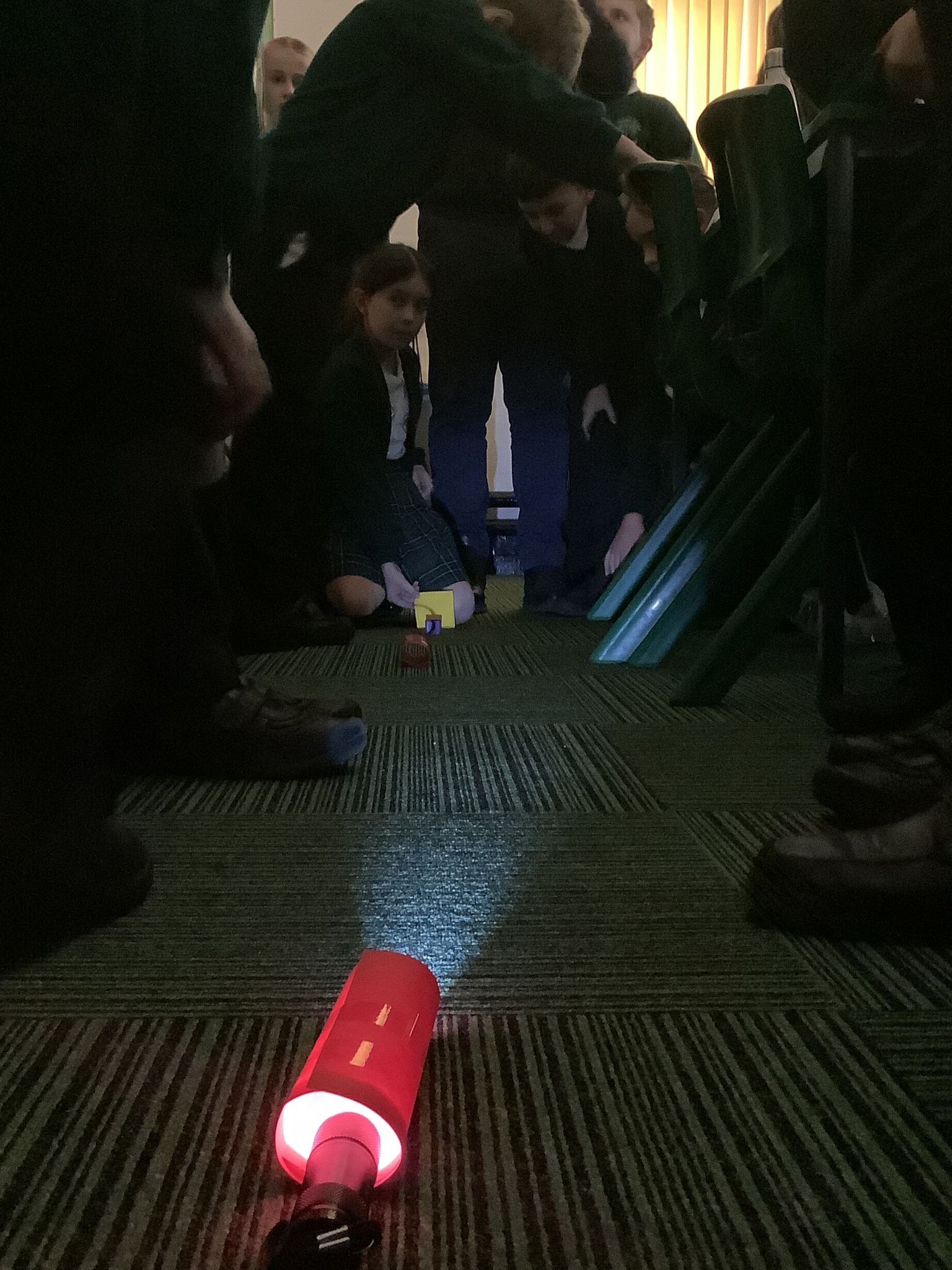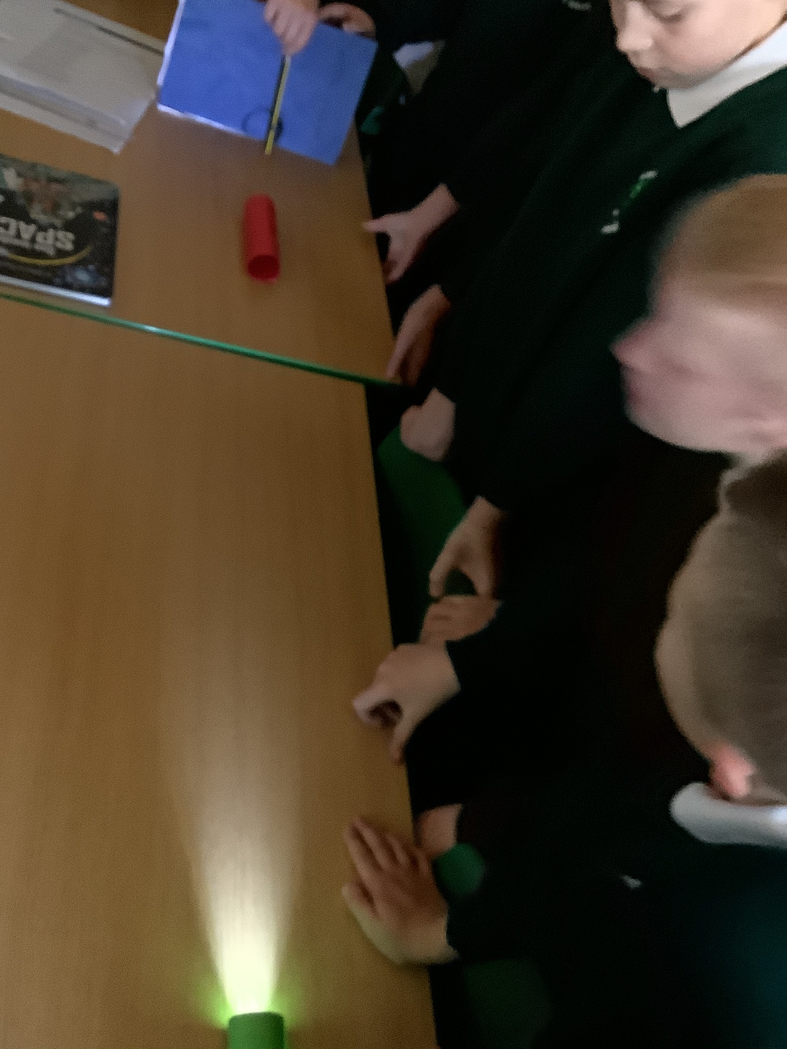 Today year 6 investigated light rays and the direction in which they travel. Their investigation helped them to explain this and to understand how shadows are created. They had a great time trying to see whether the light rays could bend!