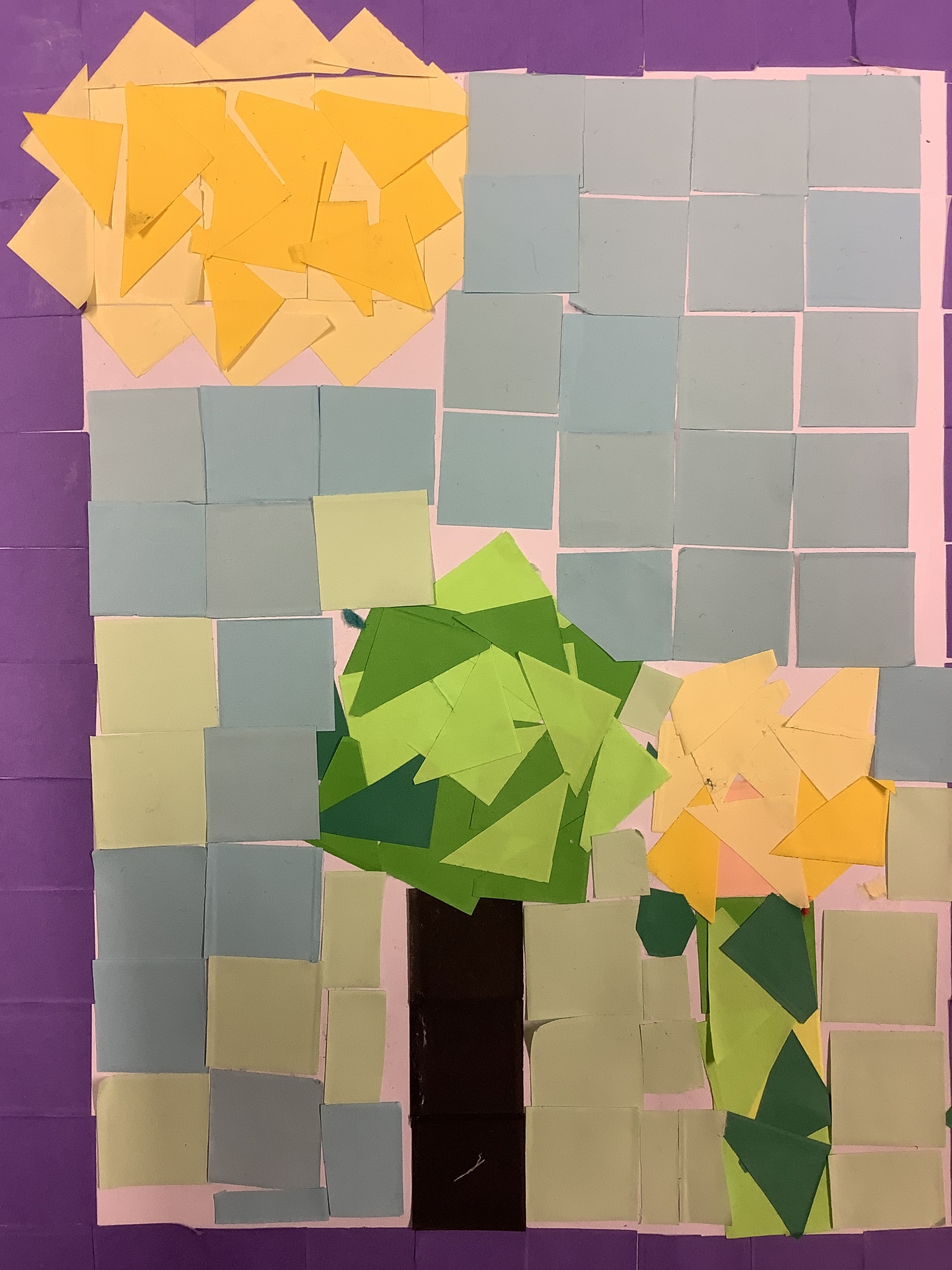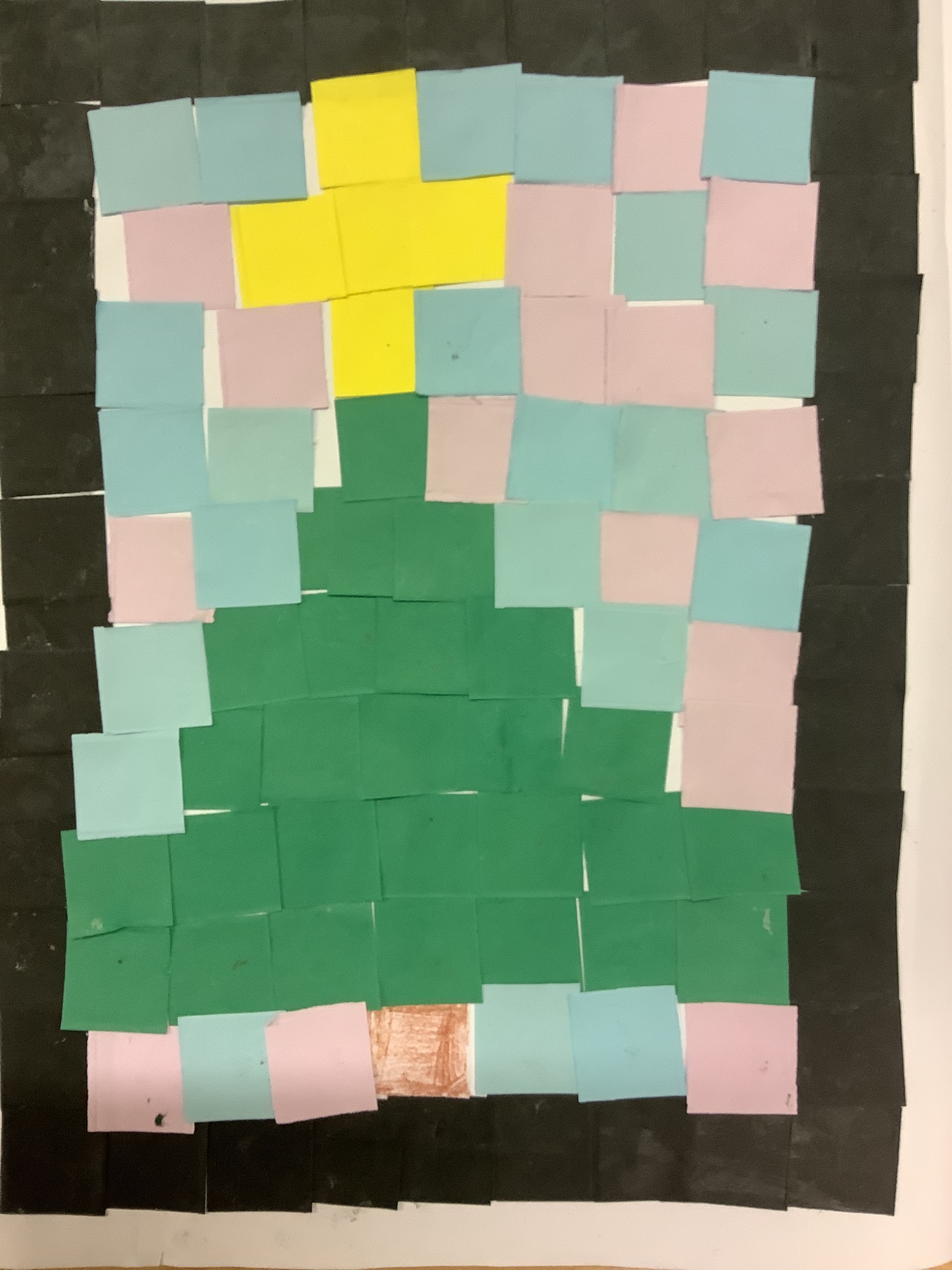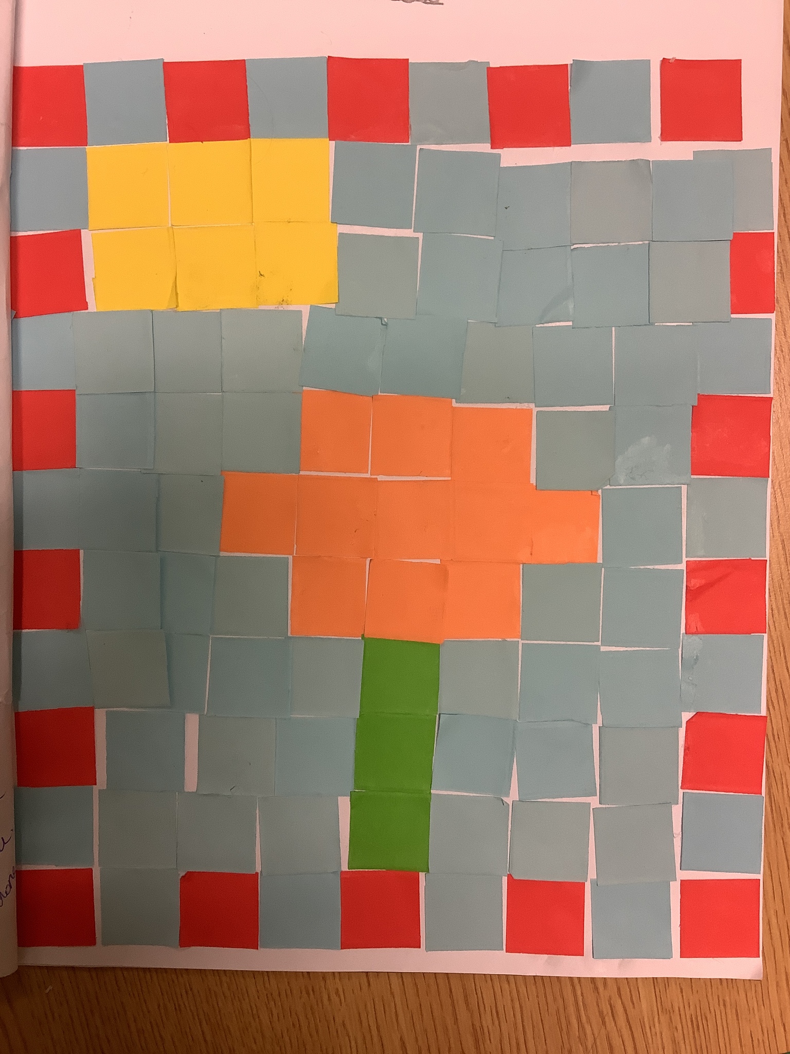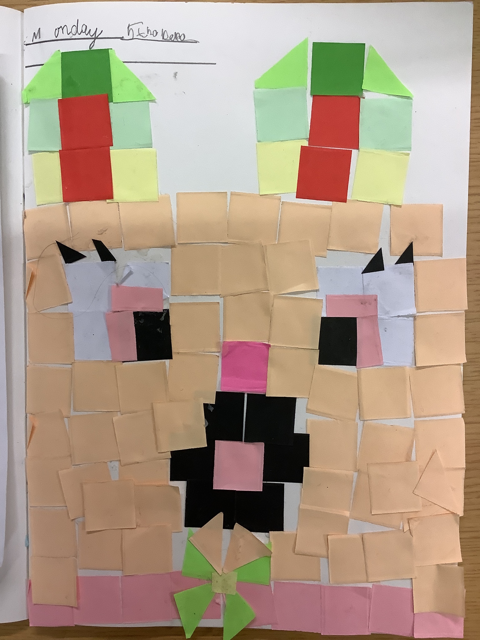 In Year 4 this half term, we have been looking at Mosaics. Over the past few weeks, we have been progressing our knowledge and skill to produce more and more of a full mosaics. We began by looking at real mosaics and where they were from, we focused on Roman mosaics as we will be learning all about the Romans next week. We then moved on to looking at the borders of mosaics and how they usually follow a simple pattern. Next, we made our own by colouring in squared paper, before finally making these mosaics as our final piece of art on the topic. As you can see, we have worked very hard and really thought about how to make a picture show from these coloured pieces of paper.
