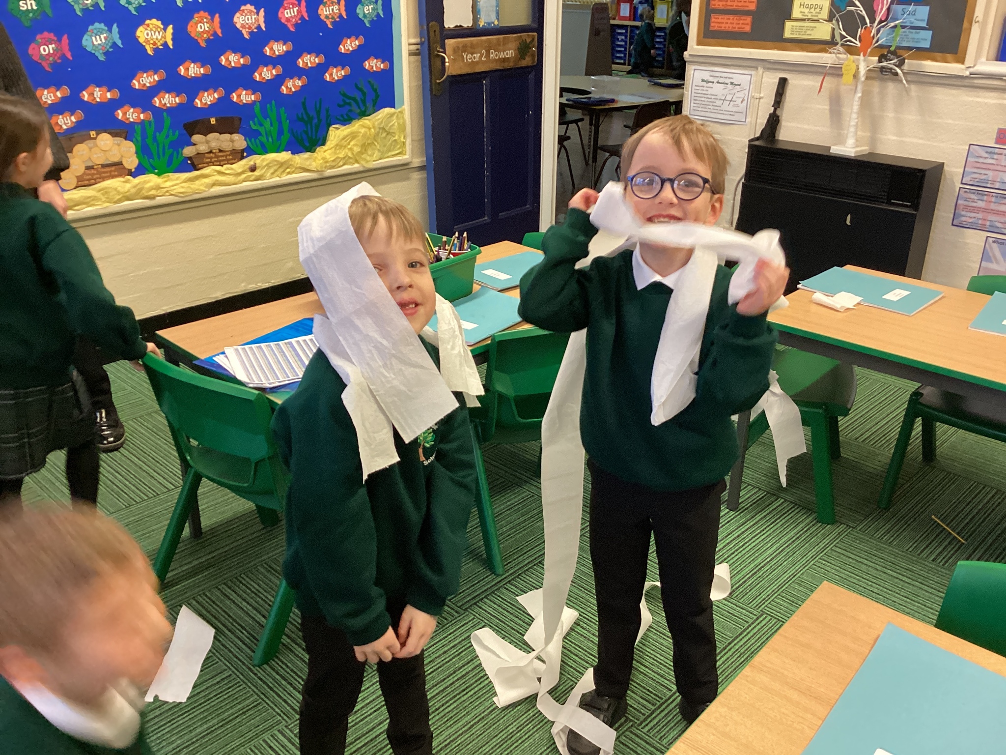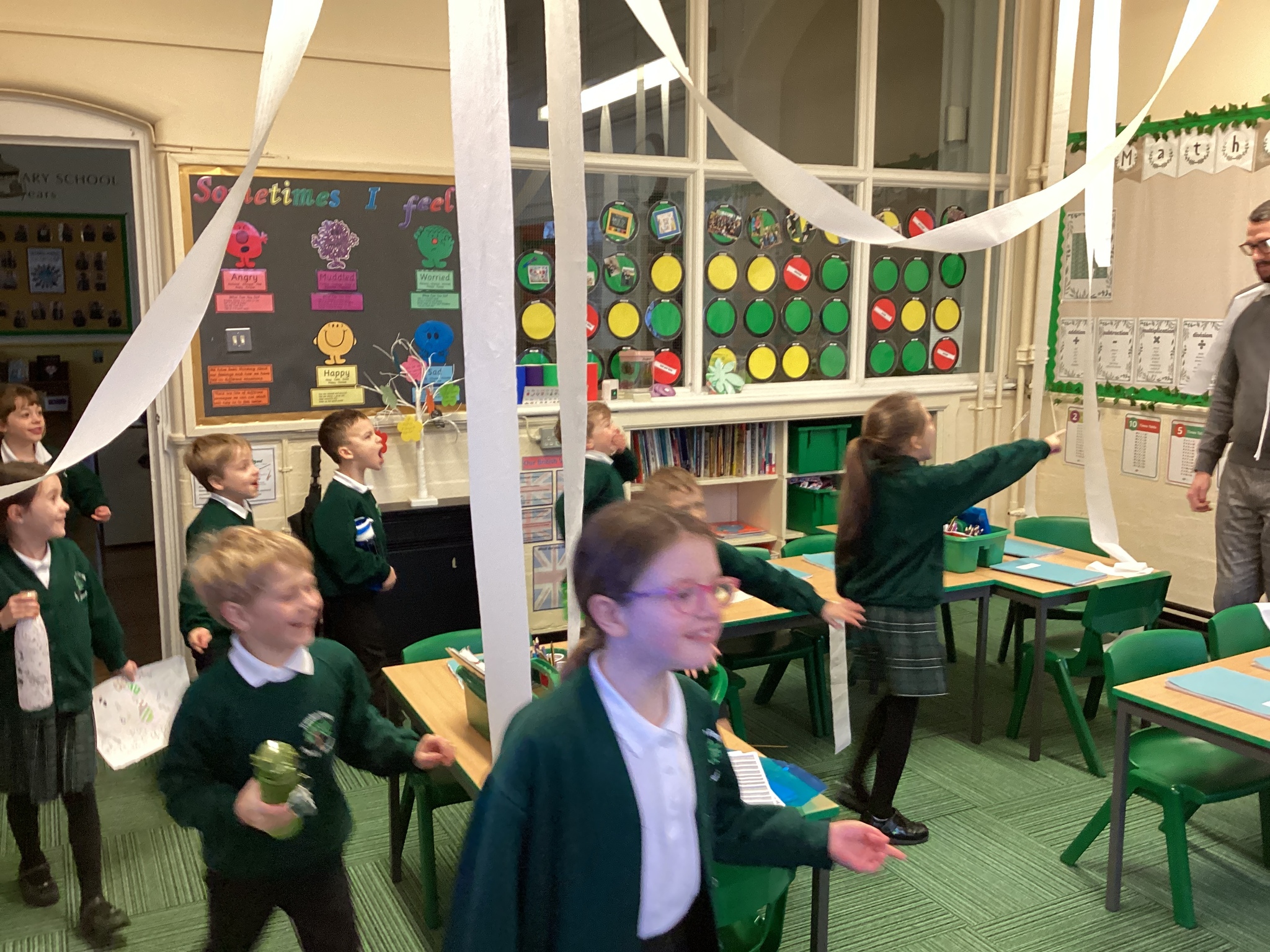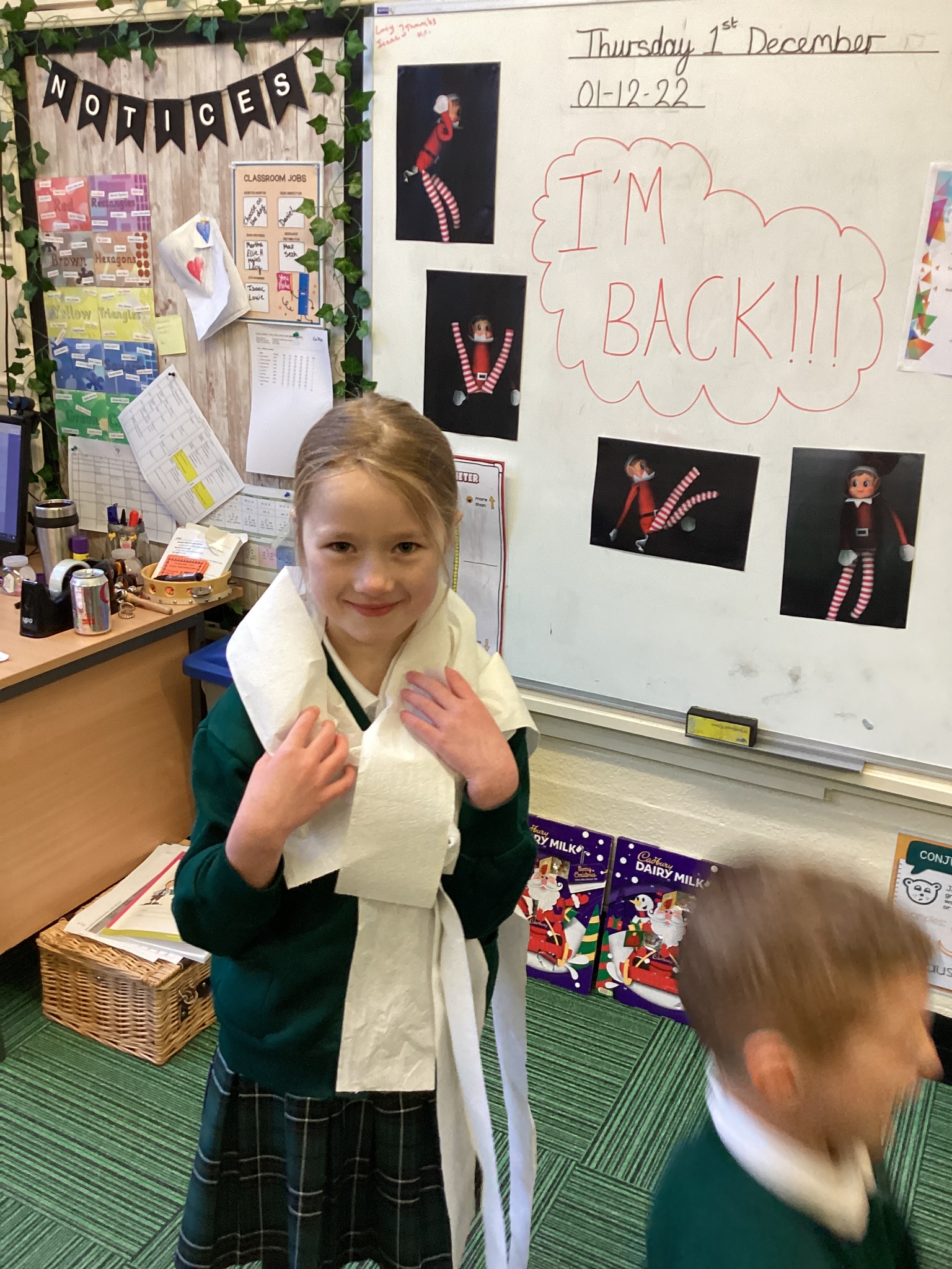 Last week, Year Two had a surprise when they walked into their classroom to find that an elf had arrived in their classroom! He had put tissue paper all over everything and introduced himself as Candy Kane. Later in the week the children arrived in school to find that Candy Kane had gone! He had been Elfnapped by Mr Plant and was forced to clean the whole school over the weekend. Fortunately, yesterday Candy Kane managed to escape and today he sent each child a card wishing them good luck on their nativity performance. We can't wait to see what he gets up to next!