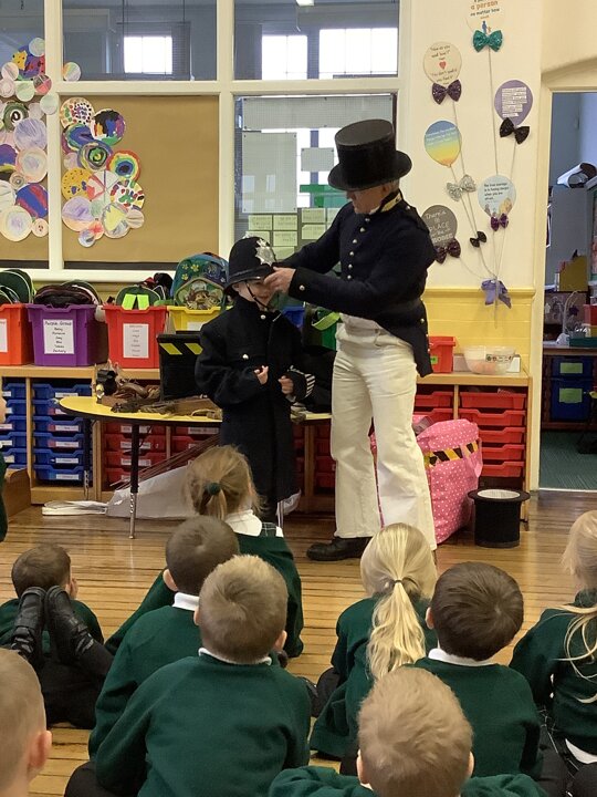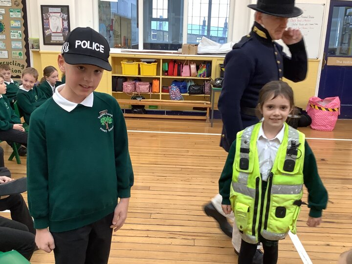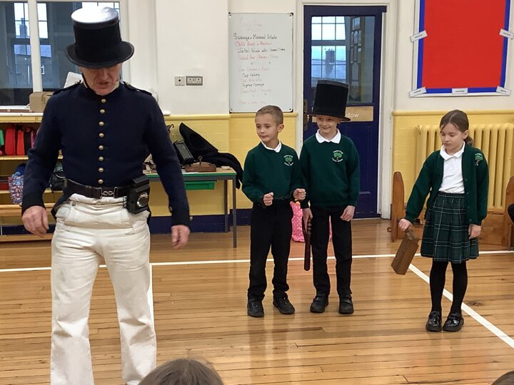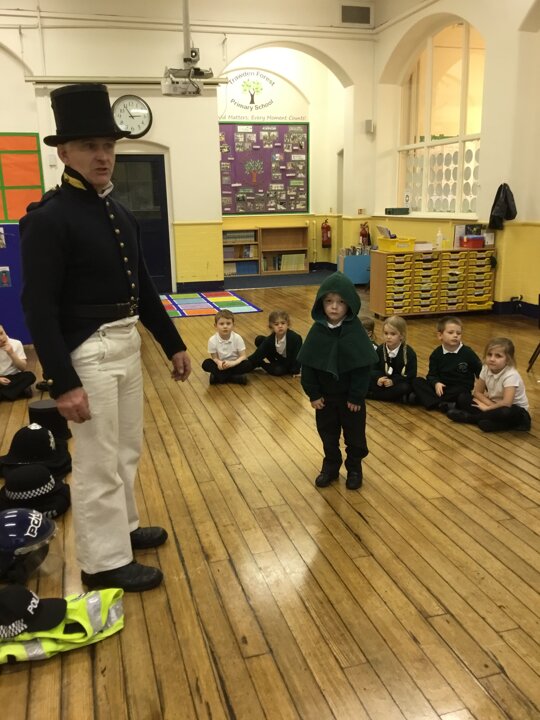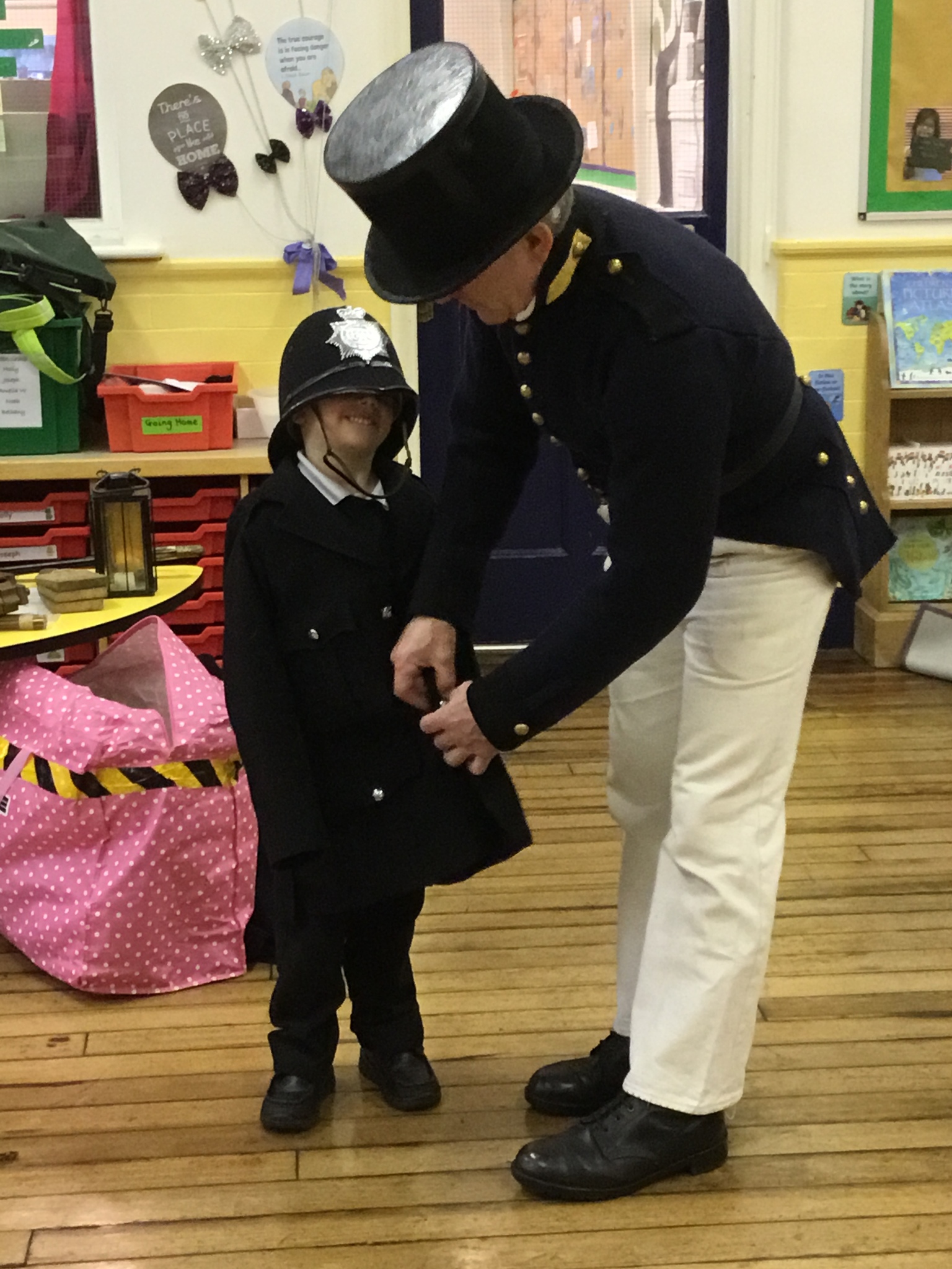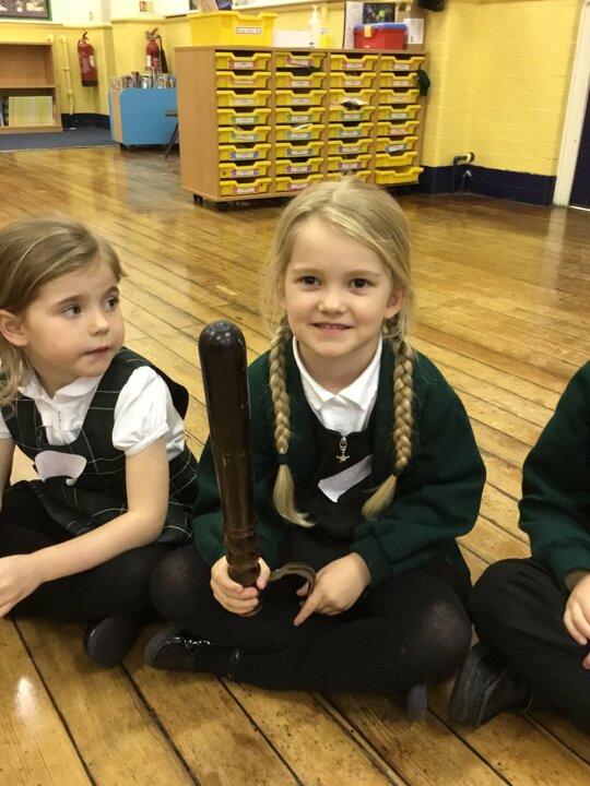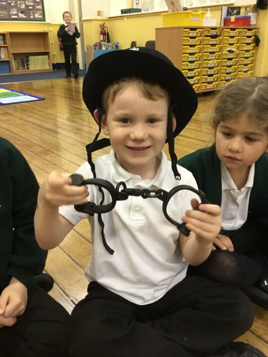What an amazing and interesting day we had yesterday! The history man came to transport us on a journey back through time and showed us how crime and punishment has changed since Medieval times, up until today. The children were shown some fantastic artefacts and were given the opportunity to try on different police uniforms from the past. Some children were even put in stocks to show them how people were punished in the 16th and 17th centuries, thankfully they were quickly released!