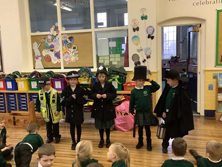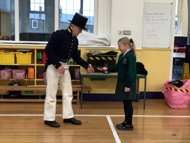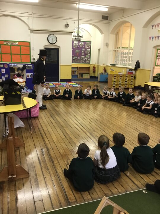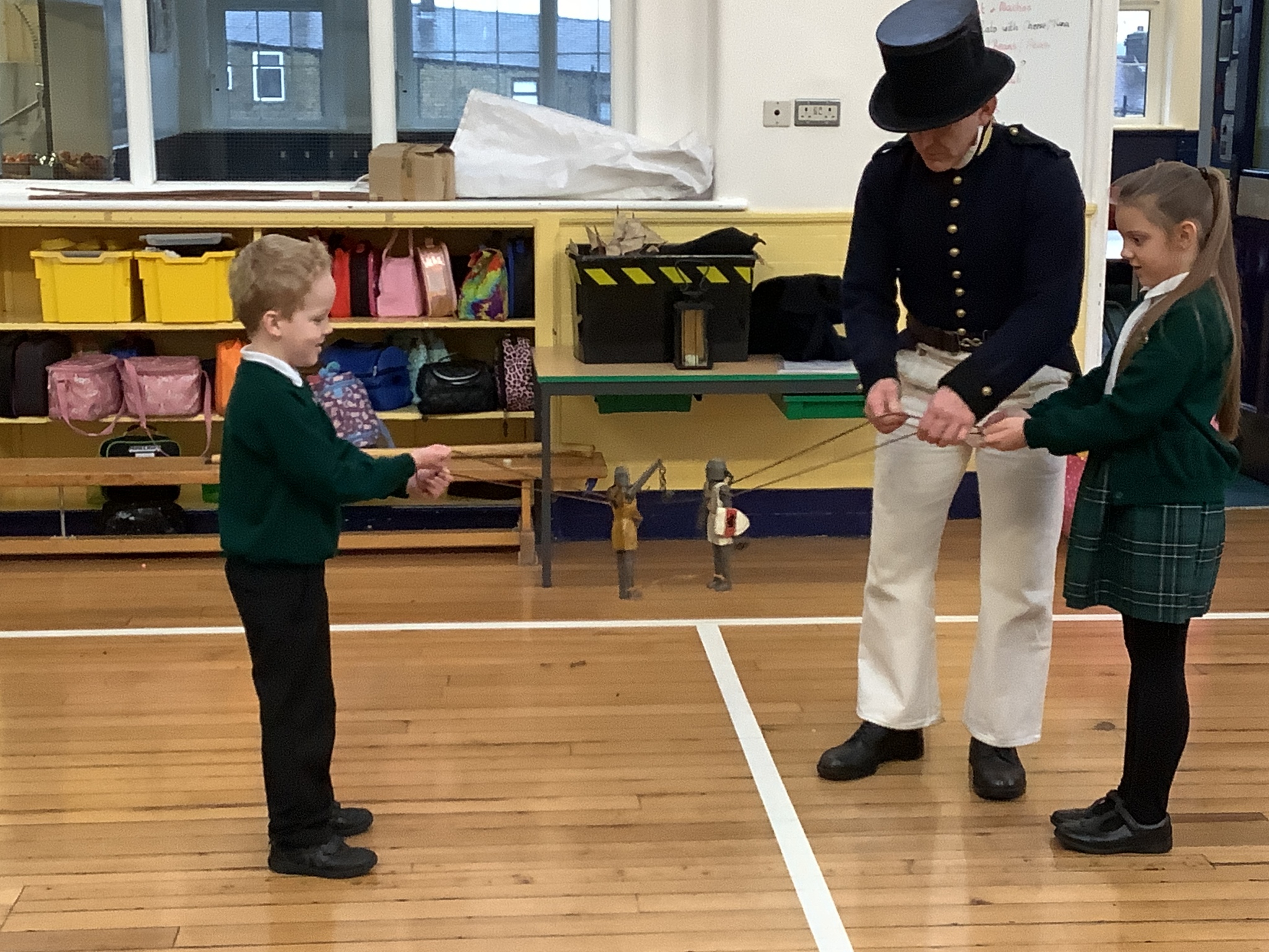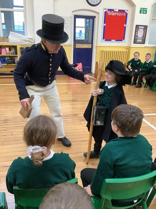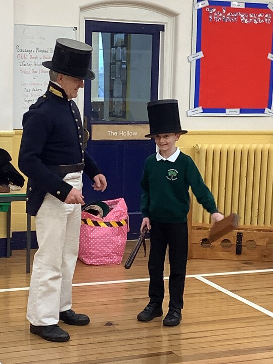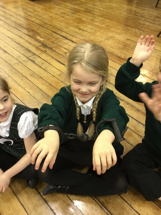What an amazing and interesting day we had yesterday! The history man came to transport us on a journey back through time and showed us how crime and punishment has changed since Medieval times, up until today. The children were shown some fantastic artefacts and were given the opportunity to try on different police uniforms from the past. Some children were even put in stocks to show them how people were punished in the 16th and 17th centuries, thankfully they were quickly released!