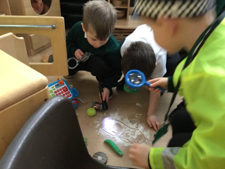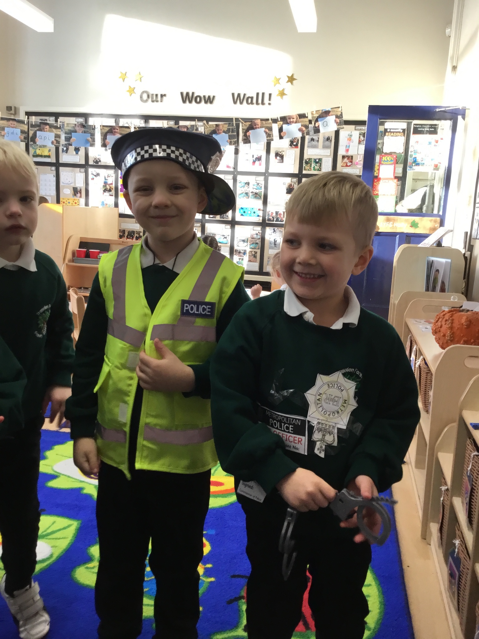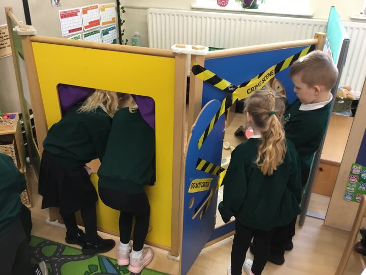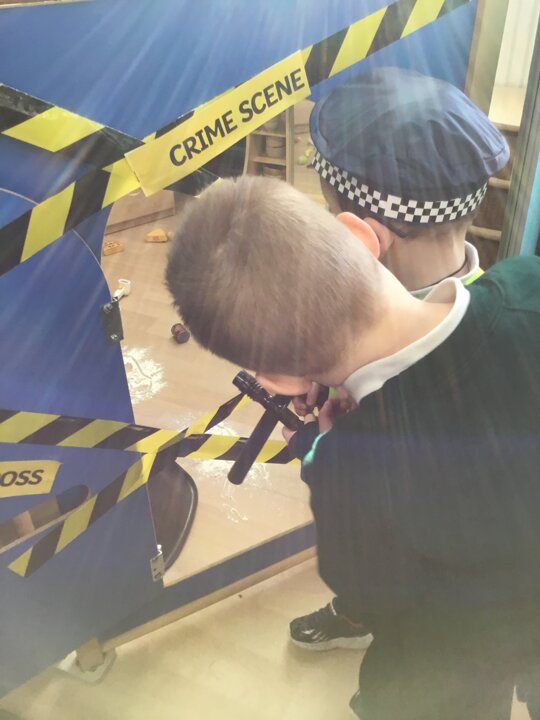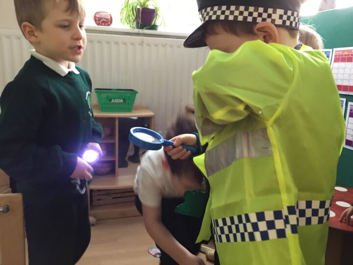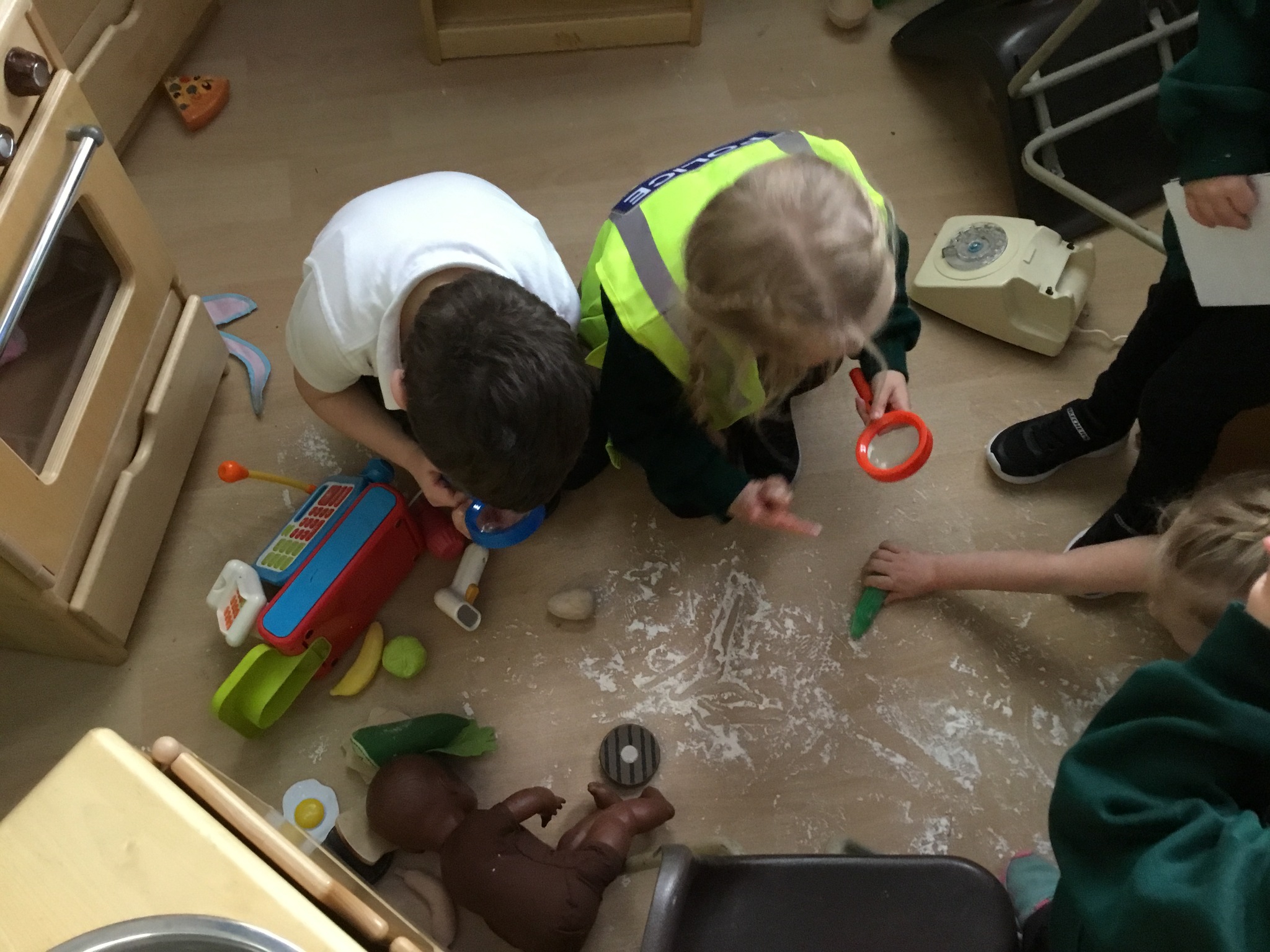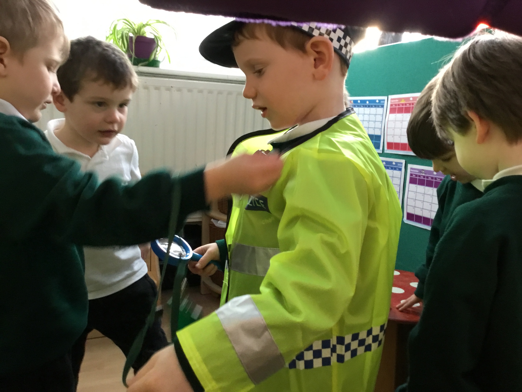 We made a strange discovery when we came into class this morning. Somebody had been in and ruined our home corner! We have just started our topic on ‘People who help us’ so we knew that we needed to get the police involved to help us solve the mystery! The children have been looking for clues and deciding on suspects all day. They’ve also made police badges so make watch out in case they try to arrest you! We’ll keep you posted…