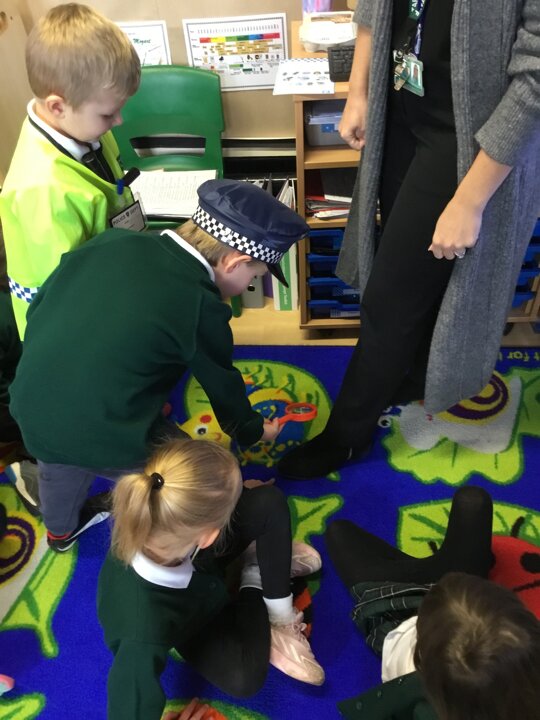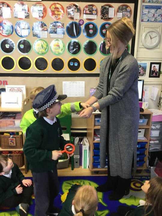 The EYFS Police team have been working hard to solve clues and find out who made a mess in the home corner earlier in the week. The clues led them to a suspect by the name of Mrs Smith! The police acted quickly, arrested the suspect and took her to the station for questionning!