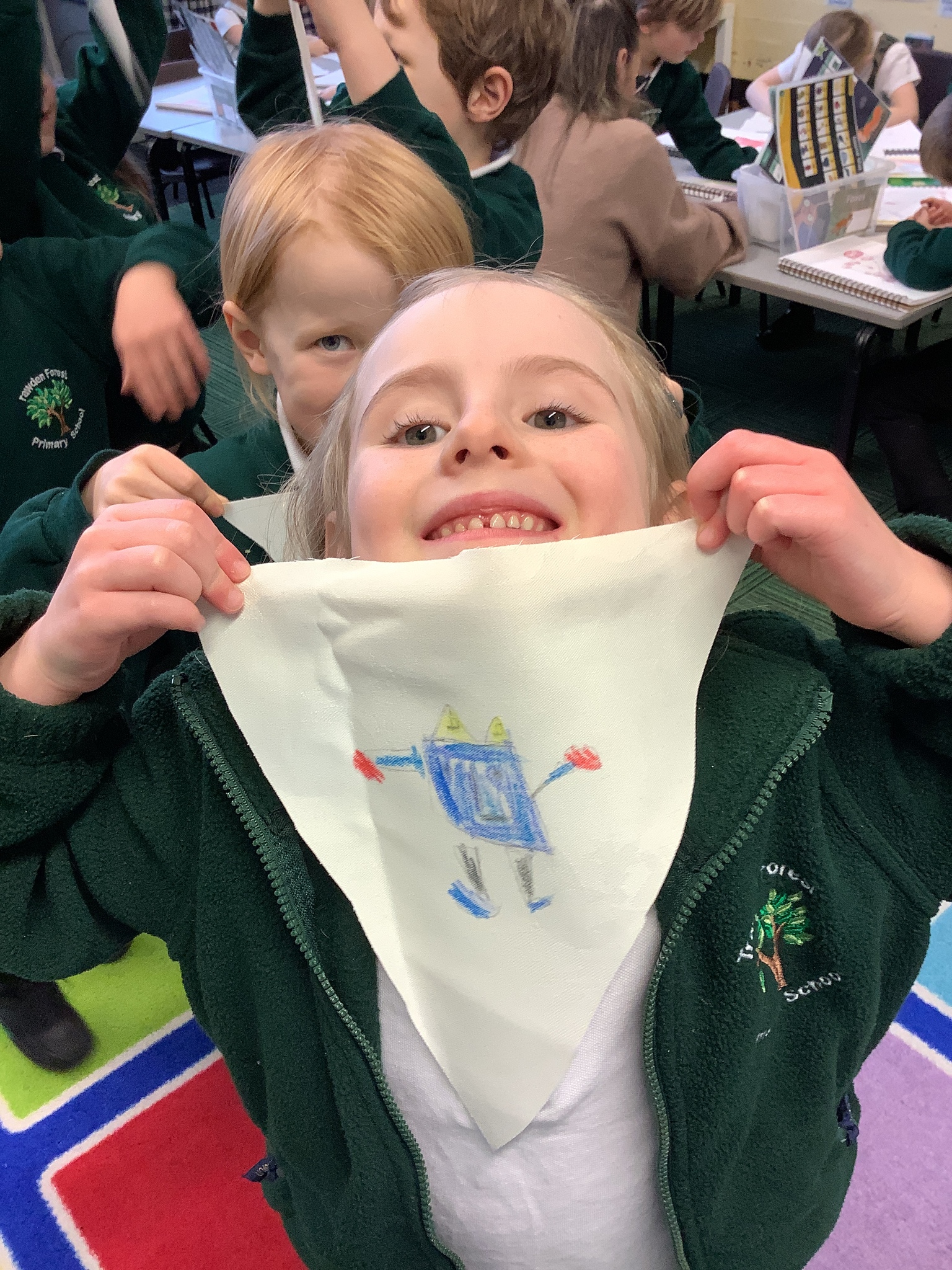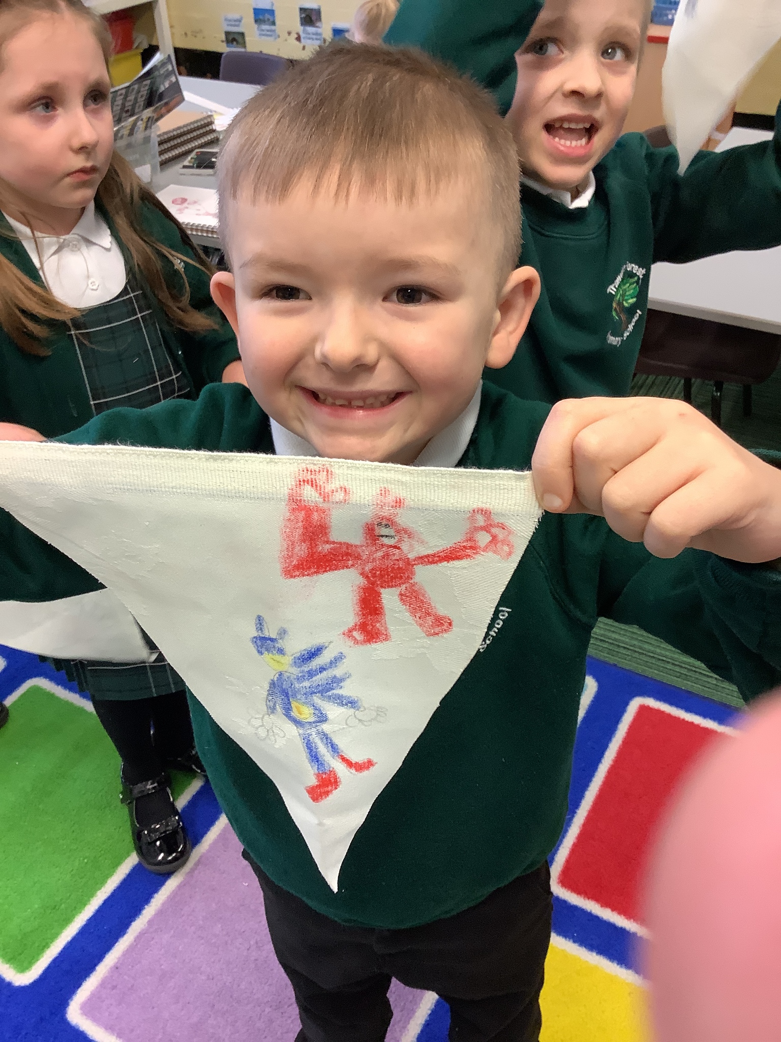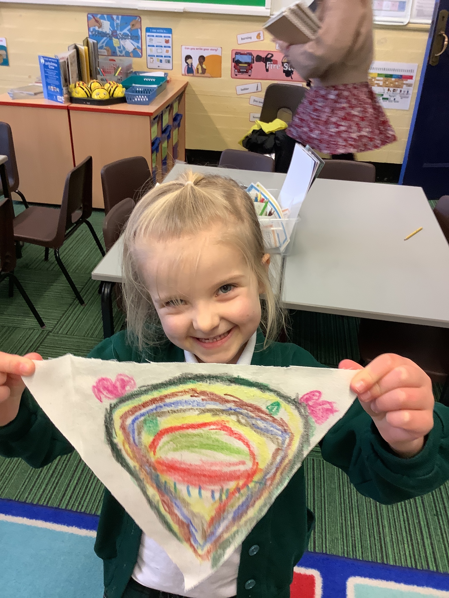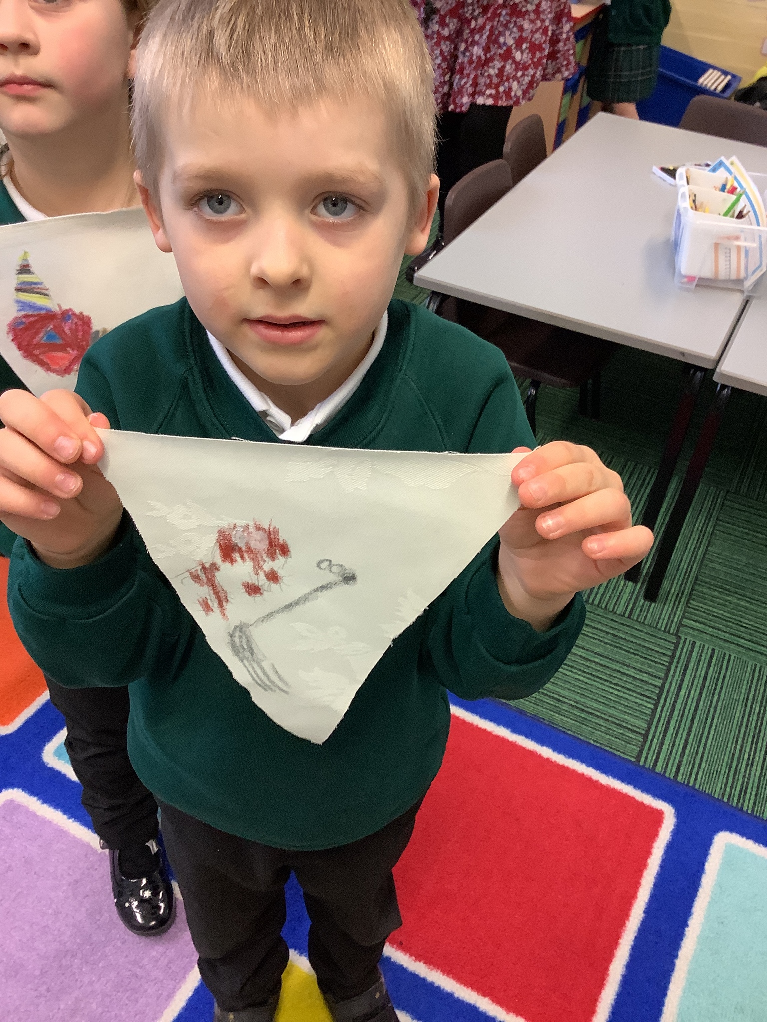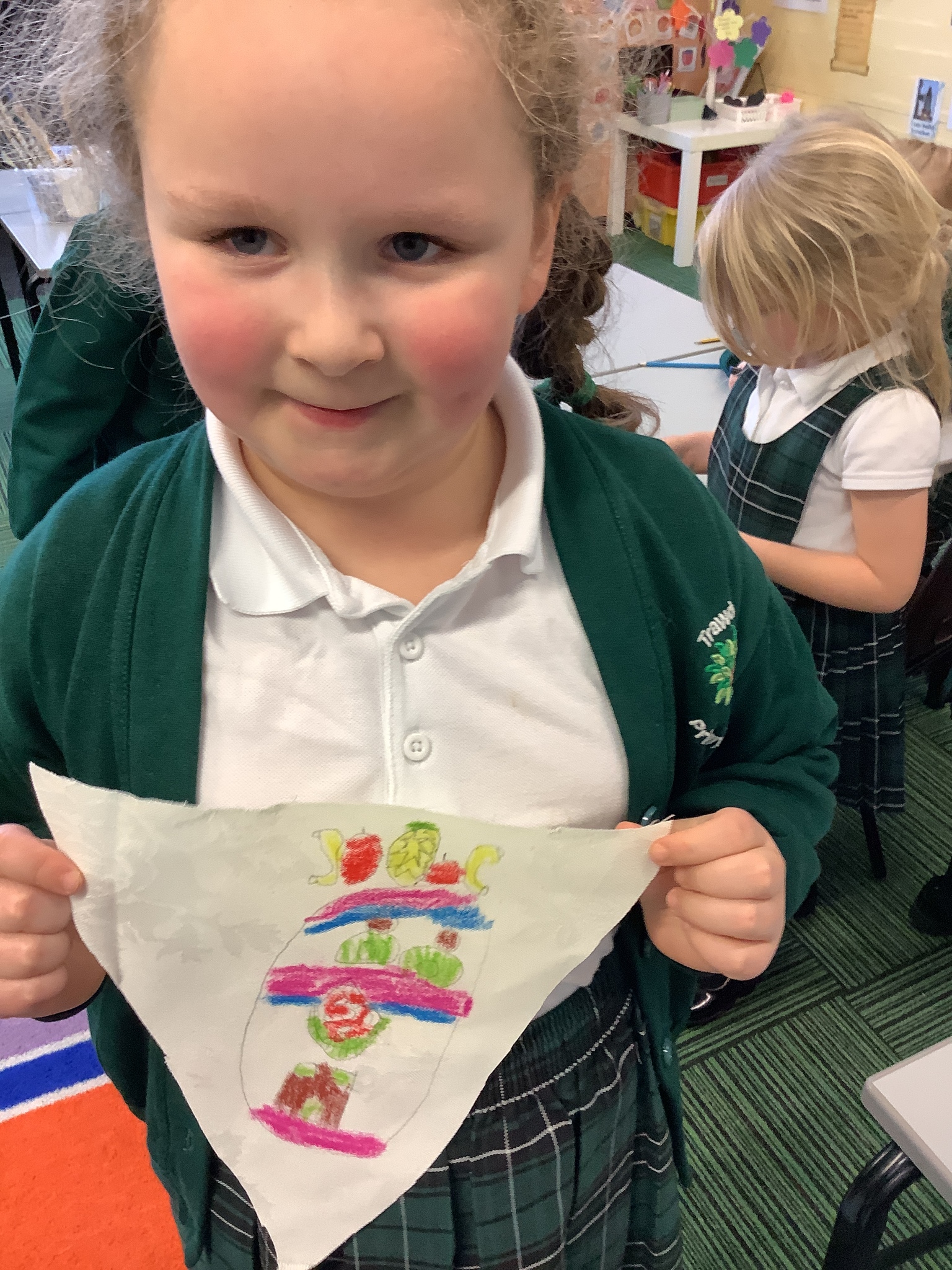 In our Art topic on fabrics, this week we looked at how to use fabric crayons to draw designs straight onto a piece of fabric.