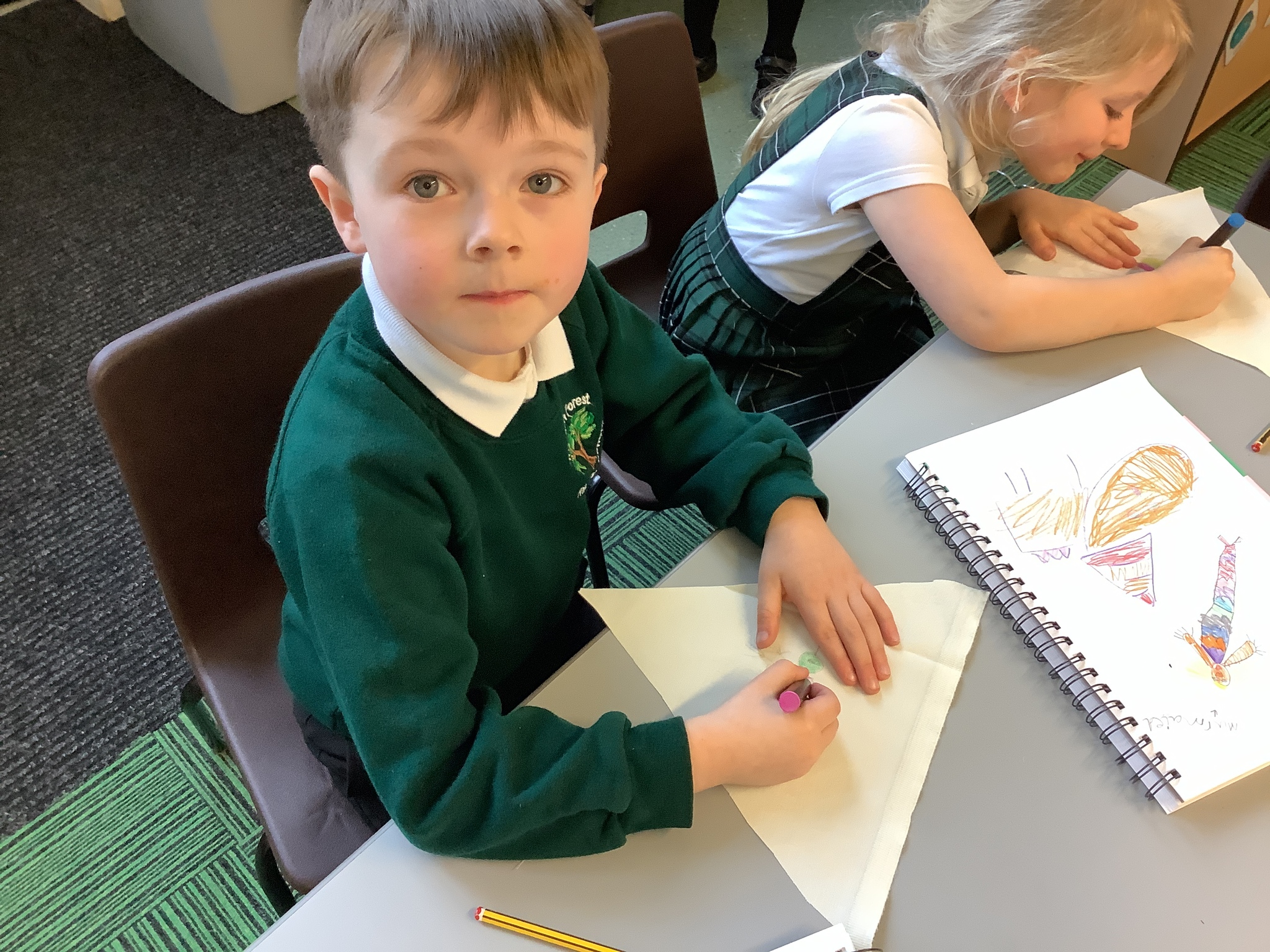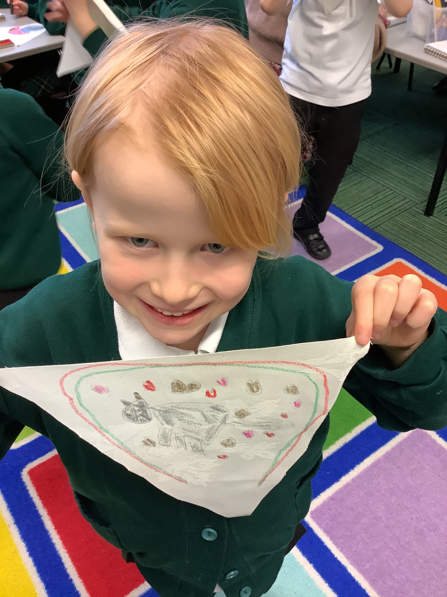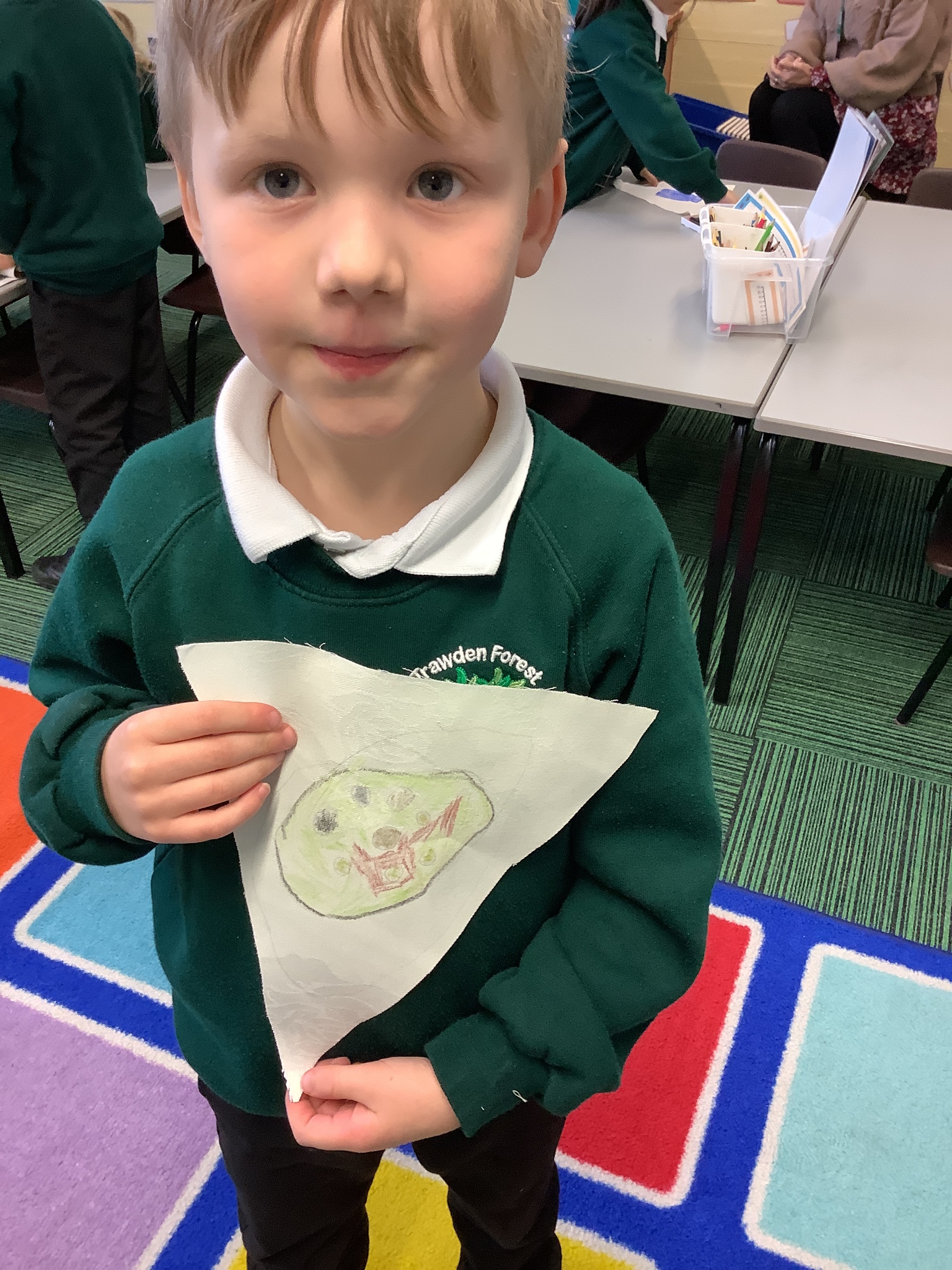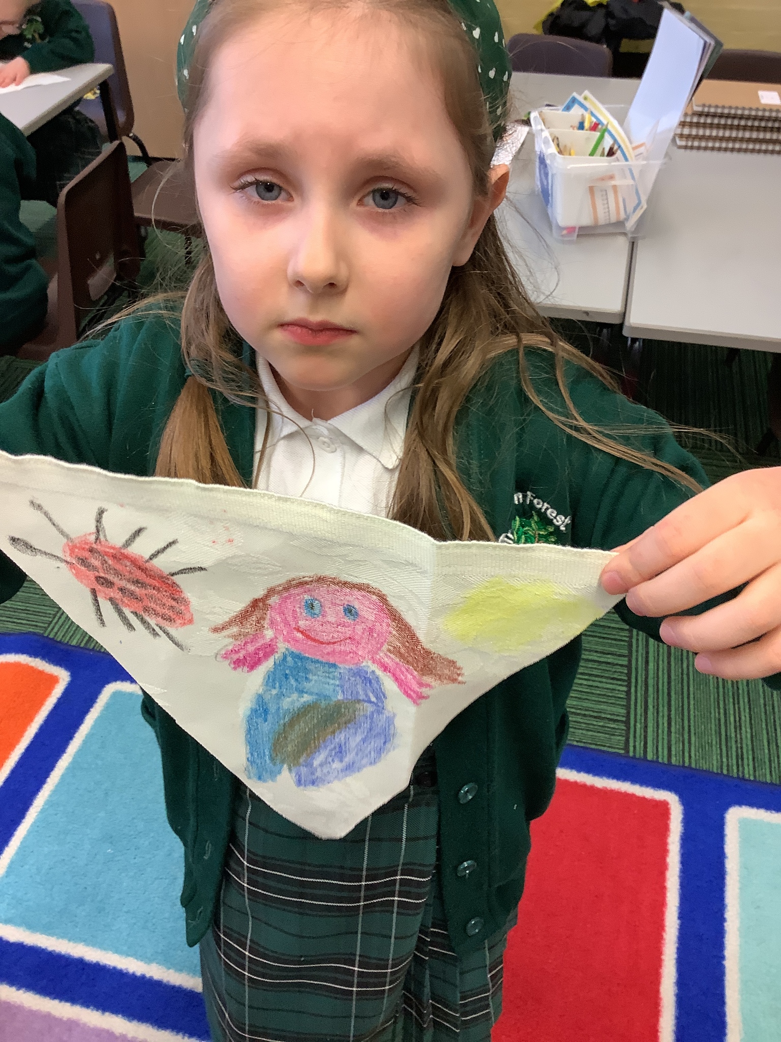 In our Art topic on fabrics, this week we looked at how to use fabric crayons to draw designs straight onto a piece of fabric.