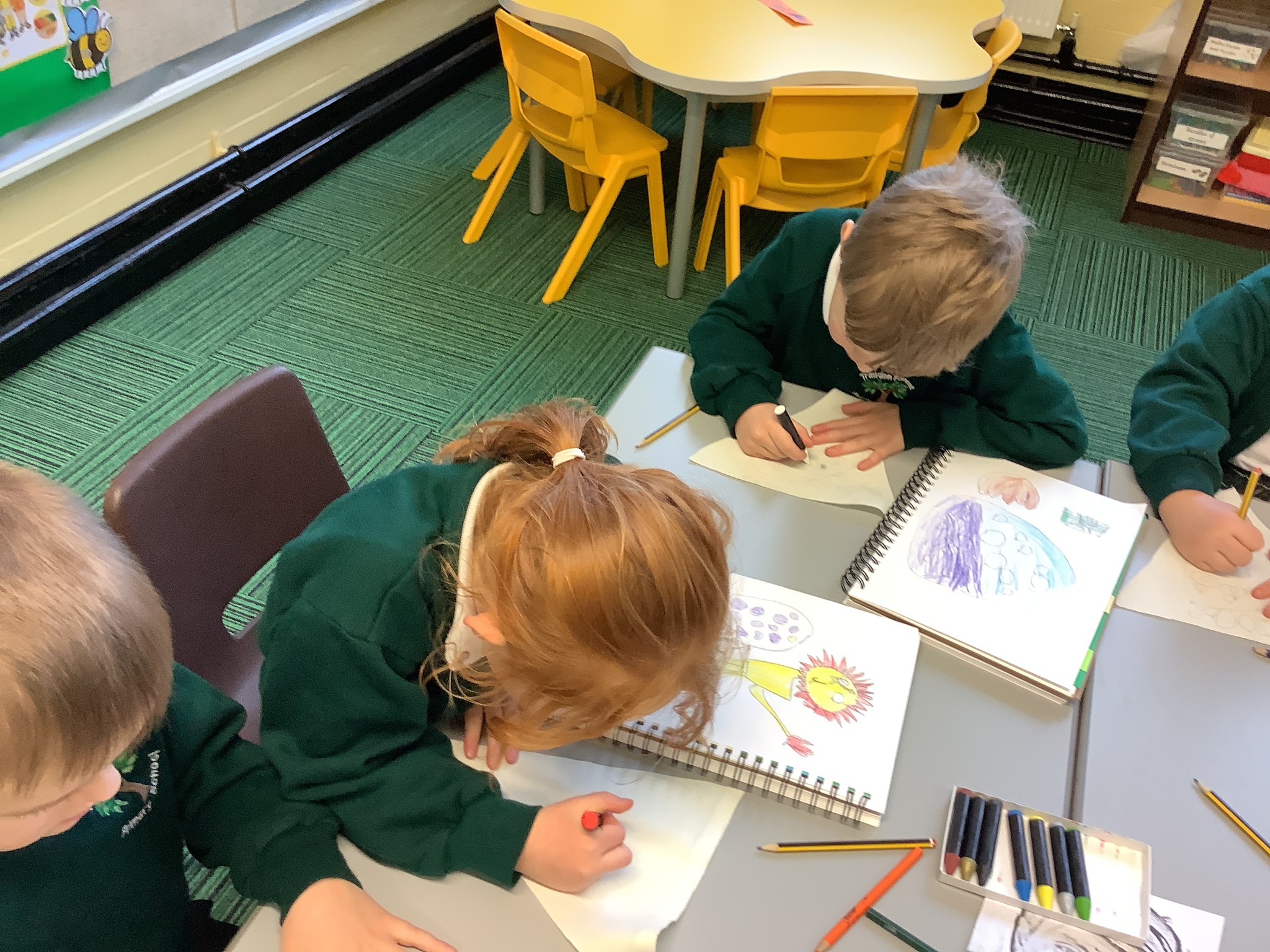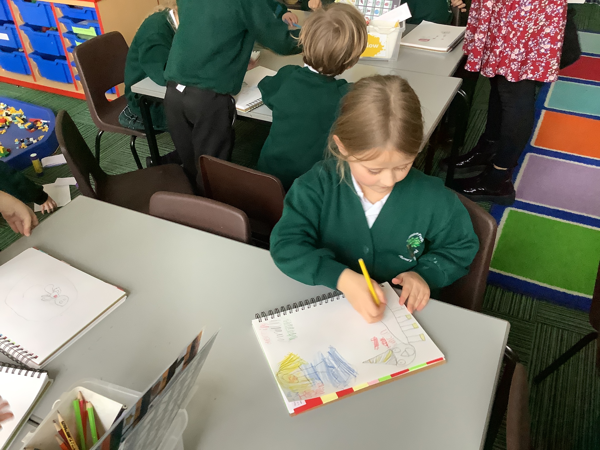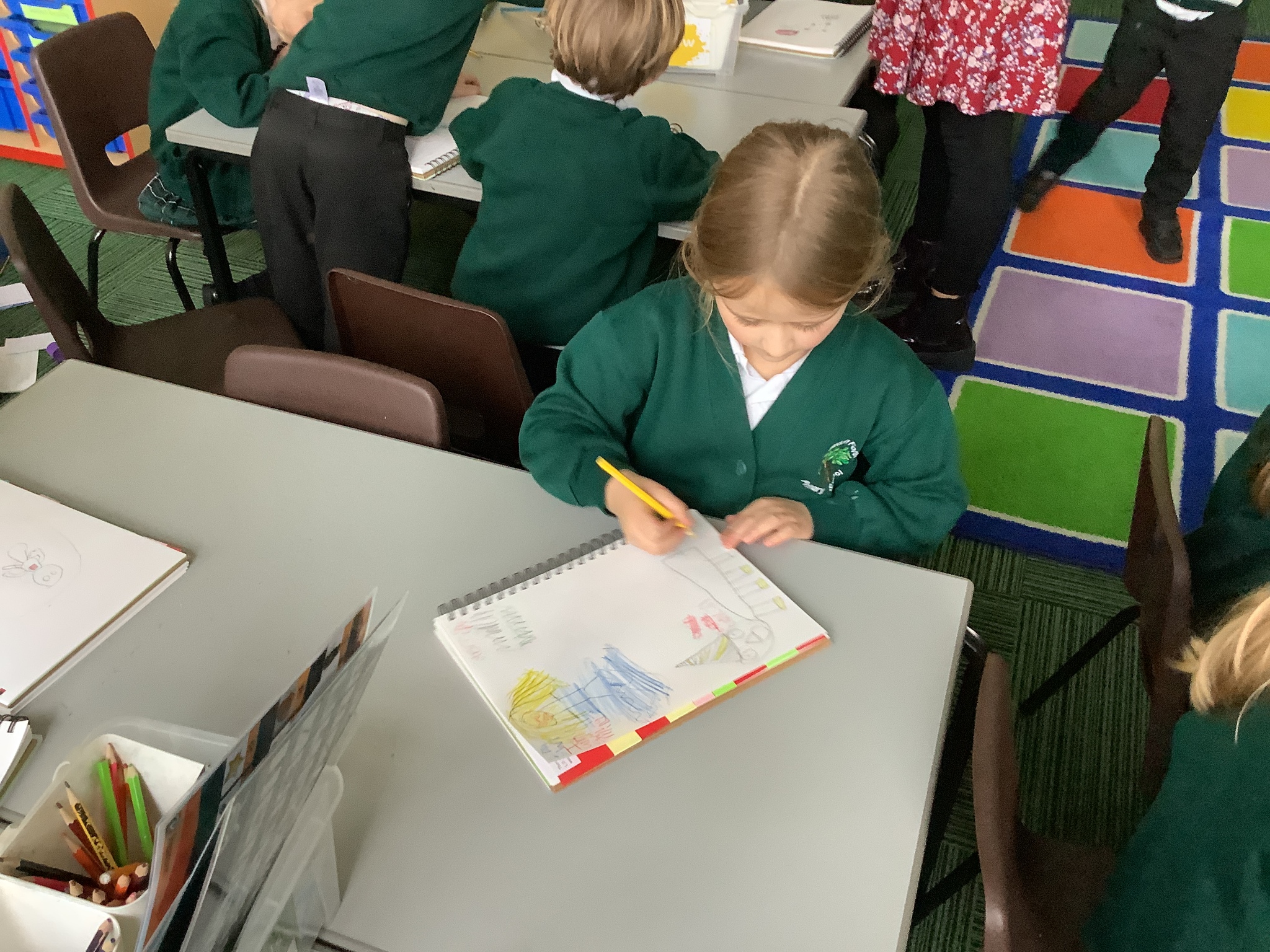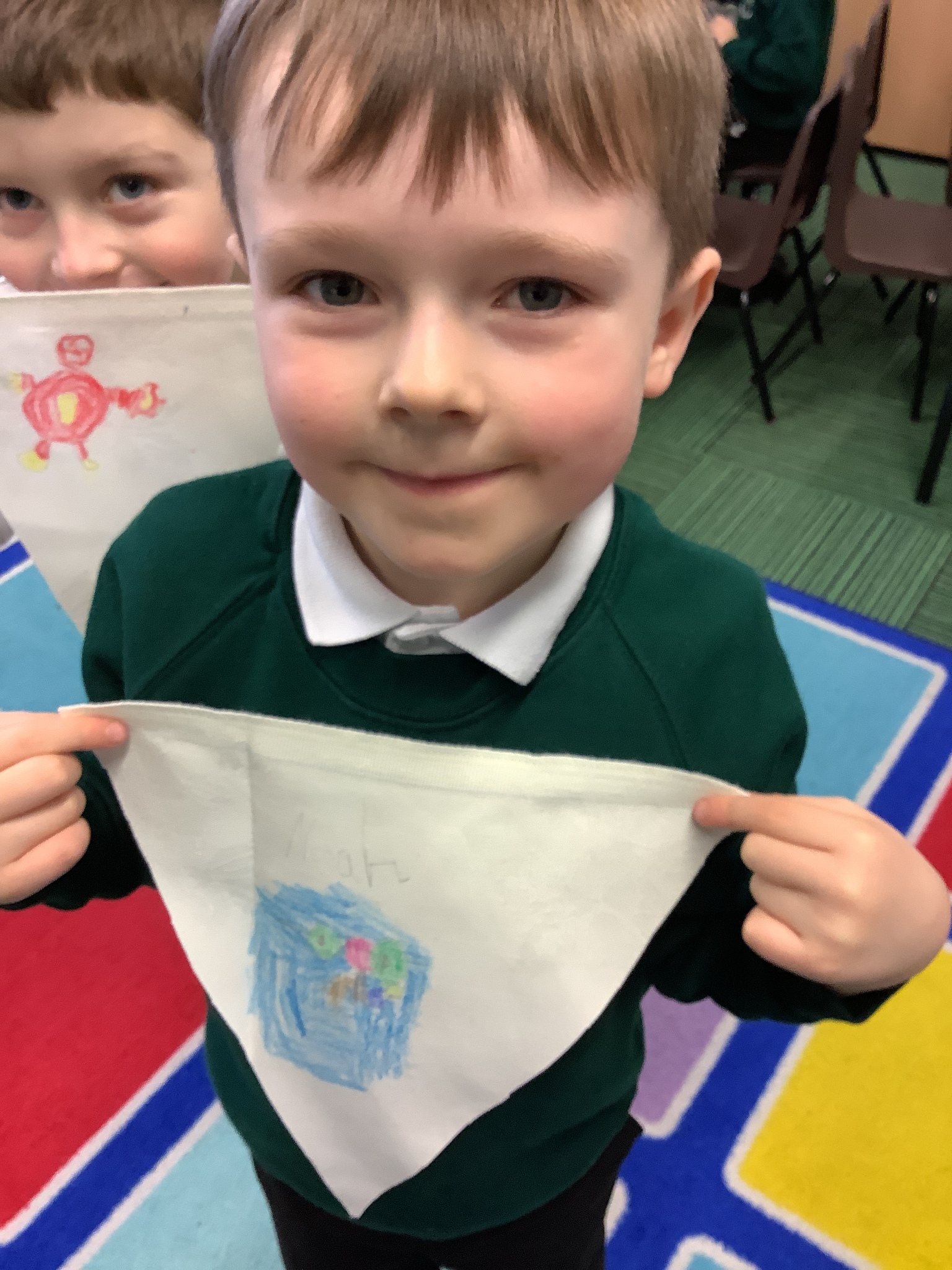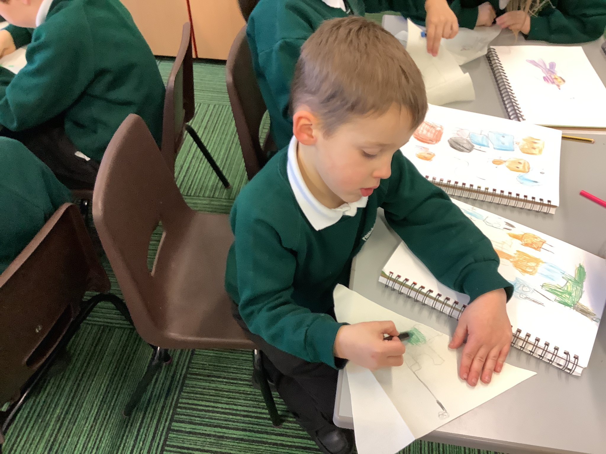 In our Art topic on fabrics, this week we looked at how to use fabric crayons to draw designs straight onto a piece of fabric.