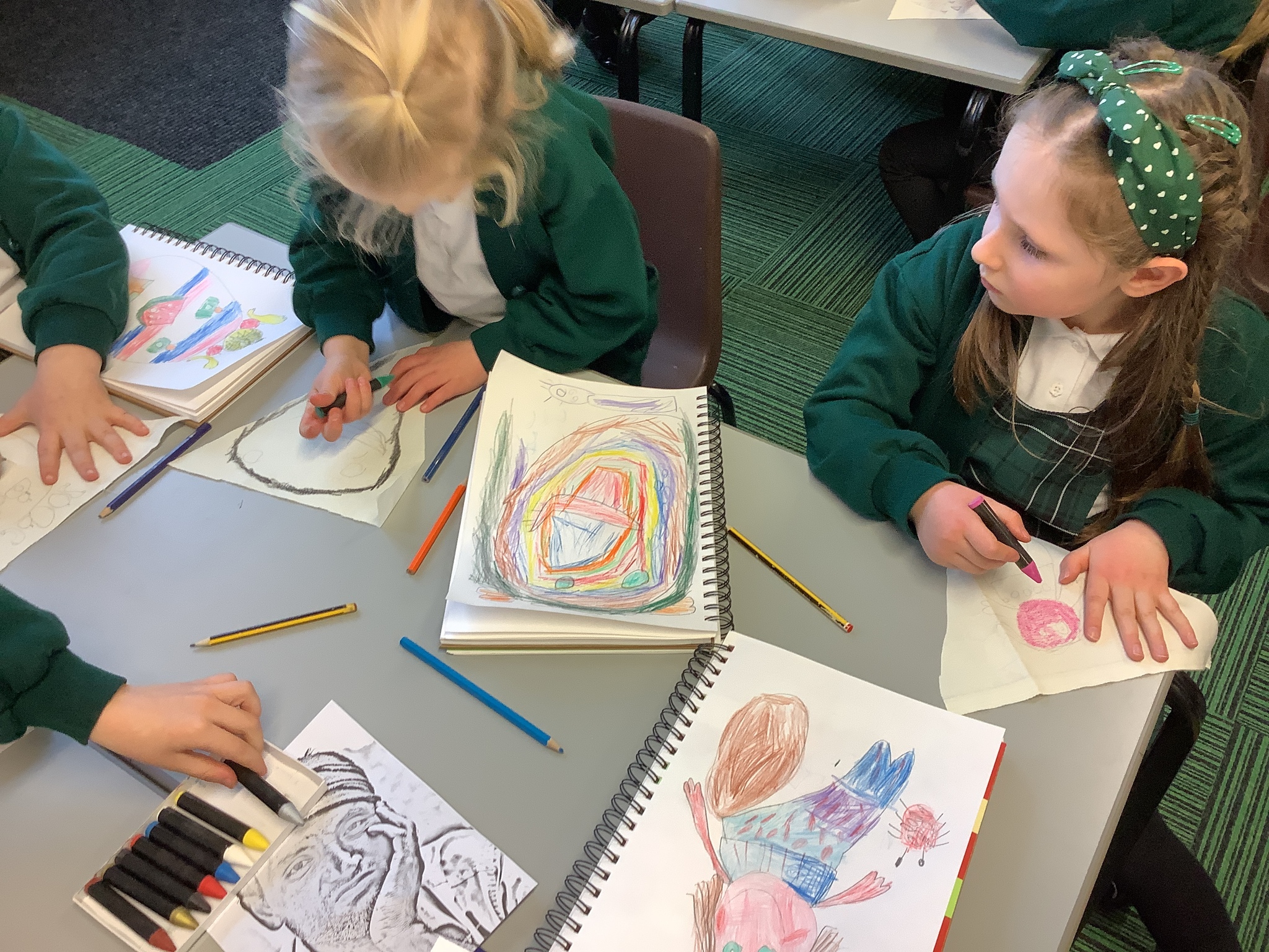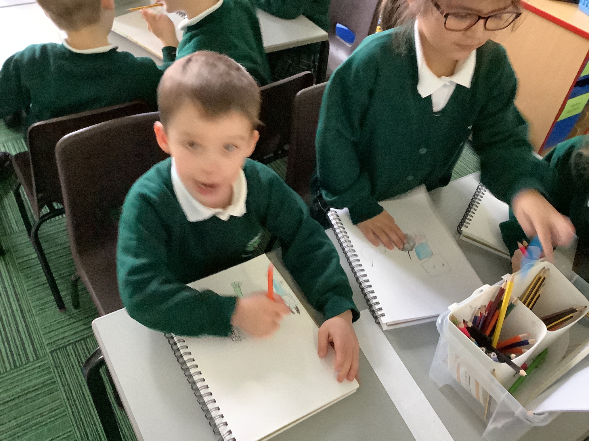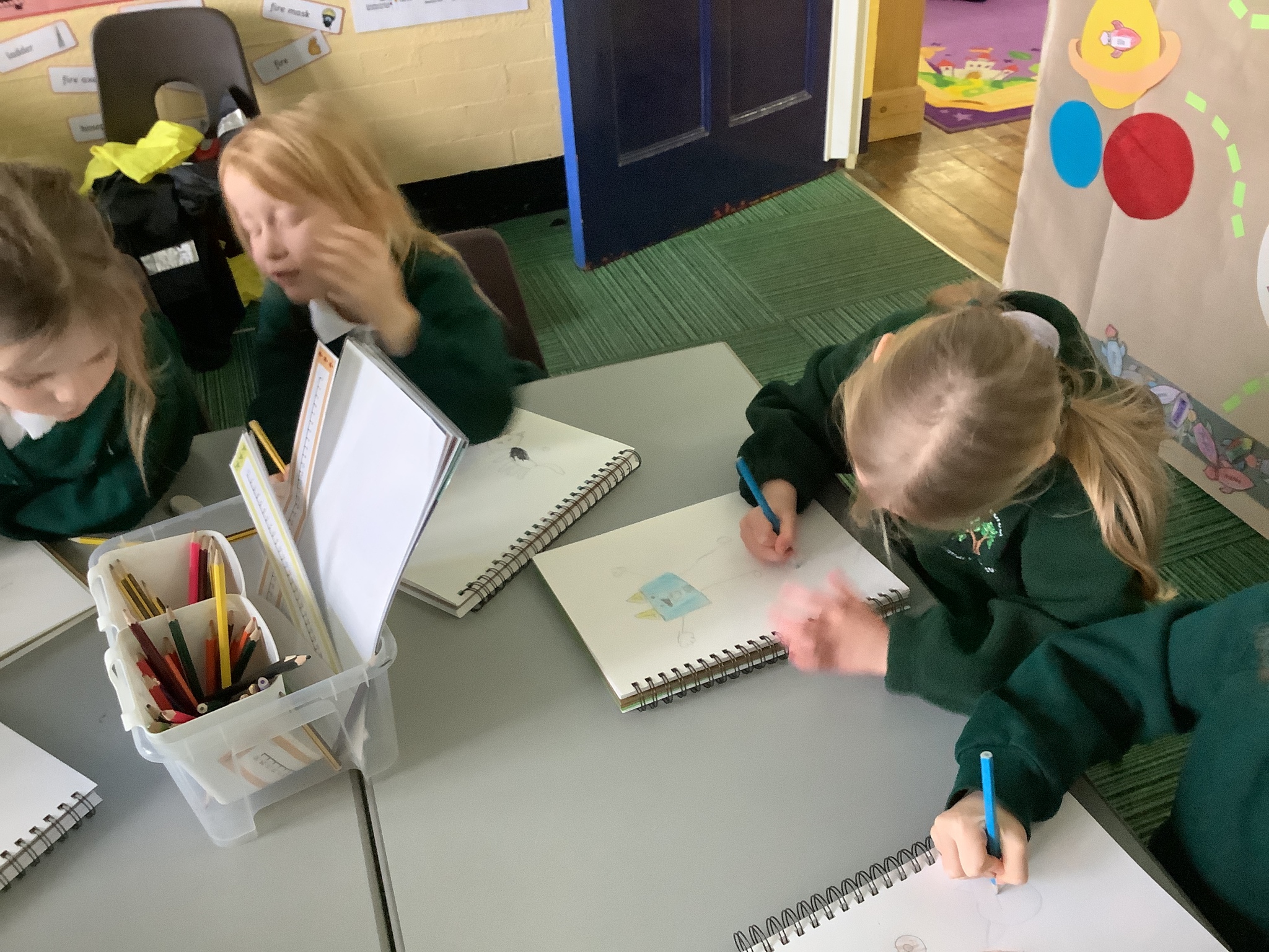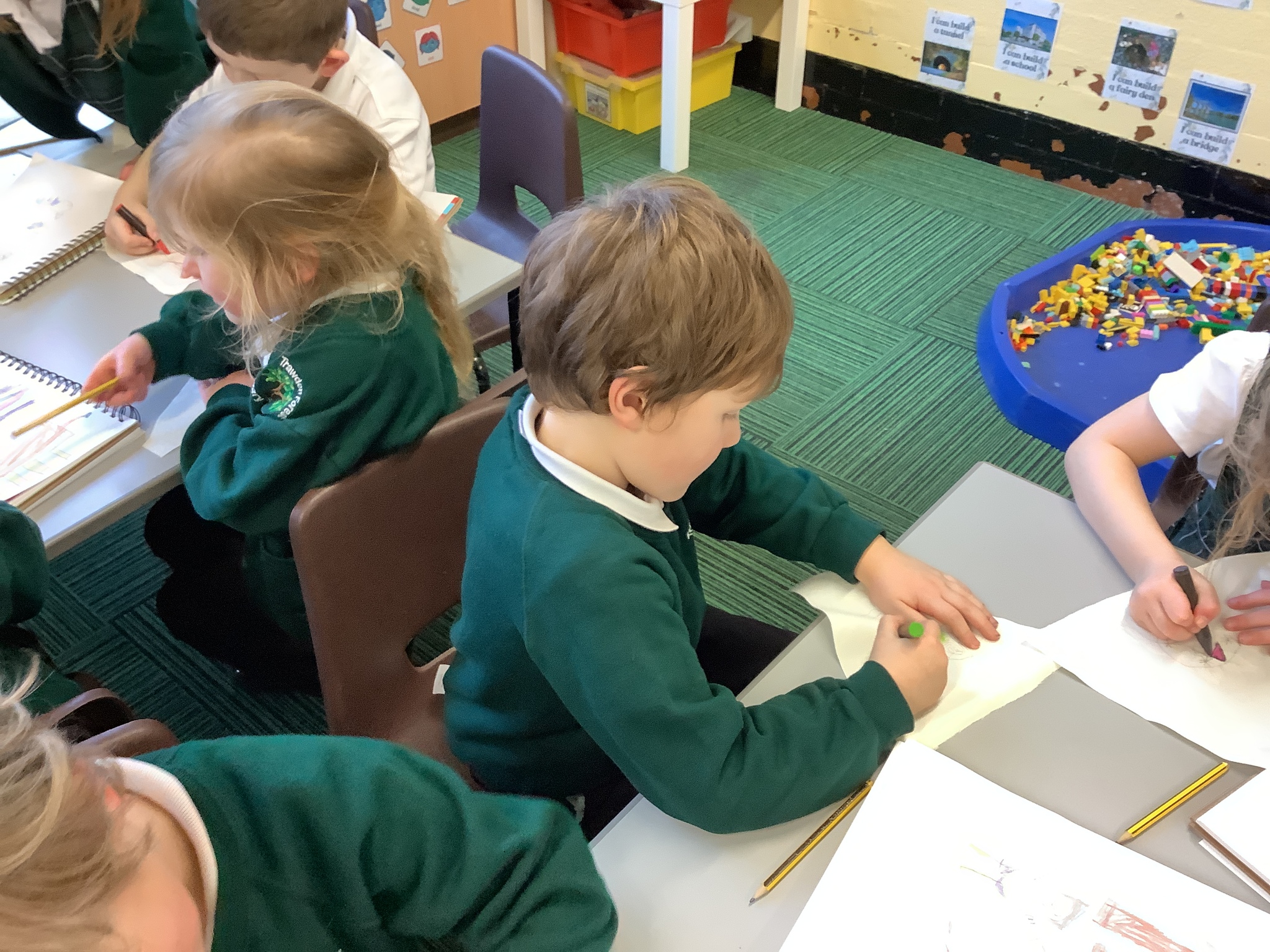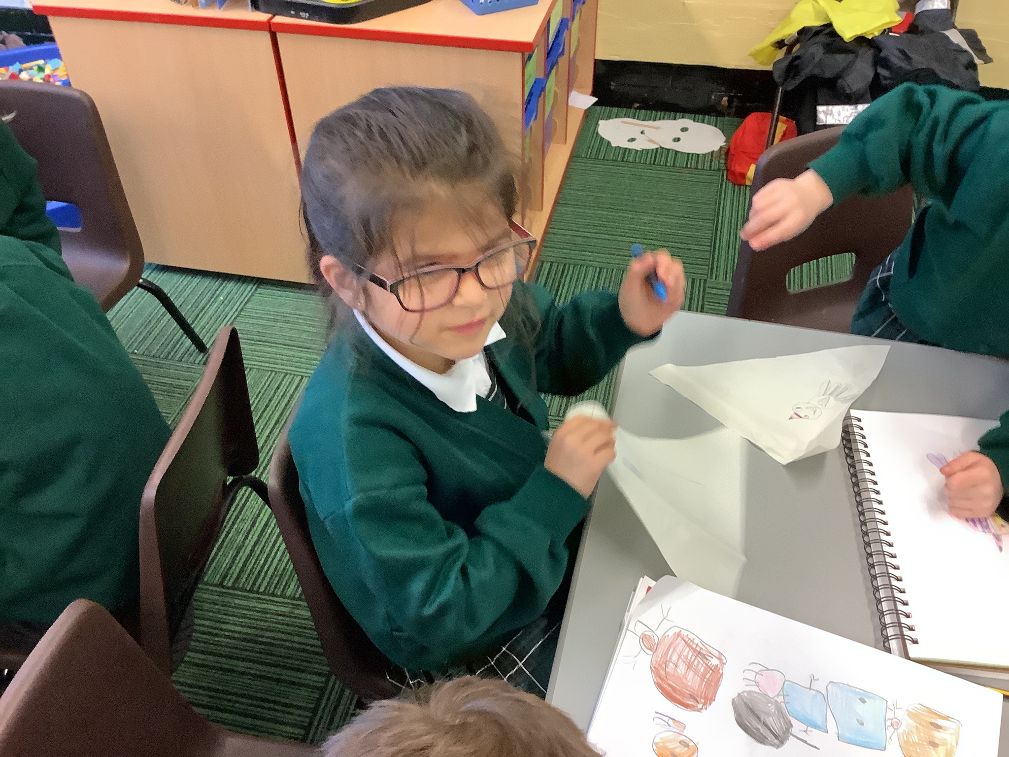 In our Art topic on fabrics, this week we looked at how to use fabric crayons to draw designs straight onto a piece of fabric.