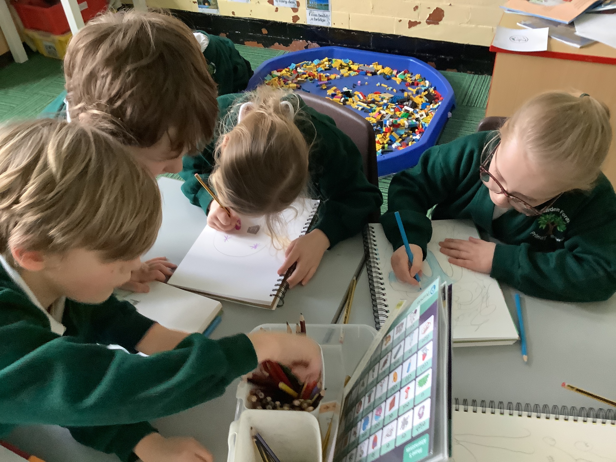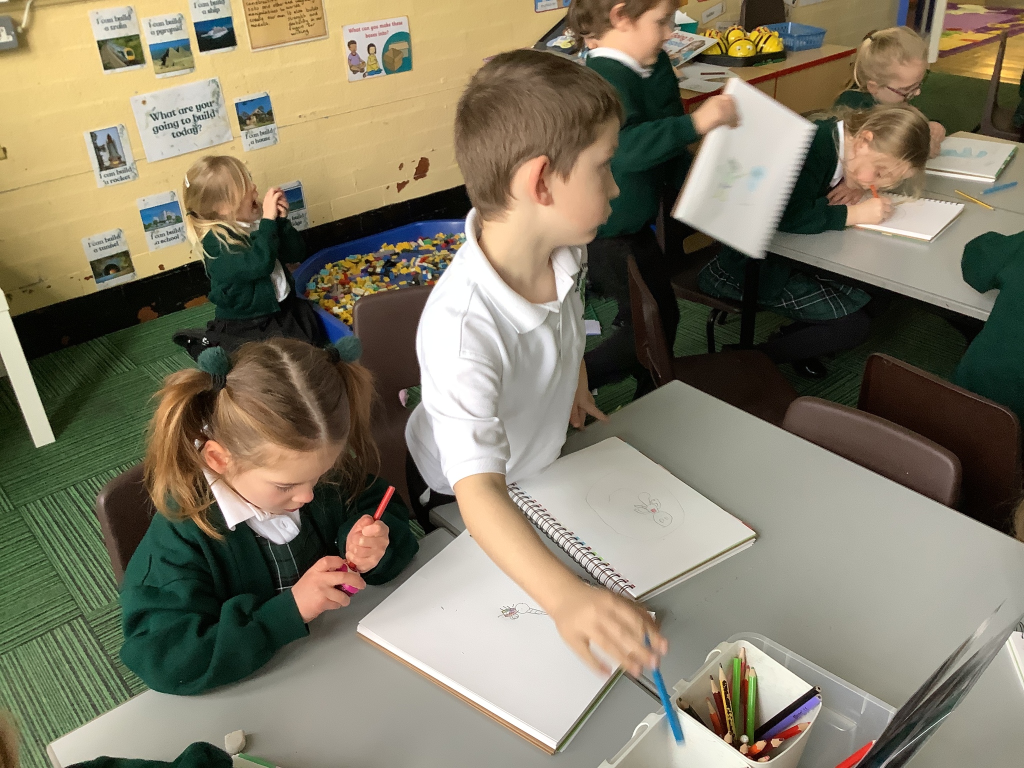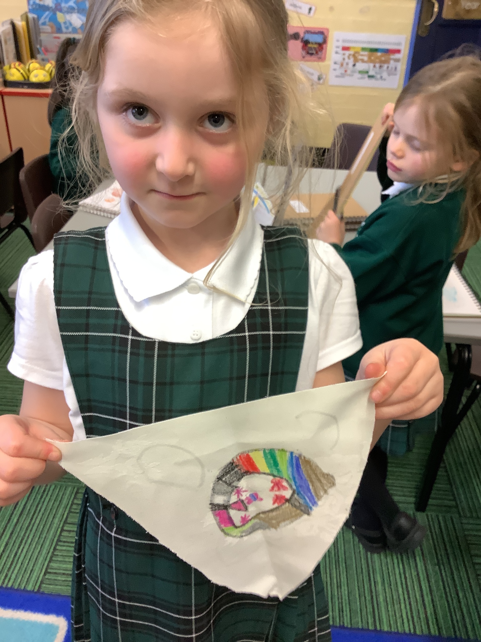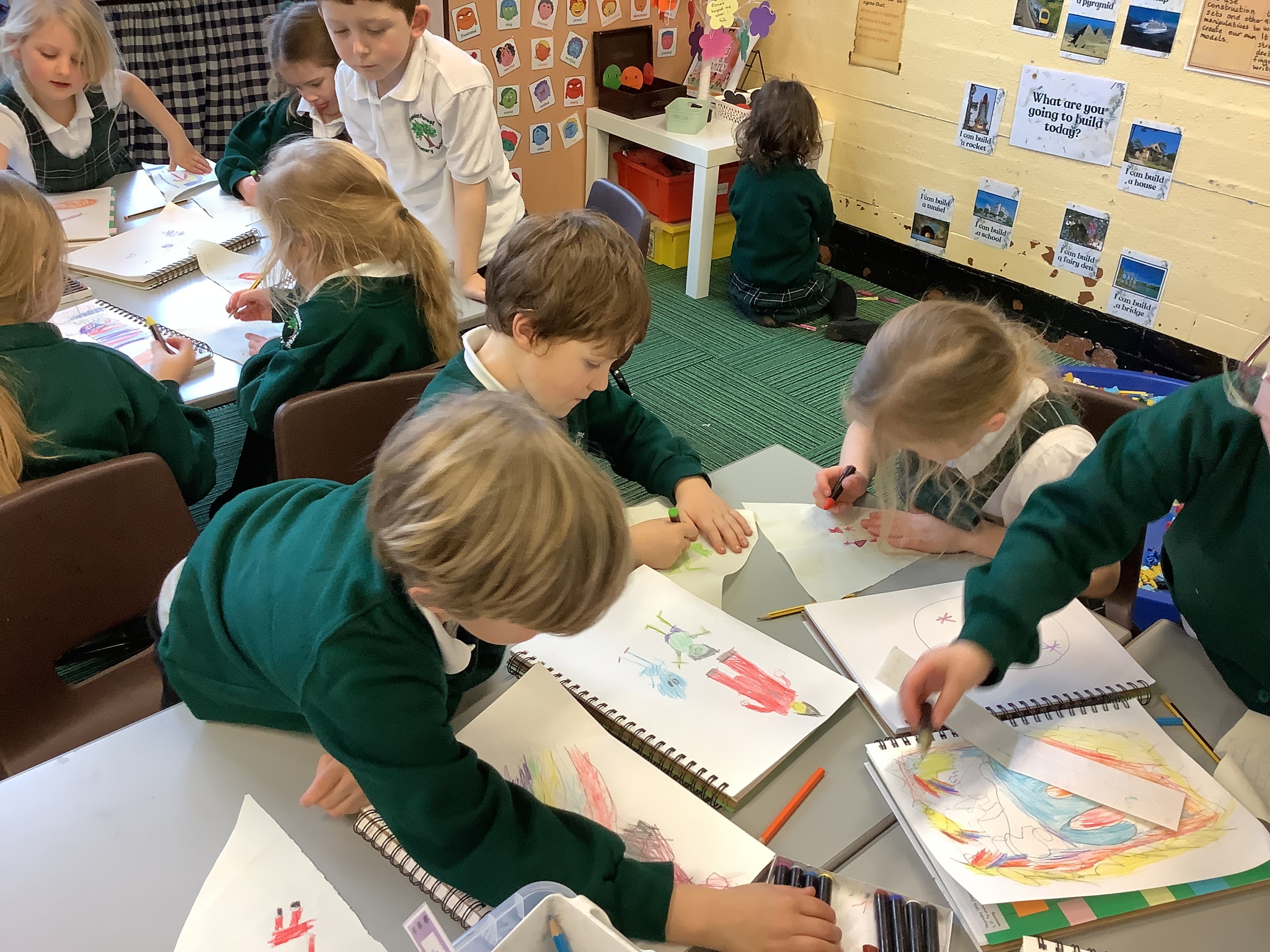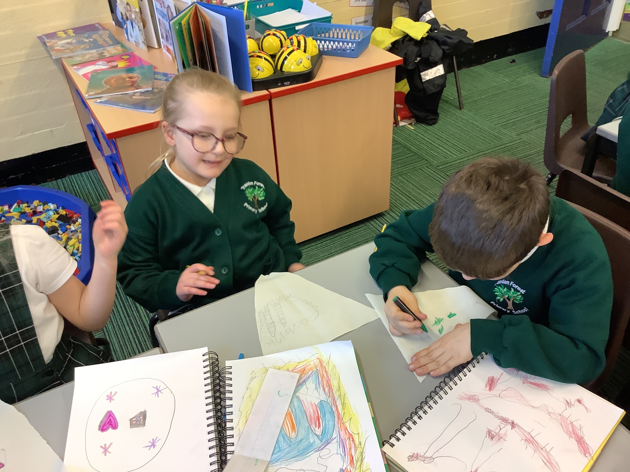 In our Art topic on fabrics, this week we looked at how to use fabric crayons to draw designs straight onto a piece of fabric.