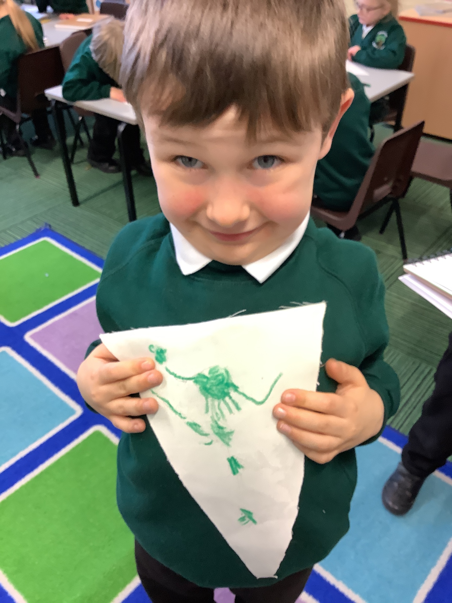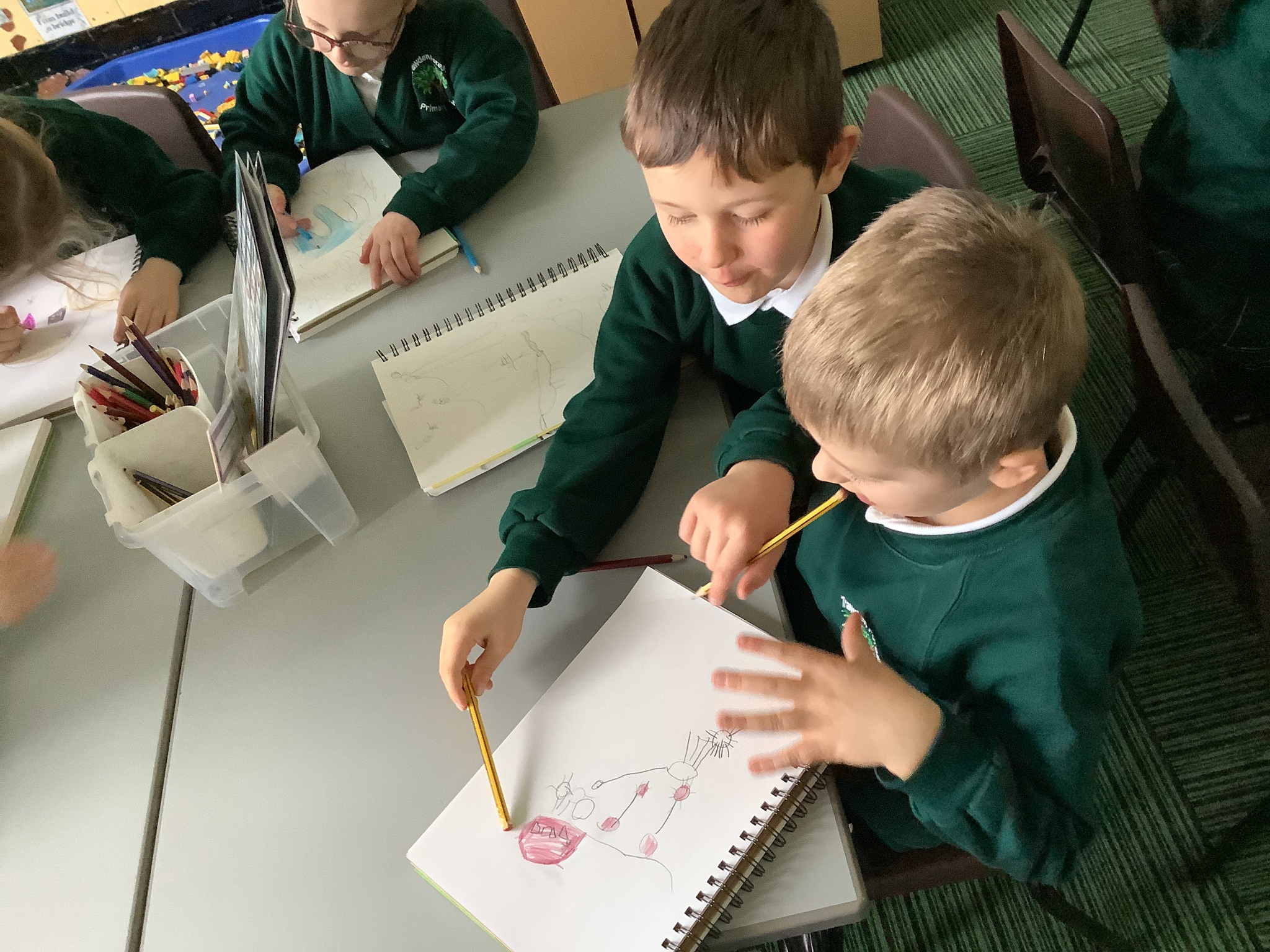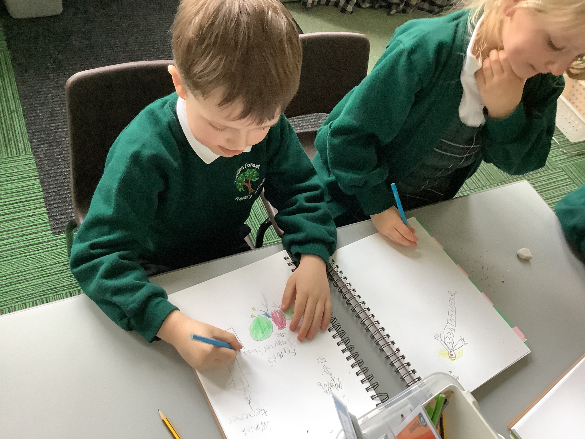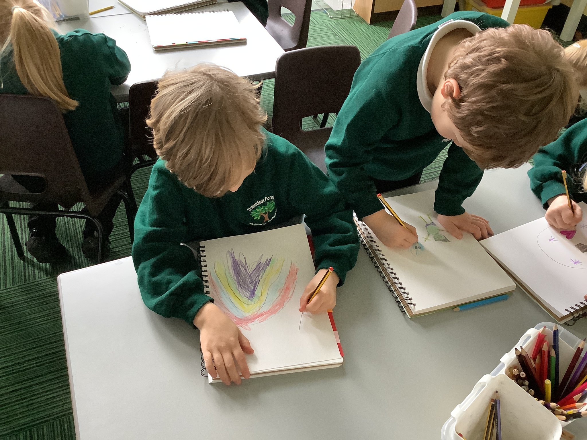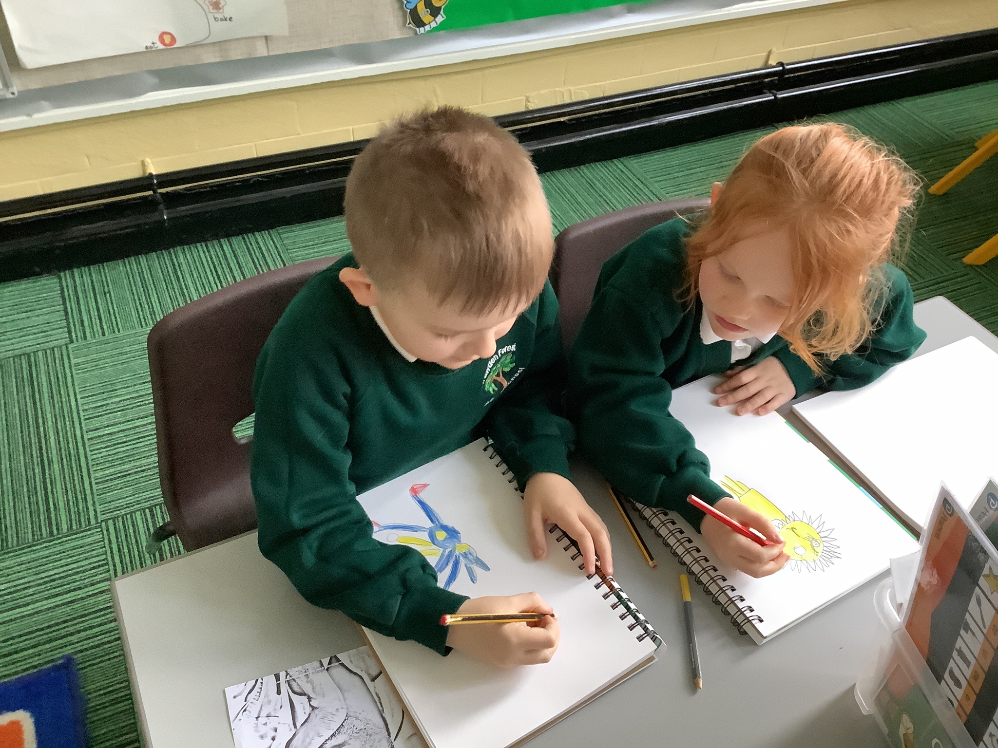 In our Art topic on fabrics, this week we looked at how to use fabric crayons to draw designs straight onto a piece of fabric.