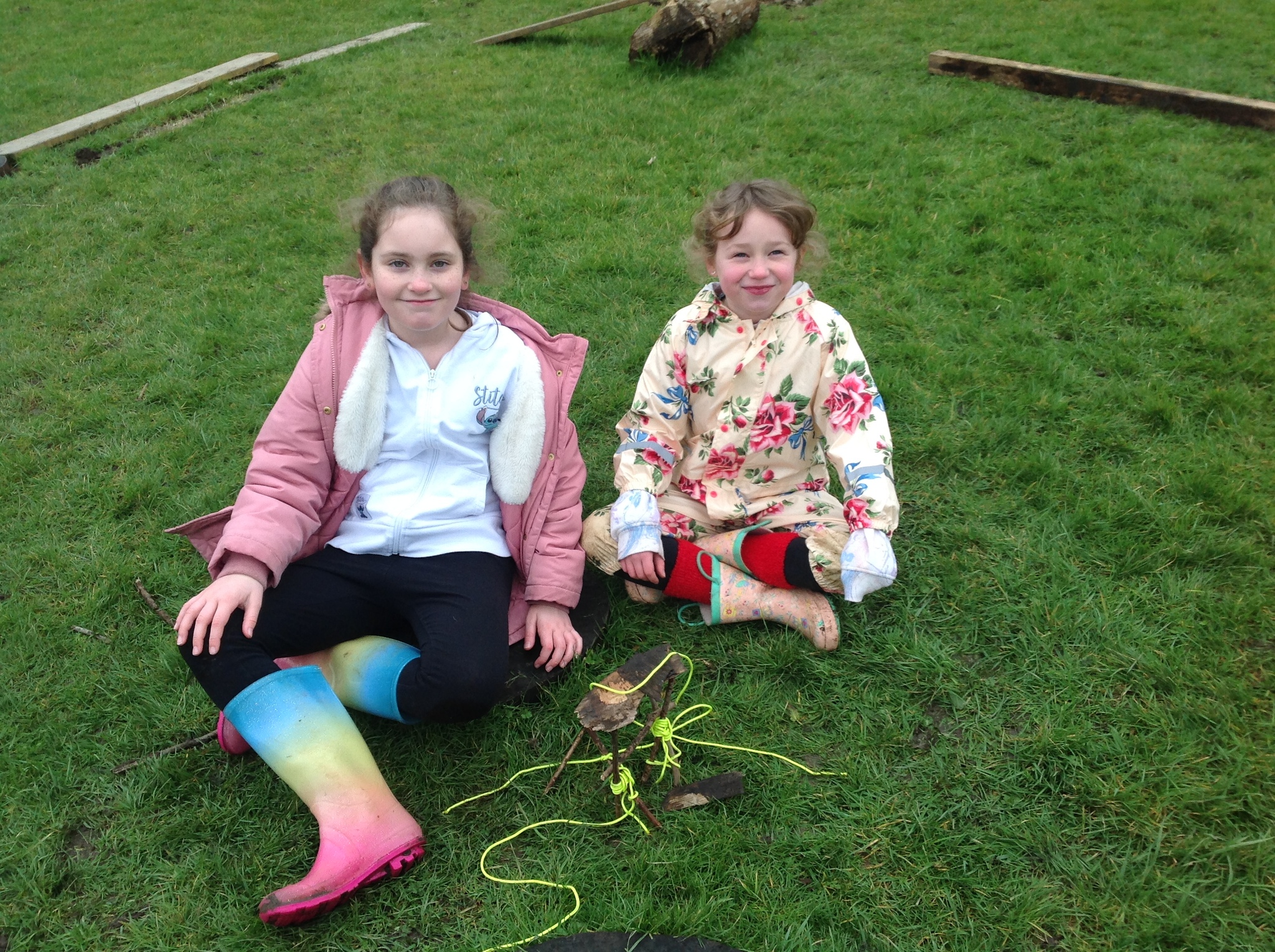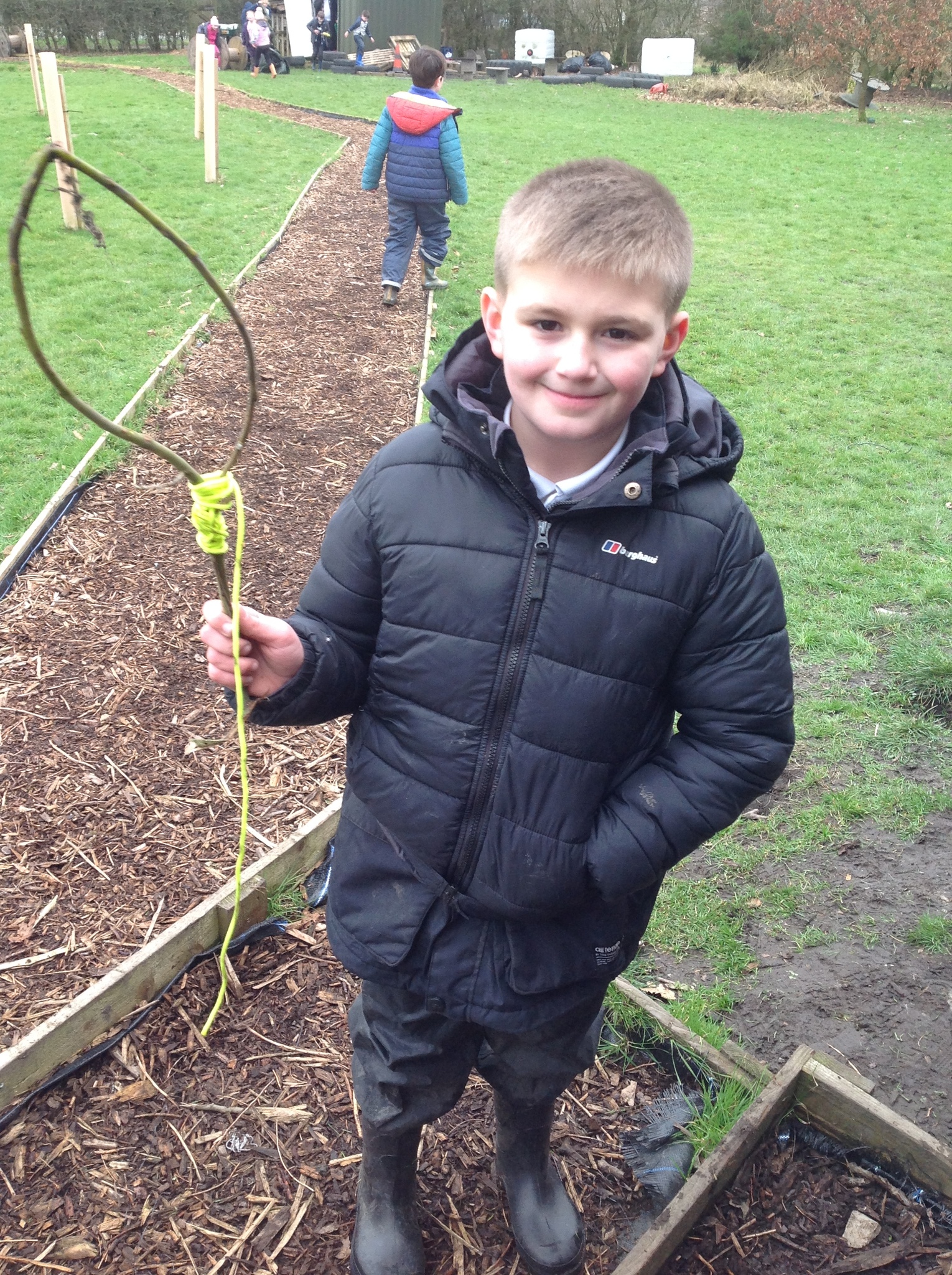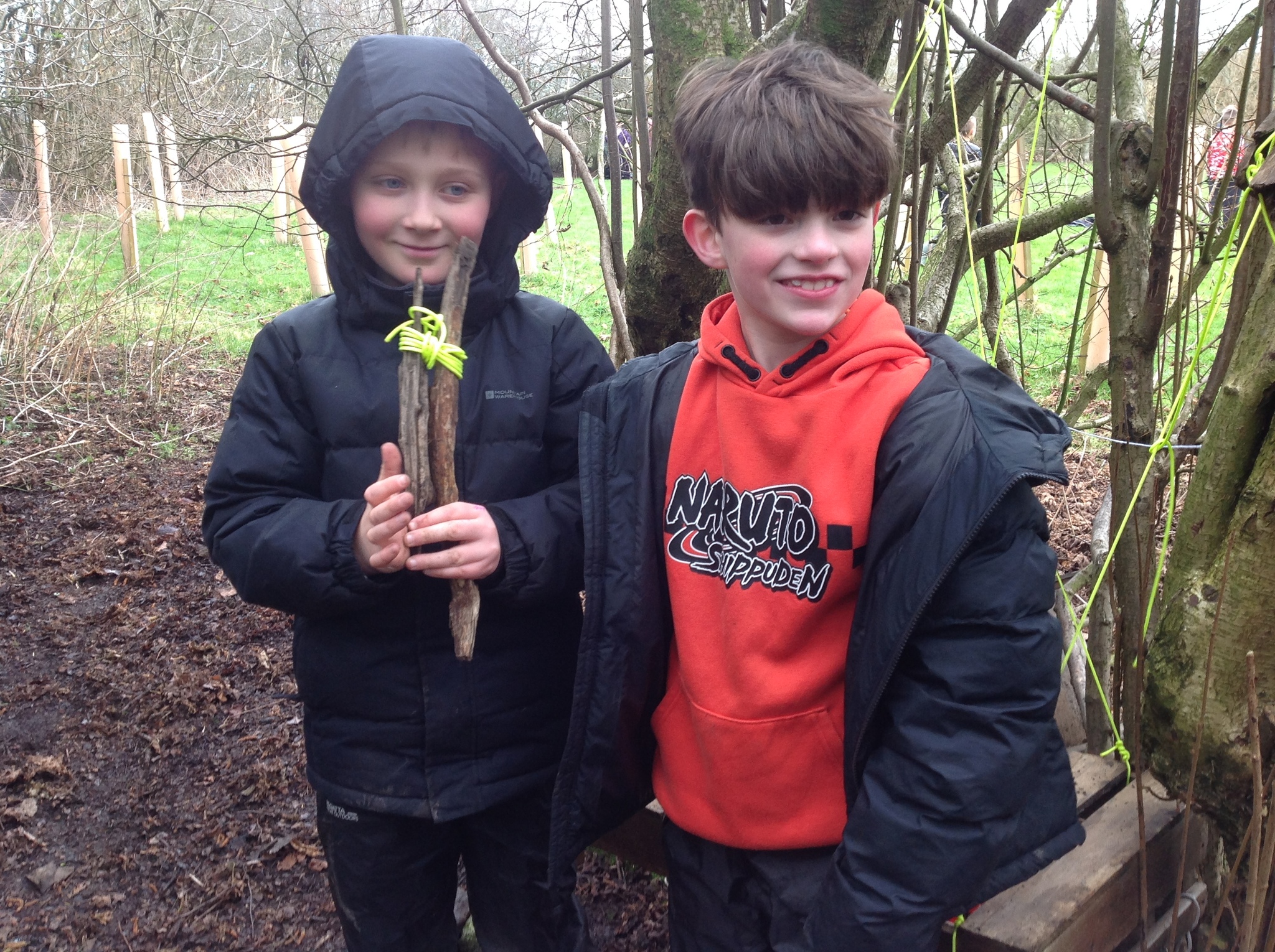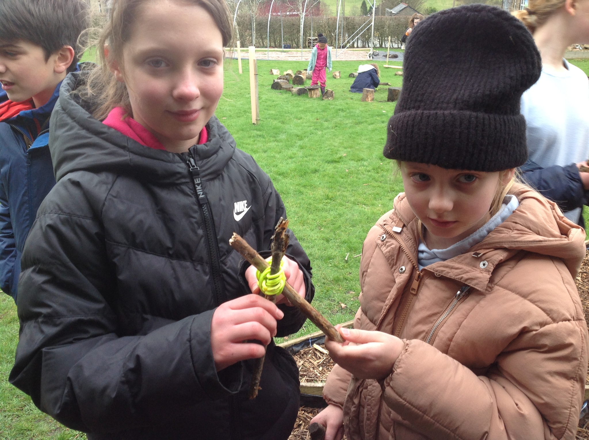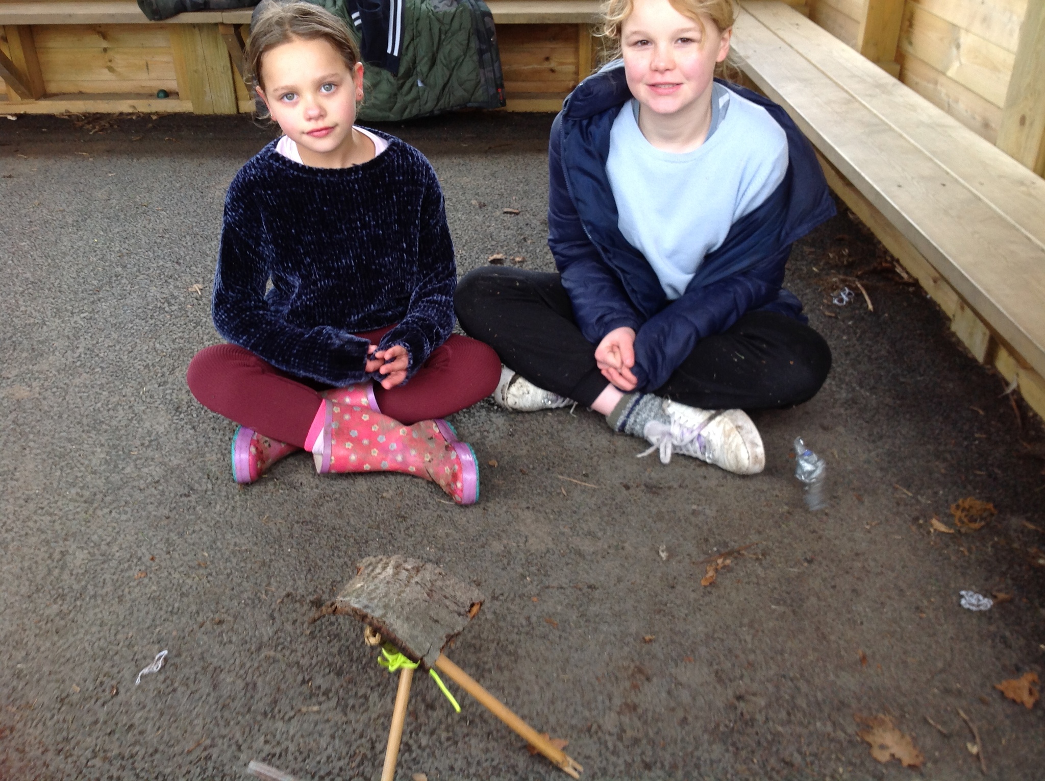 Today, Years 3, 4 and 6 all joined together for a Forest School session. As part of this, they worked in mixed year teams to focus on their shear lashing skills. They had to use what they had learnt to join pieces of wood together to first make a table and then something using their own imagaination. They worked very well together and were able to explain what they had made in detail.