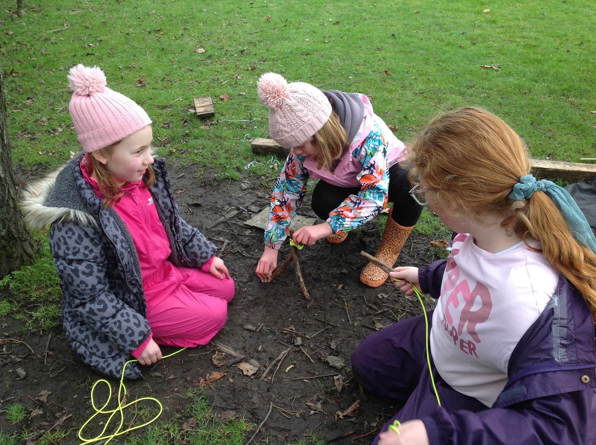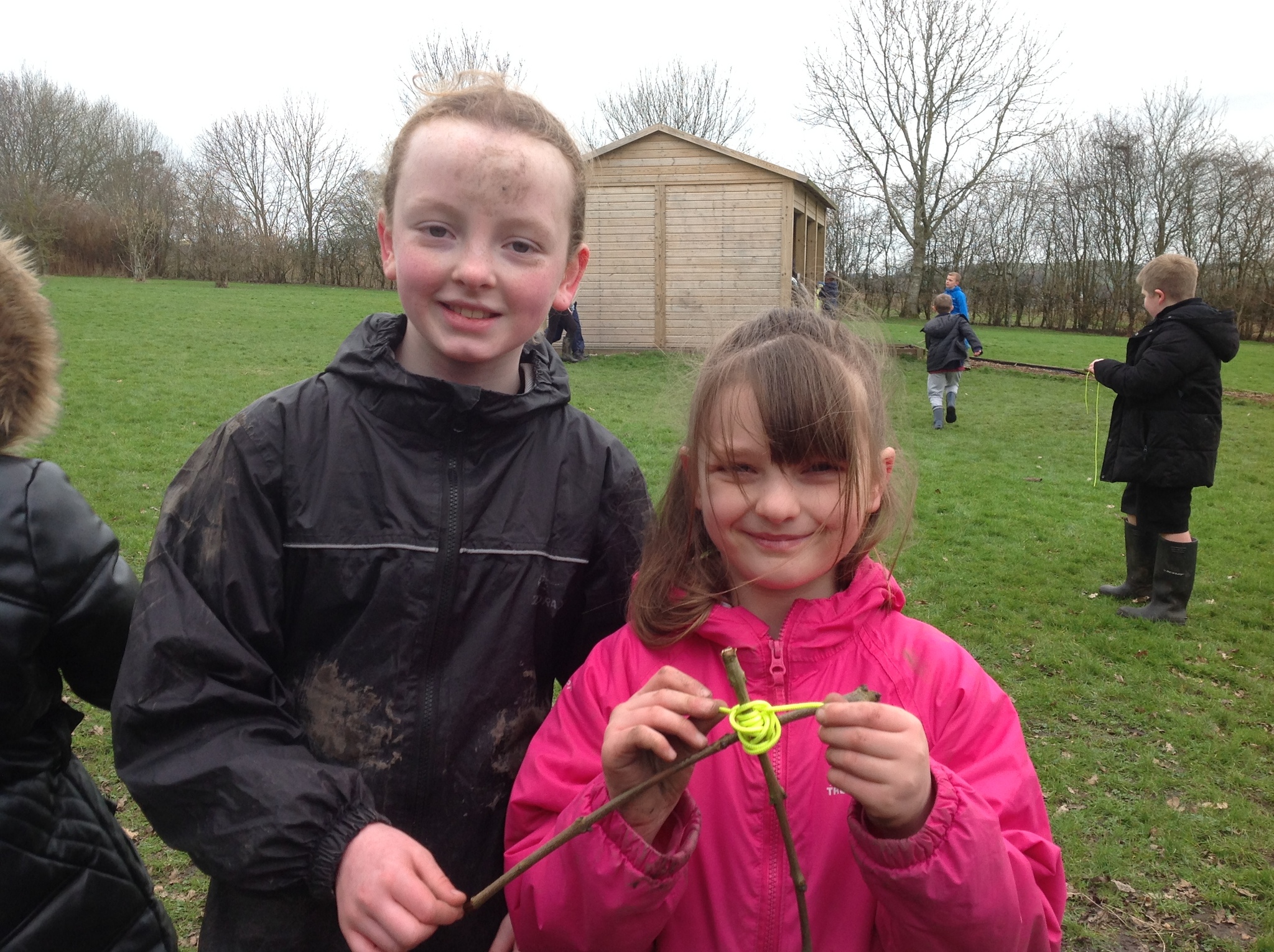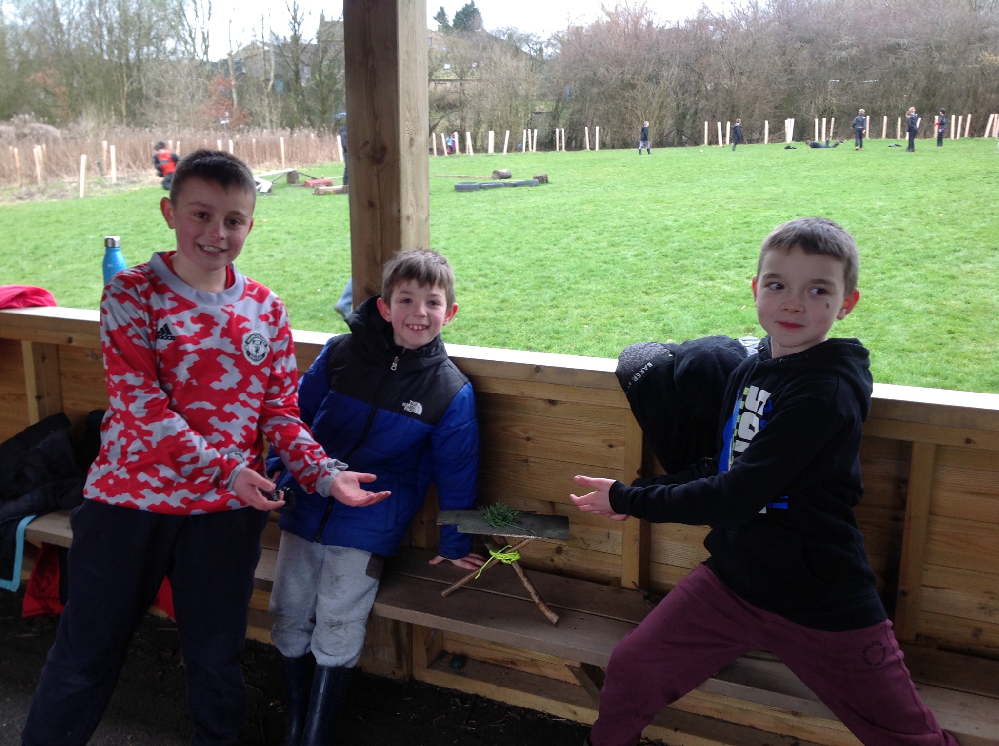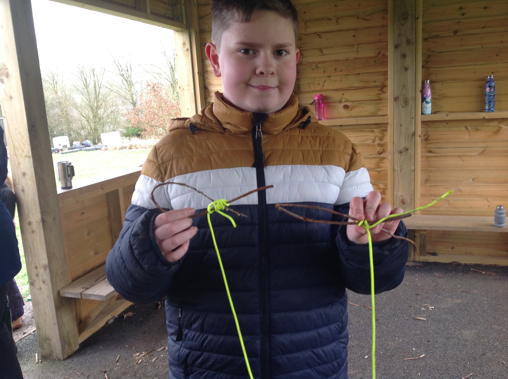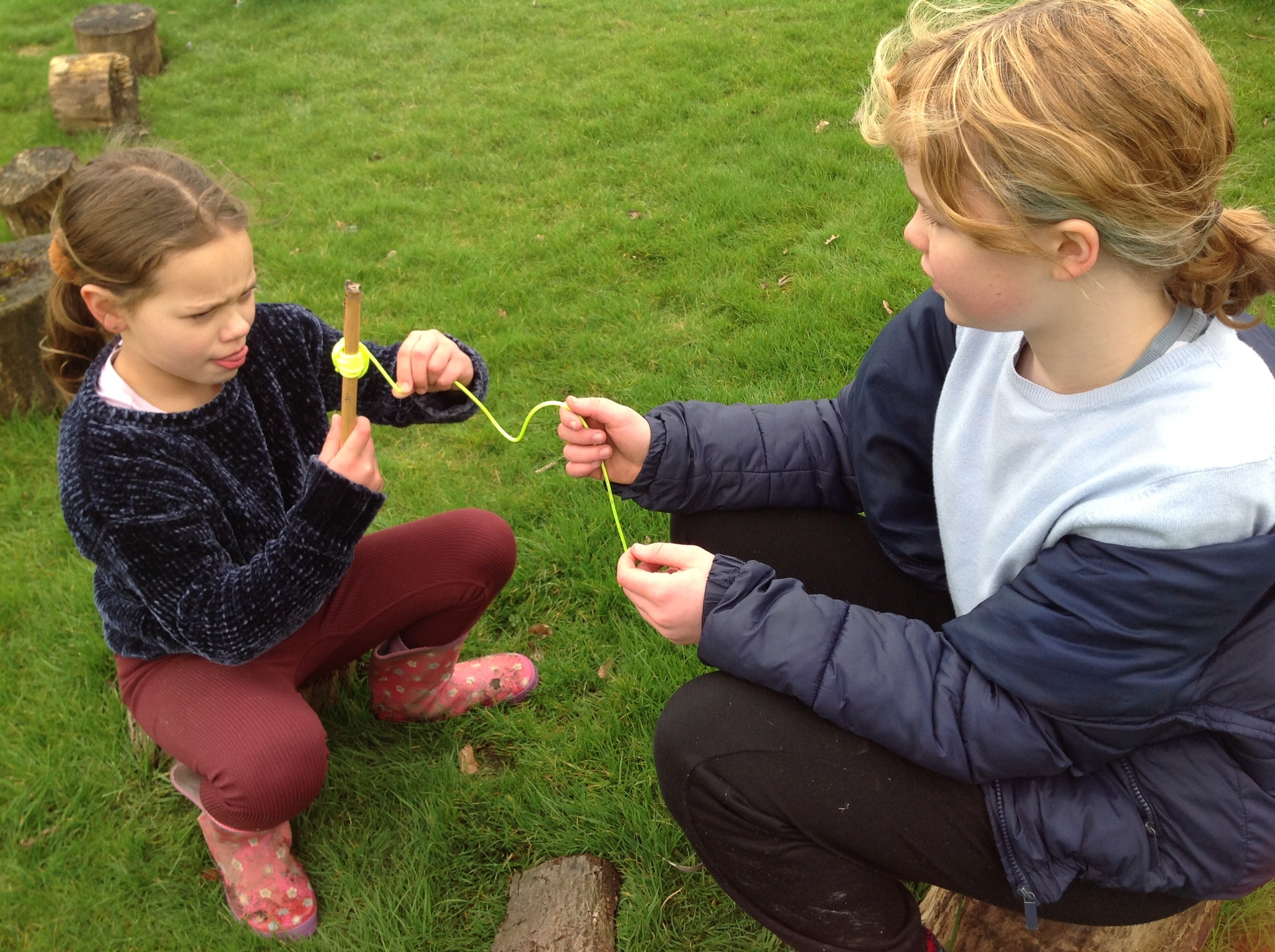 Today, Years 3, 4 and 6 all joined together for a Forest School session. As part of this, they worked in mixed year teams to focus on their shear lashing skills. They had to use what they had learnt to join pieces of wood together to first make a table and then something using their own imagaination. They worked very well together and were able to explain what they had made in detail.