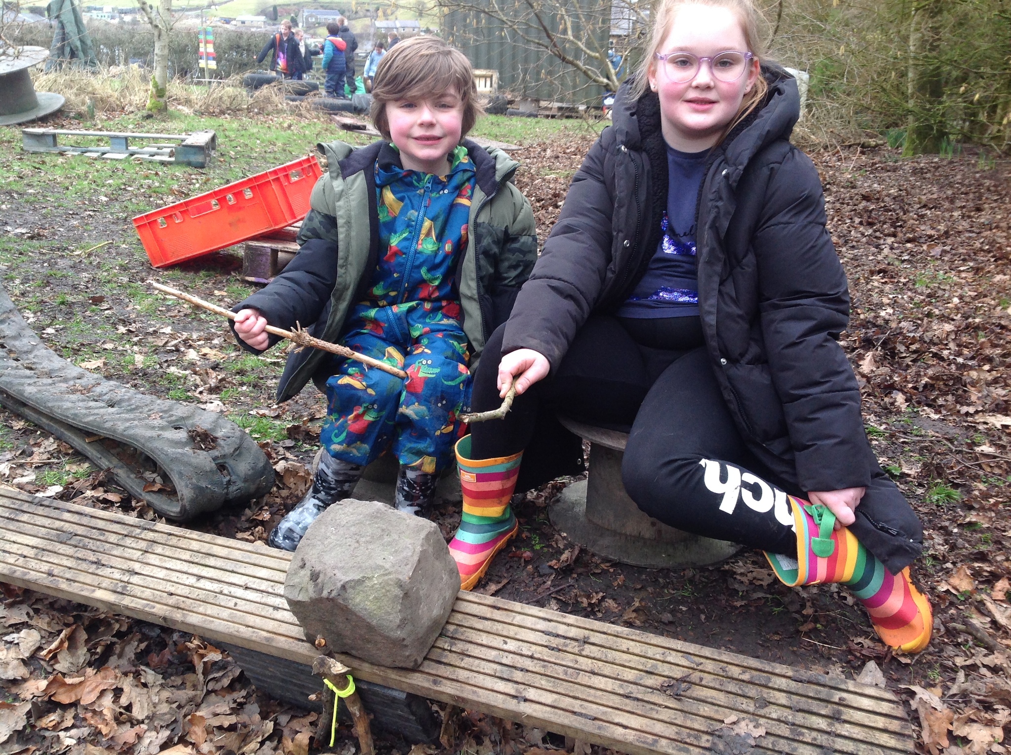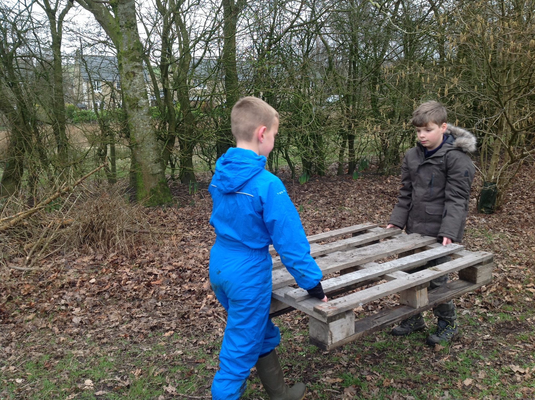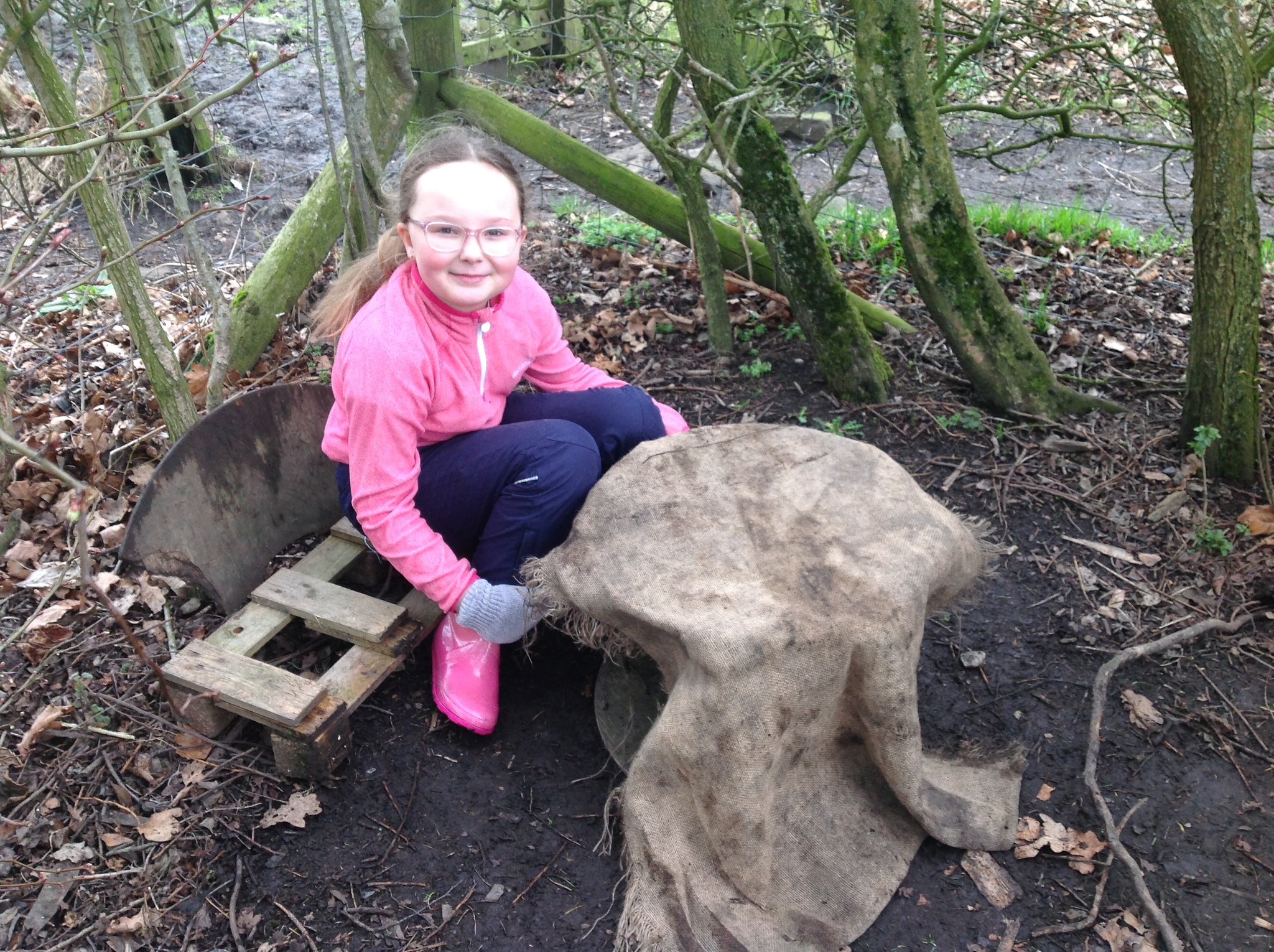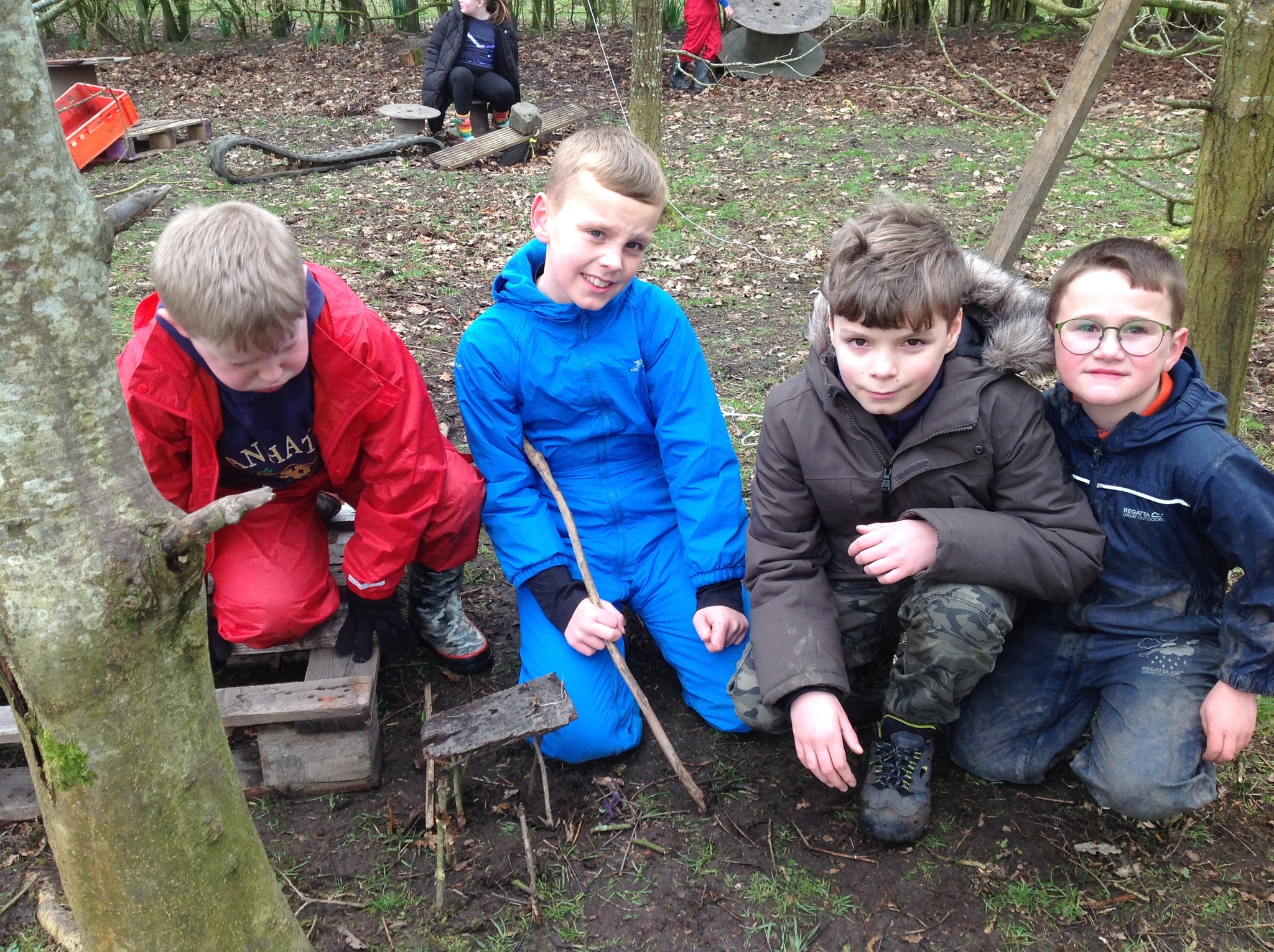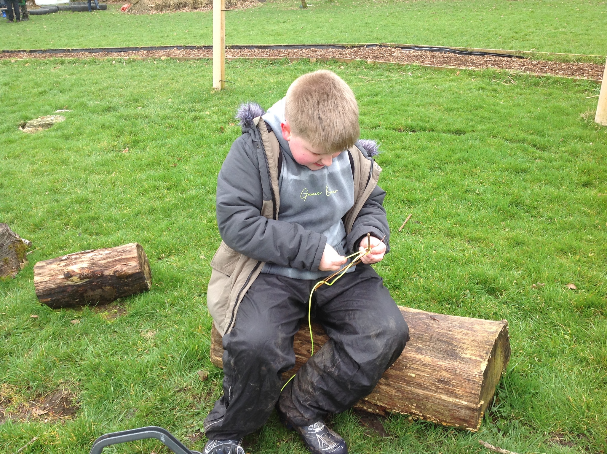 Today, Years 3, 4 and 6 all joined together for a Forest School session. As part of this, they worked in mixed year teams to focus on their shear lashing skills. They had to use what they had learnt to join pieces of wood together to first make a table and then something using their own imagaination. They worked very well together and were able to explain what they had made in detail.