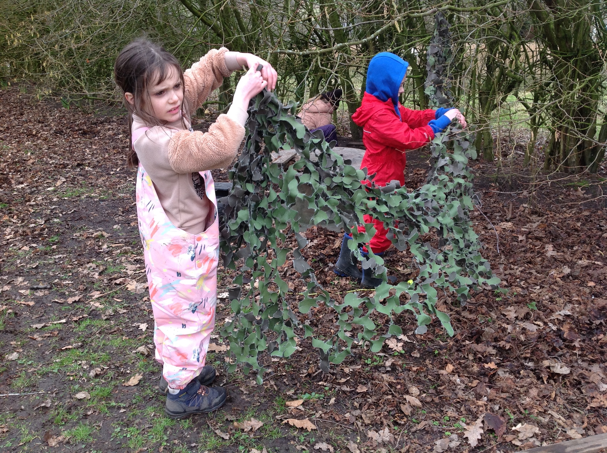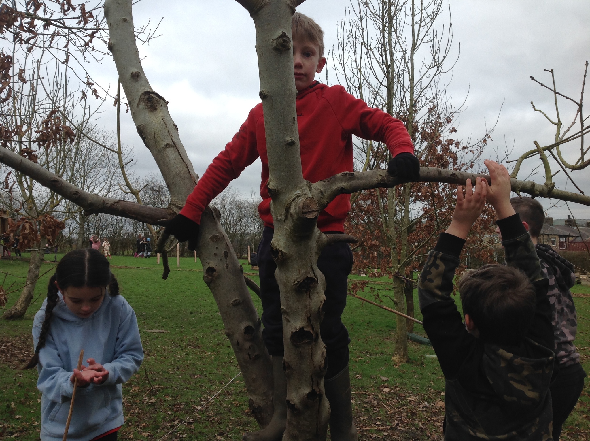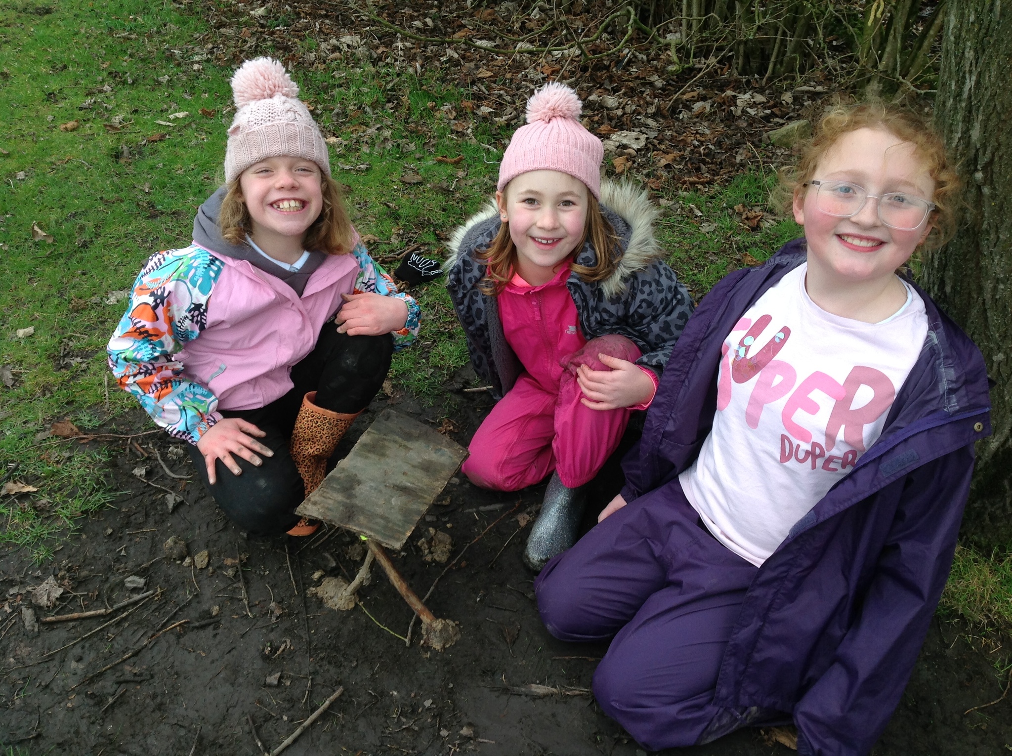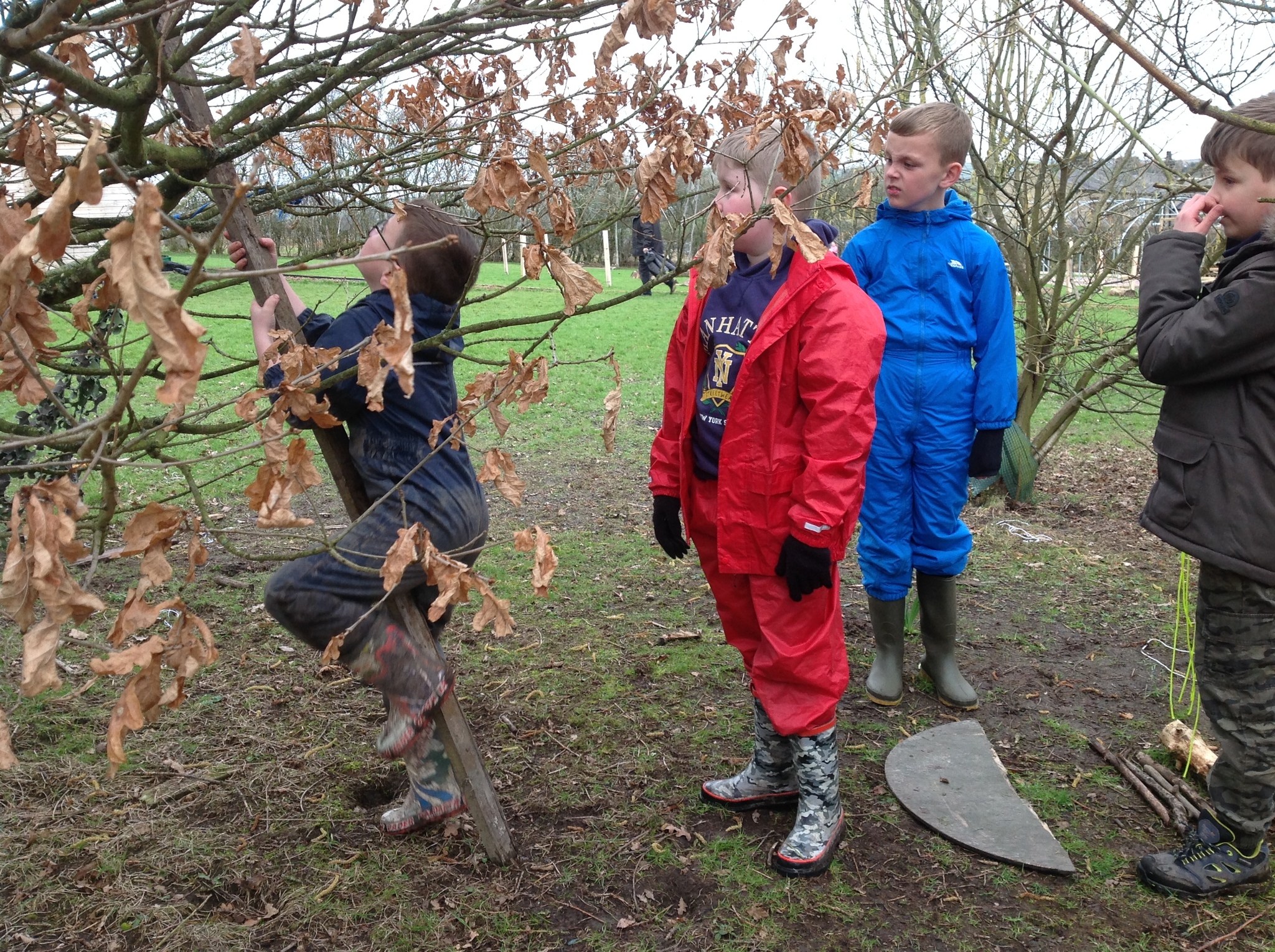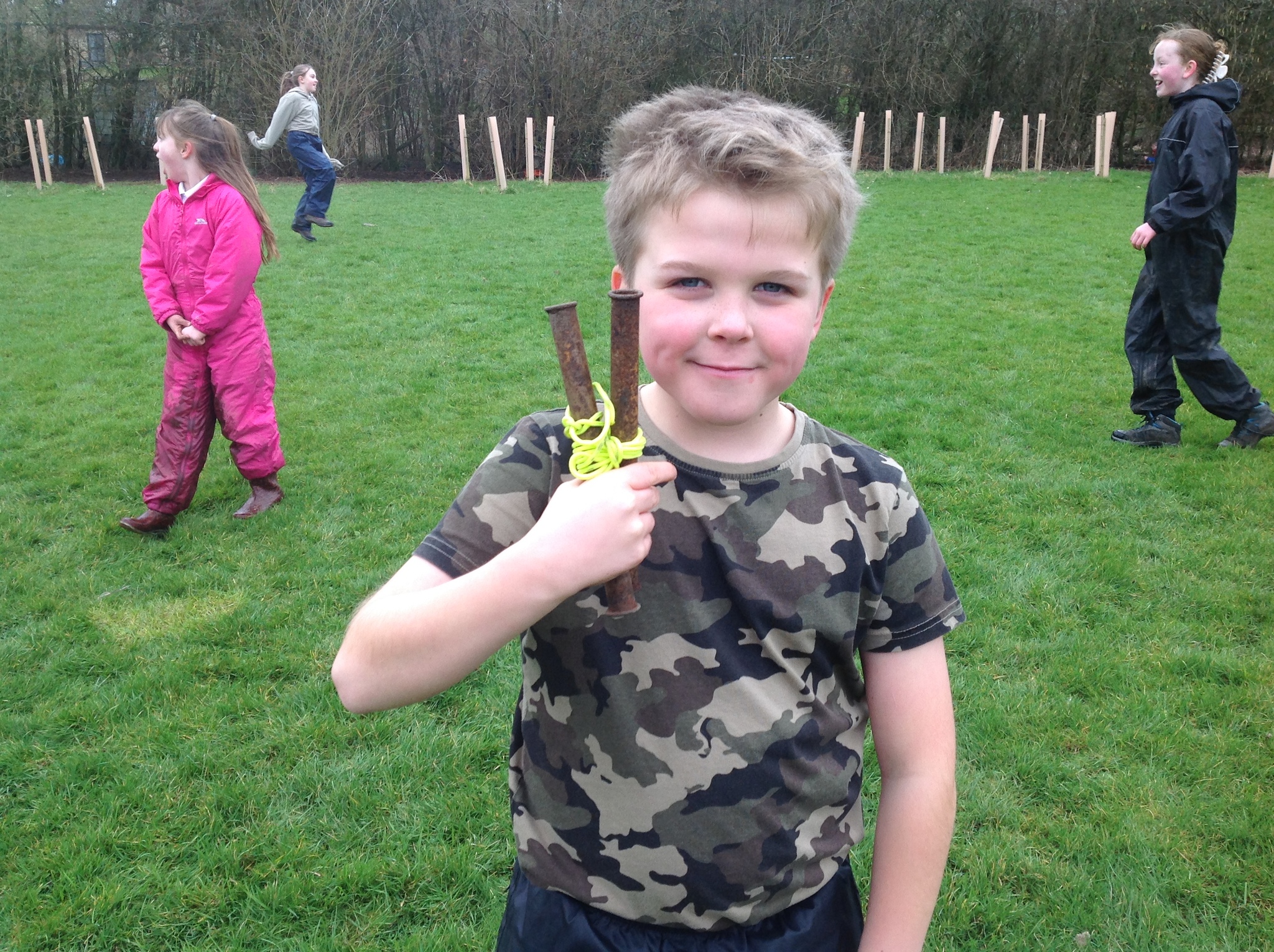Today, Years 3, 4 and 6 all joined together for a Forest School session. As part of this, they worked in mixed year teams to focus on their shear lashing skills. They had to use what they had learnt to join pieces of wood together to first make a table and then something using their own imagaination. They worked very well together and were able to explain what they had made in detail.