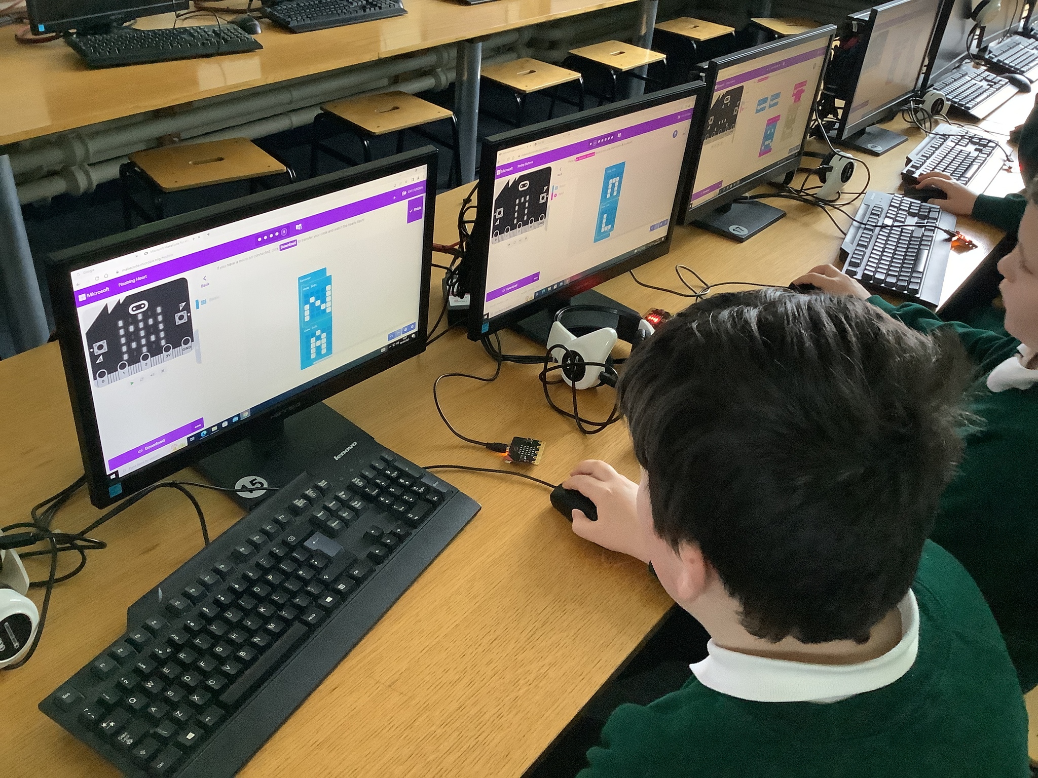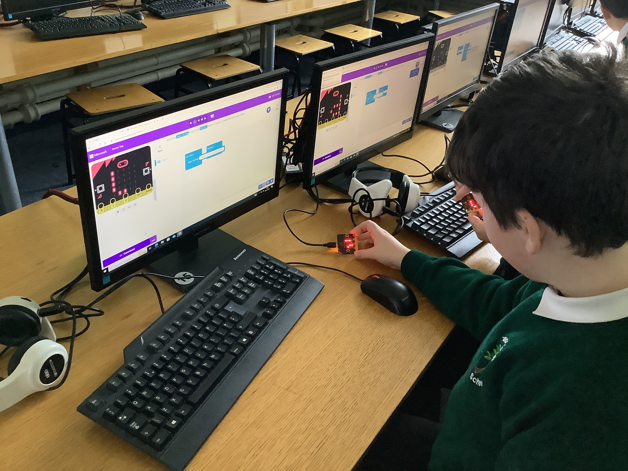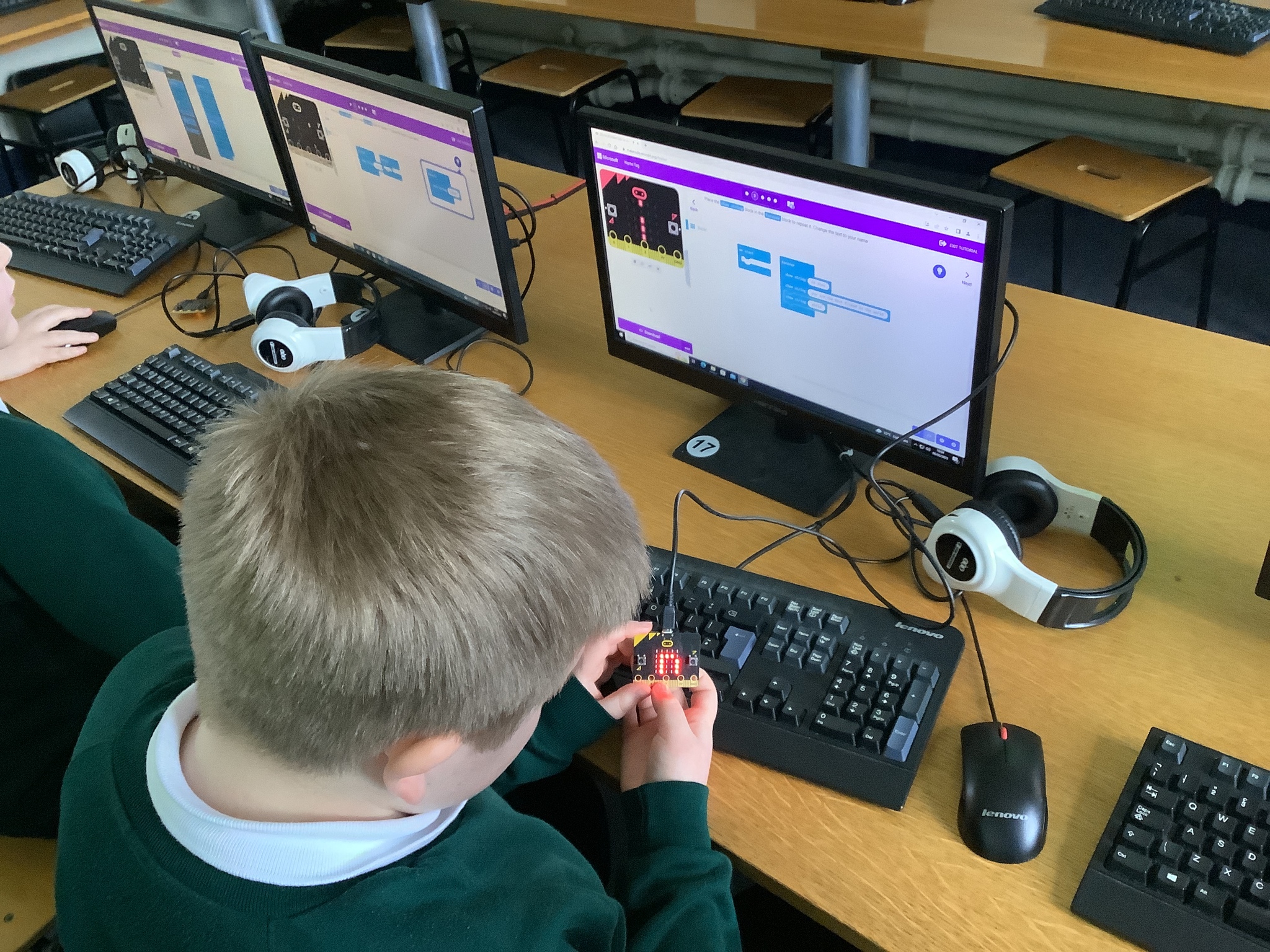 The first coding club lesson using micro:bits was super fun! The children were introduced to micro:bits and shown how these could be programmed to complete a range to tasks. They couldn't wait to get stuck in and practise their coding skills! They used Microsoft MakeCode which is a similar program to Scratch a 'block building' programming language. There were a few teething issues when following the tutorials, but luckily, Jamie was an expert as he already had a micro:bit at home and was a star at helping other children.
