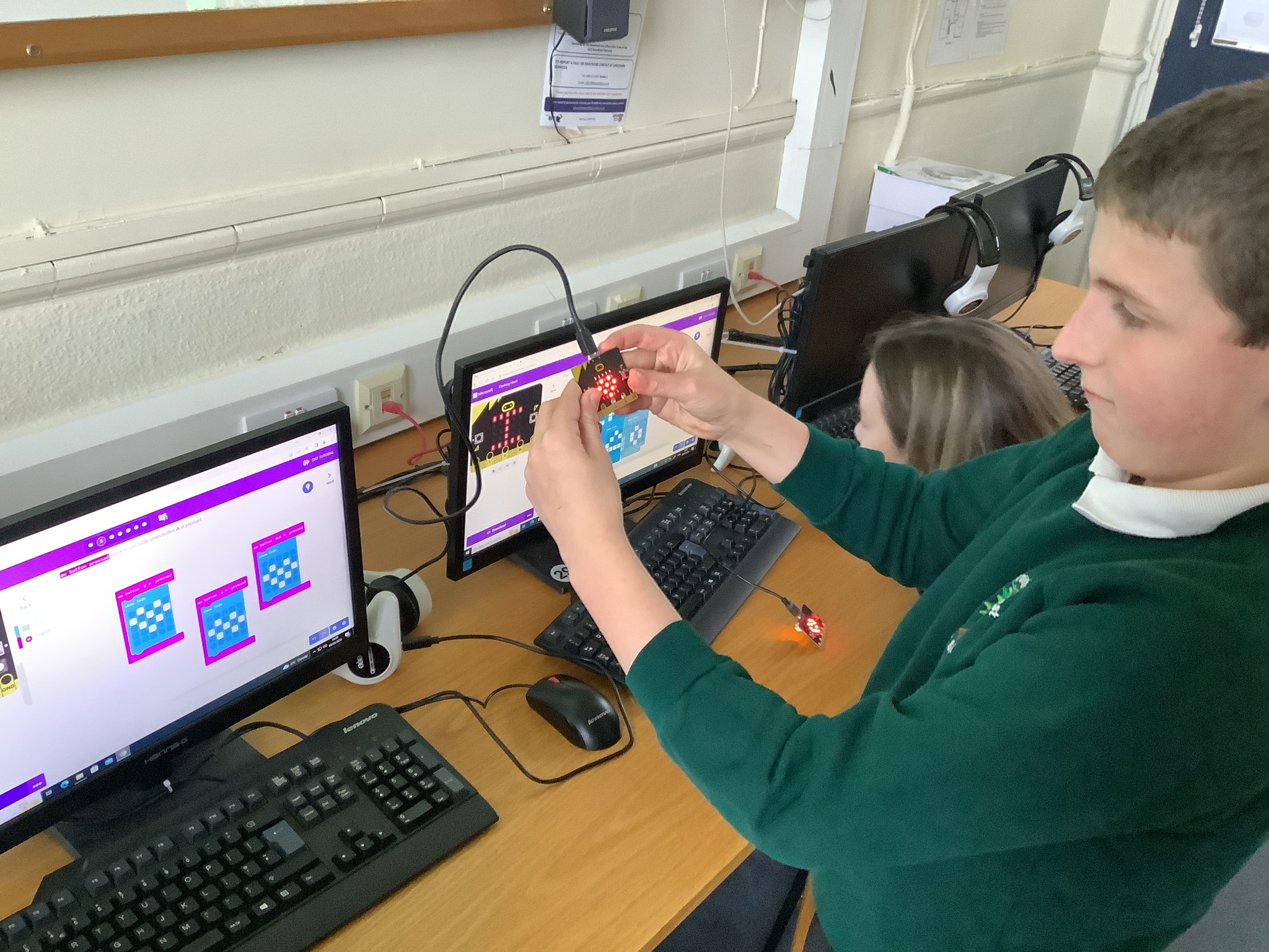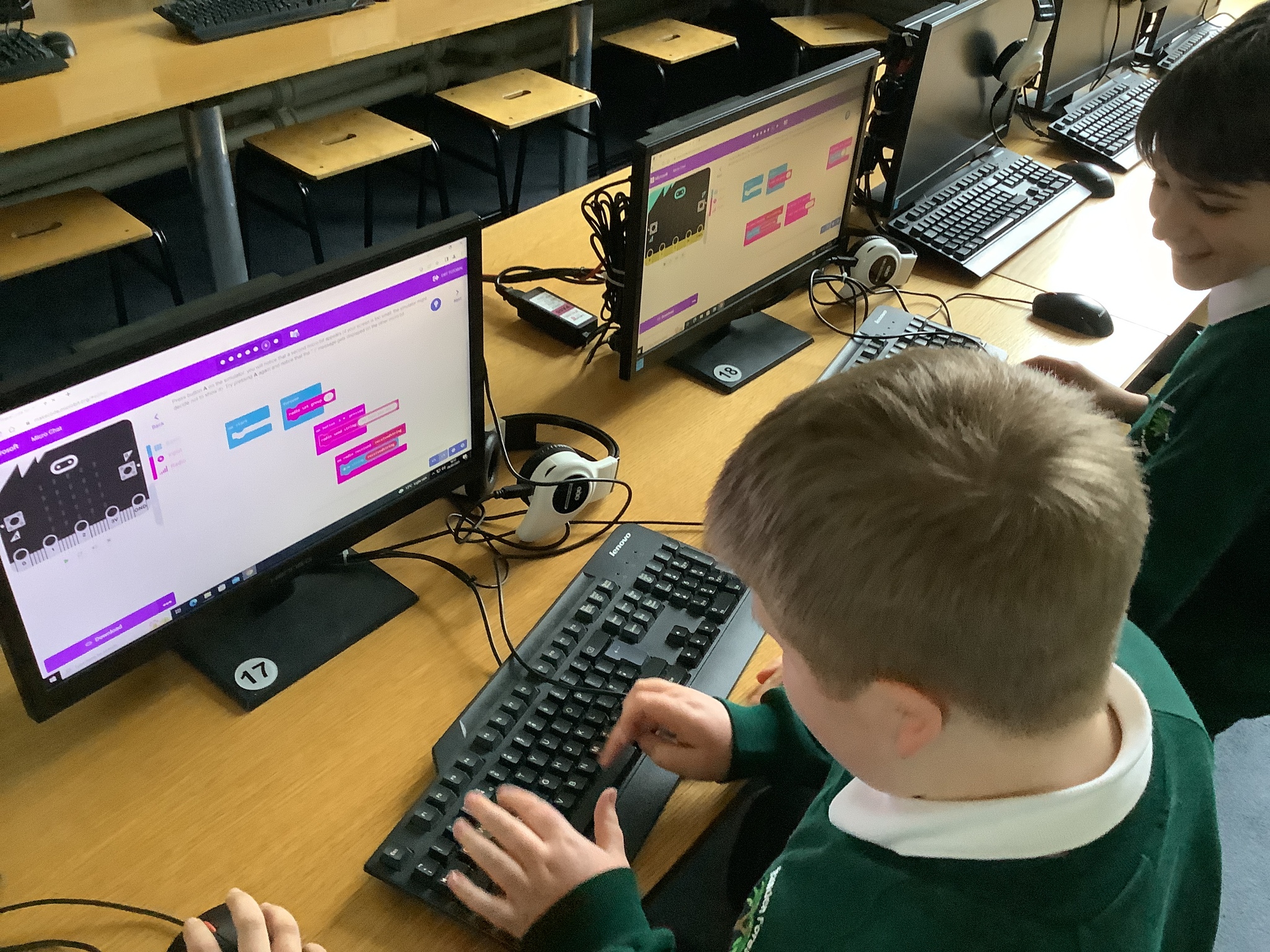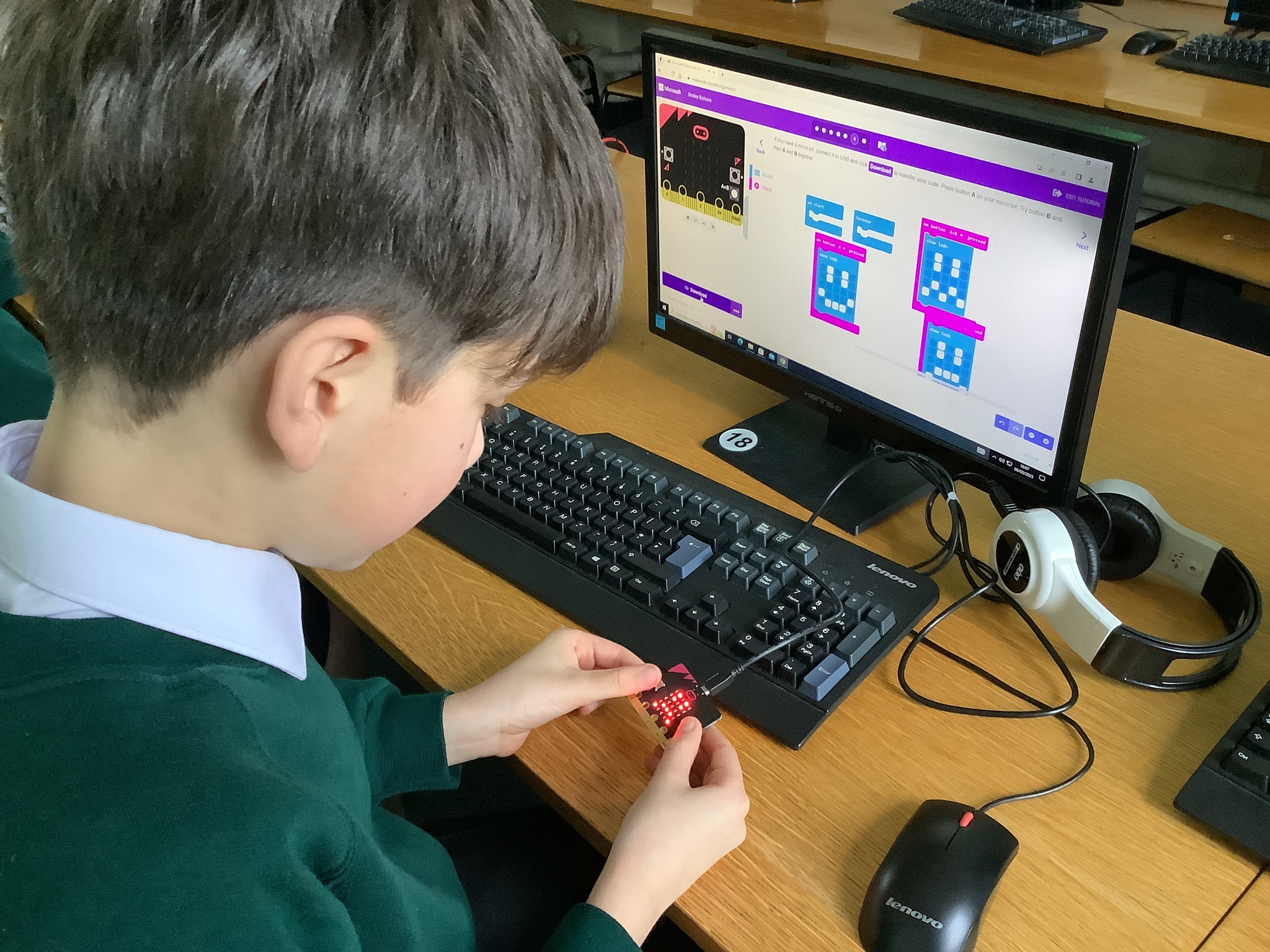 The first coding club lesson using micro:bits was super fun! The children were introduced to micro:bits and shown how these could be programmed to complete a range to tasks. They couldn't wait to get stuck in and practise their coding skills! They used Microsoft MakeCode which is a similar program to Scratch a 'block building' programming language. There were a few teething issues when following the tutorials, but luckily, Jamie was an expert as he already had a micro:bit at home and was a star at helping other children.