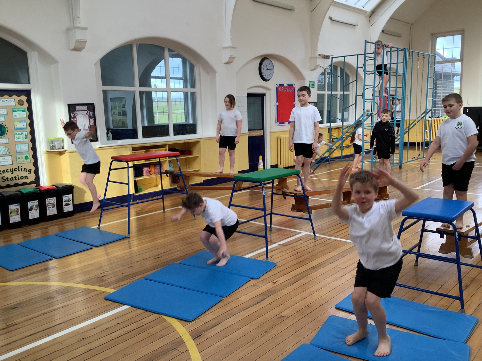 Year 4 have really enjoyed their PE lessons over the past couple of weeks as they had access to a variet of gymnastics equipment. They worked in teams to practise moving in different ways, perform jumps and balances and demonstrate their technique to the class! The climbing frame was a big hit and they loved trying to reach the top!