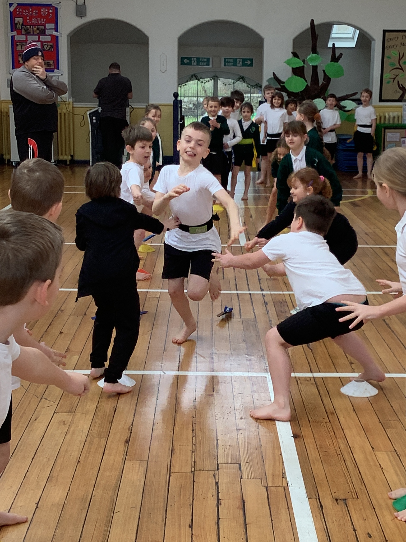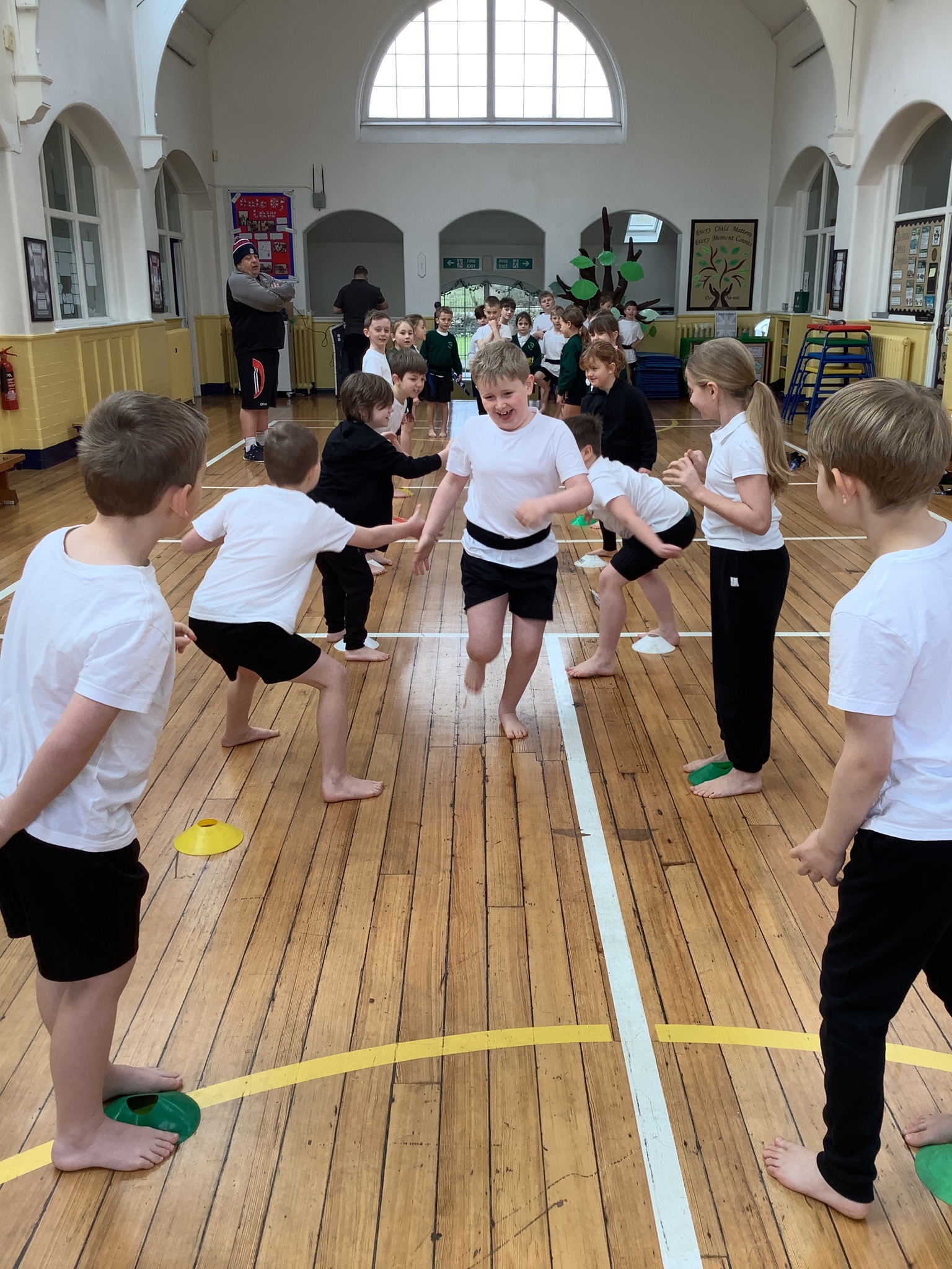 In rugby this week, Year 3 were practising 'tagging'. They did a fantastic job and are looking forward to putting their skills into a game next week.