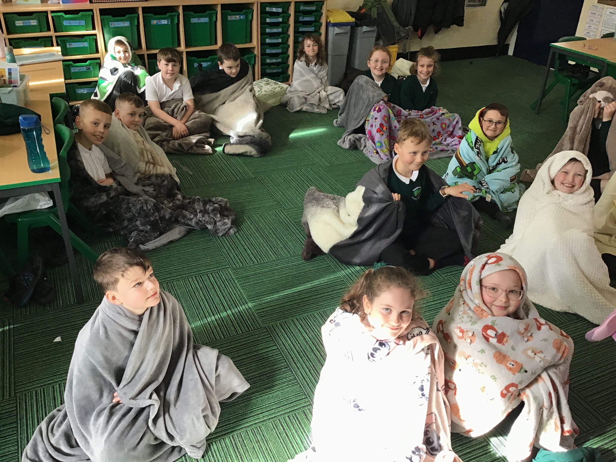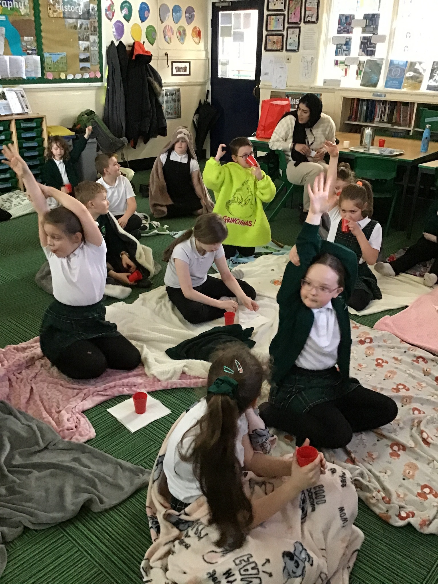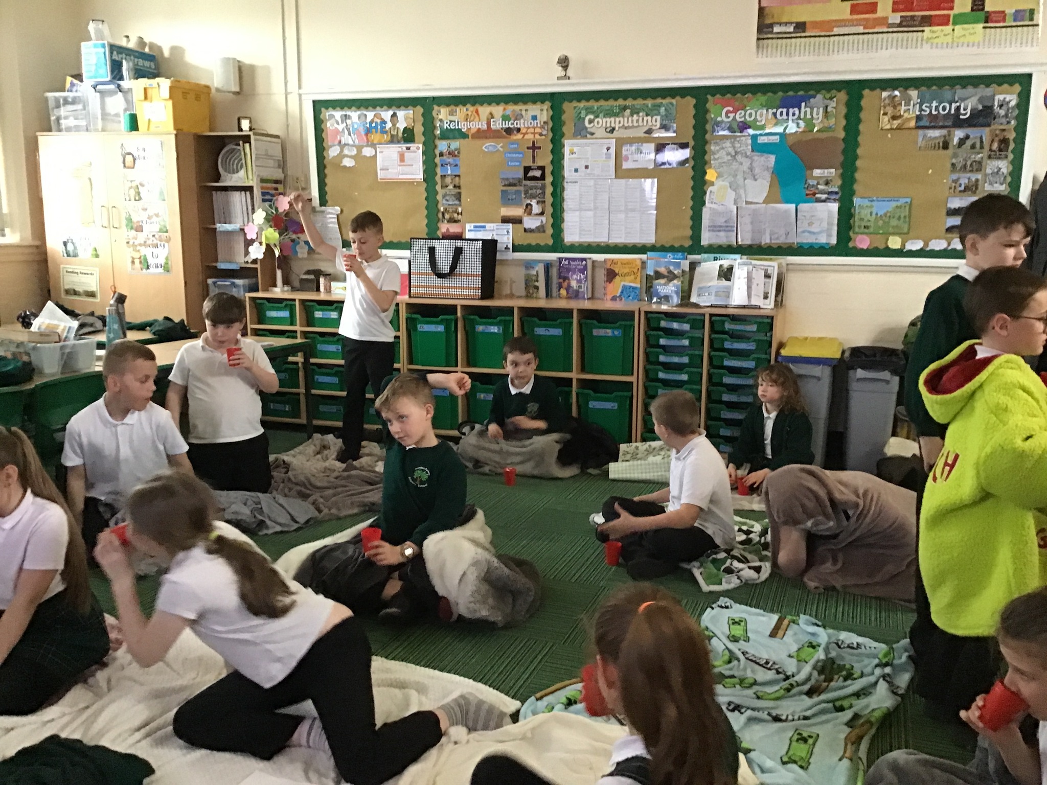 Today, in English we had a very different English lesson. We were all able to bring in blankets, get snuggled up and drink hot chocolate, while learning!