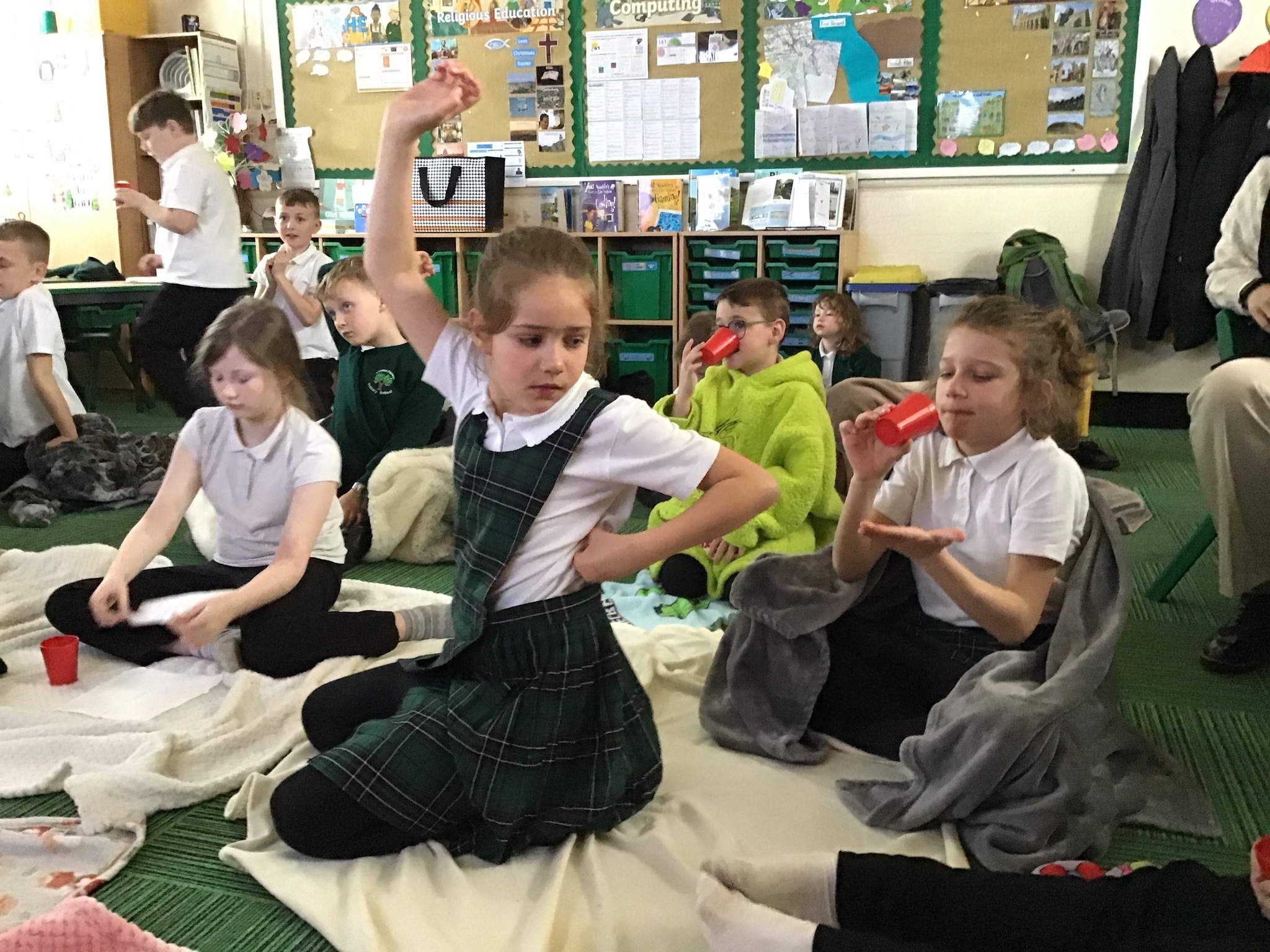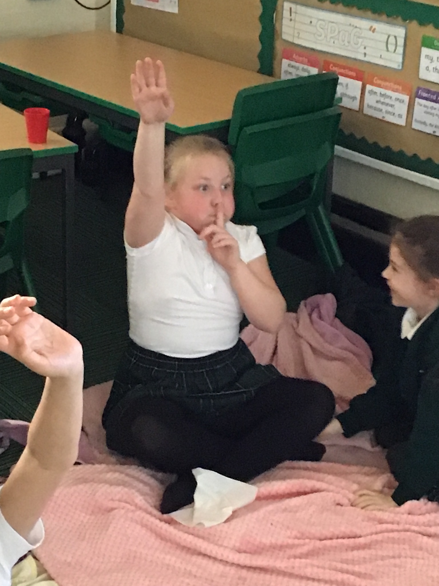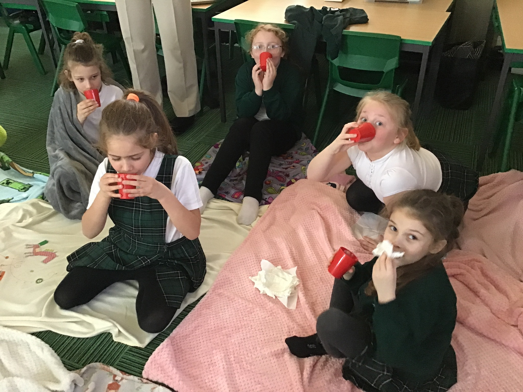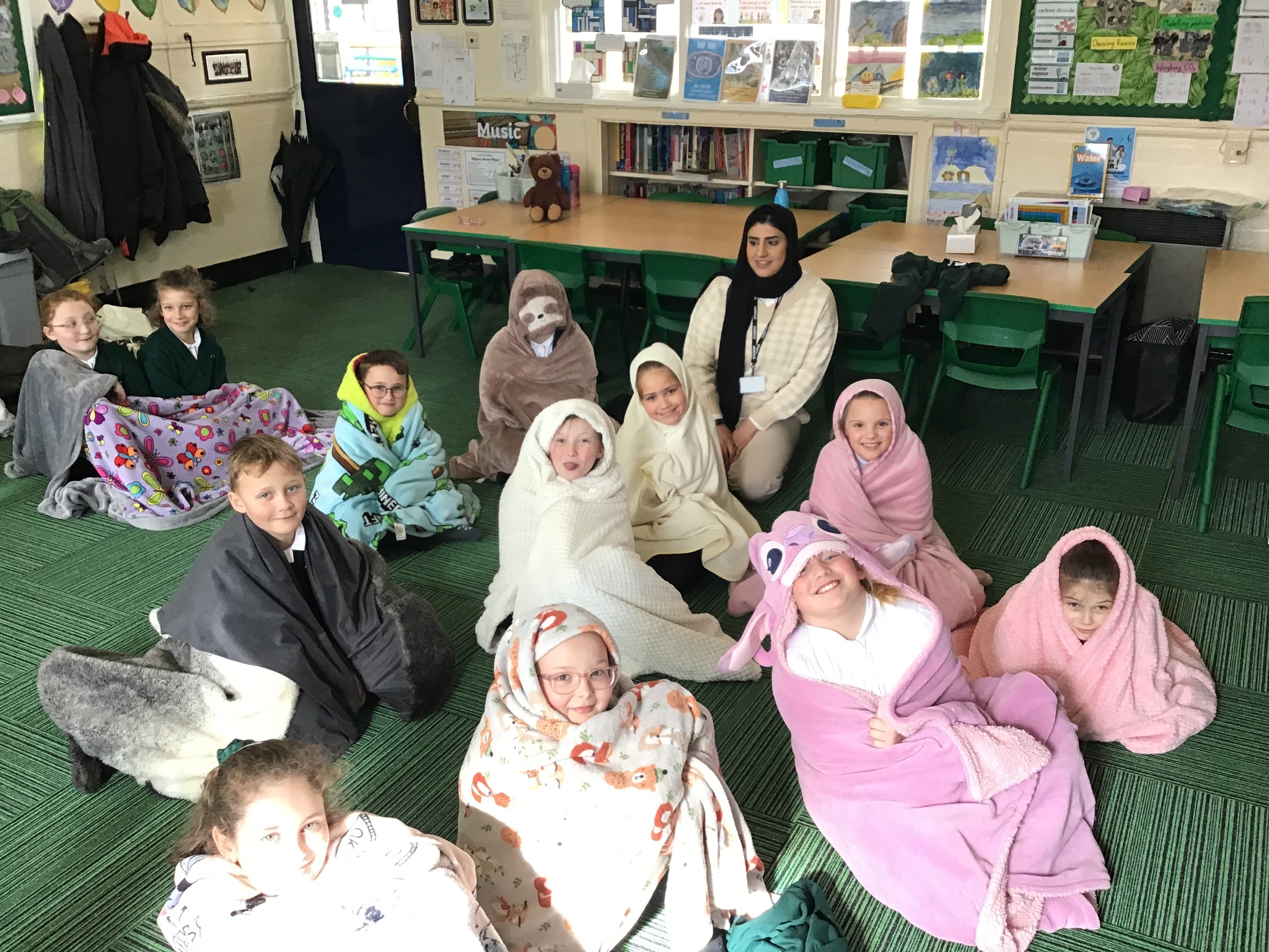 Today, in English we had a very different English lesson. We were all able to bring in blankets, get snuggled up and drink hot chocolate, while learning!
