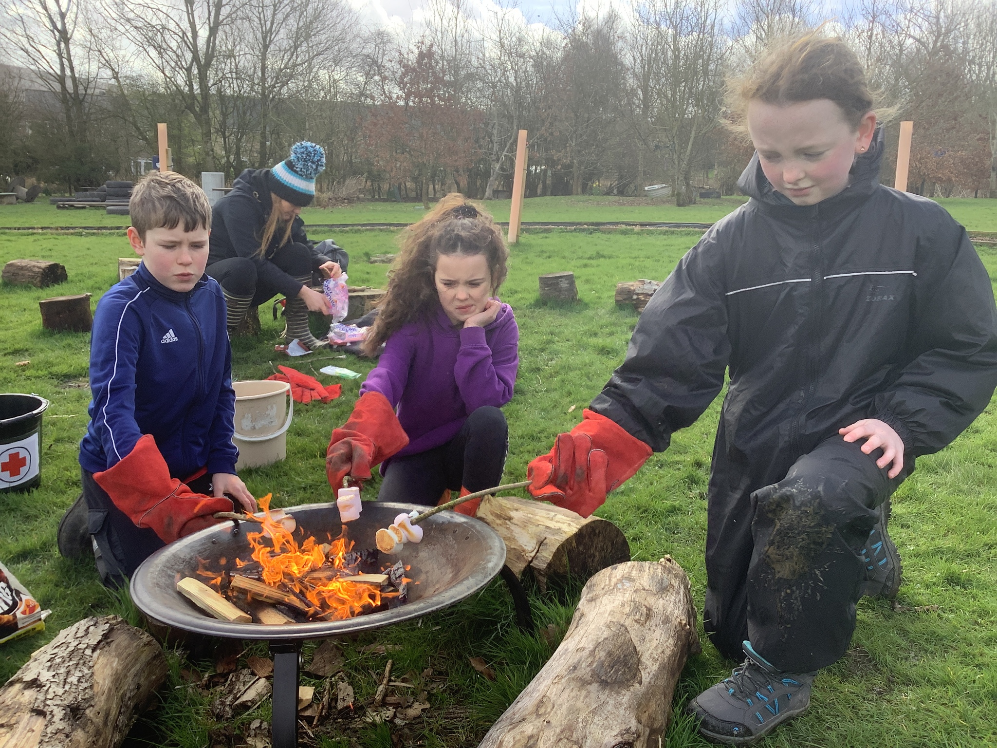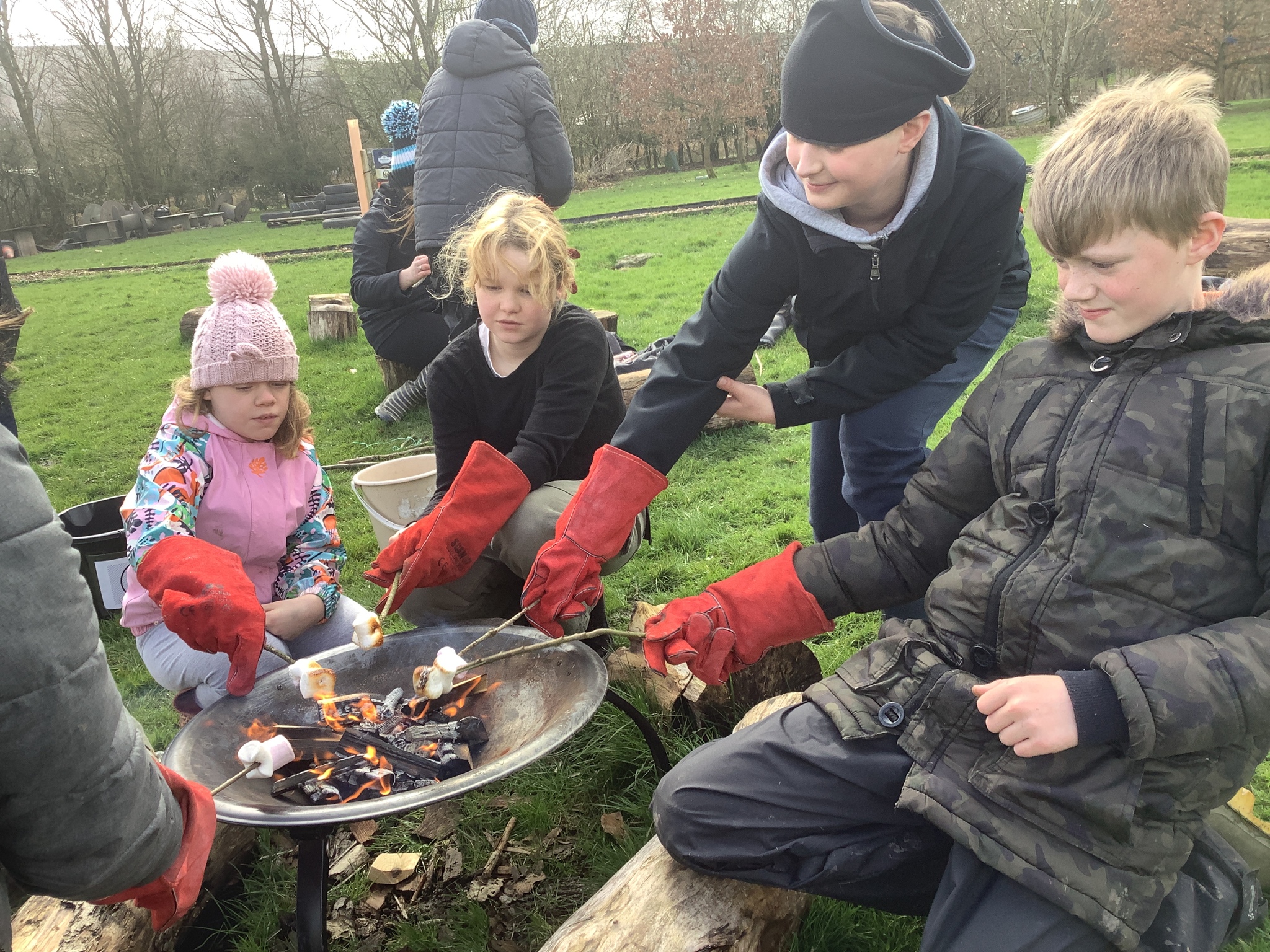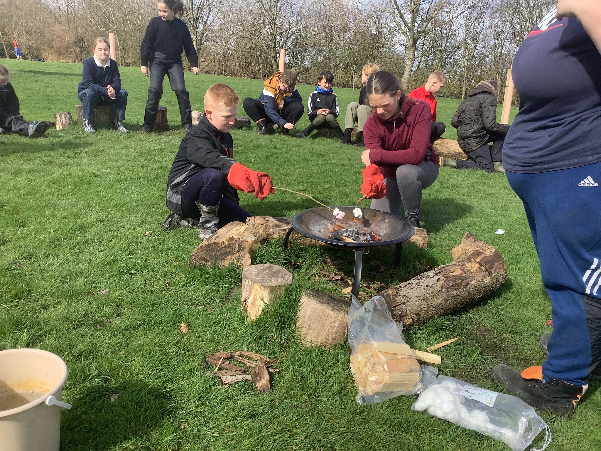 First of all we have an innings of rounders, followed by s'mores on the campfire - set up by Miss Gallagher. The second innings was muddy and tight, however the fielding team just pipped the second batters - getting two more players out. The children thoroughly enjoyed it and it was great to see their team spirit and camaraderie.