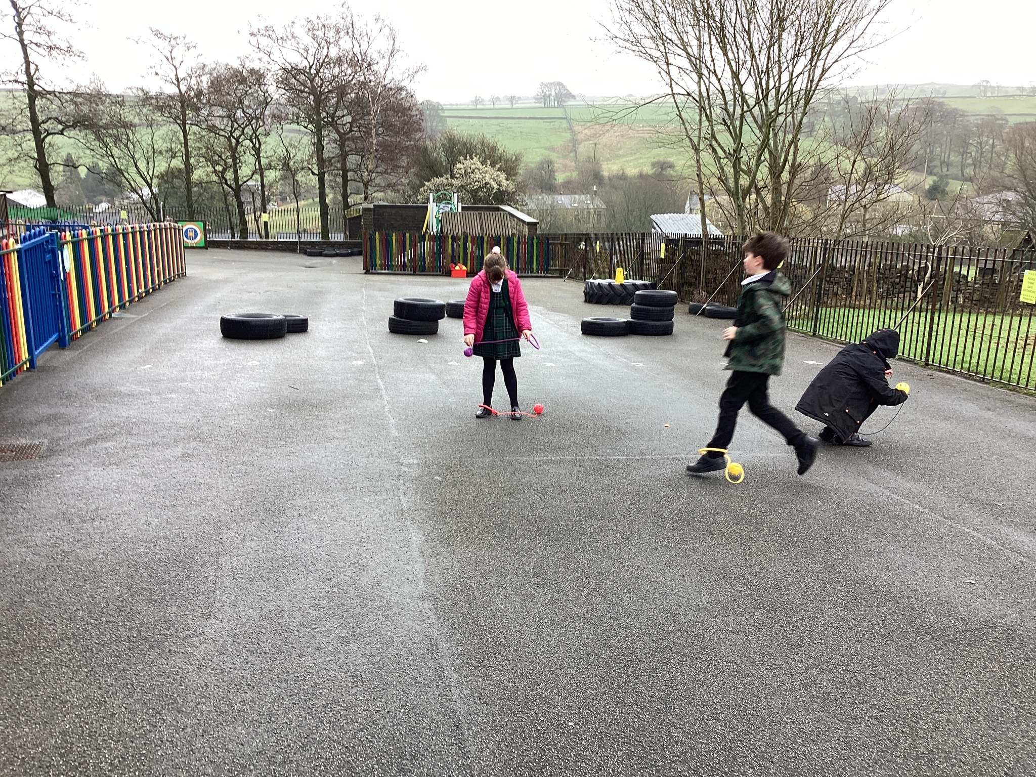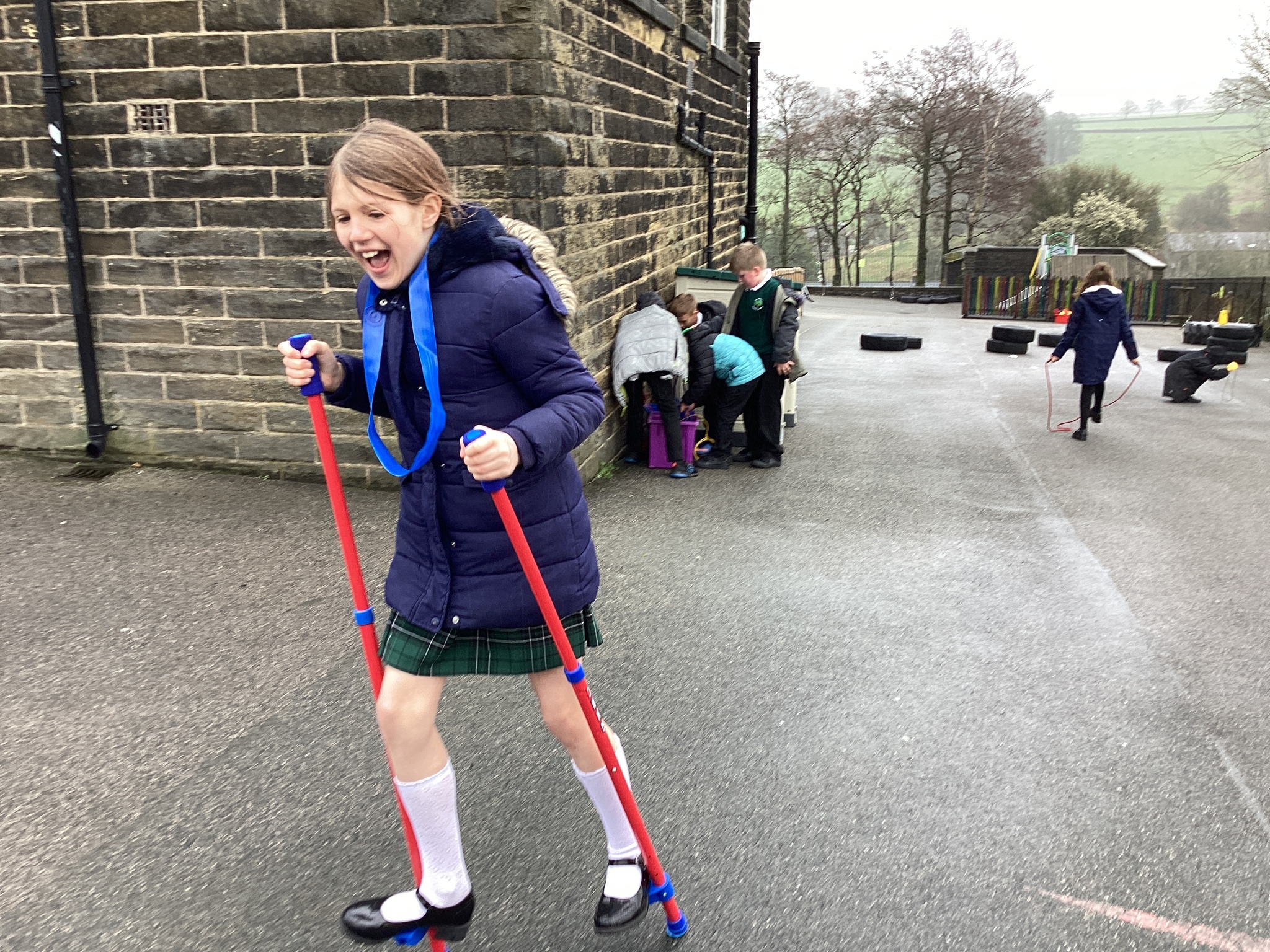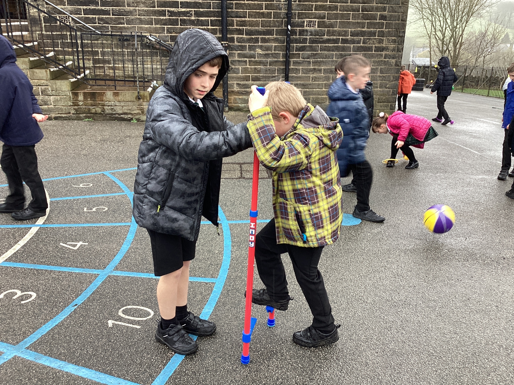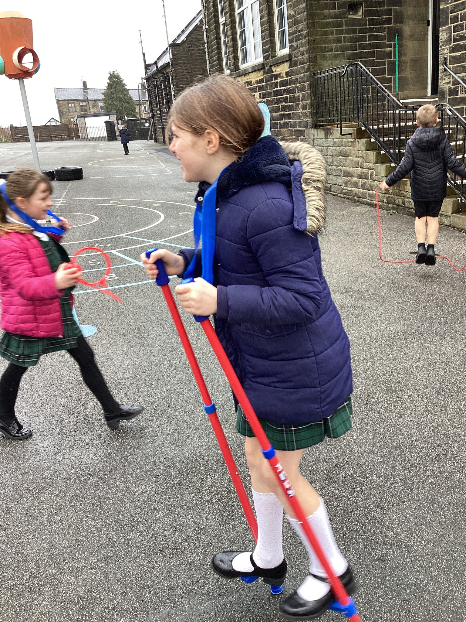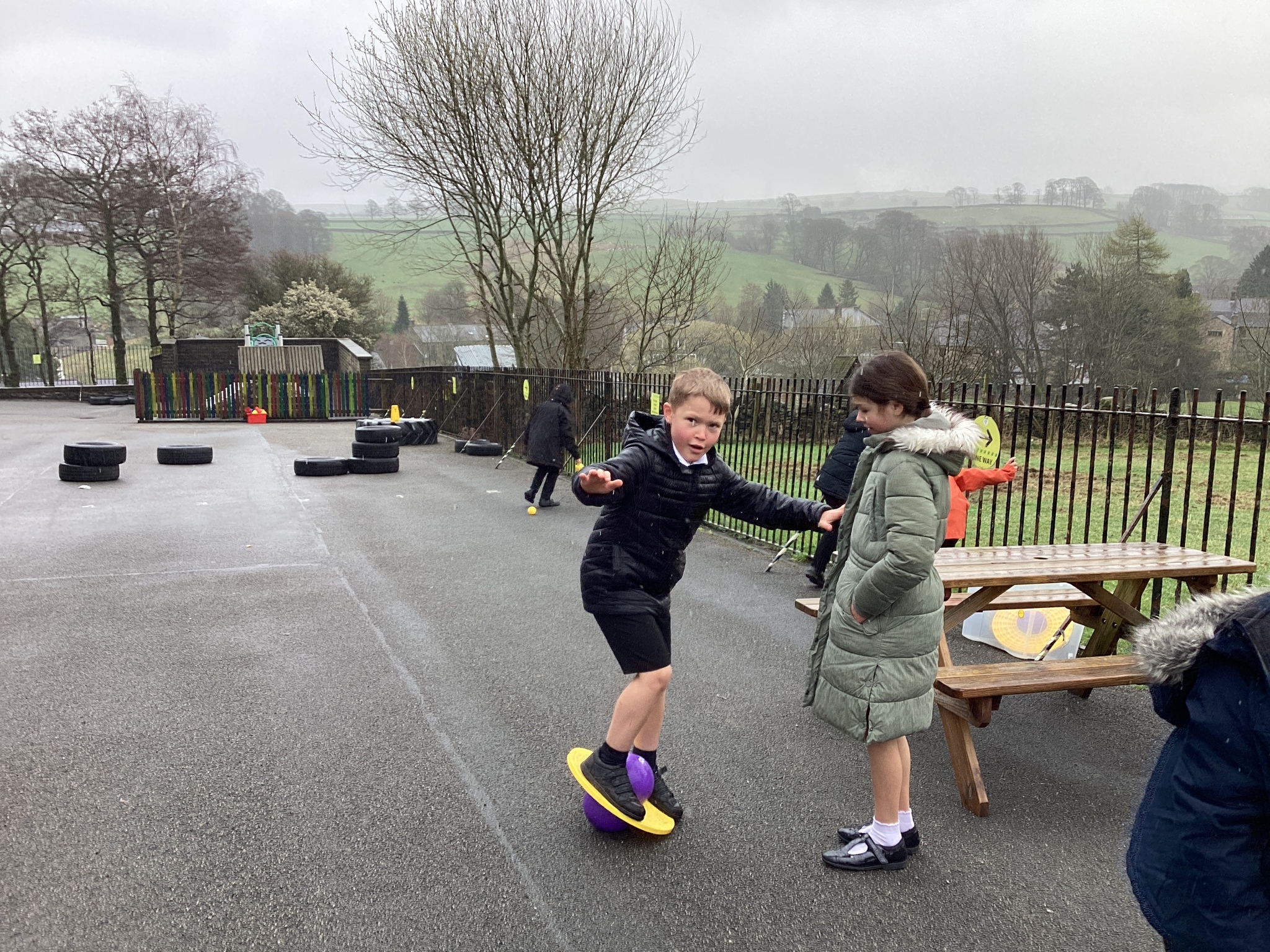 Today we (finally) launched our outside play zones, designed to make our play times much more fun. Our wonderful sports ambassadors demonstrated how to use the equipment in assembly, then we set off outside to have lots of fun - even the torrential rain didn't stop us! We can't wait for tomorrow so we can have lots more fun.