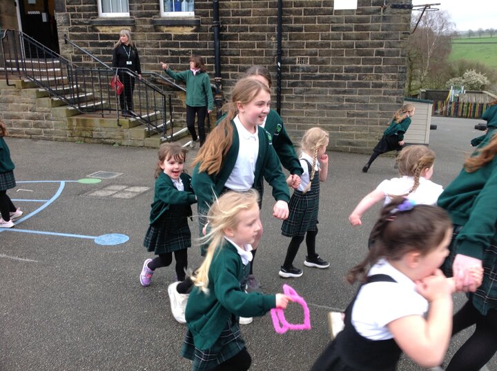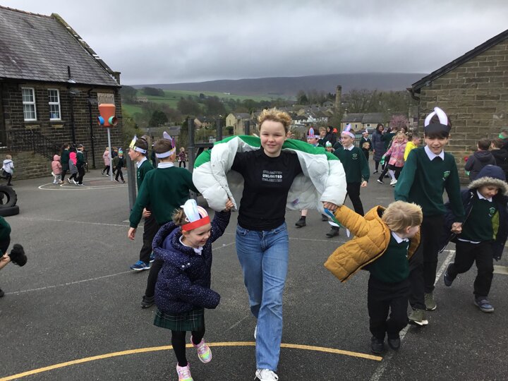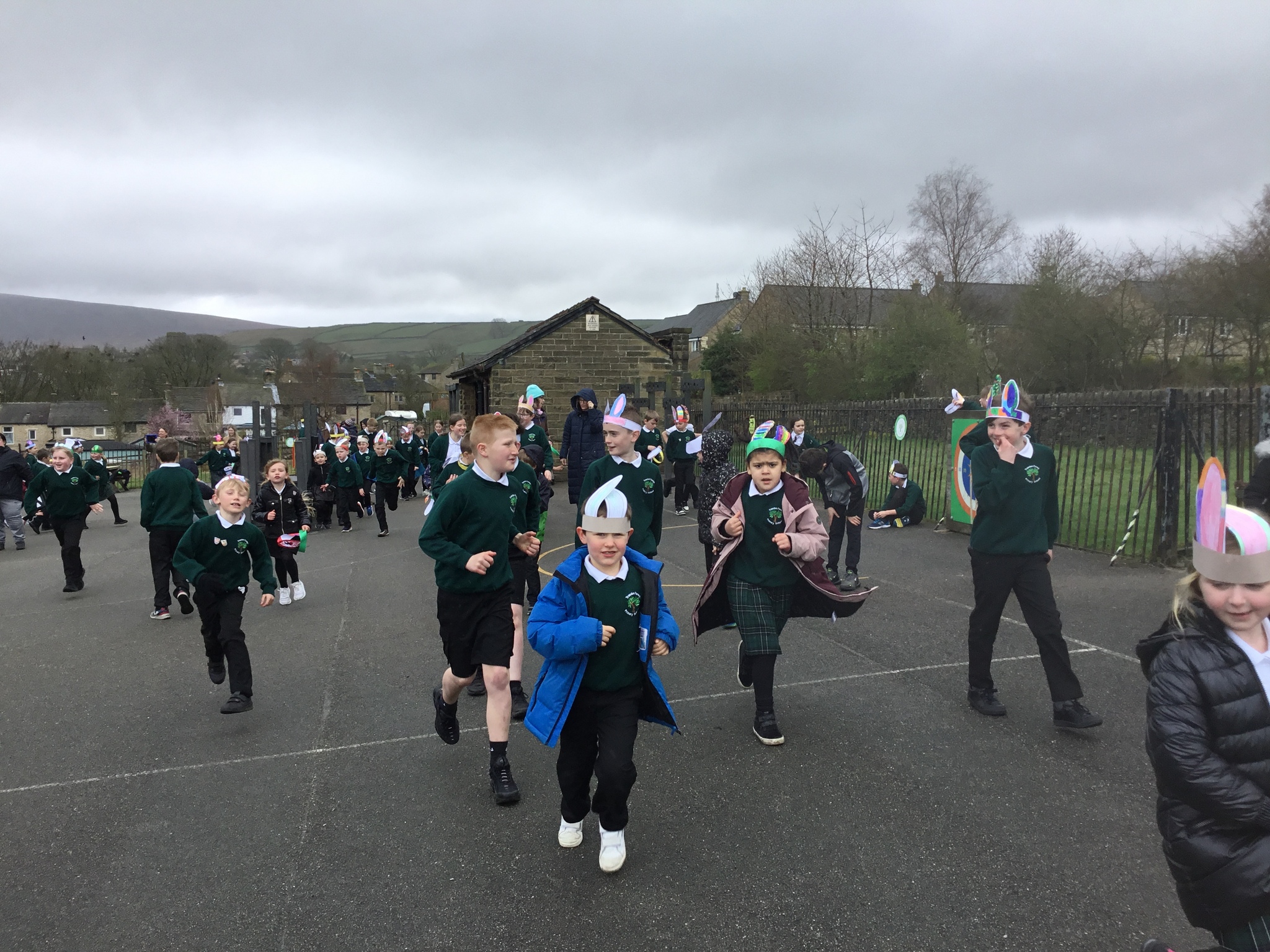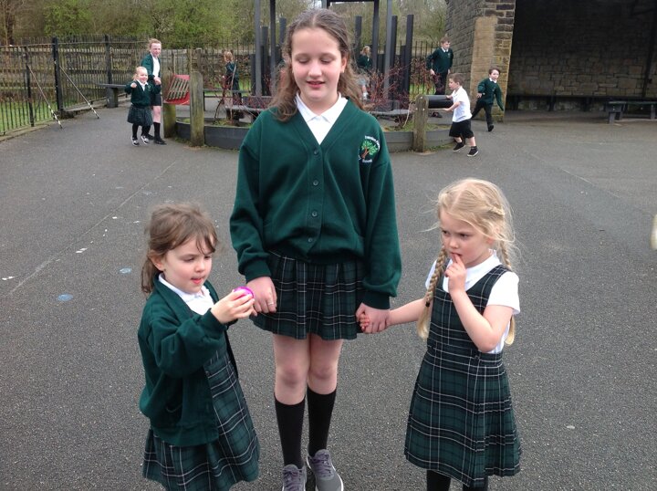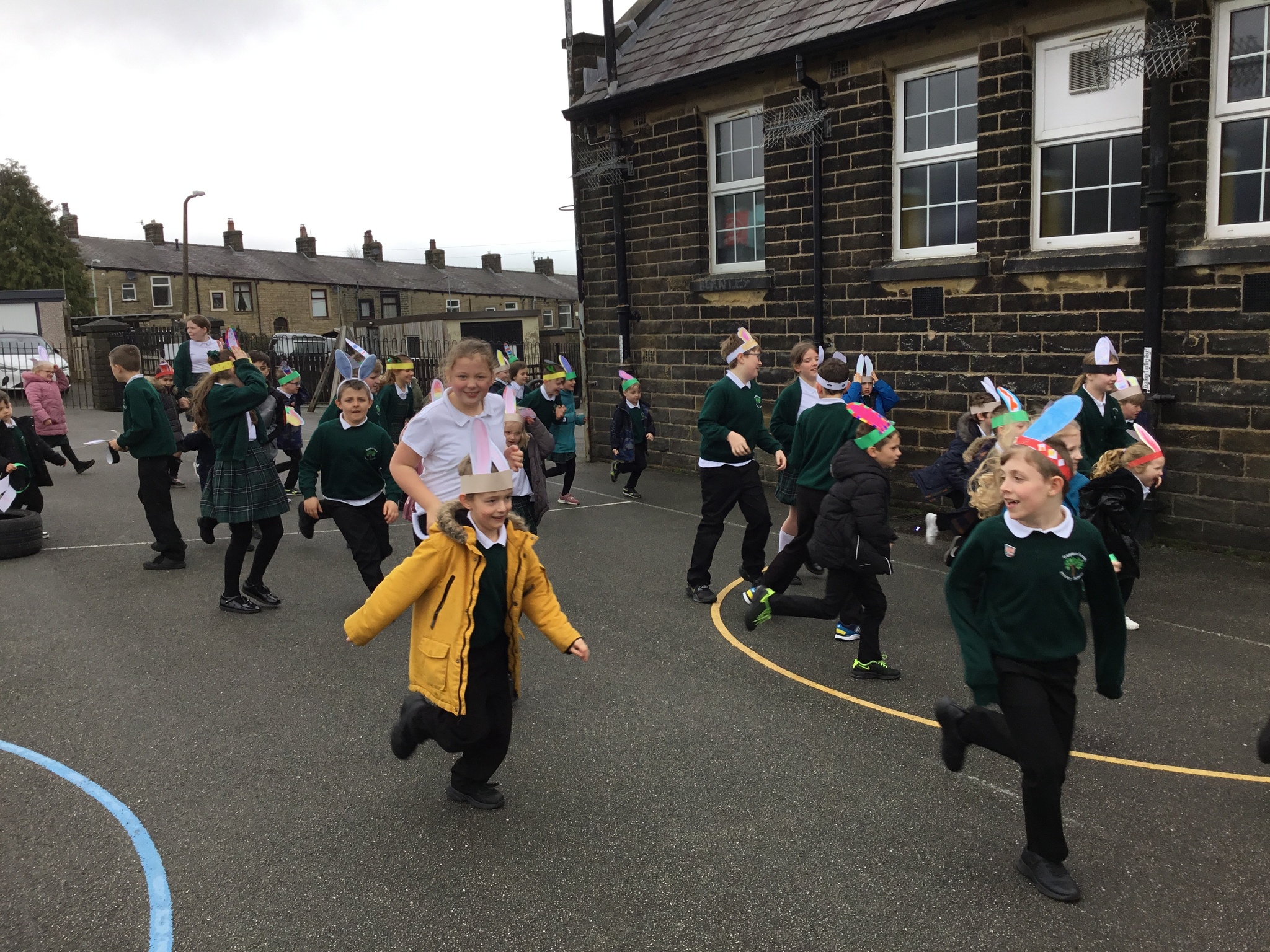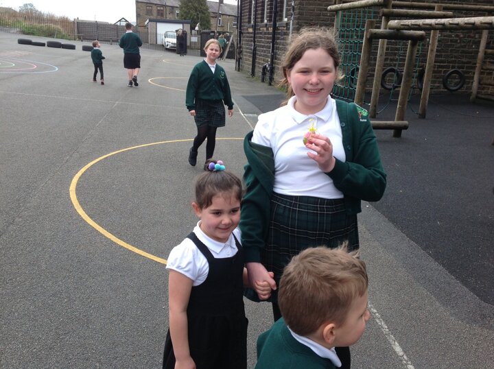 What better way to end our Spring term than with our buddies. We have enjoyed a bunny hop, an Easter egg hunt and some games!