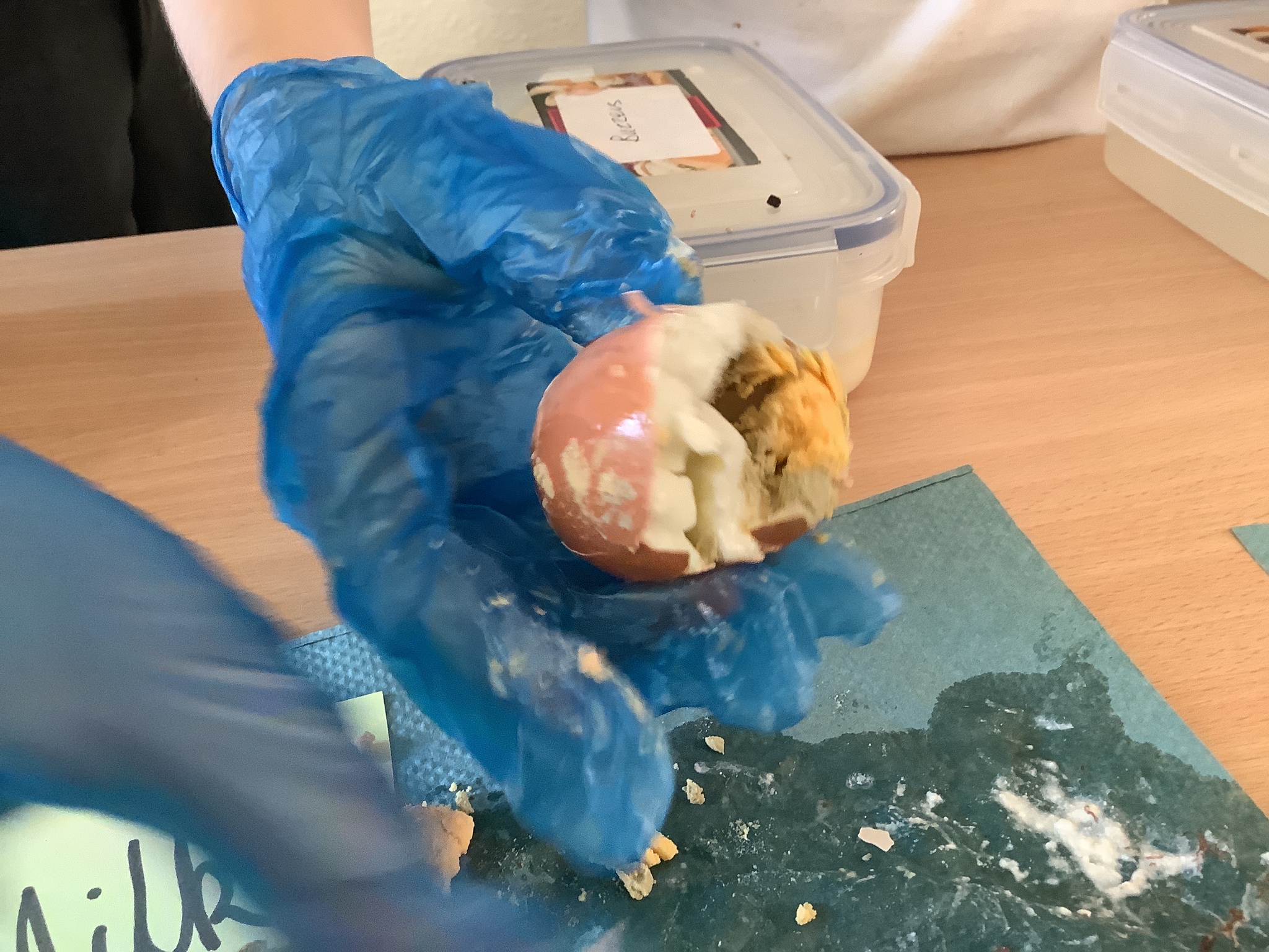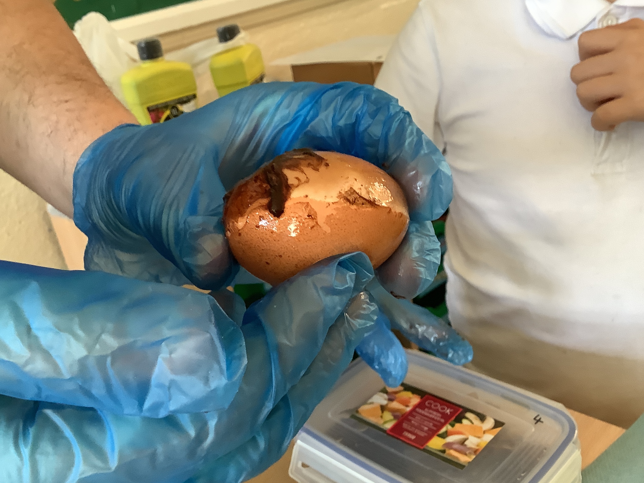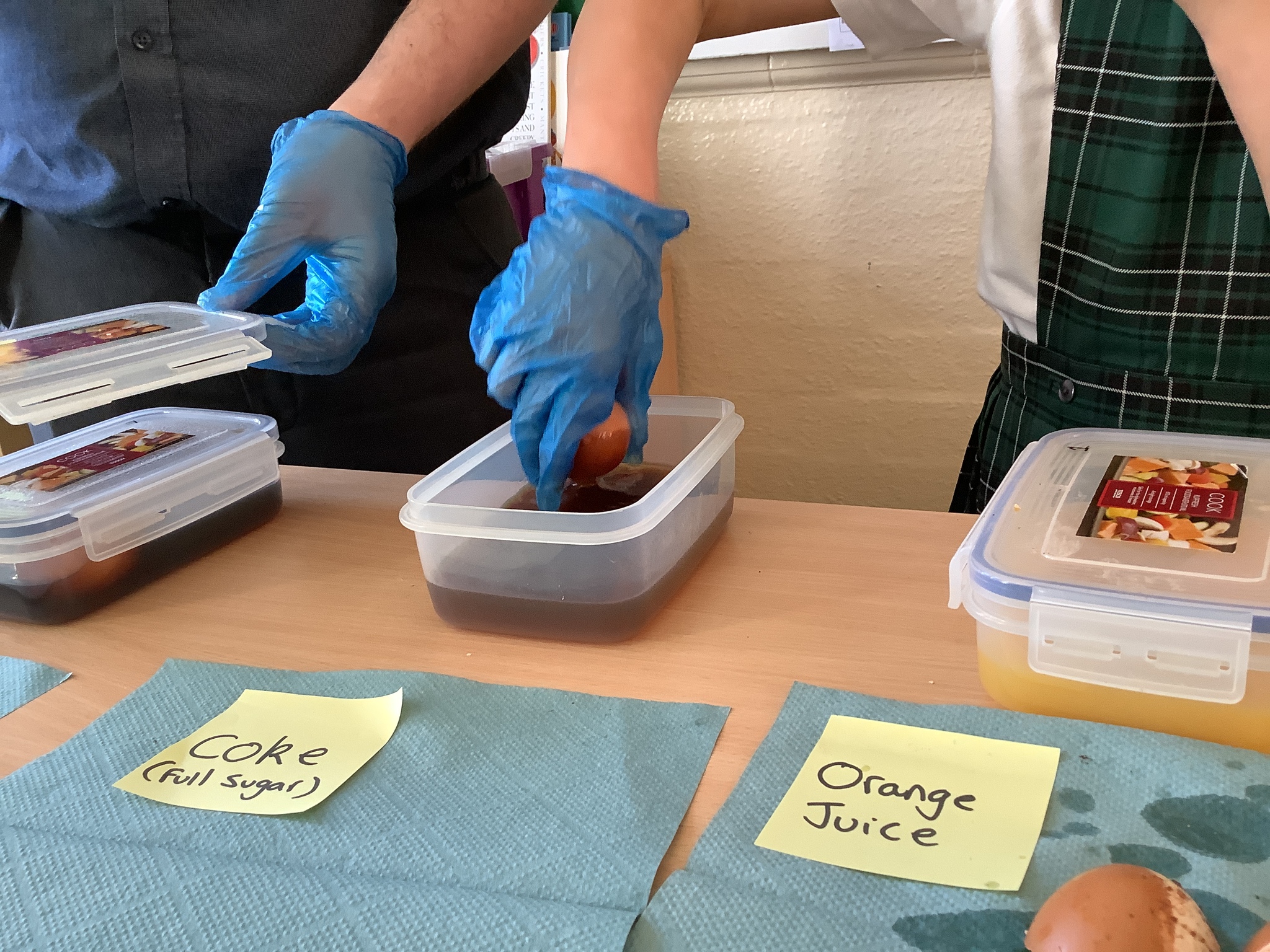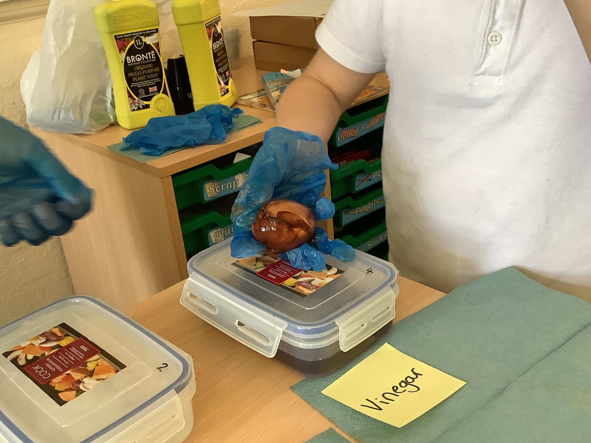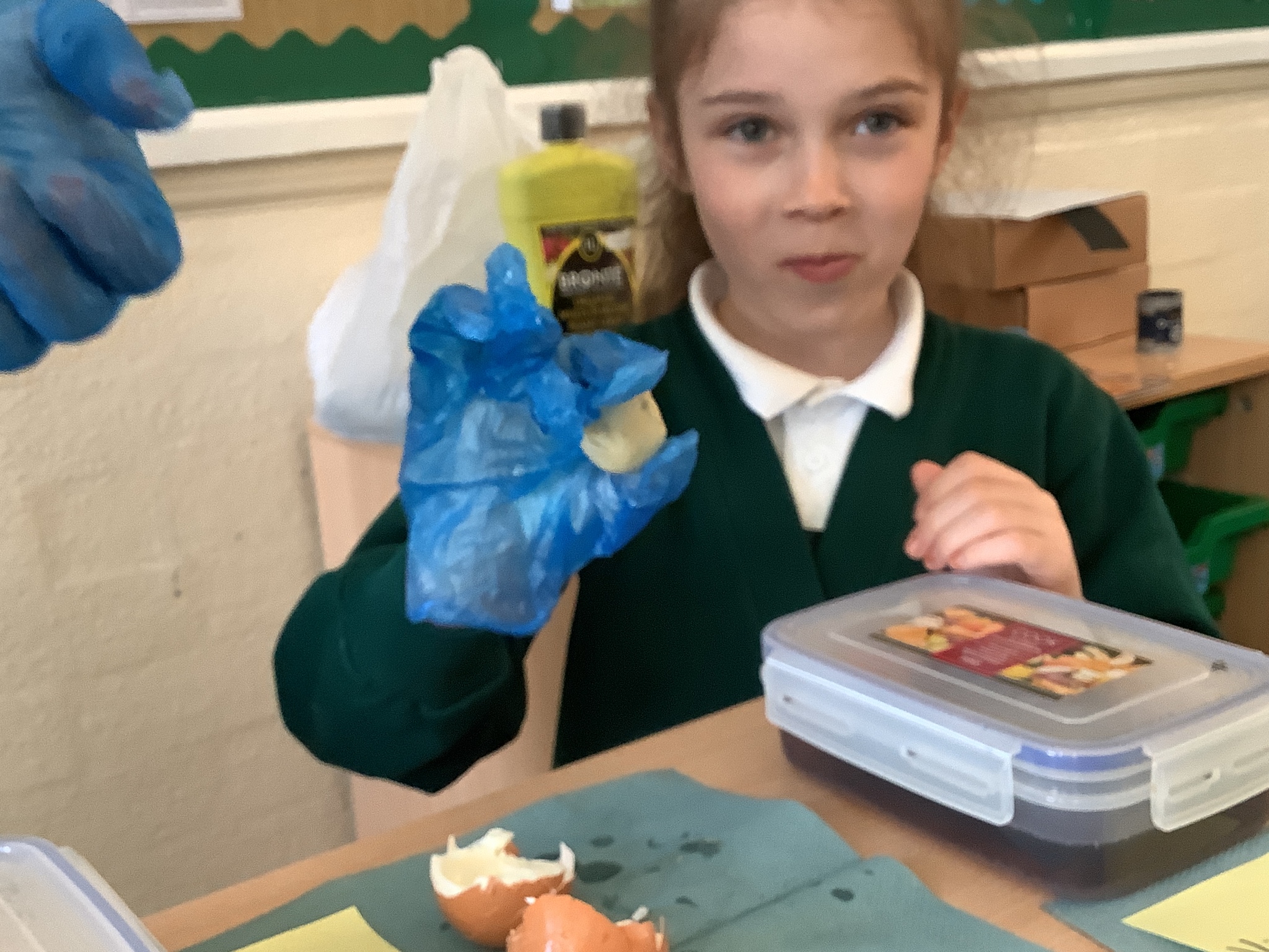 Today, Year 4 concluded their week long experiment on tooth enamel. They had been trying to discover, what the effects of sugar and acid have on tooth decay. To complete the experiment, they used boiled eggs because the shell can be used to represent the enamel on teeth. Last week, children looked at a range of liquids and decided how much to put over each egg (300ml). We then left that for 7 days to see what would happen to your teeth, if you constantly drank these liquids and didn't brush your teeth.