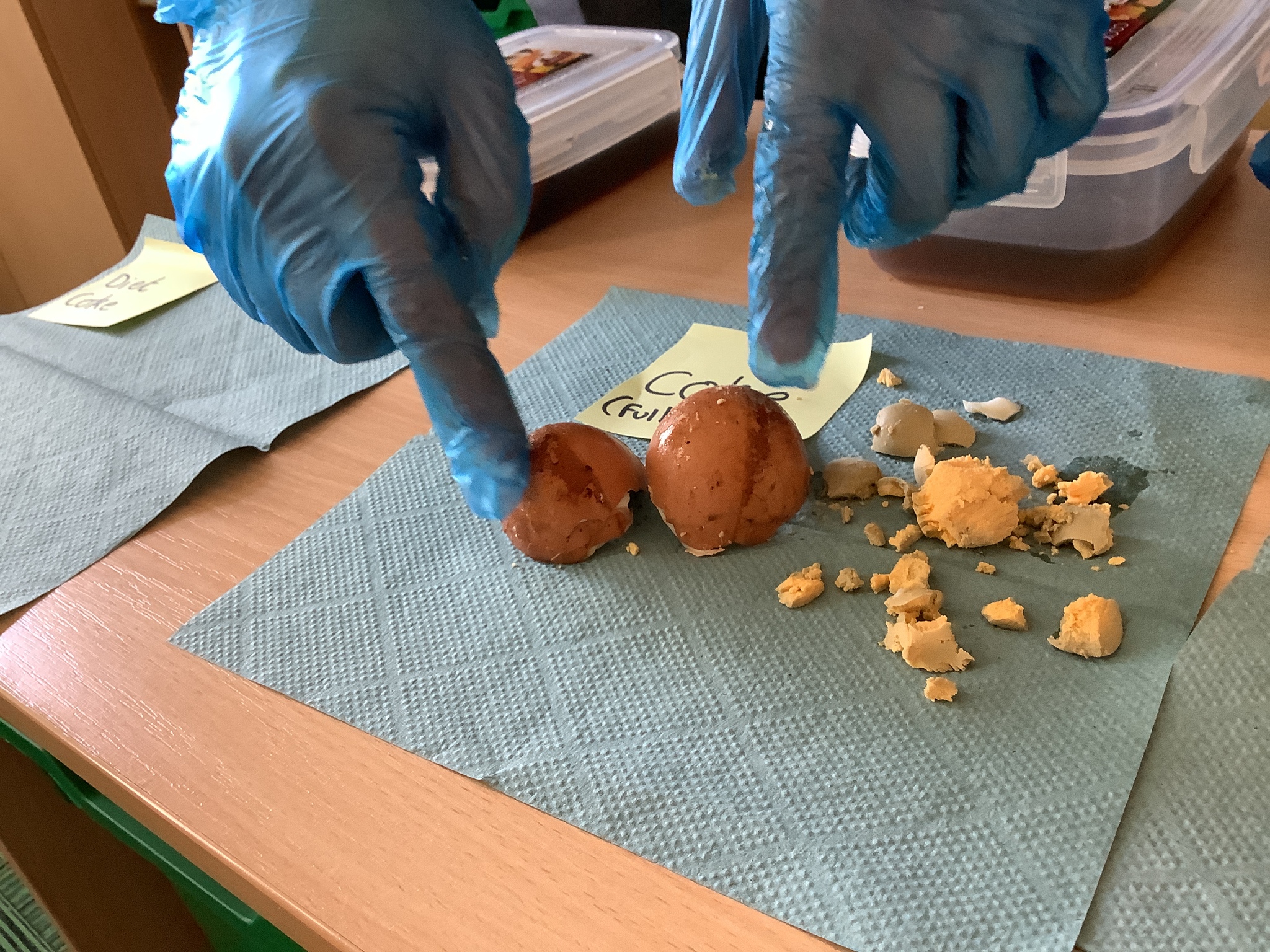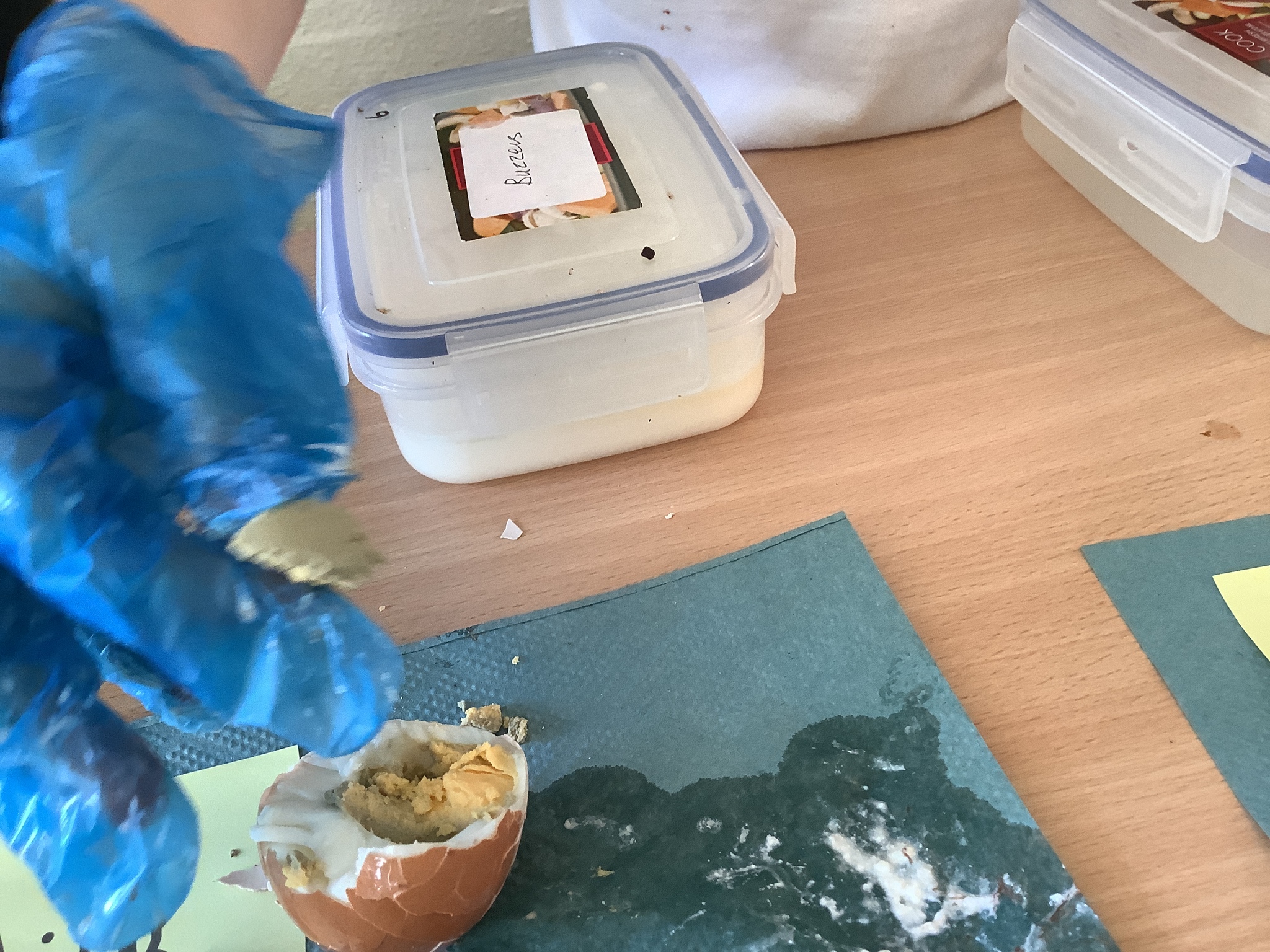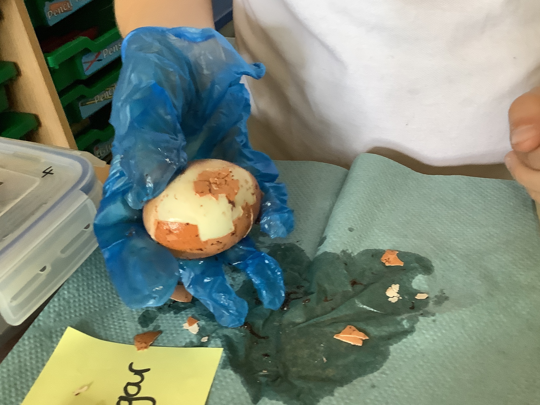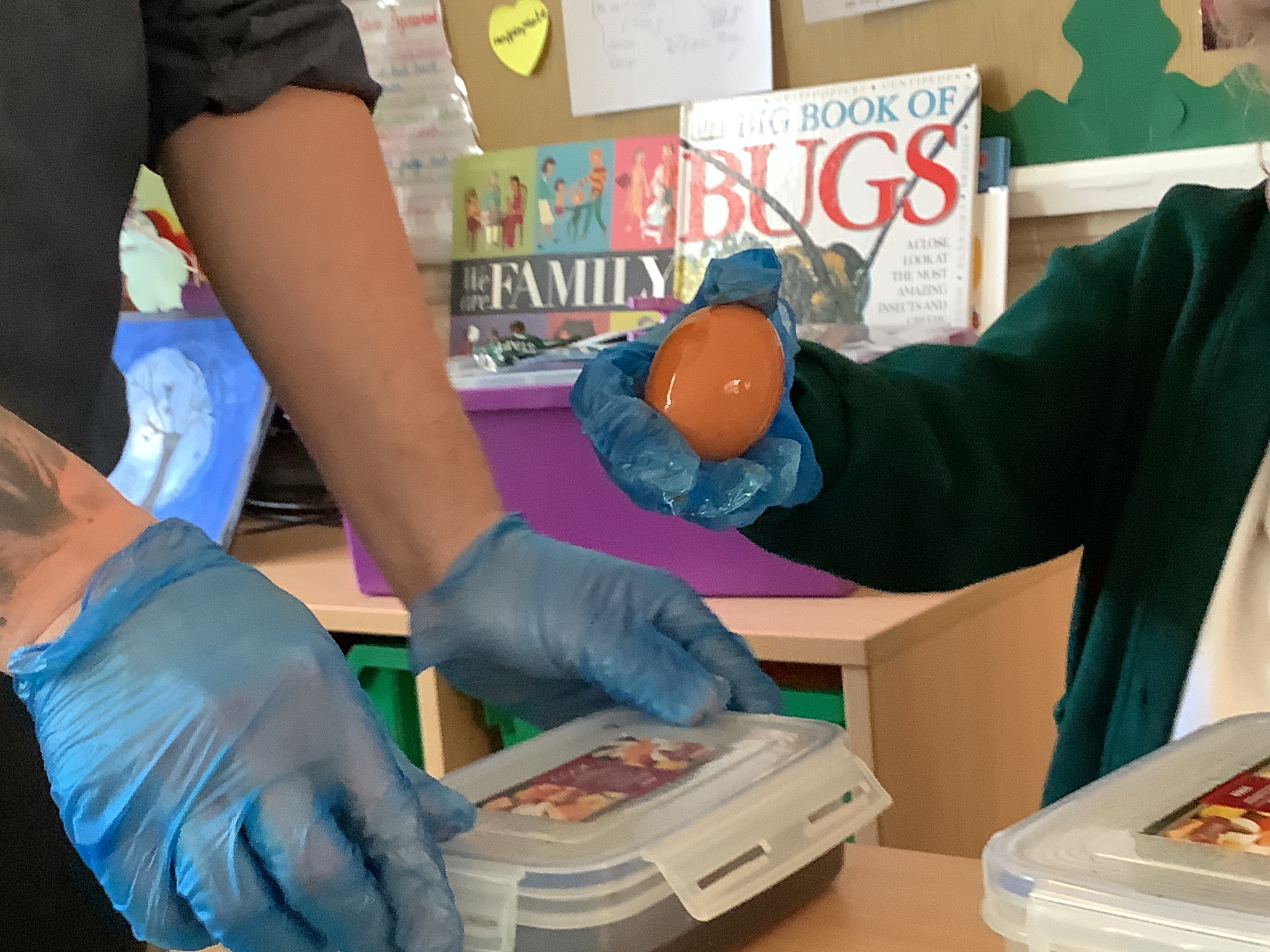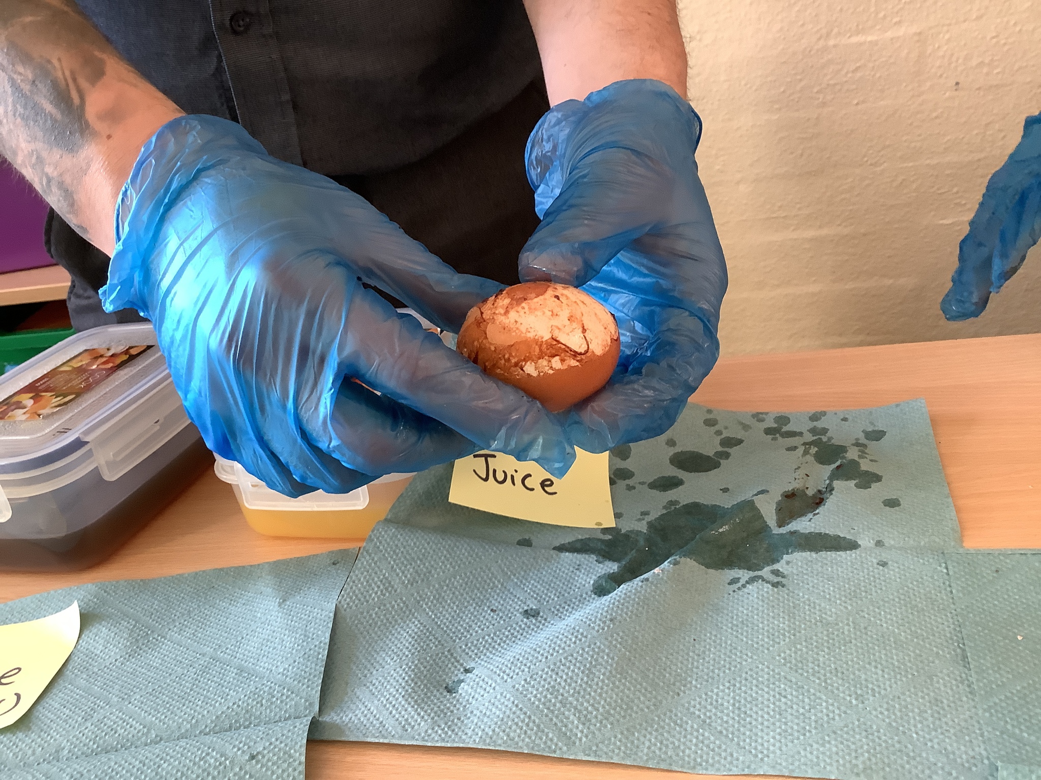 Today, Year 4 concluded their week long experiment on tooth enamel. They had been trying to discover, what the effects of sugar and acid have on tooth decay. To complete the experiment, they used boiled eggs because the shell can be used to represent the enamel on teeth. Last week, children looked at a range of liquids and decided how much to put over each egg (300ml). We then left that for 7 days to see what would happen to your teeth, if you constantly drank these liquids and didn't brush your teeth.