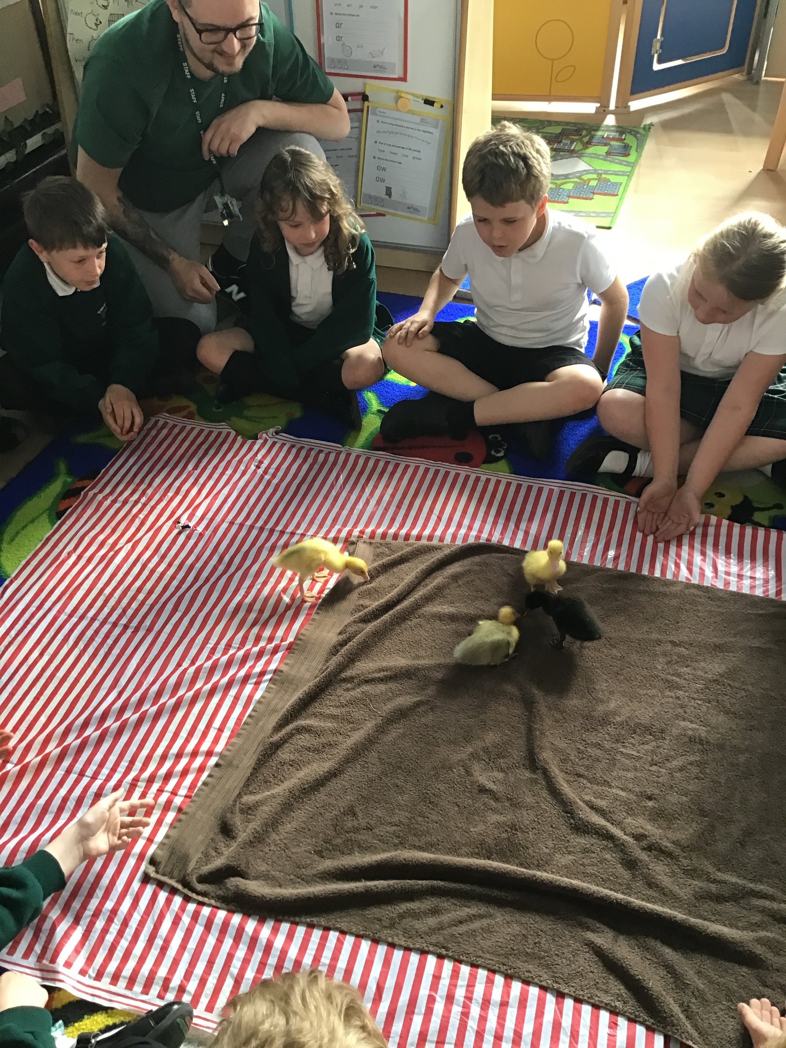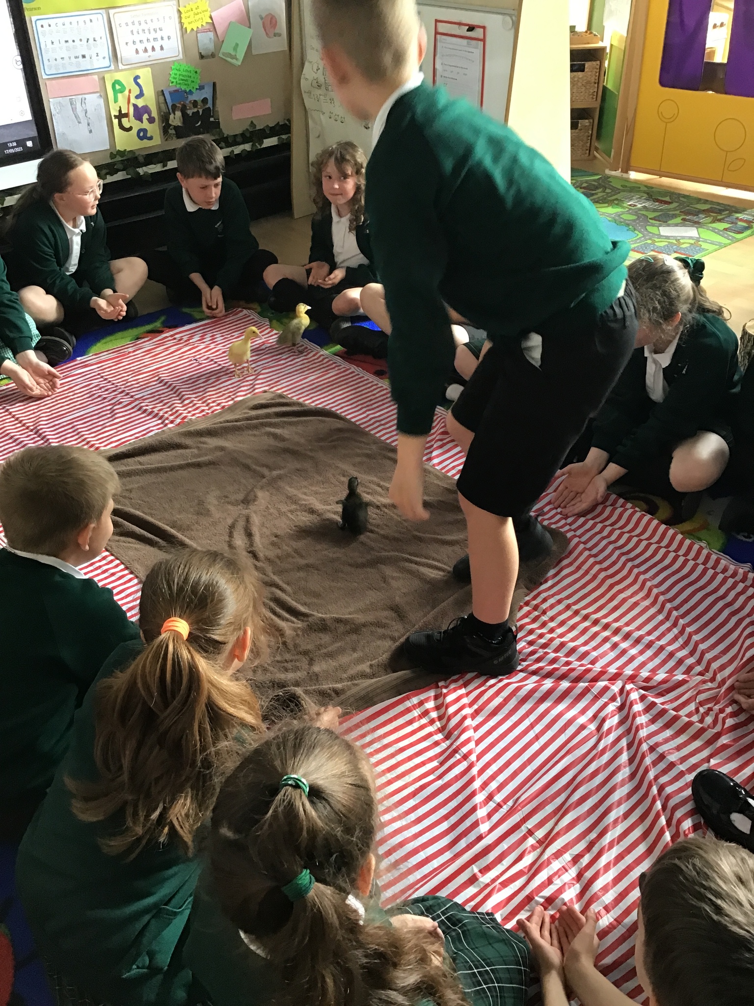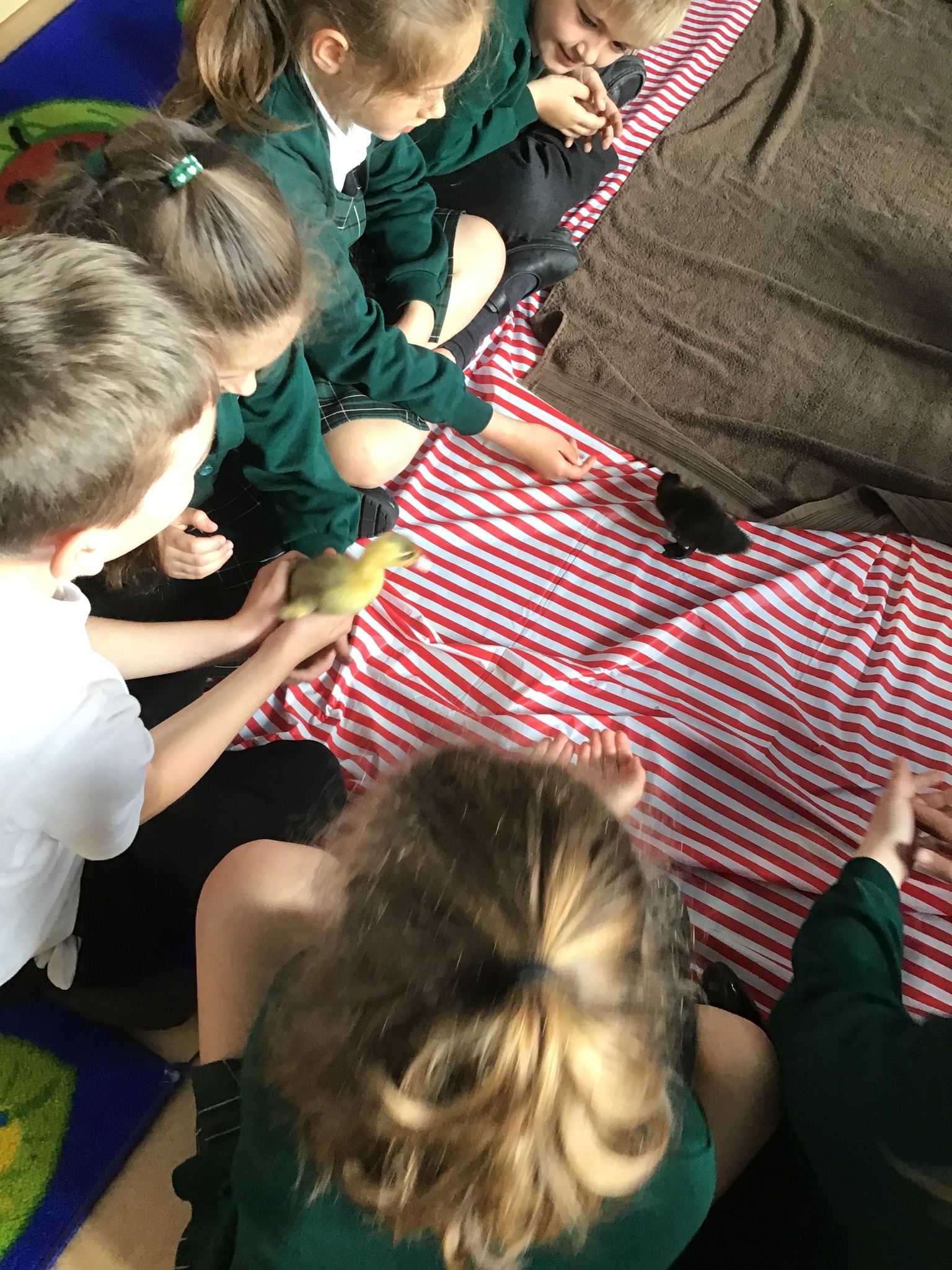 The children loved being away from our classroom to learn about ducks. We had our duck expert, Elliot, who was able to share with the class how to look after the ducks and how to hold them properly, to ensure they came to no harm. We just didn't realise how fast their digestive system worked until we saw all the mess on the floor!