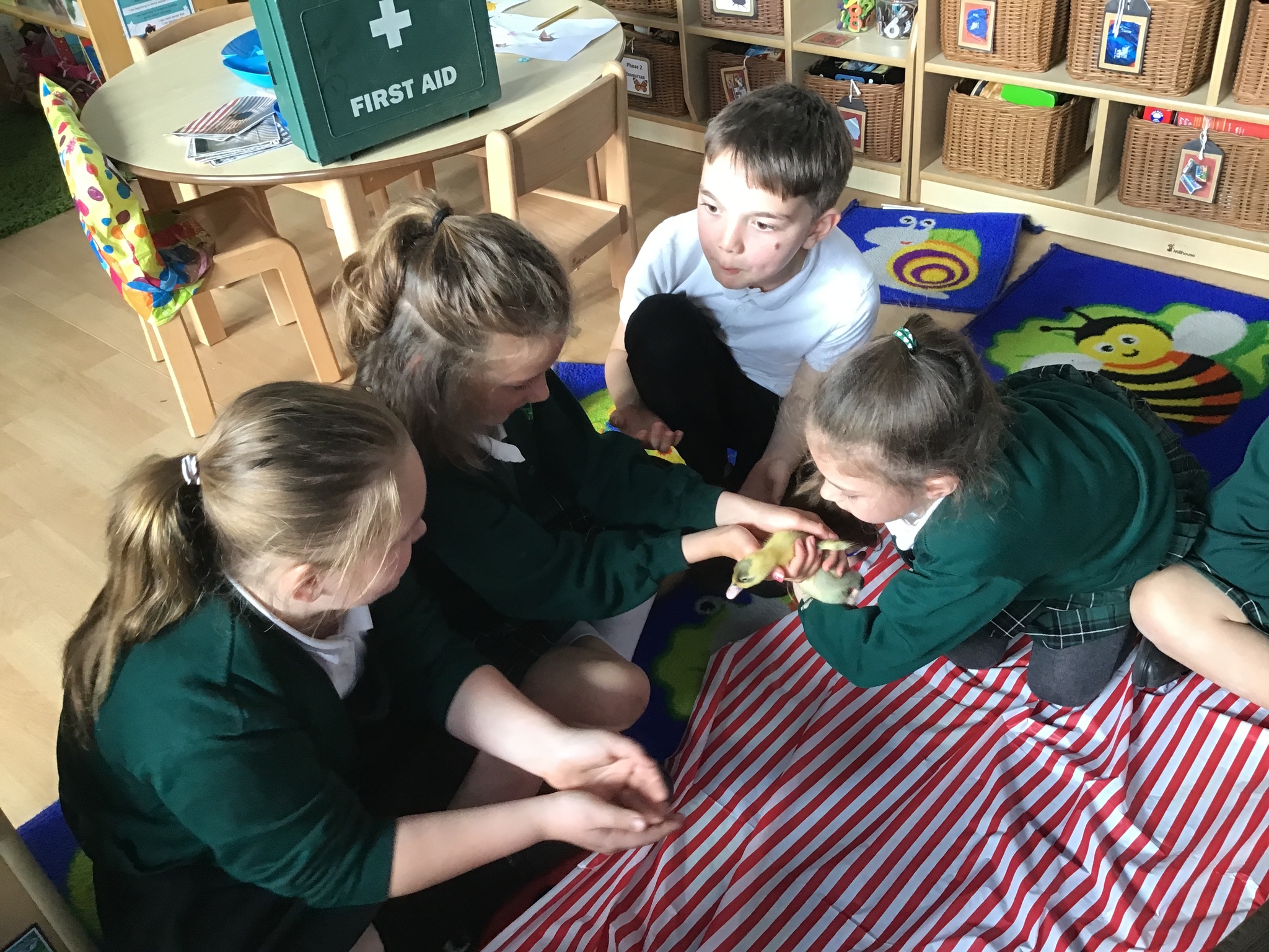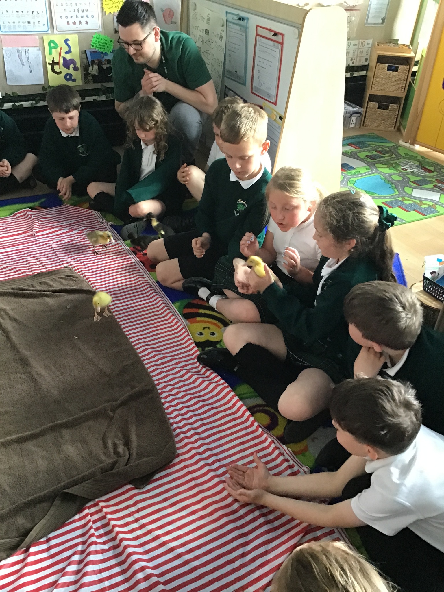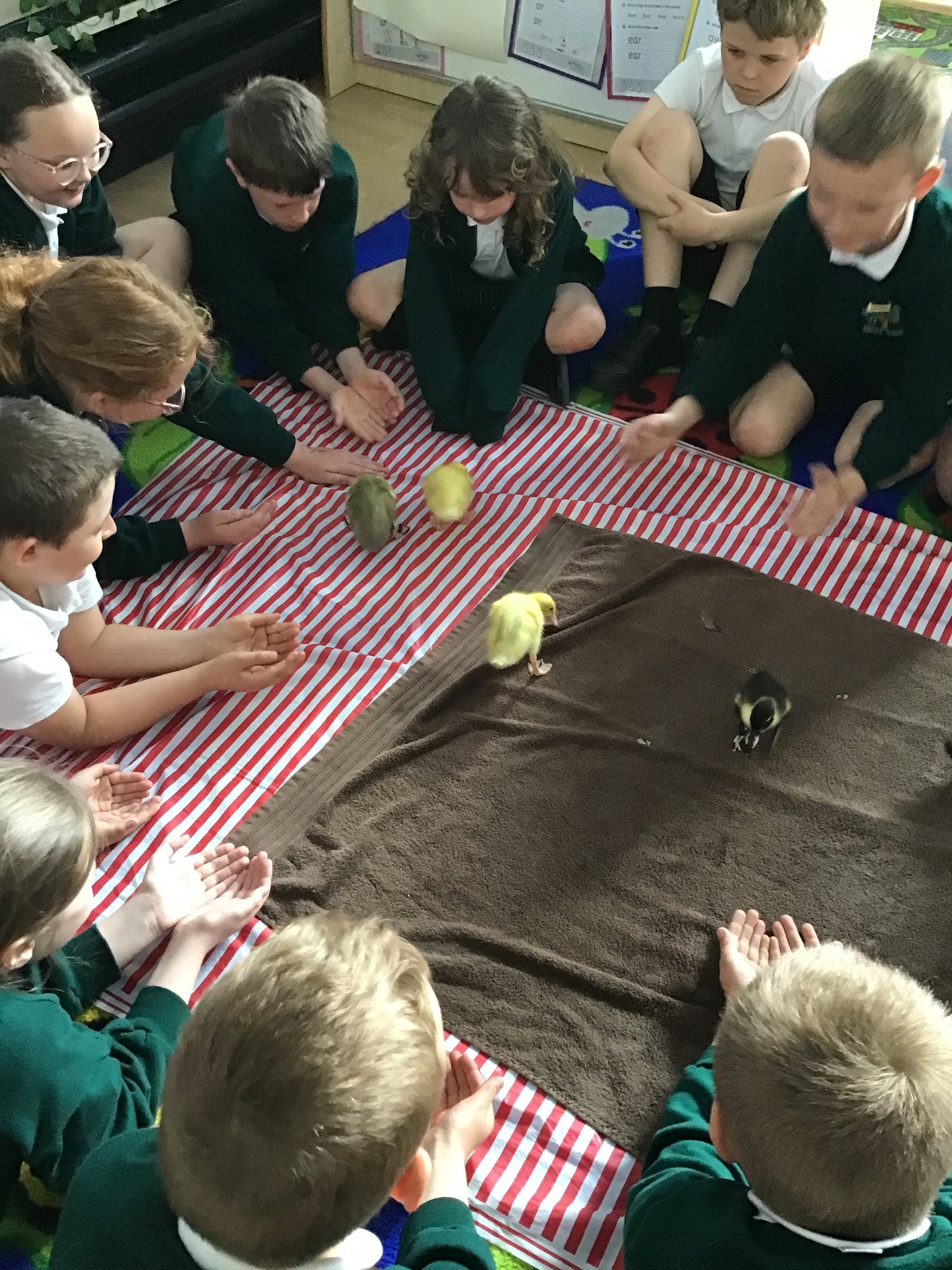 The children loved being away from our classroom to learn about ducks. We had our duck expert, Elliot, who was able to share with the class how to look after the ducks and how to hold them properly, to ensure they came to no harm. We just didn't realise how fast their digestive system worked until we saw all the mess on the floor!