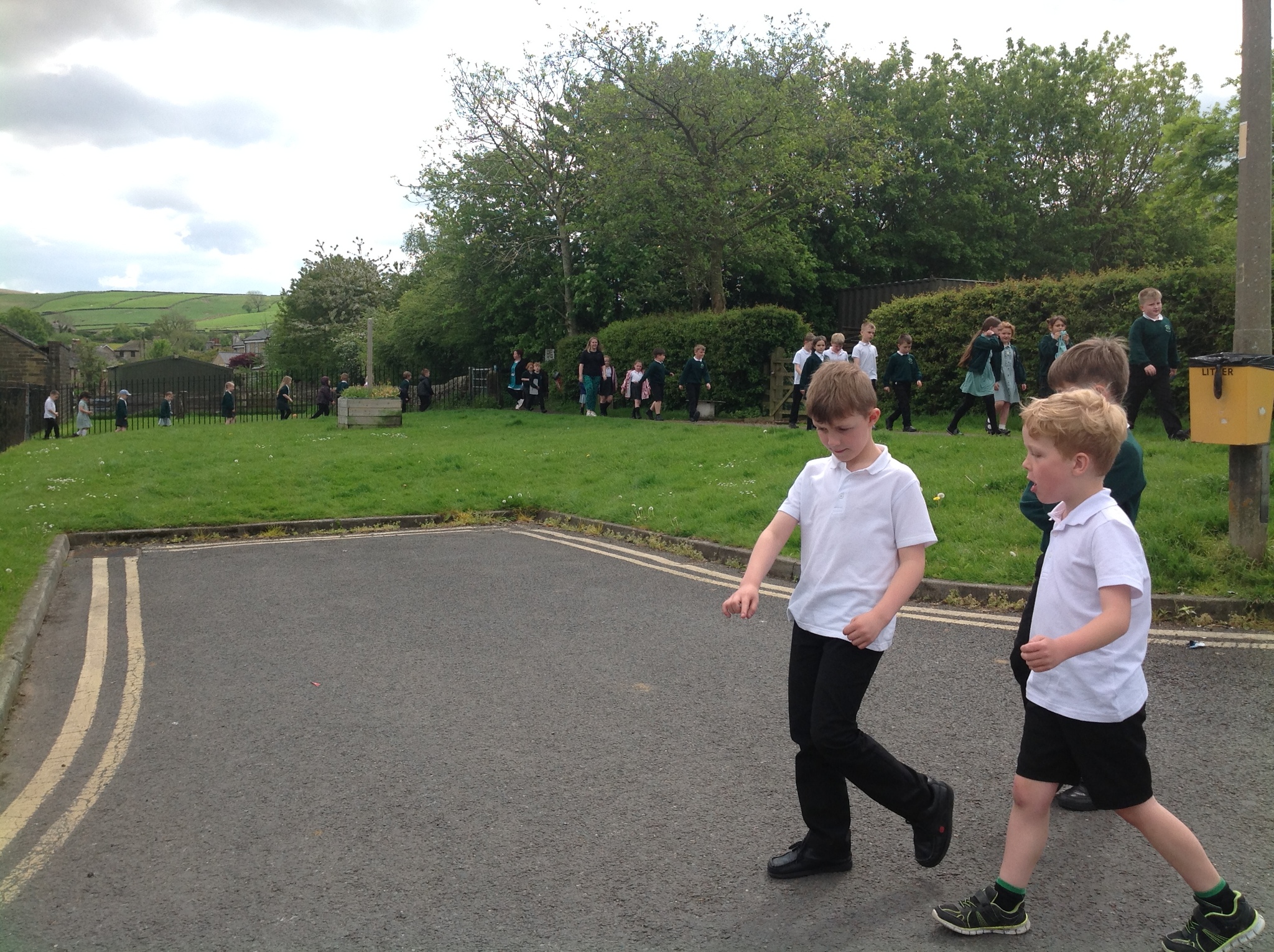This afternoon we had a walk around school to practtise road safety, walking with friends and to let children experience the health benefits of a walk to school.