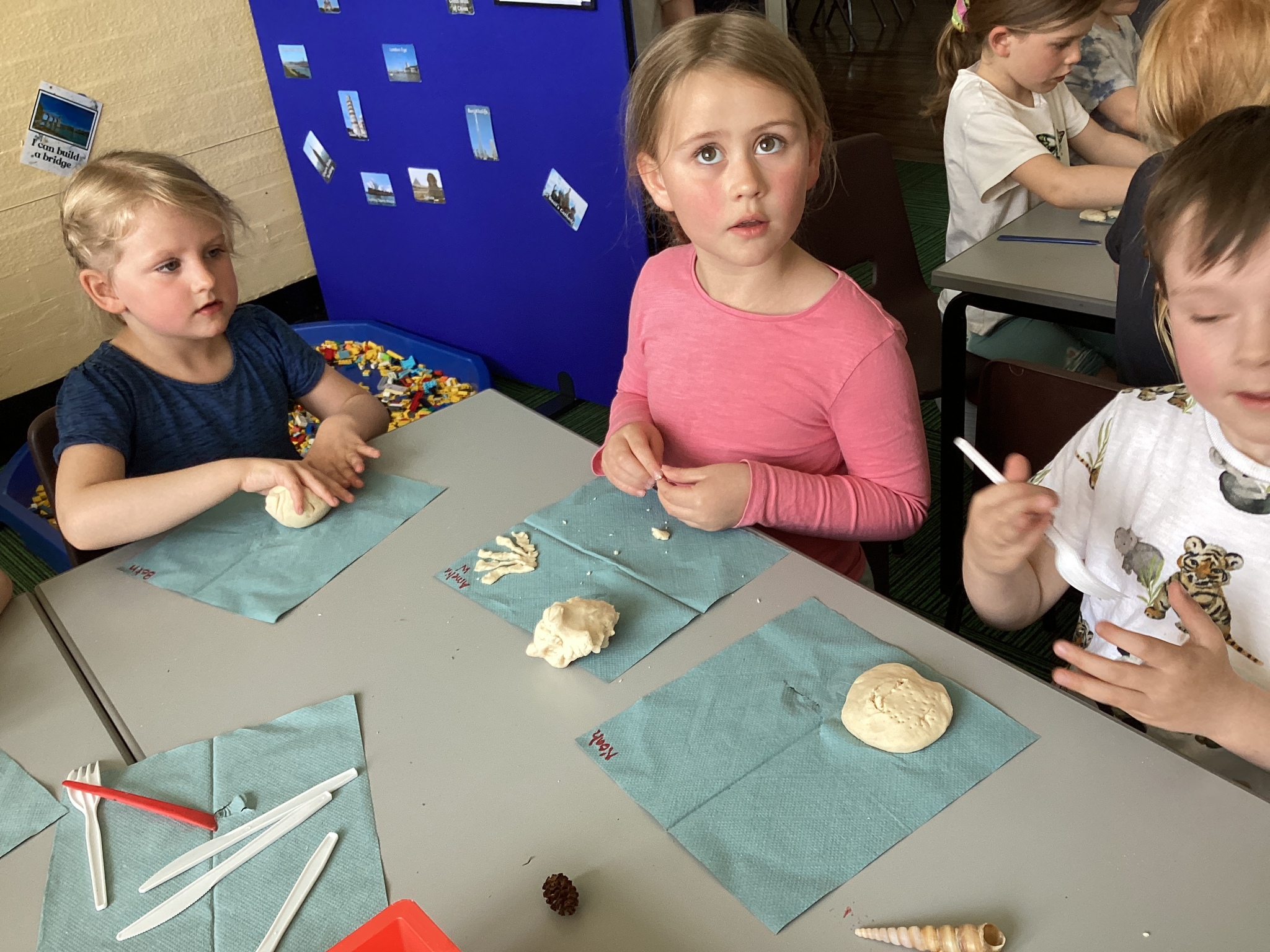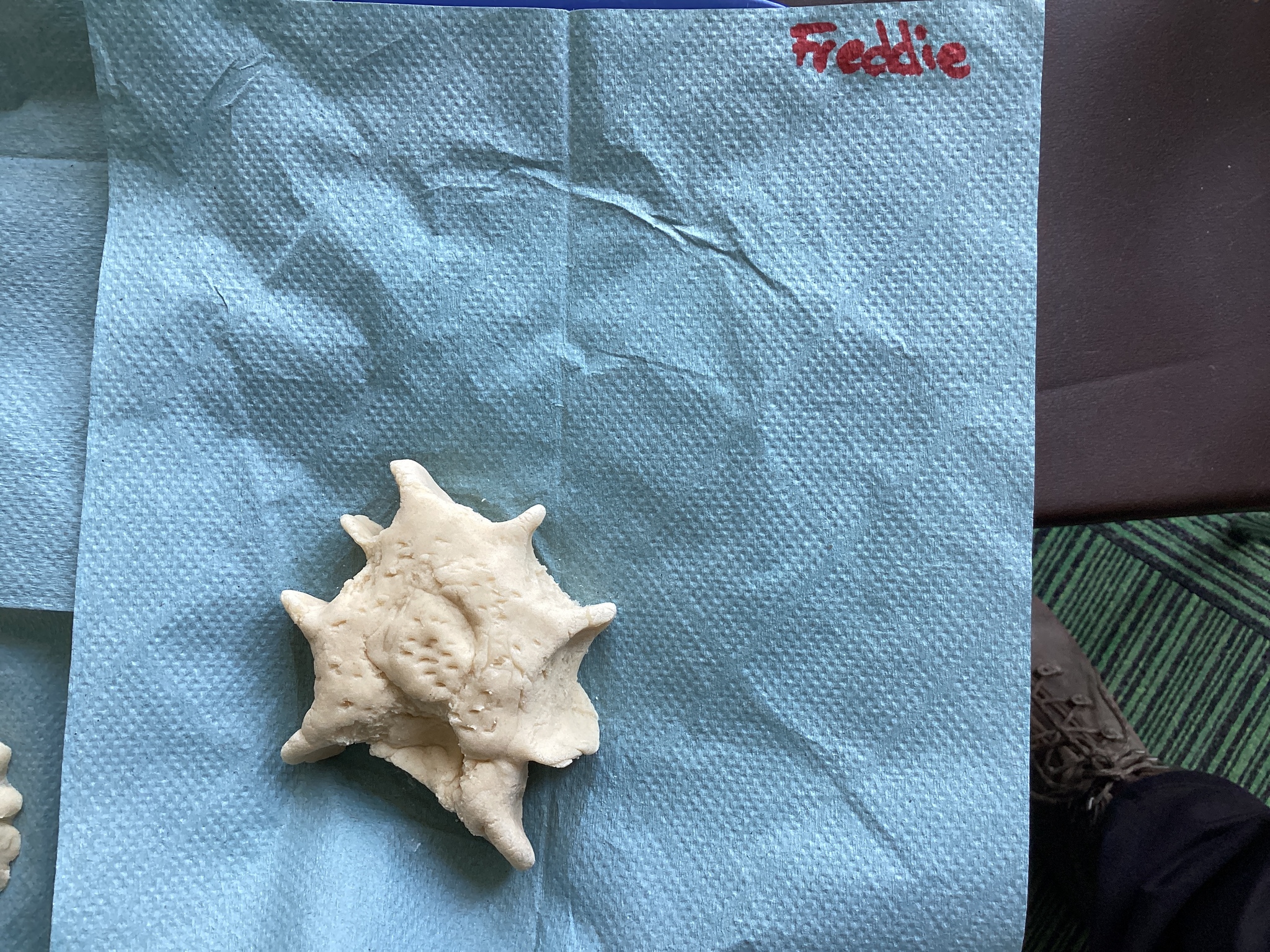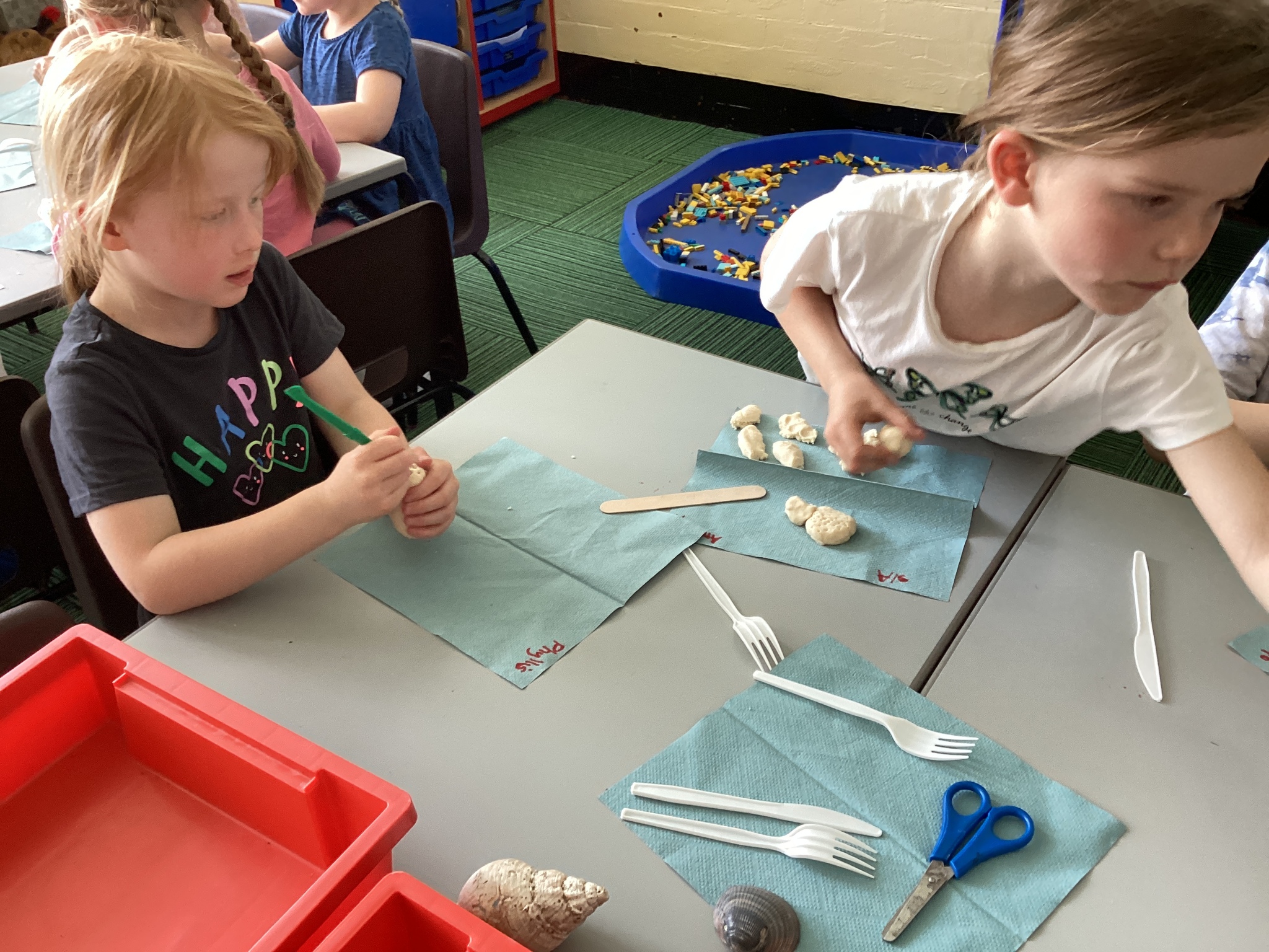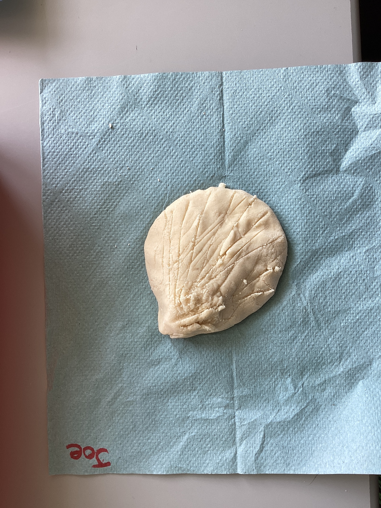 We used salt dough to craft the shape of a natural object, such as a shell, flower, pinecone, leaf or mushroom.
