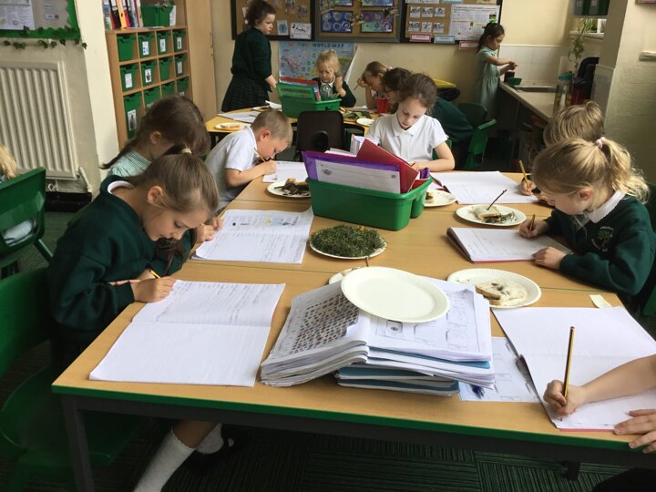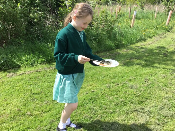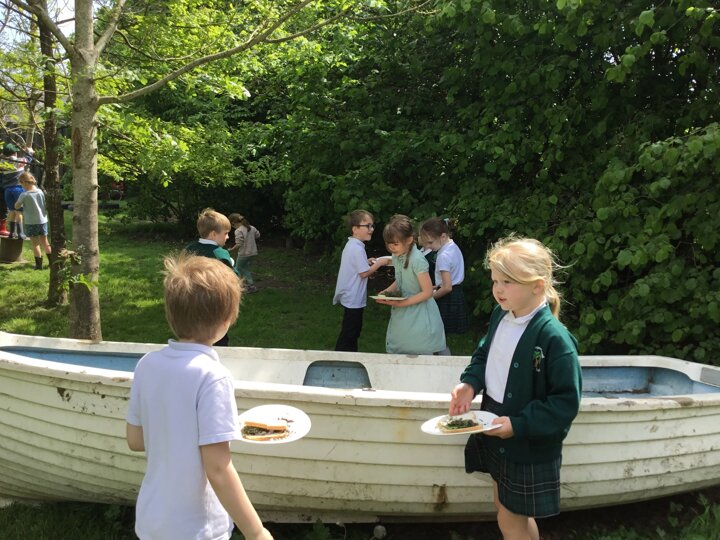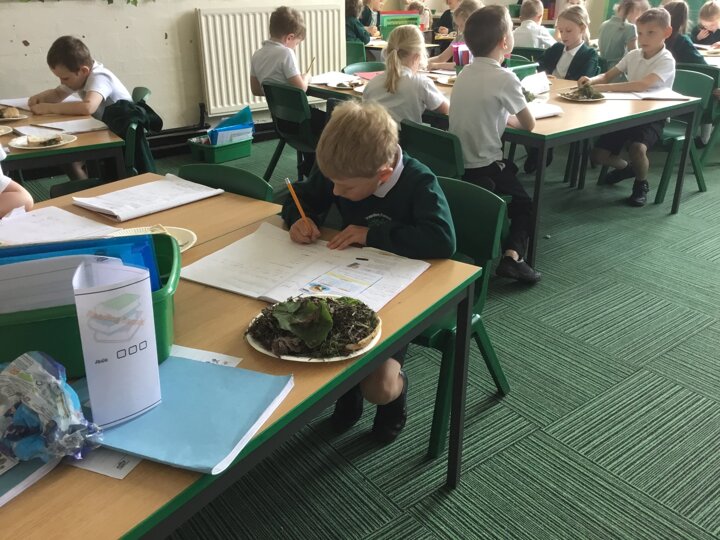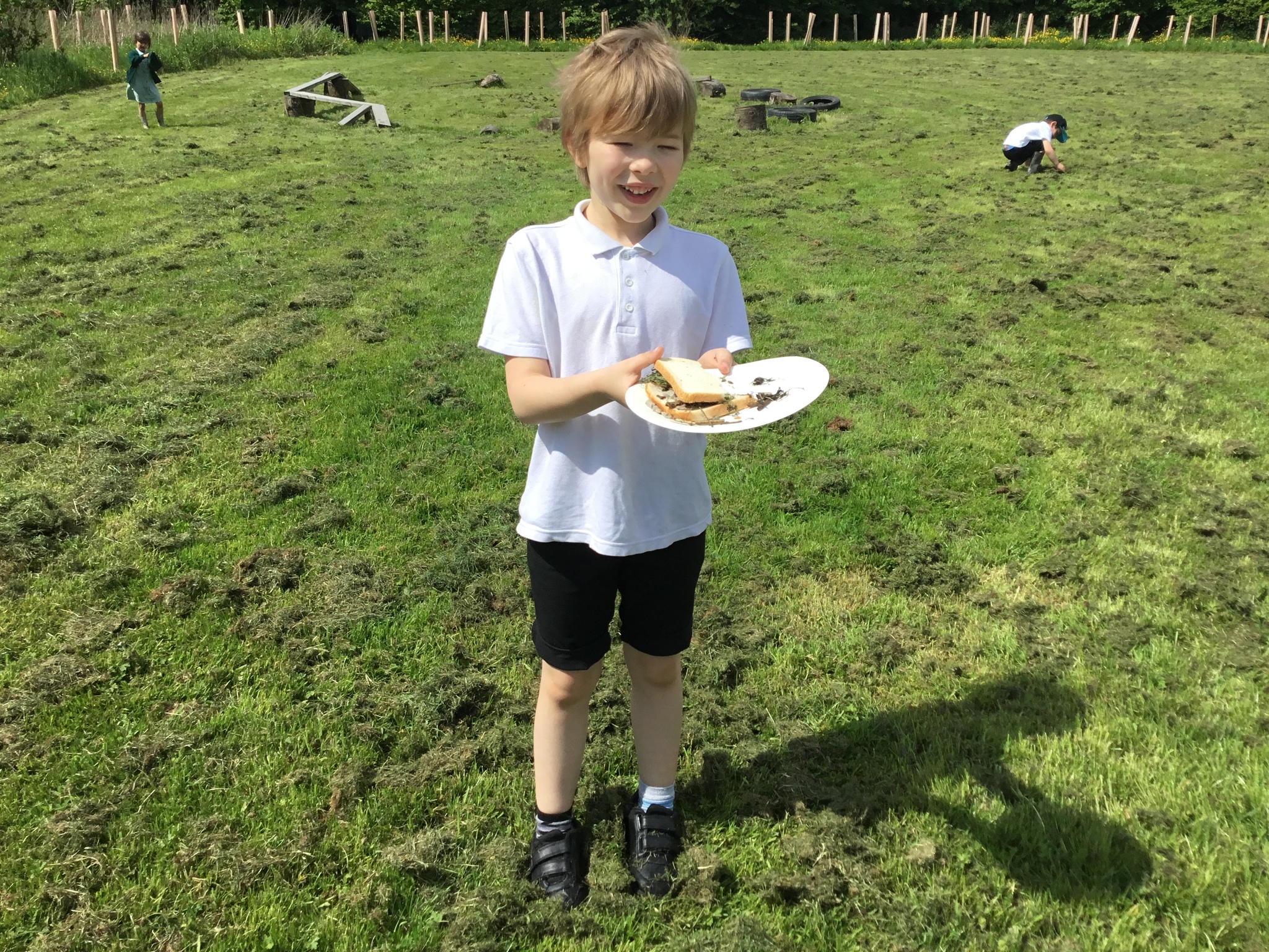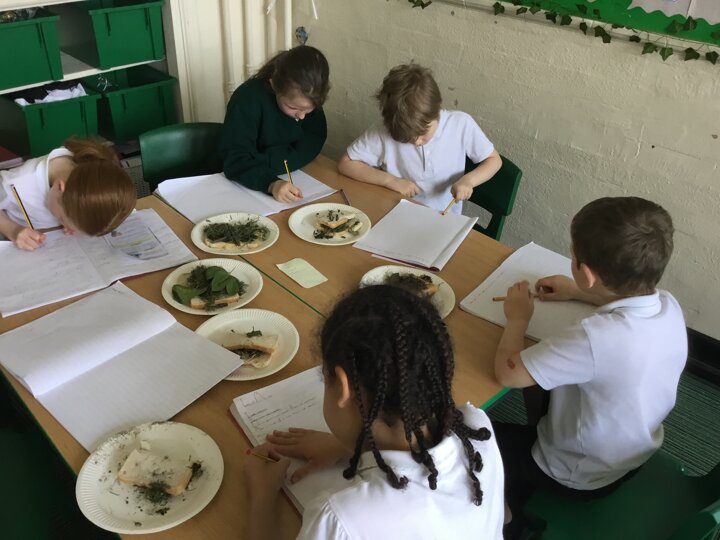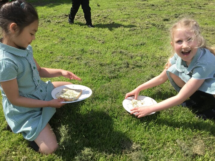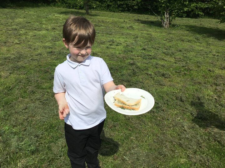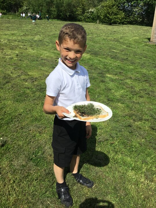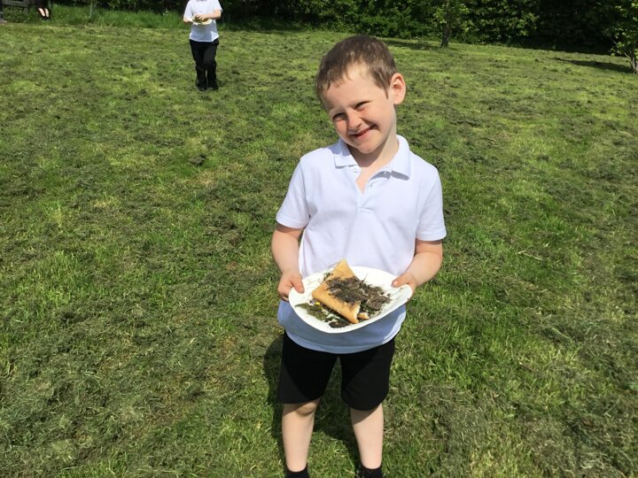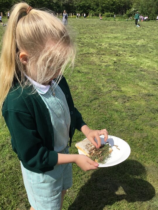 Today in our English lesson, Year 2 went up to the forest school field armed with a piece of bread ready to create sickening sandwiches. They collected mud, bark, grass and leaves and stuffed them onto their bread. They remembered what they did for each step and when they came back to class, they wrote instructions for how to recreate their yucky butty.