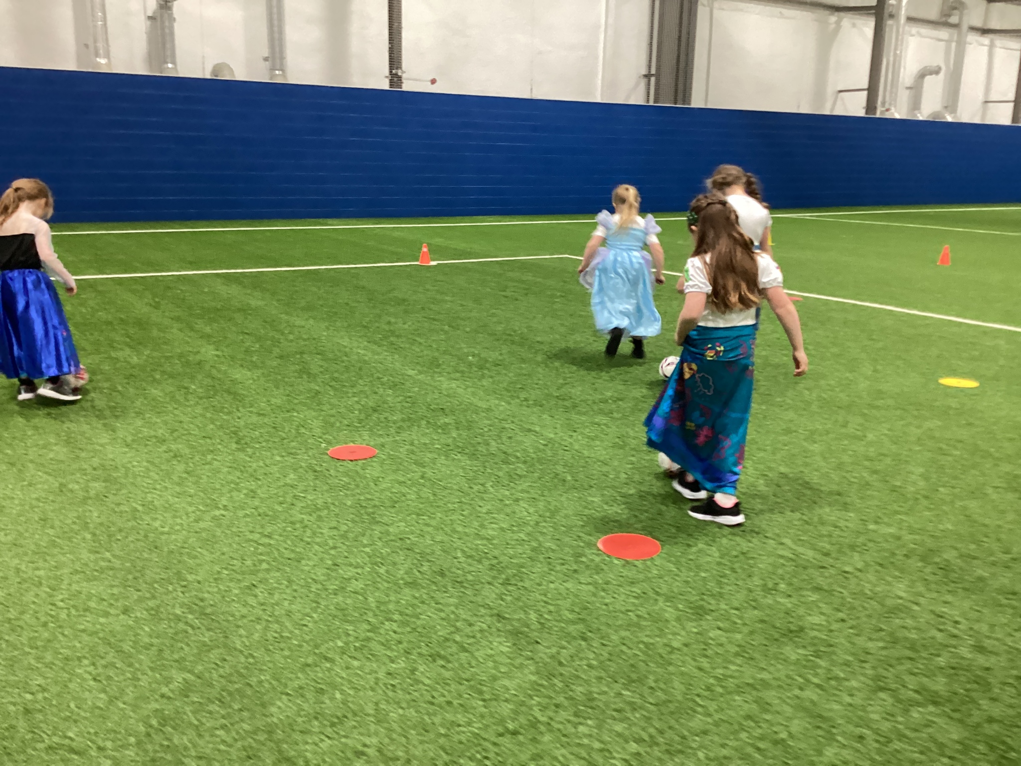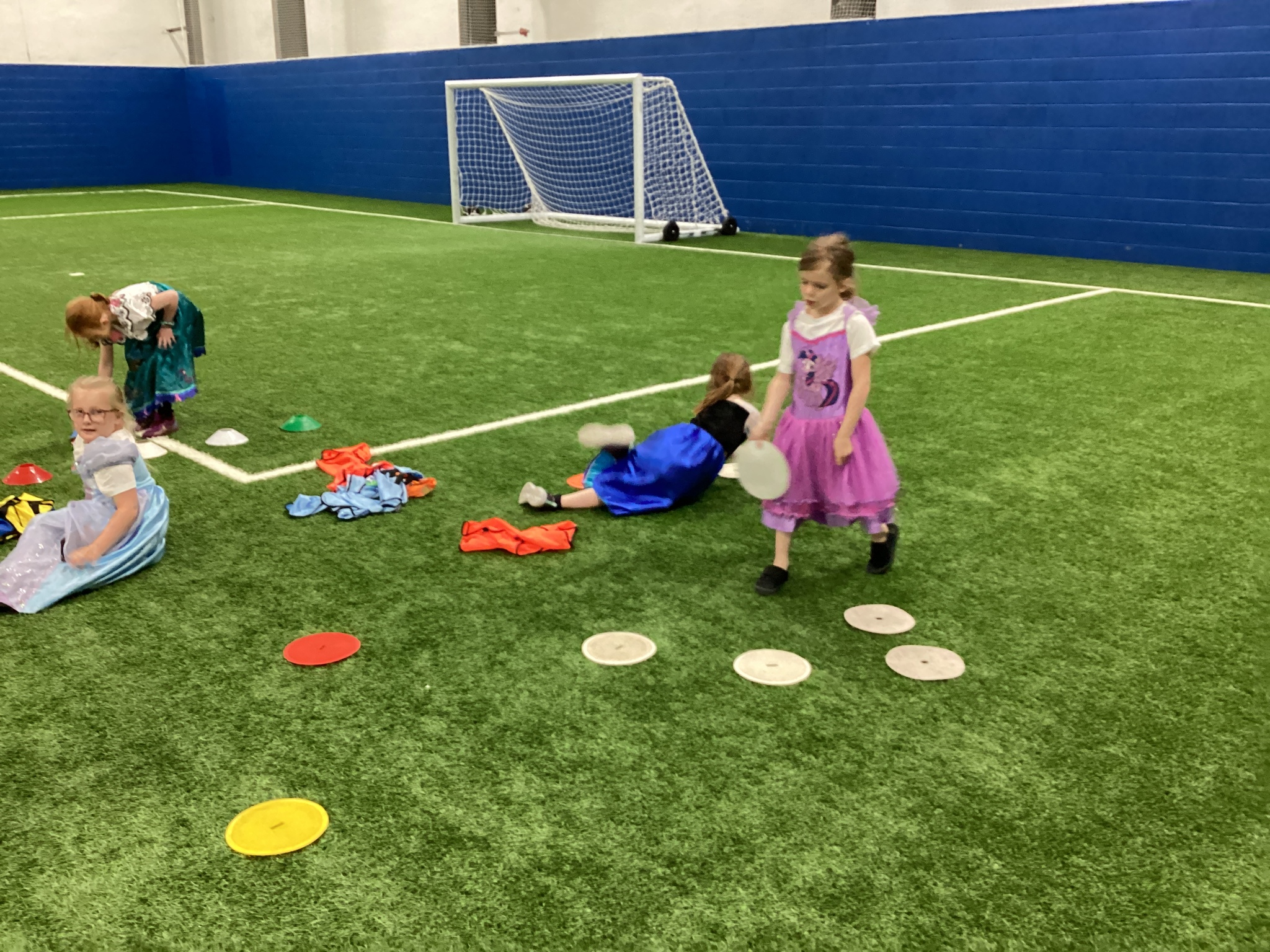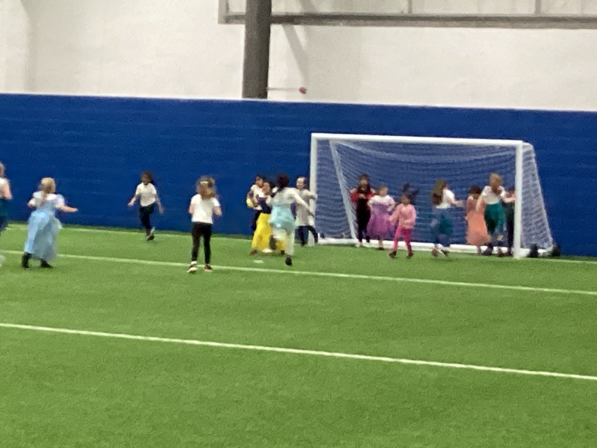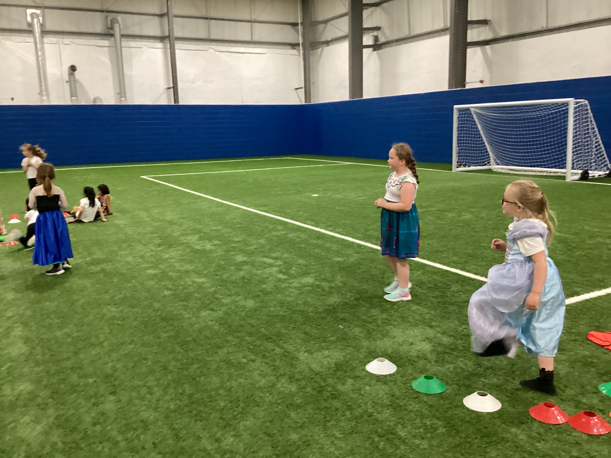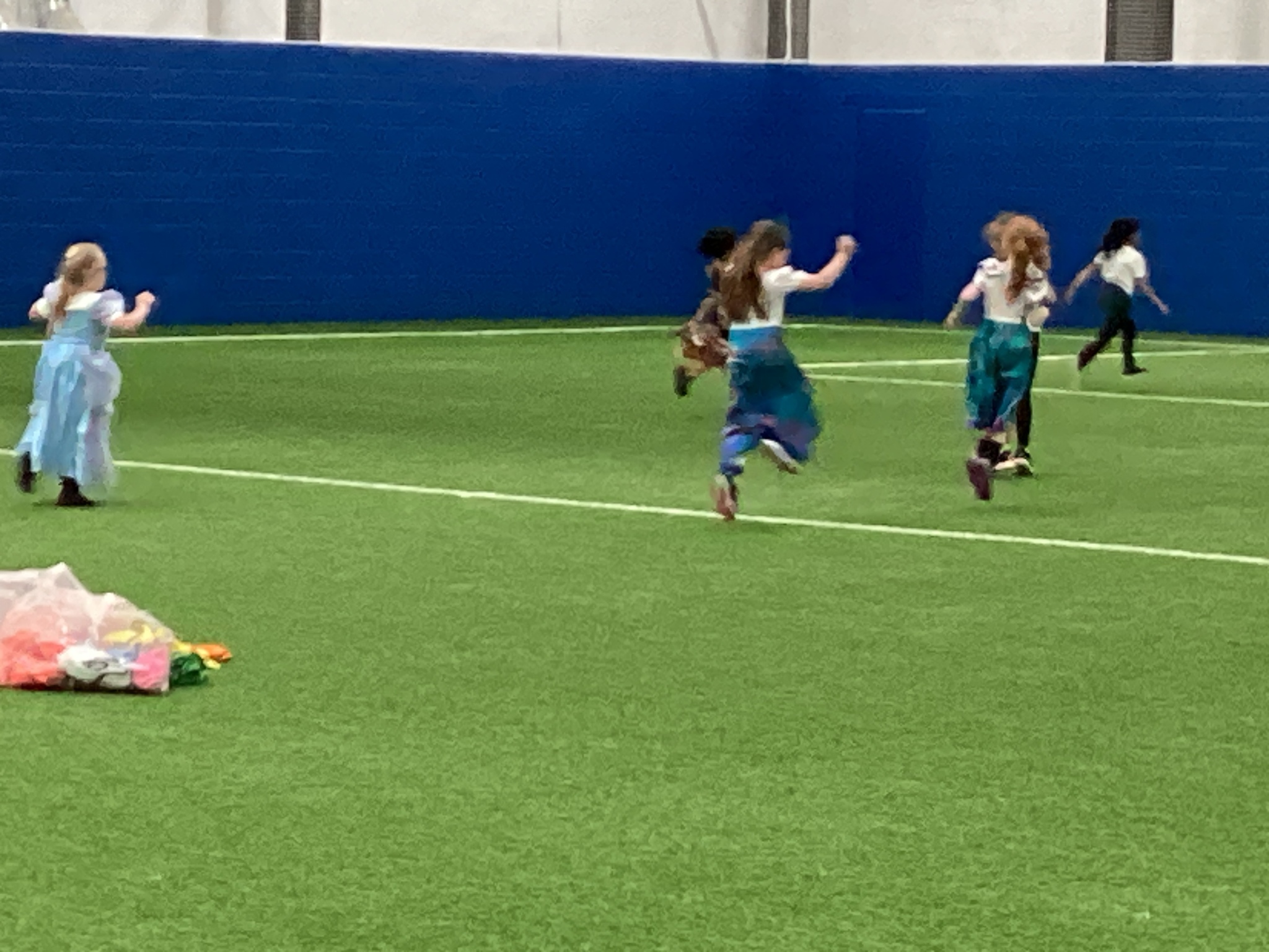 They combined Disney and football and got lots of exercise while acting out the story of Aladdin.The girls all tried really hard and played well with girls from other schools.