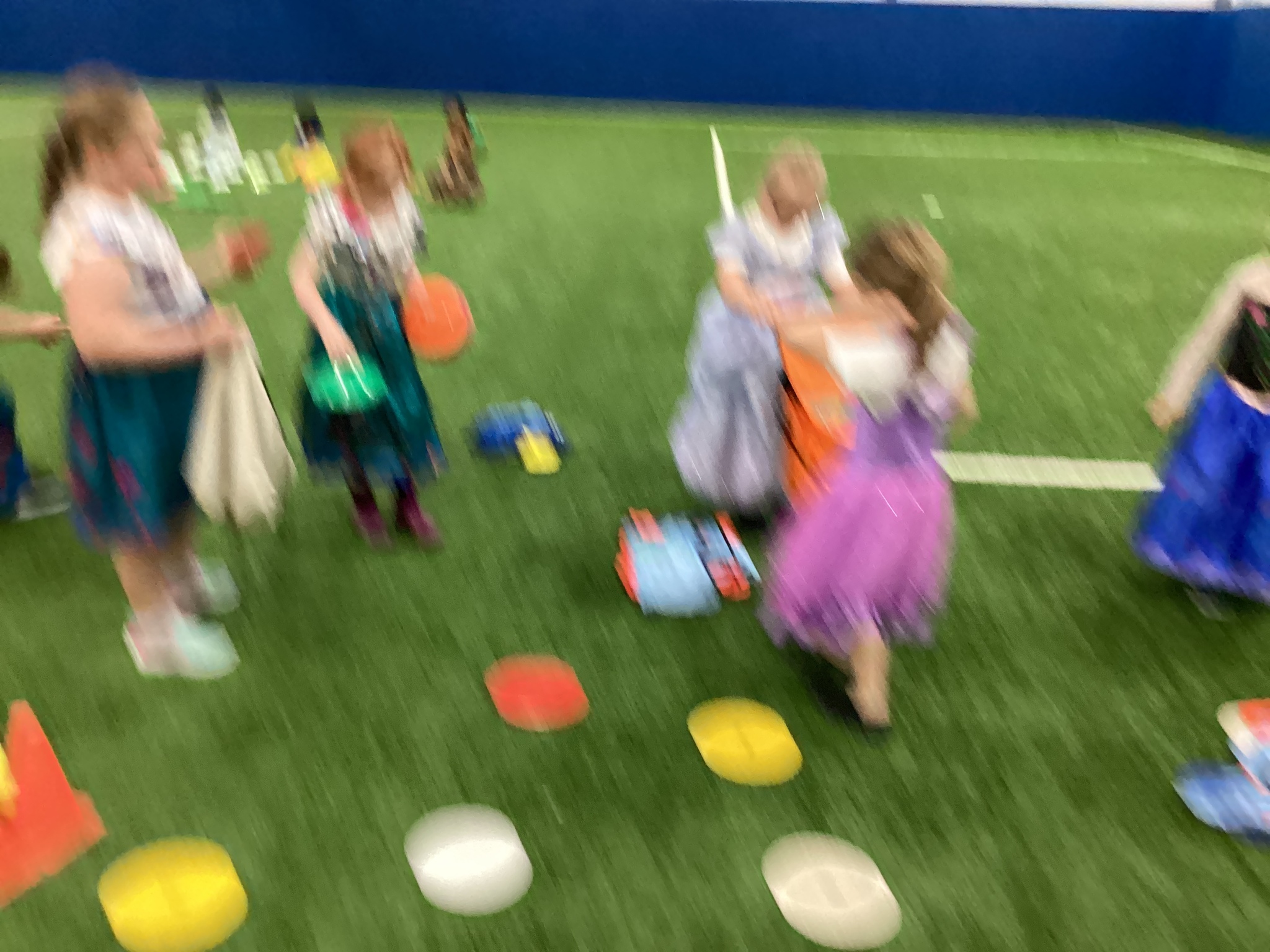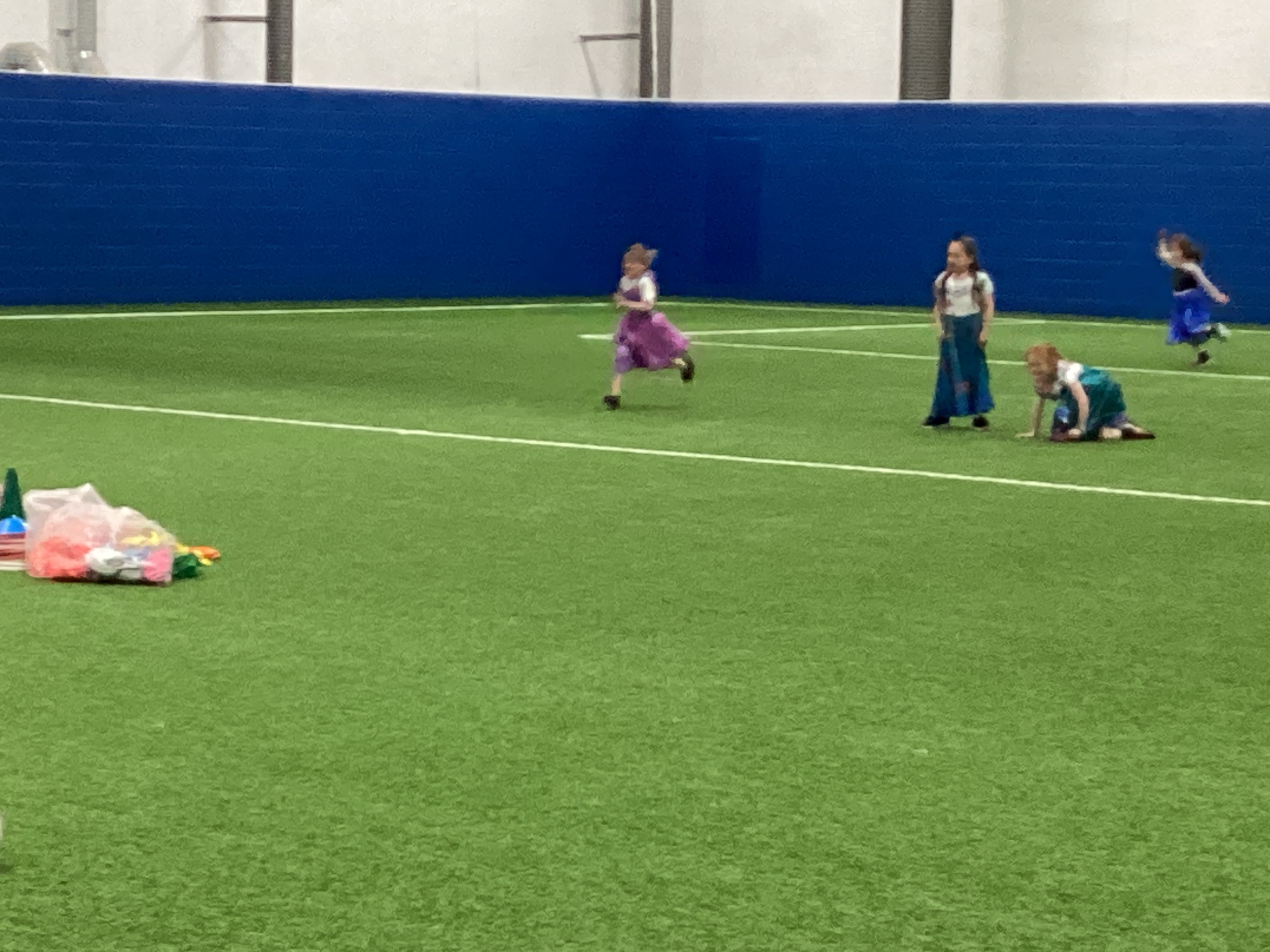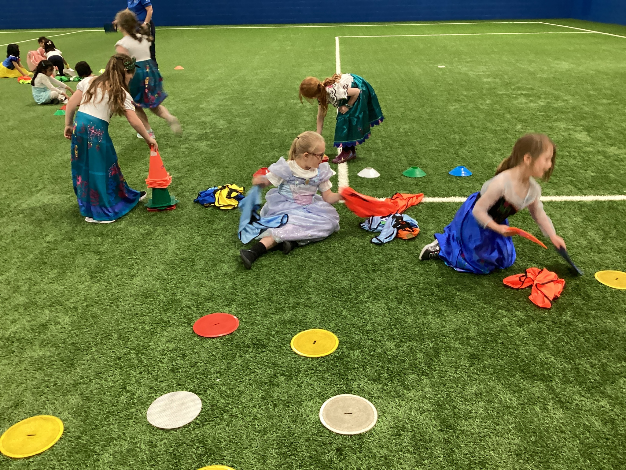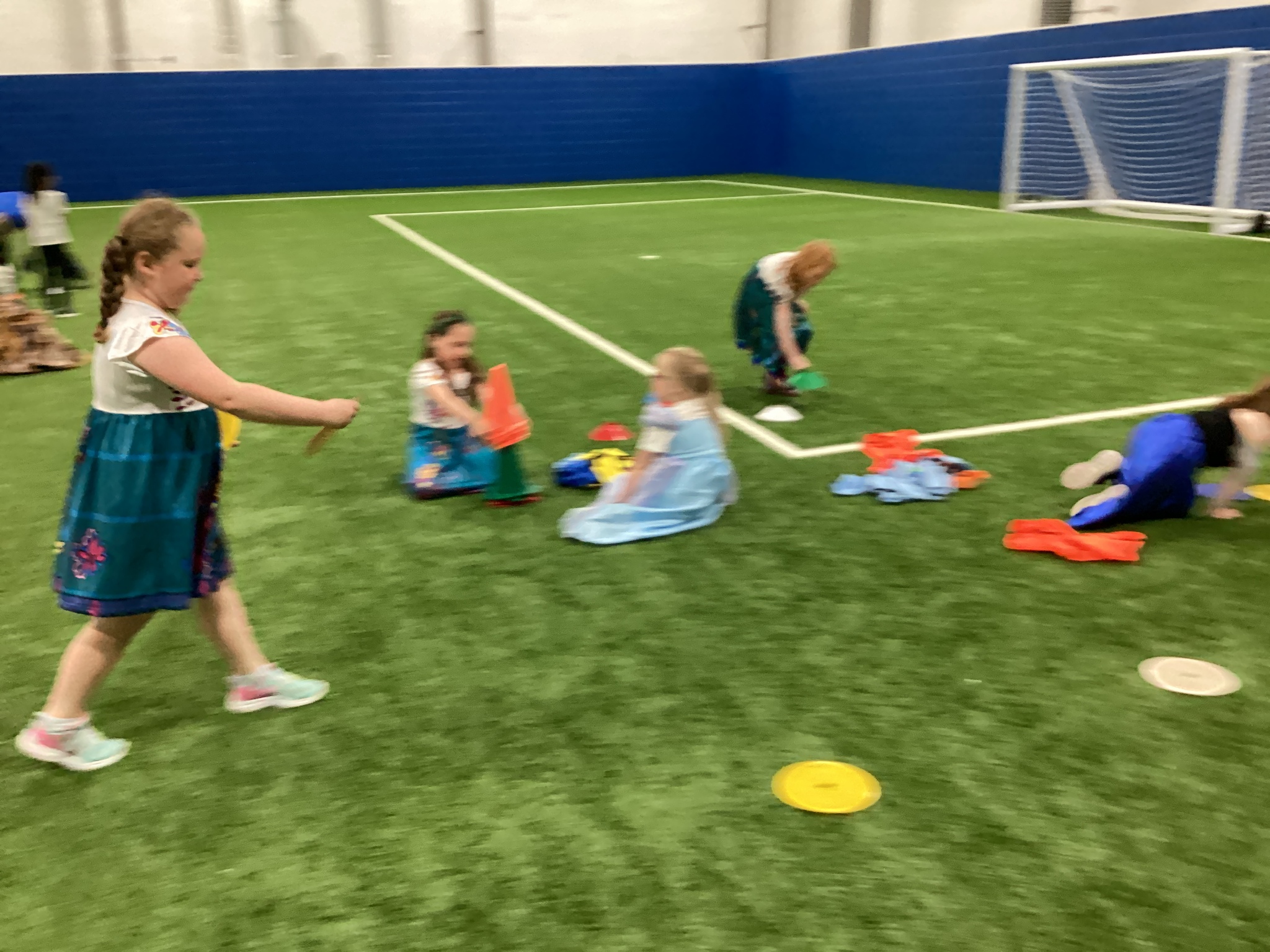 They combined Disney and football and got lots of exercise while acting out the story of Aladdin.The girls all tried really hard and played well with girls from other schools.