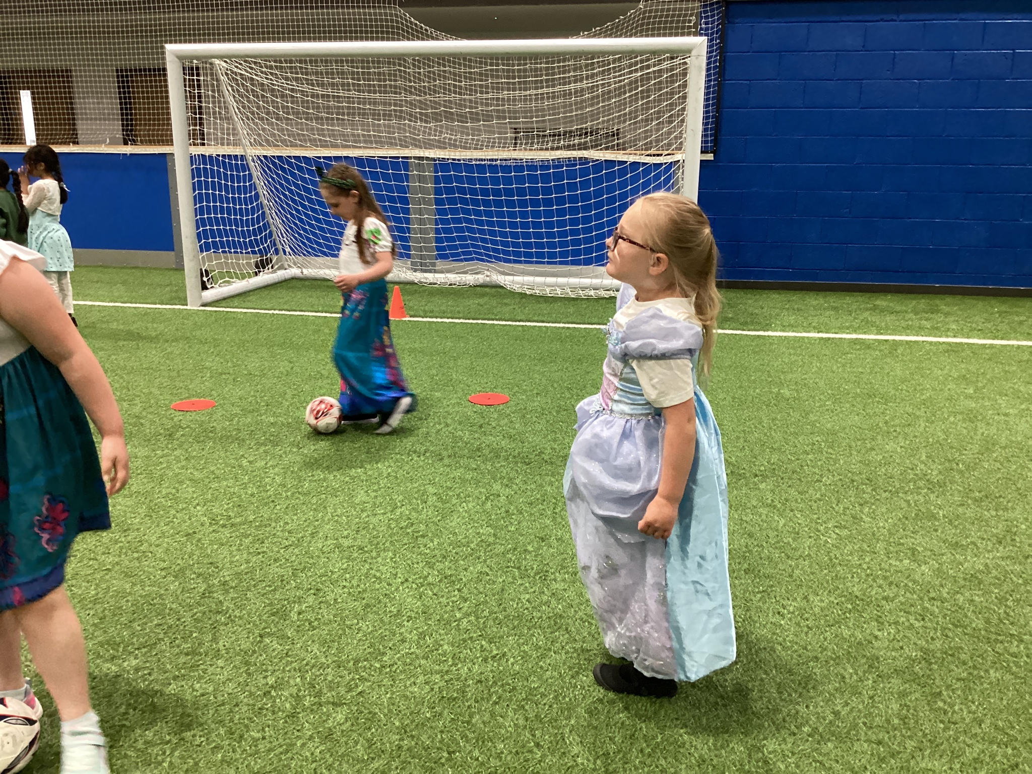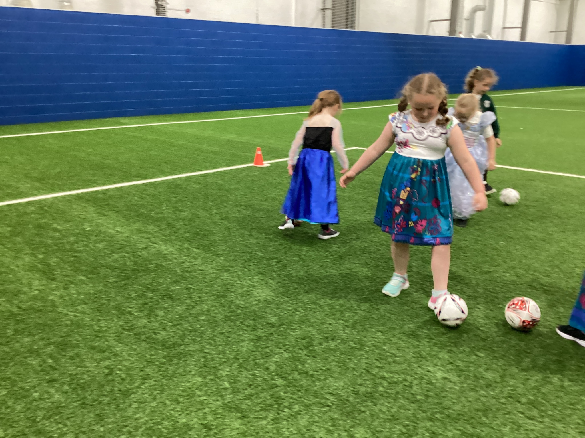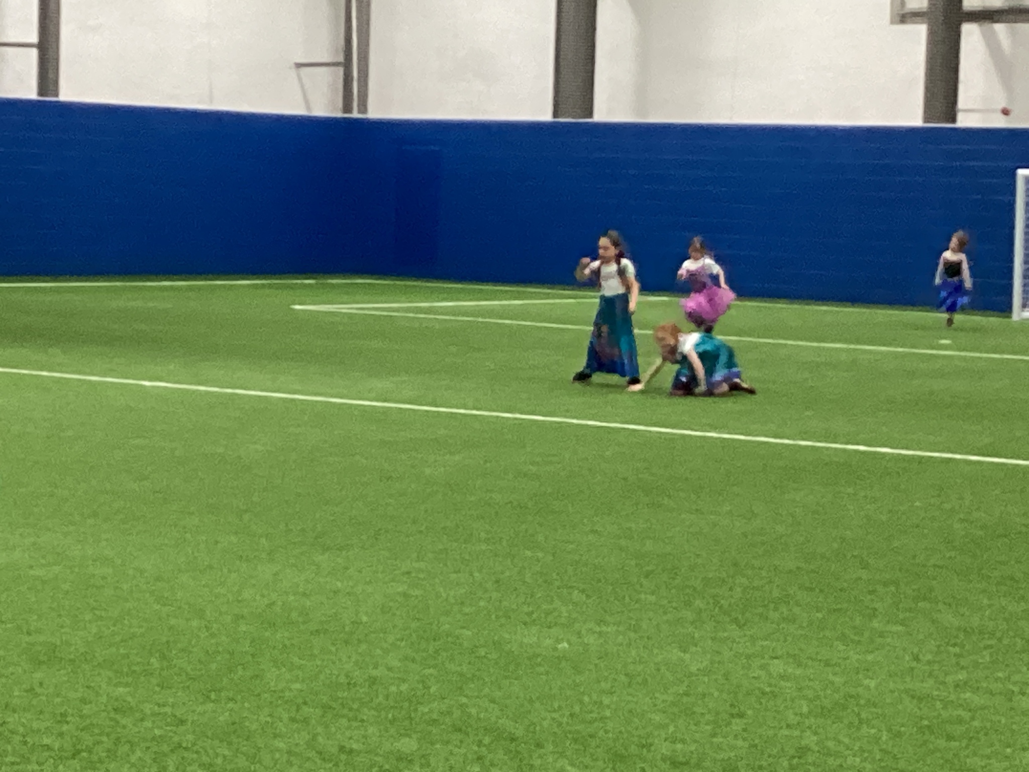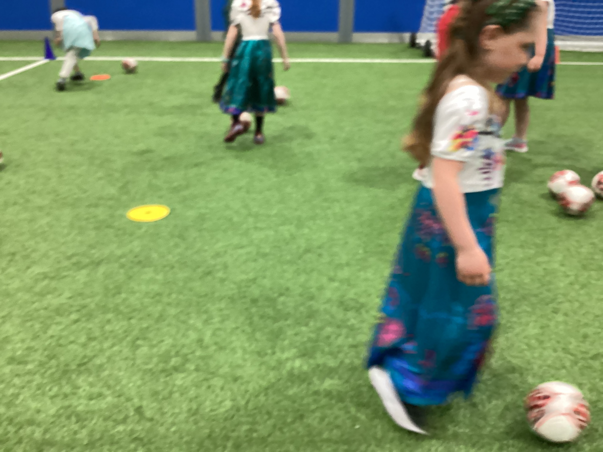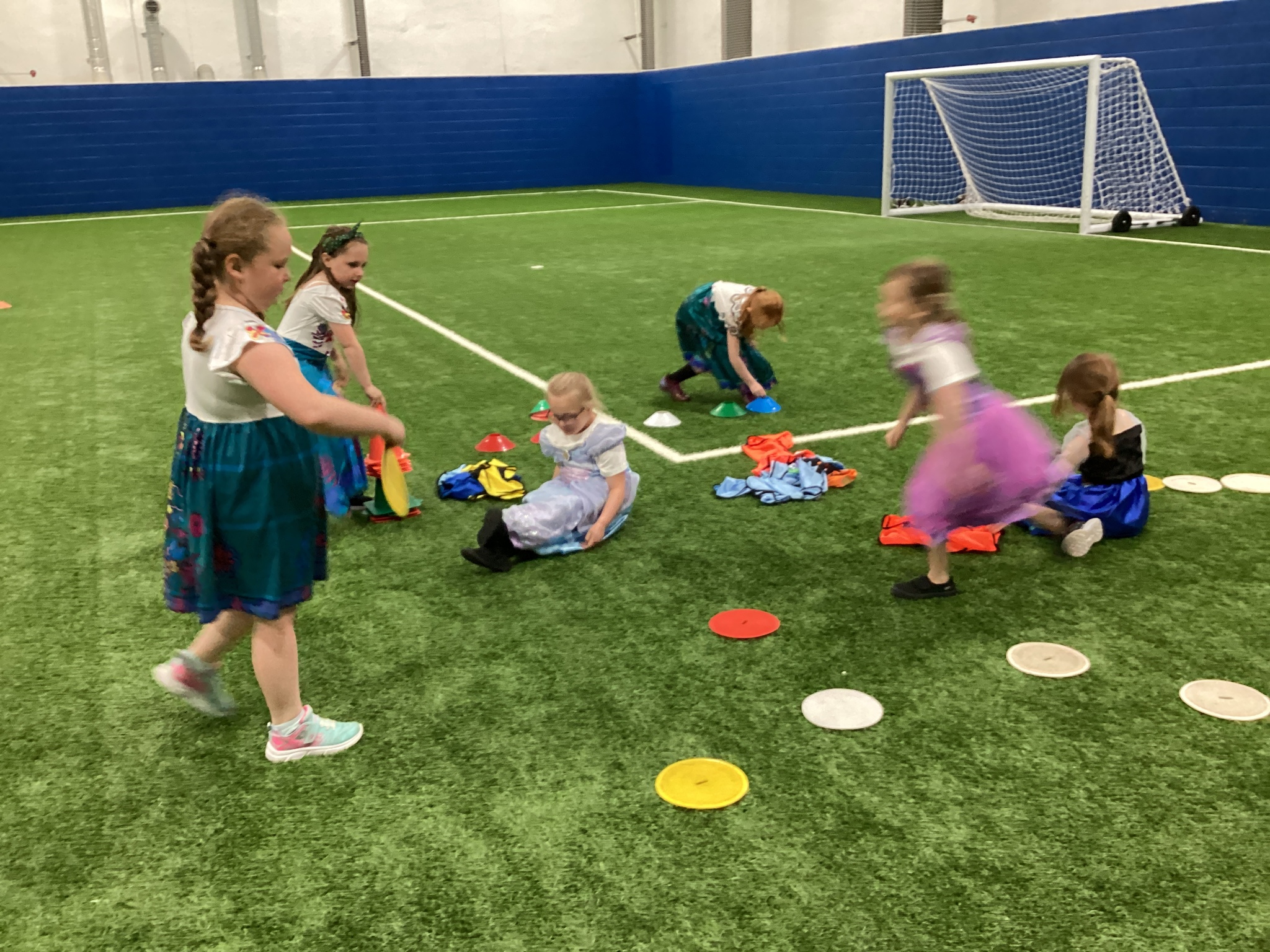 They combined Disney and football and got lots of exercise while acting out the story of Aladdin.The girls all tried really hard and played well with girls from other schools.