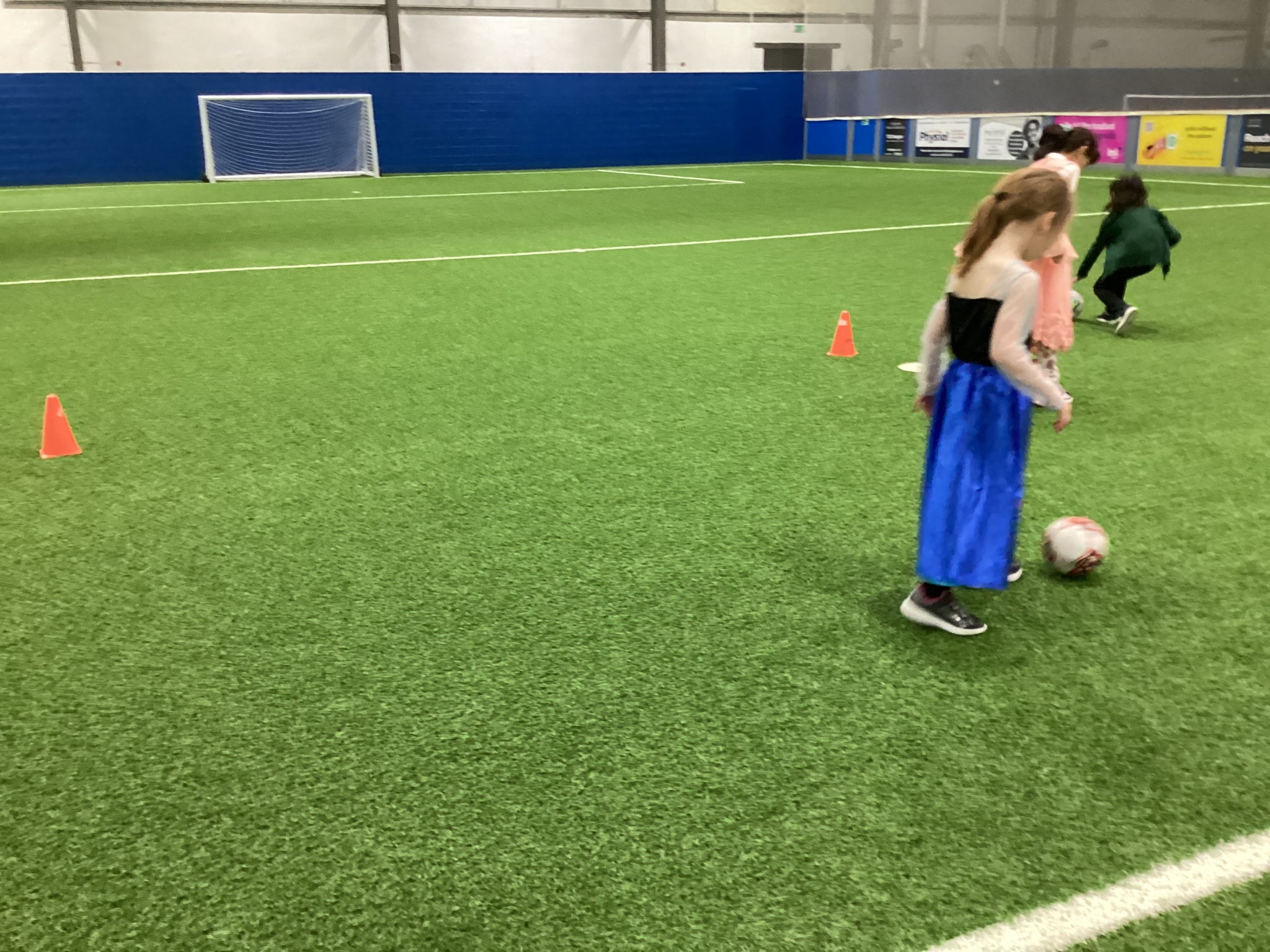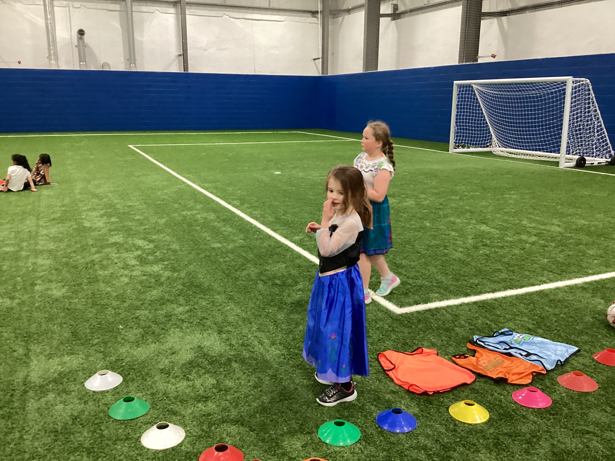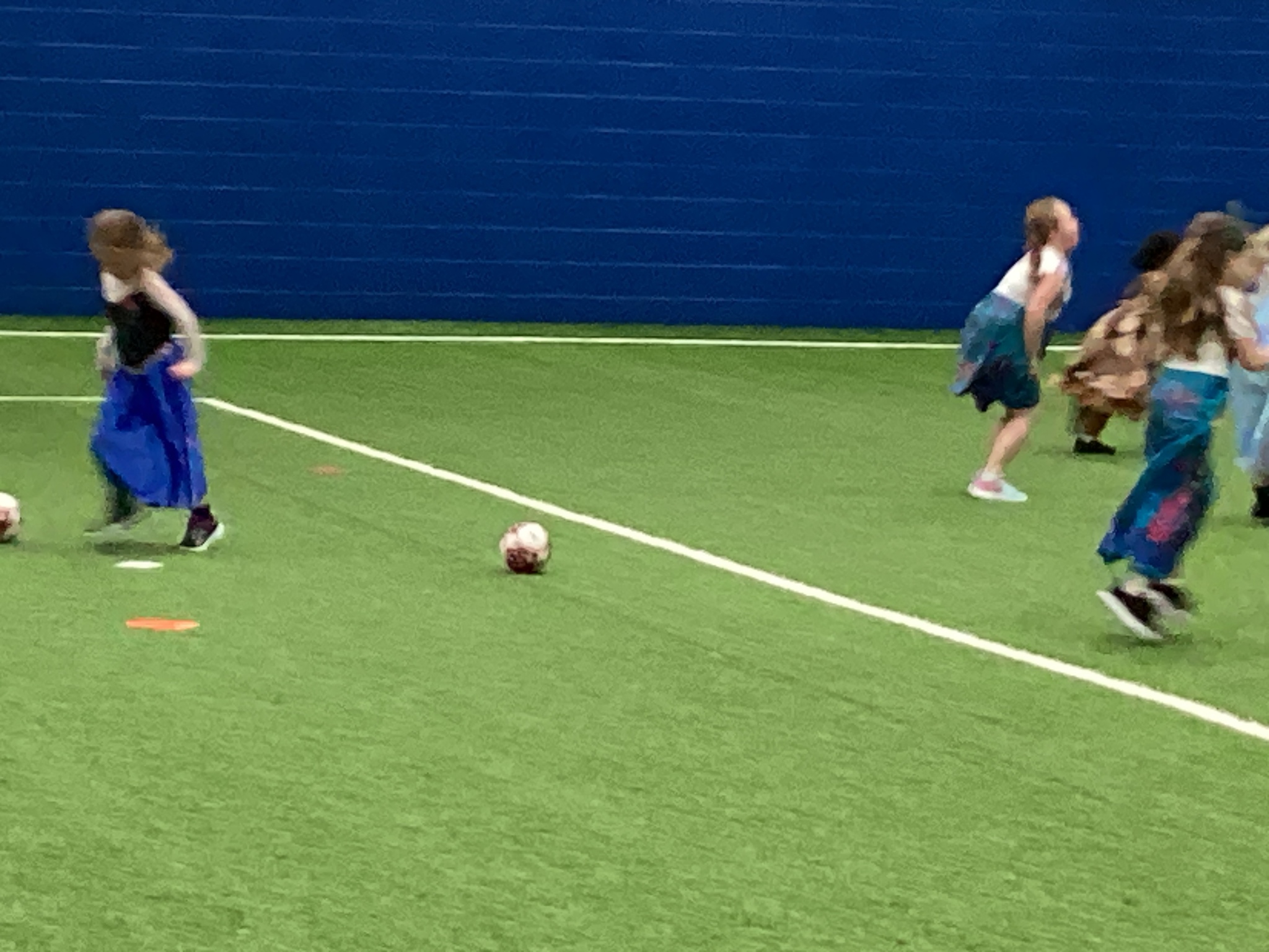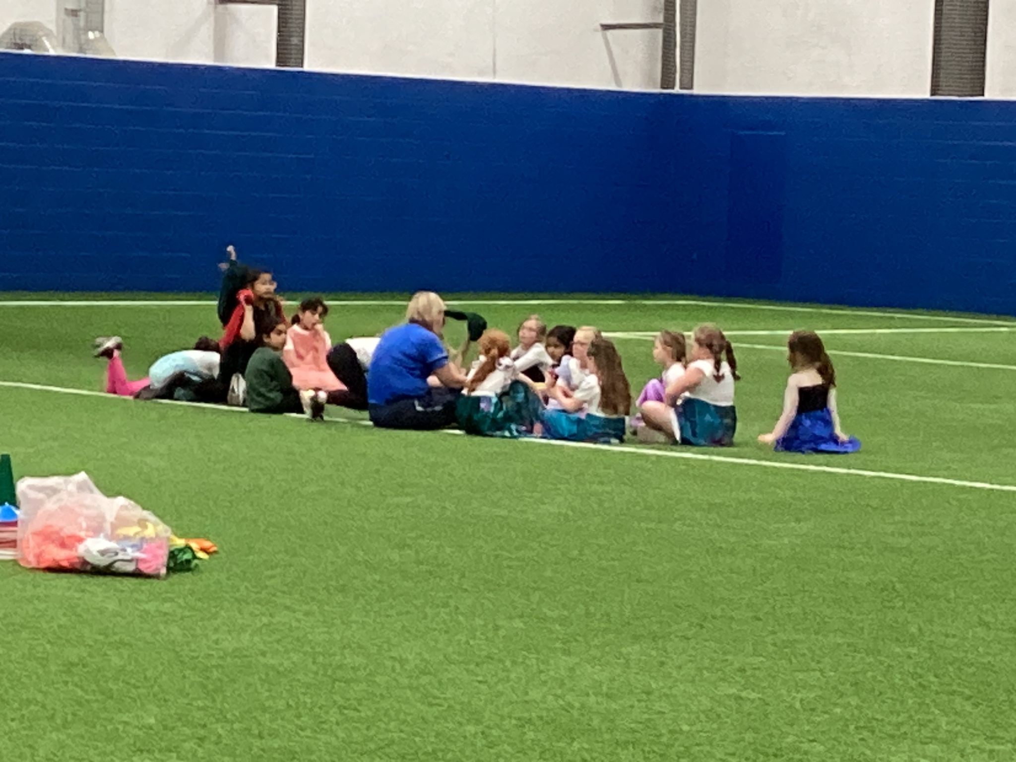 They combined Disney and football and got lots of exercise while acting out the story of Aladdin.The girls all tried really hard and played well with girls from other schools.