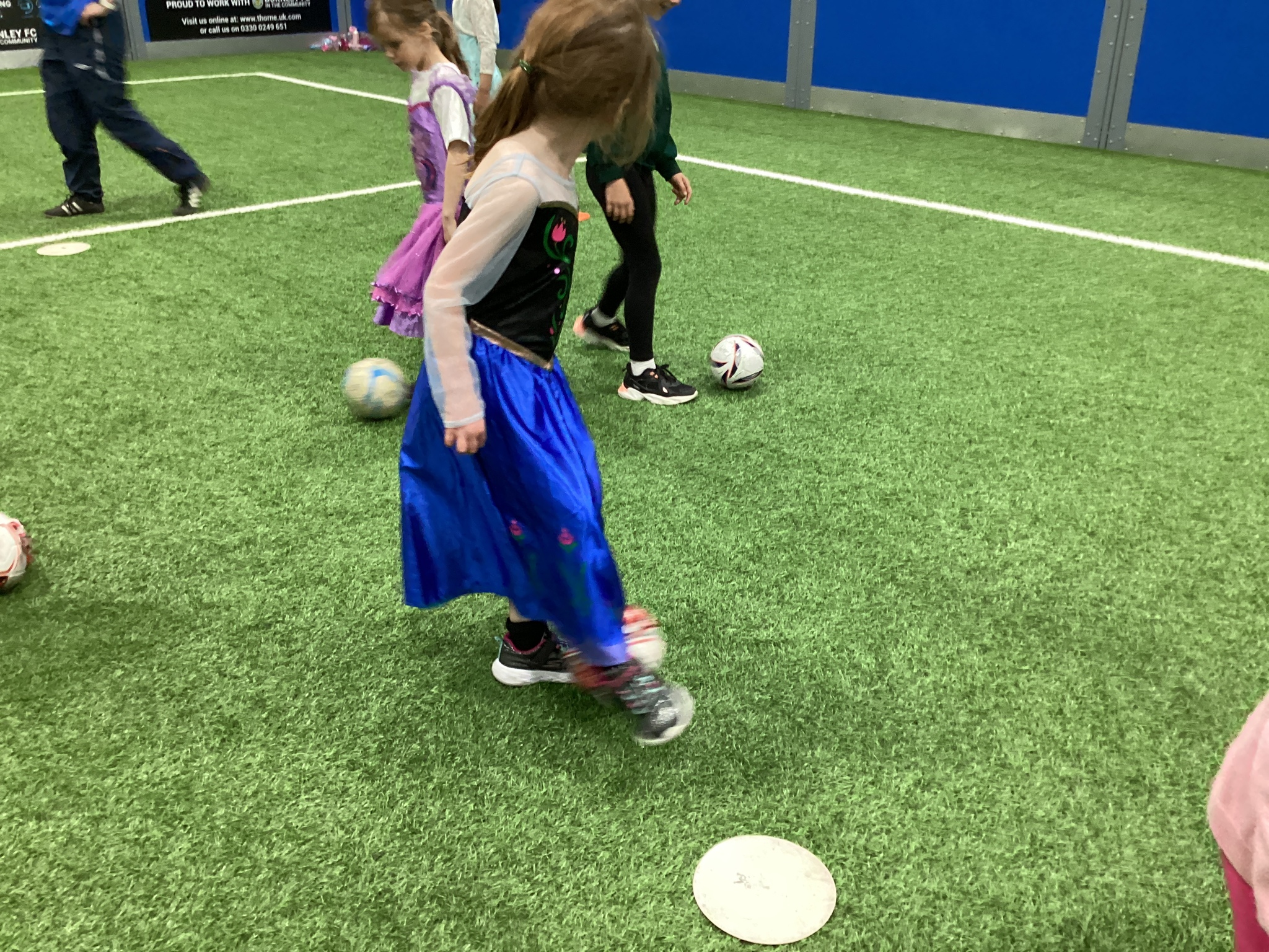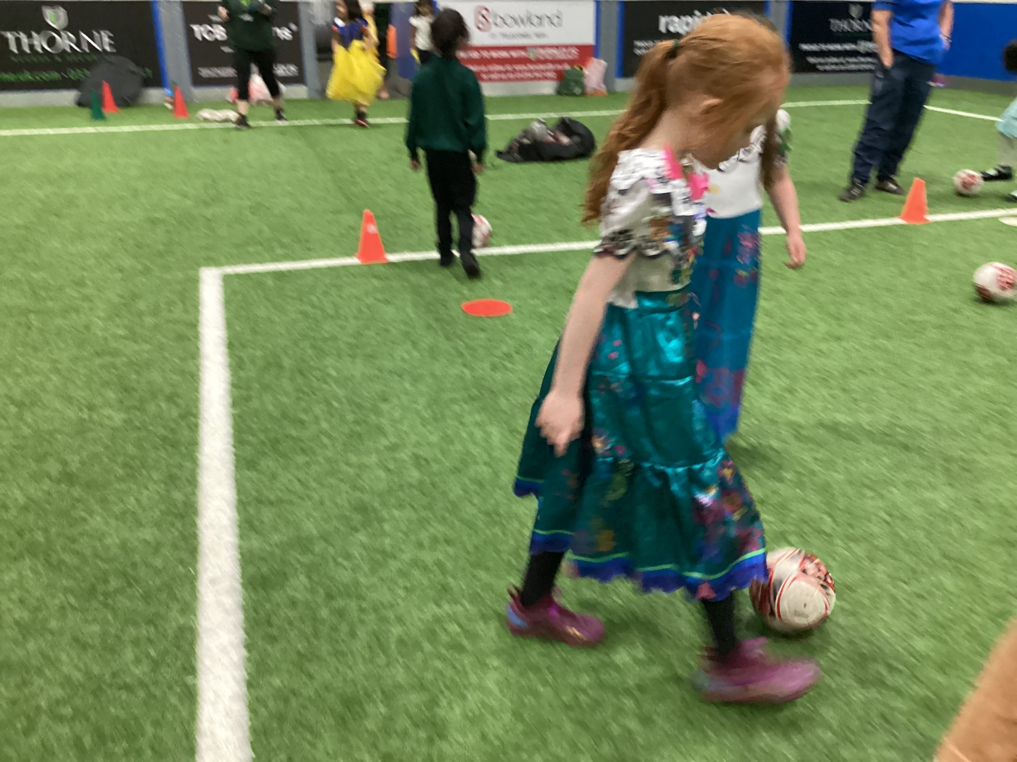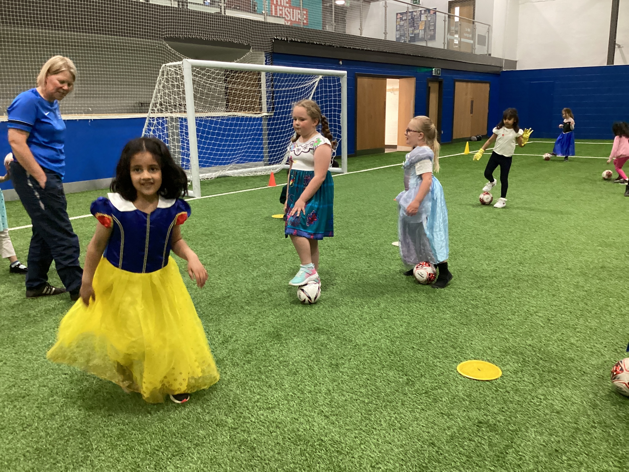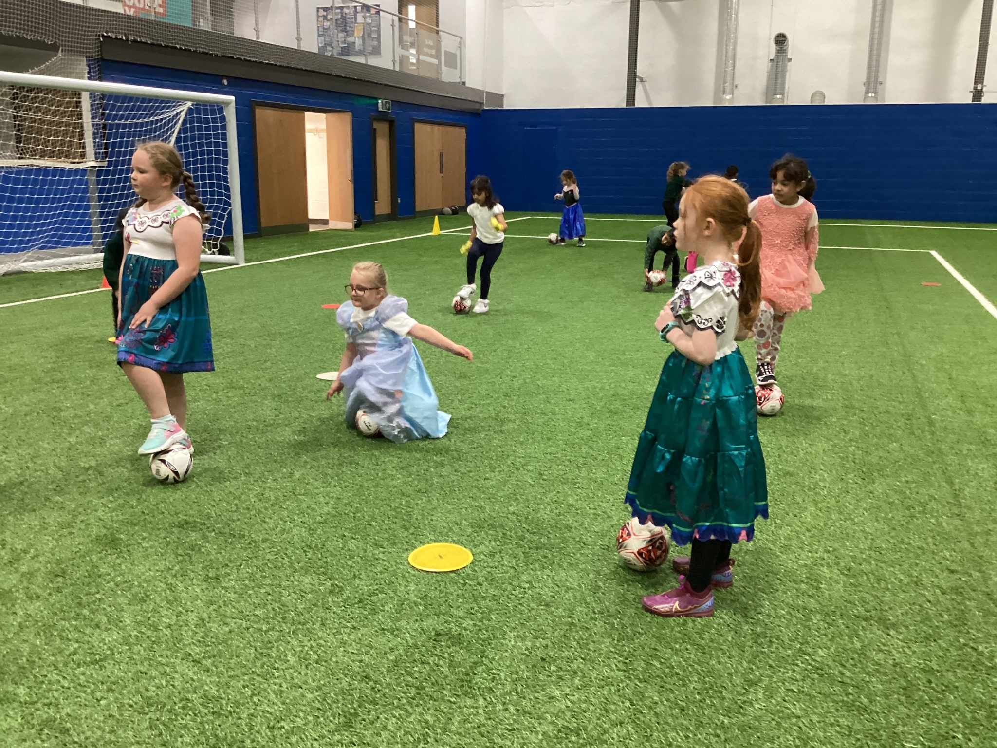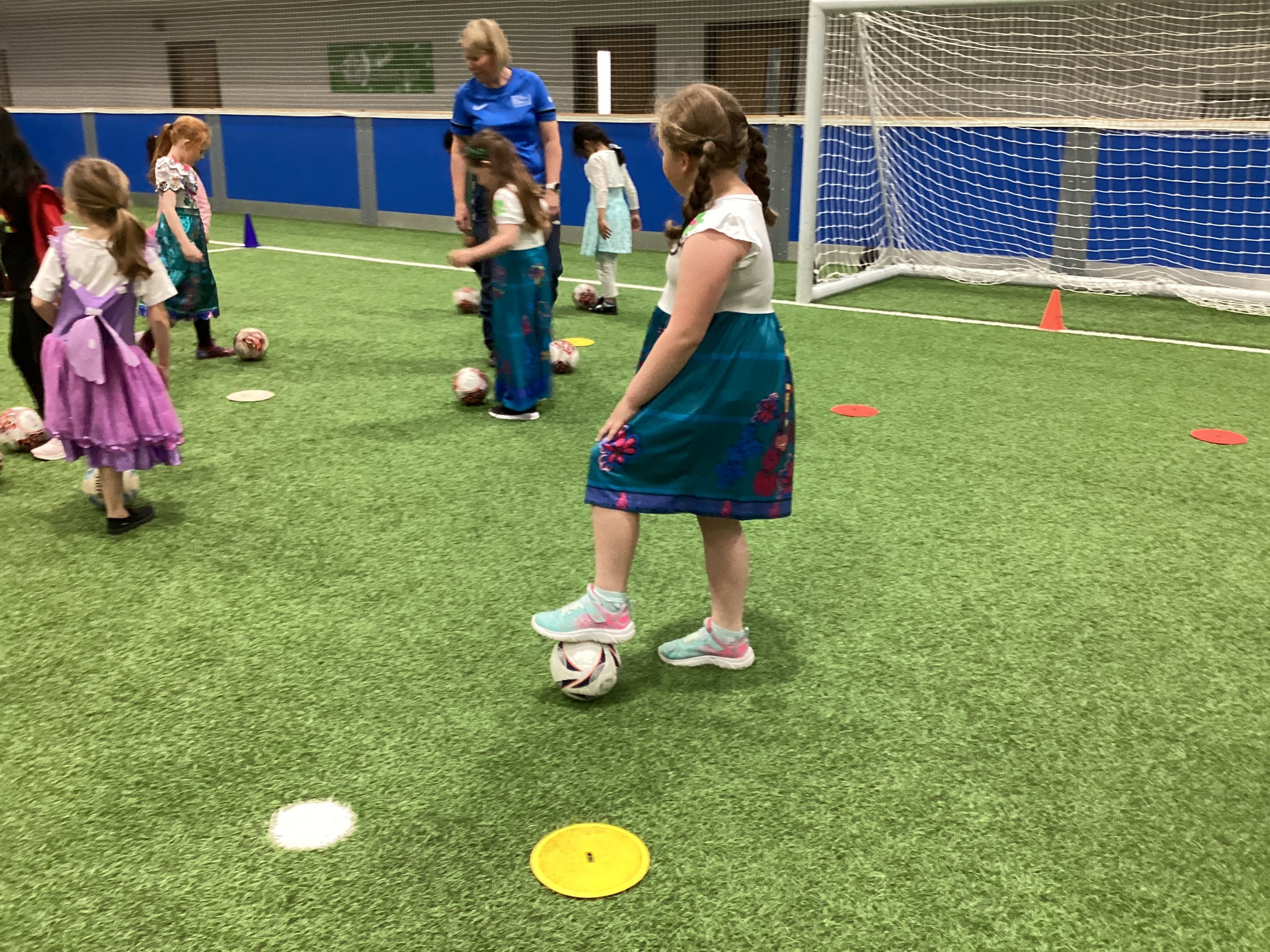 They combined Disney and football and got lots of exercise while acting out the story of Aladdin.The girls all tried really hard and played well with girls from other schools.