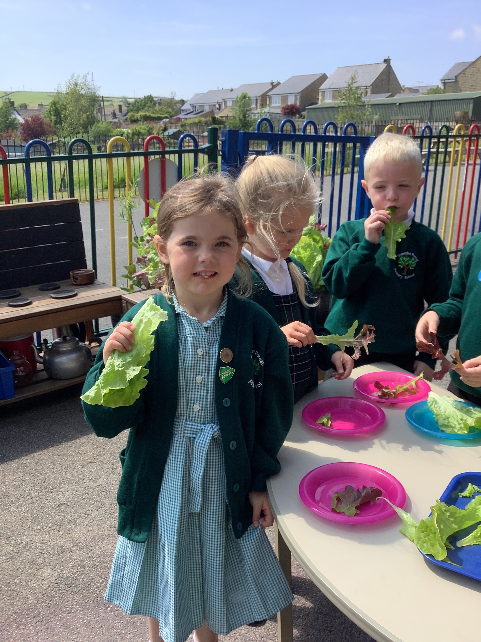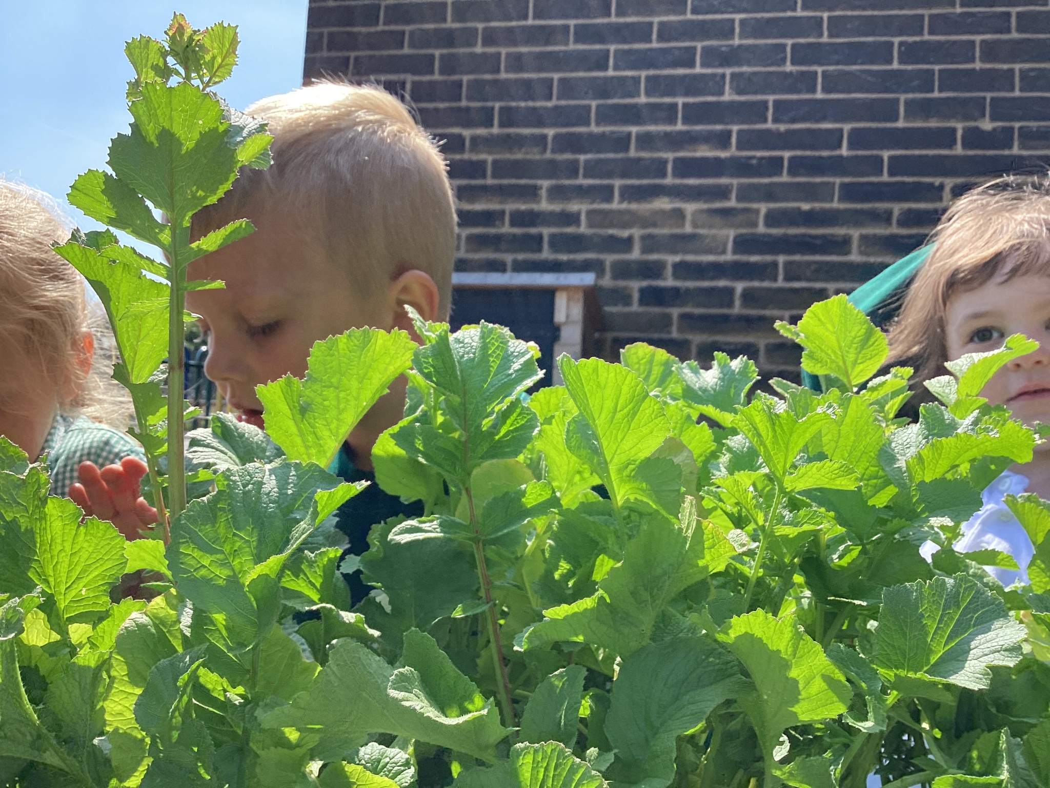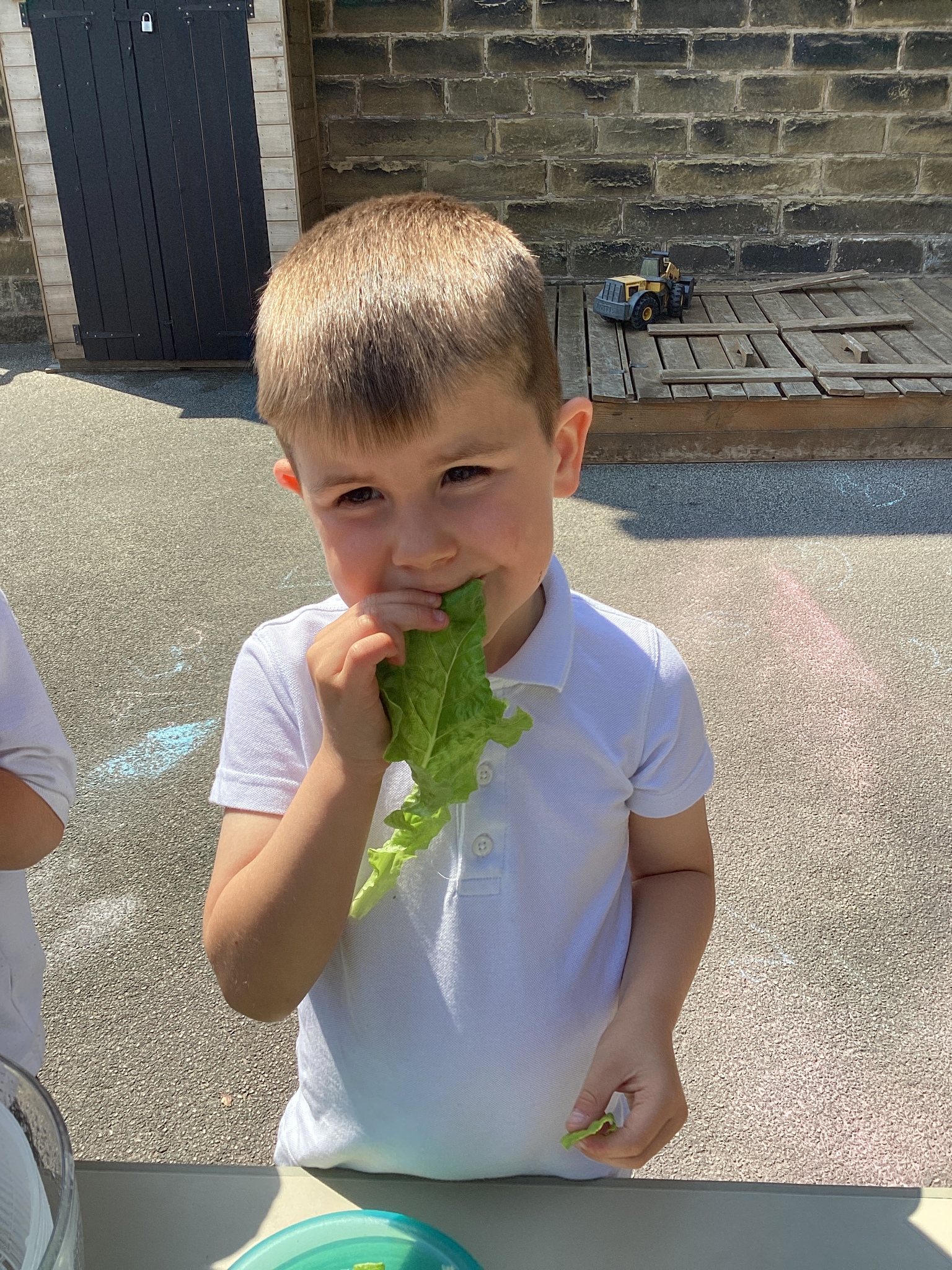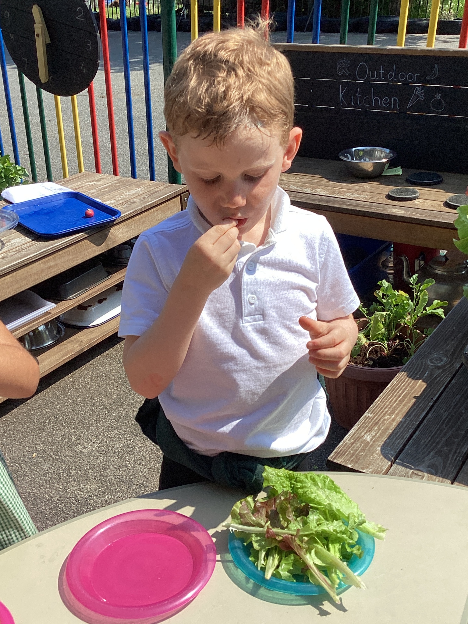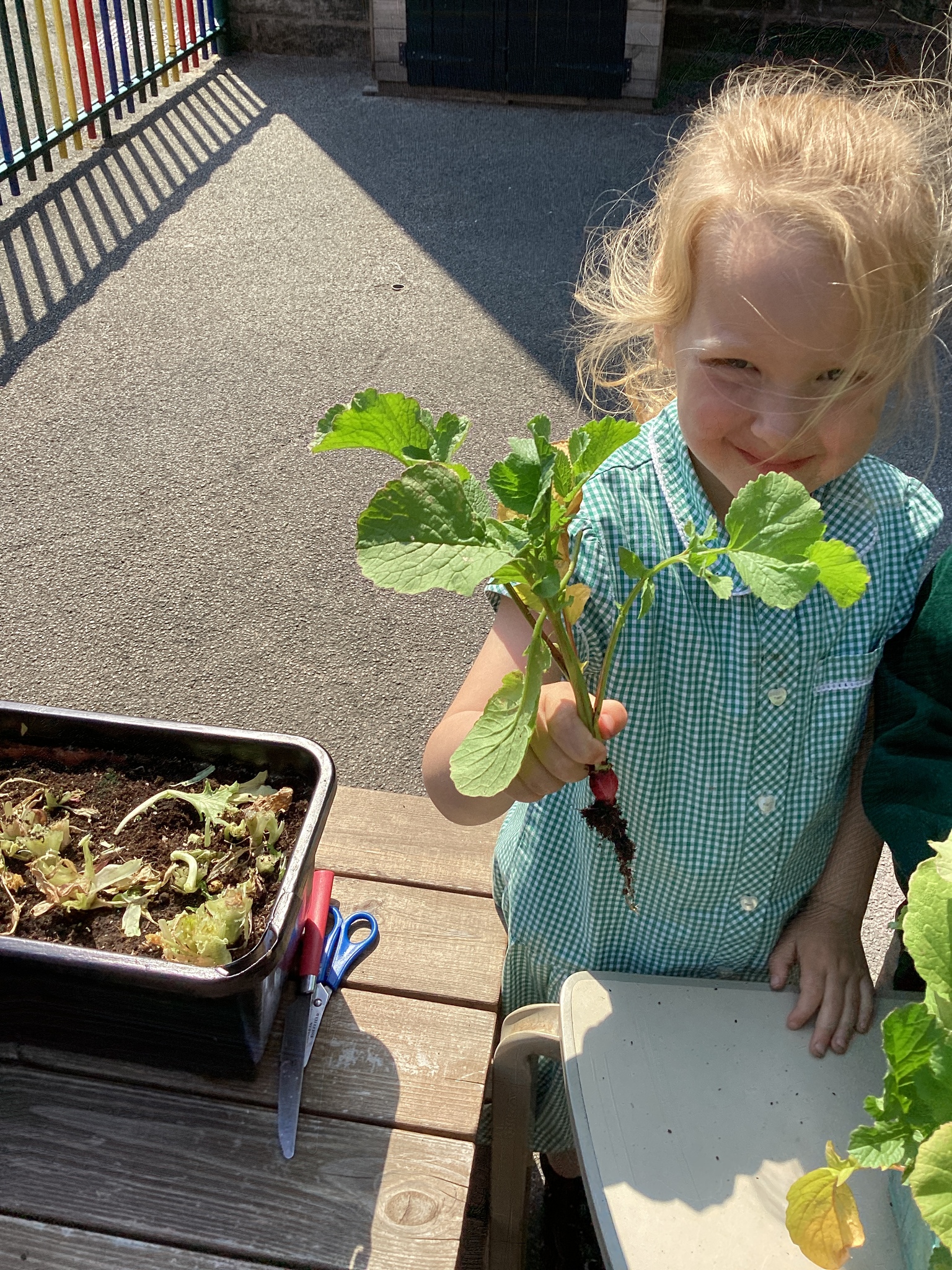 This week they have really enjoyed picking the mixed salad leaves and radishes and tasting them.
