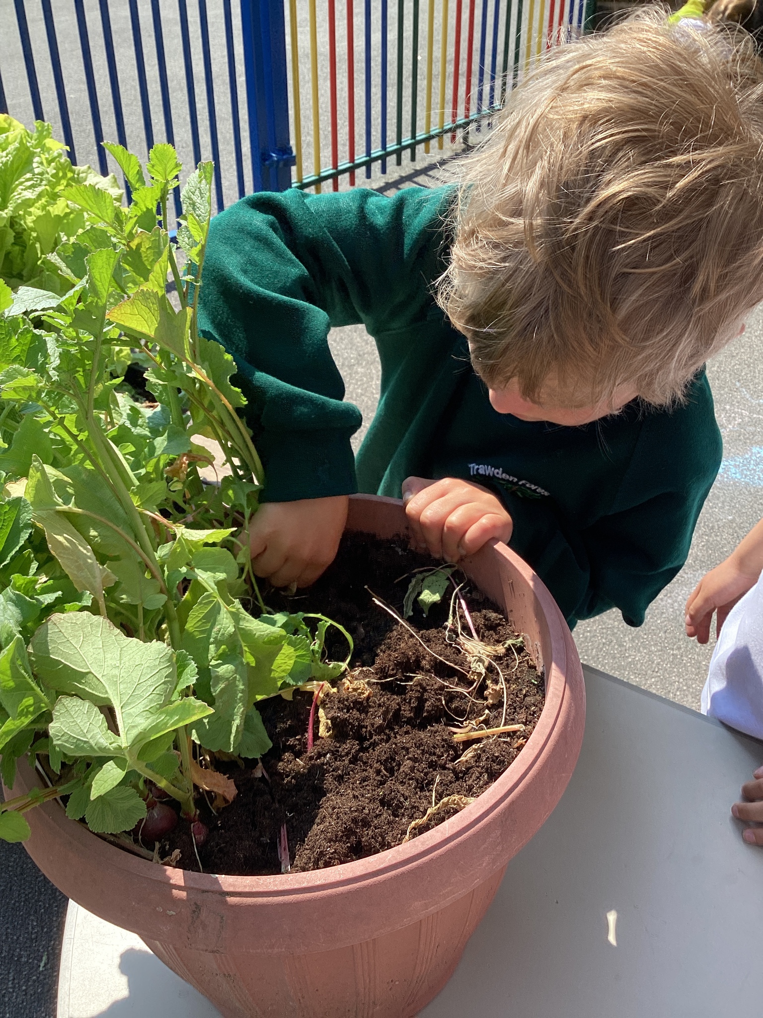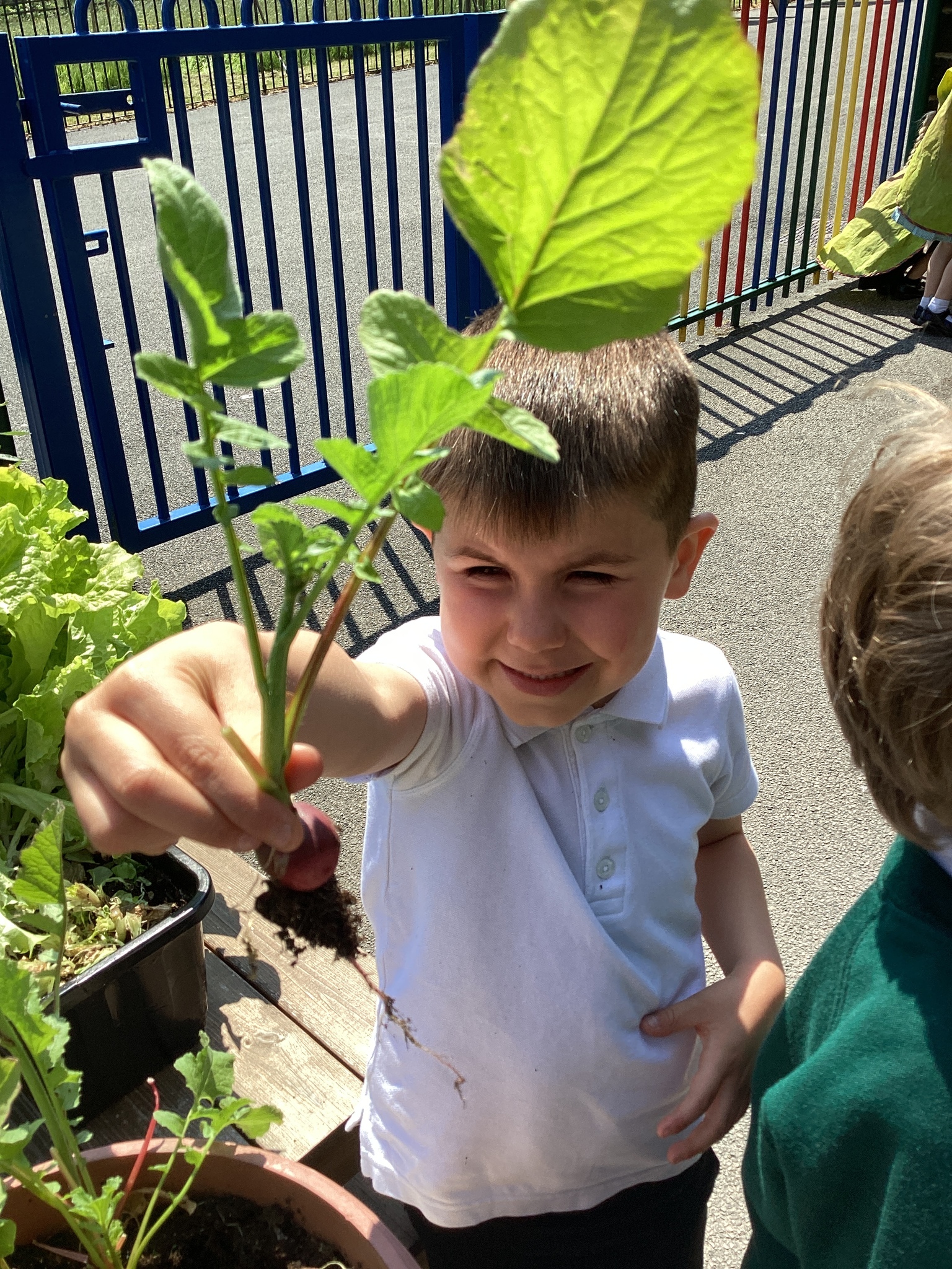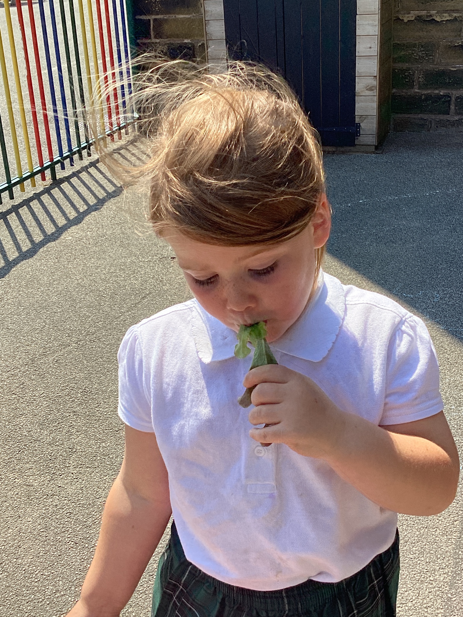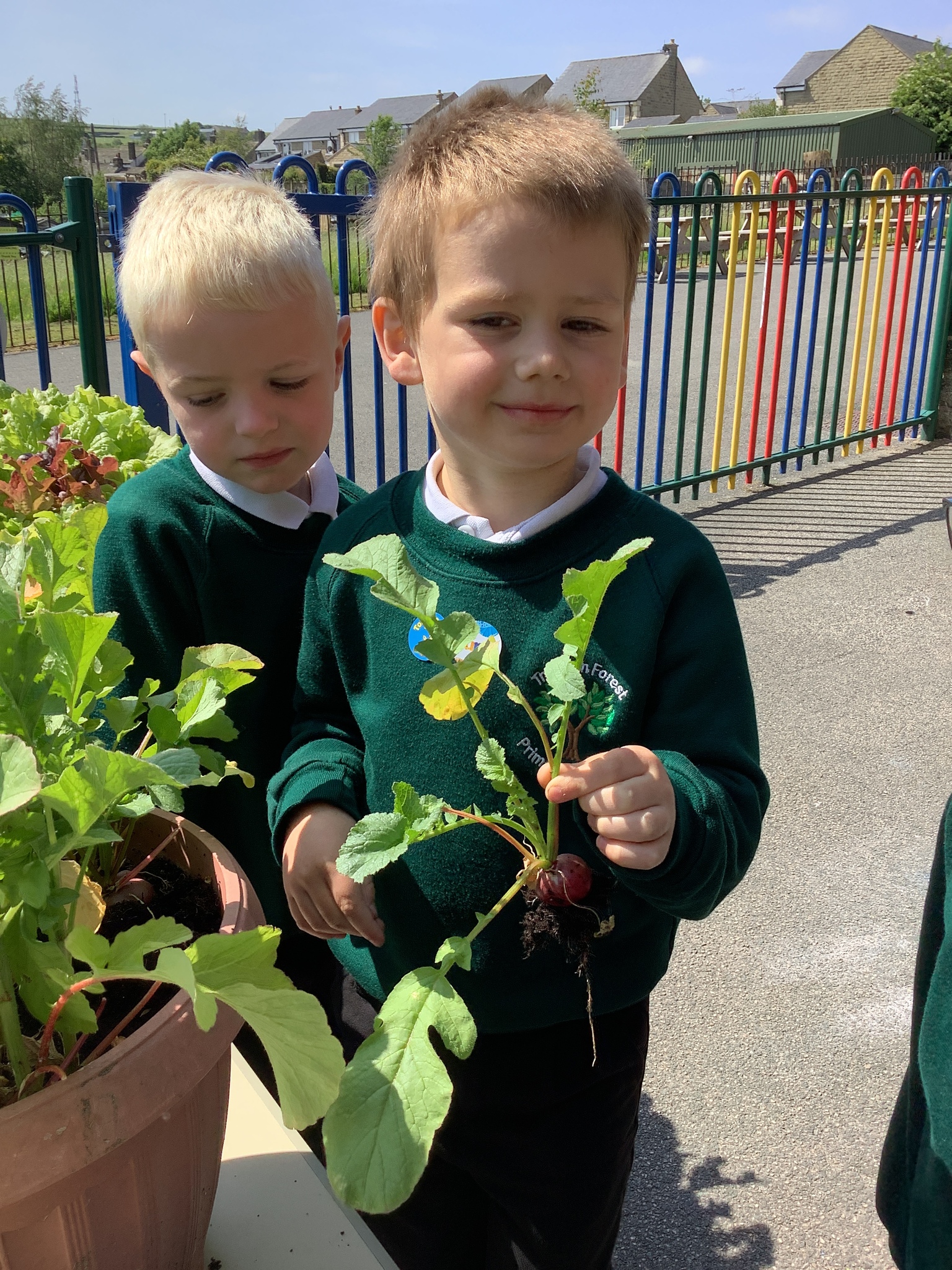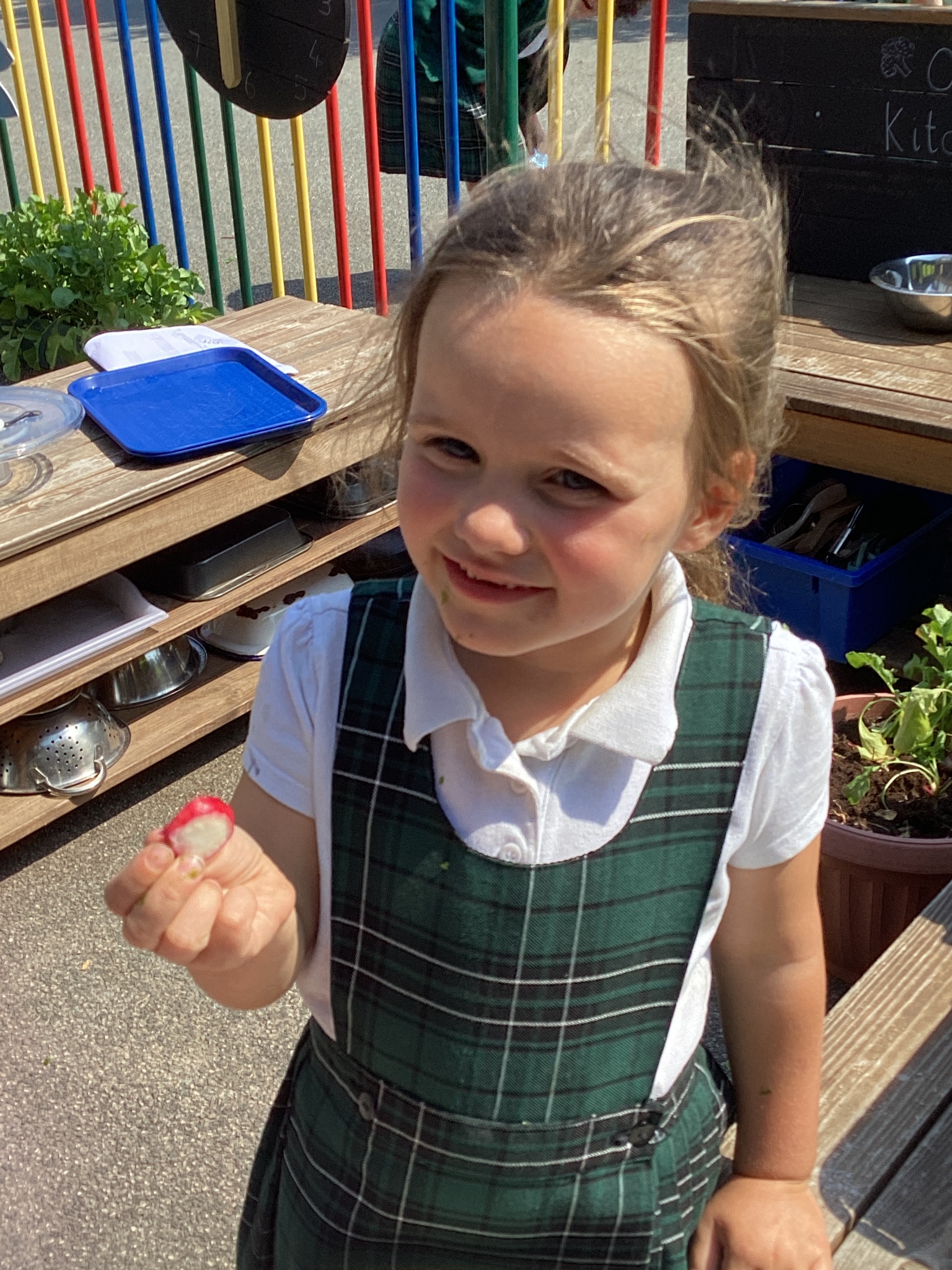 This week they have really enjoyed picking the mixed salad leaves and radishes and tasting them.