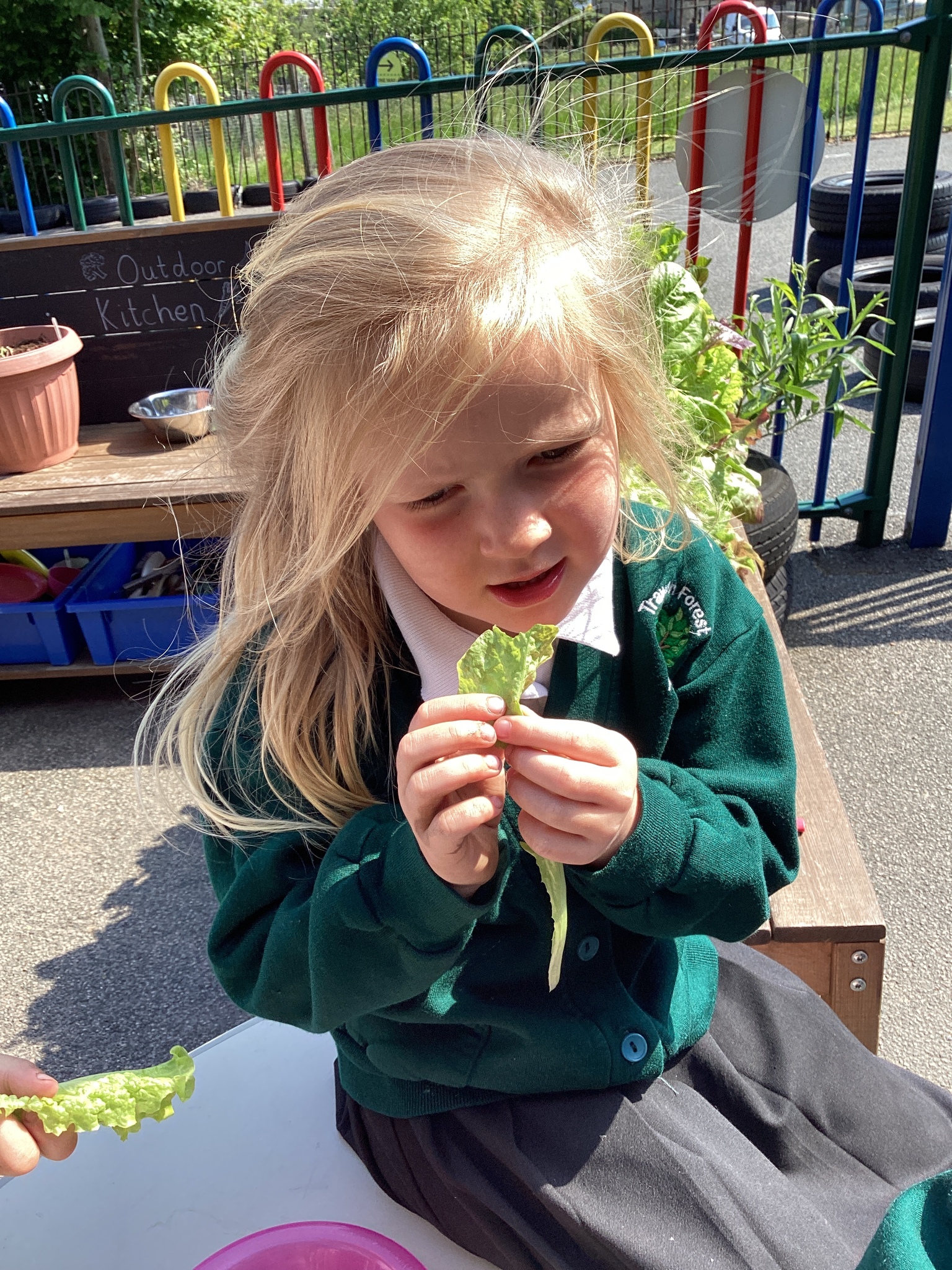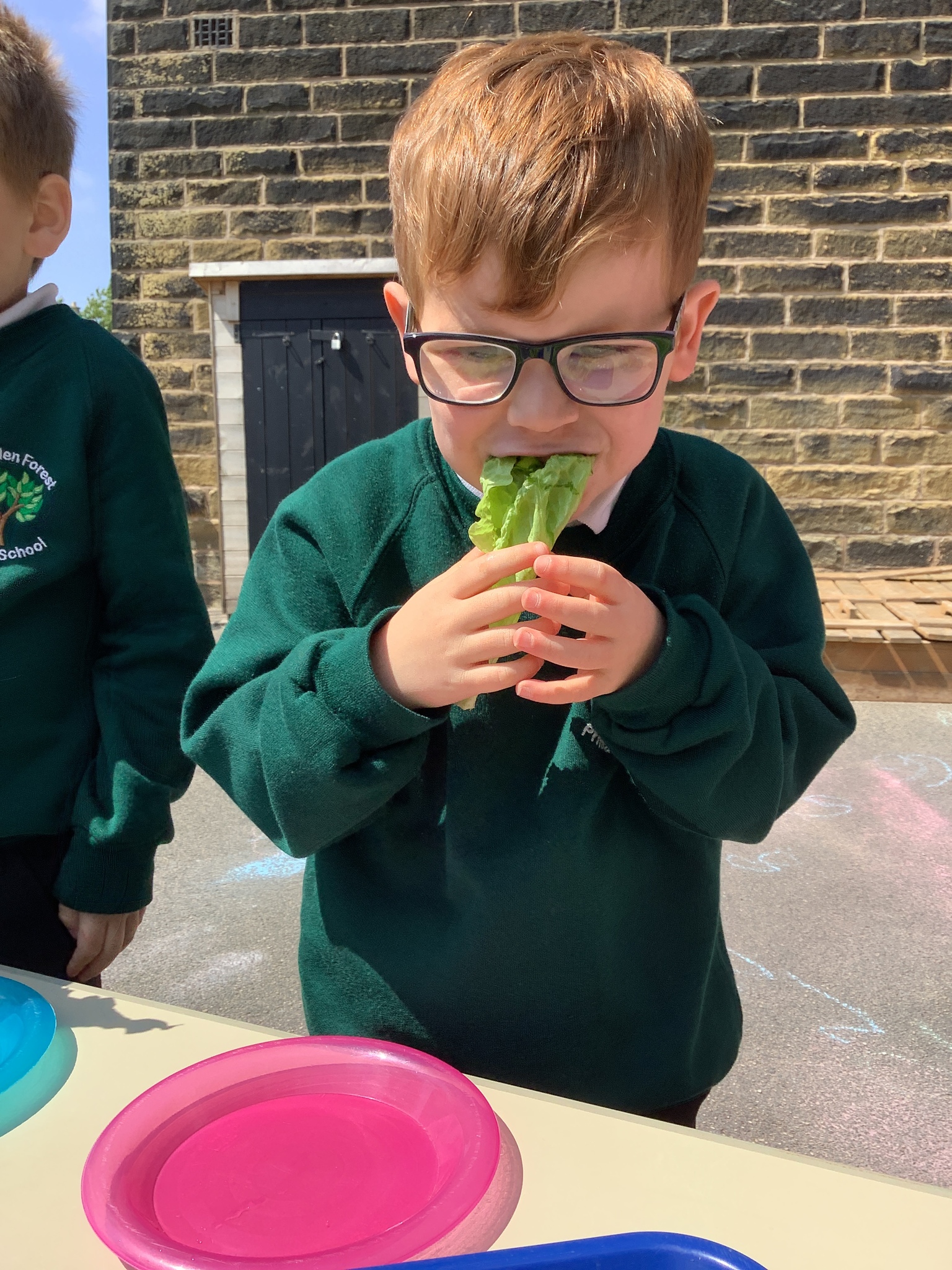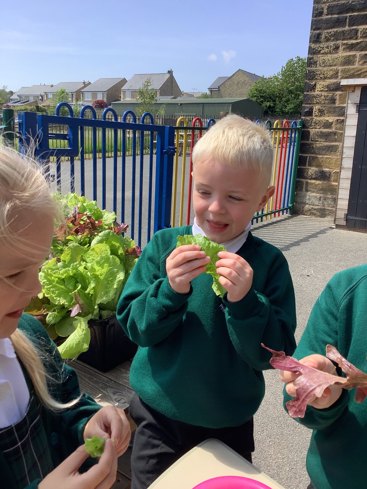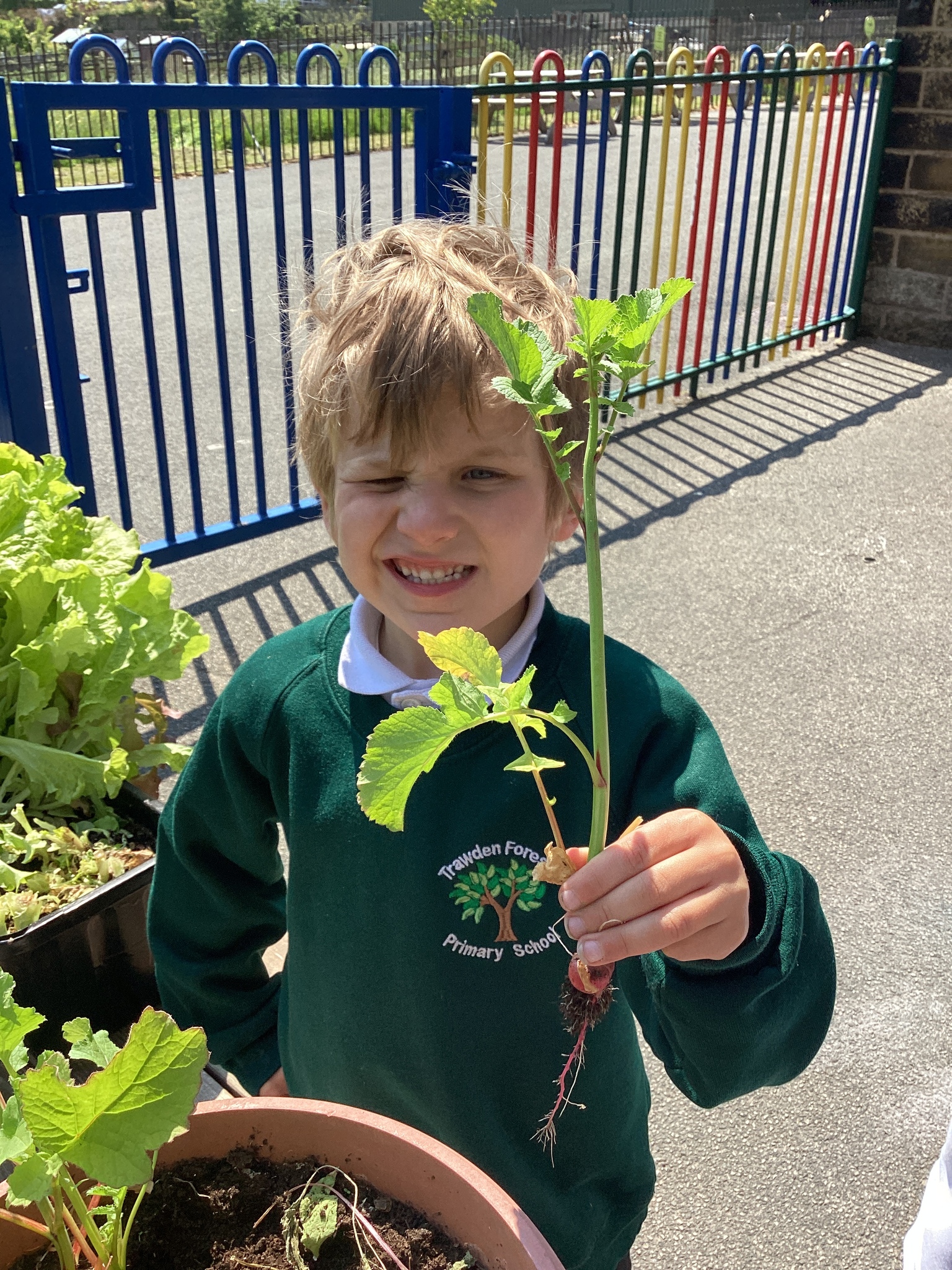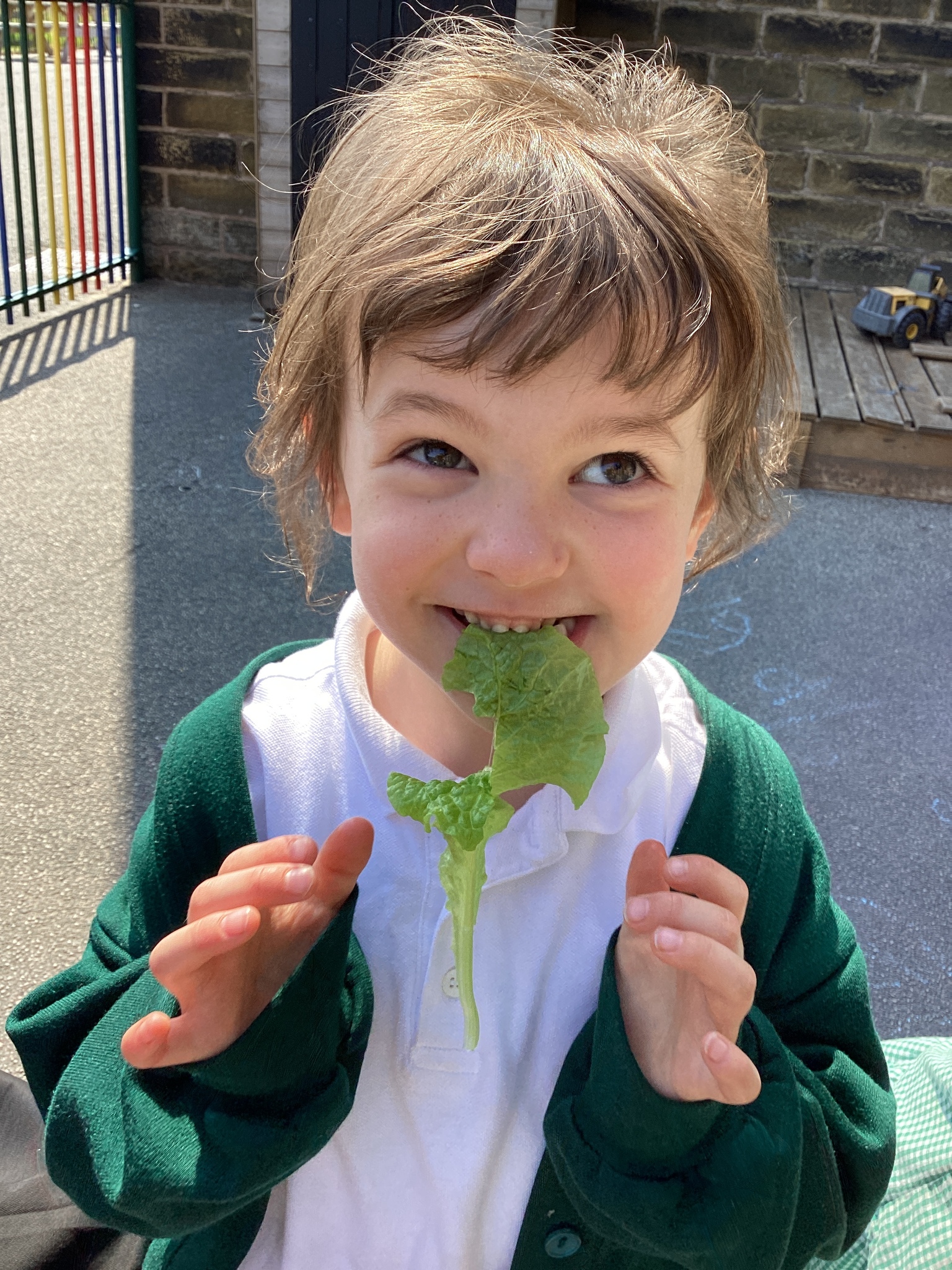This week they have really enjoyed picking the mixed salad leaves and radishes and tasting them.