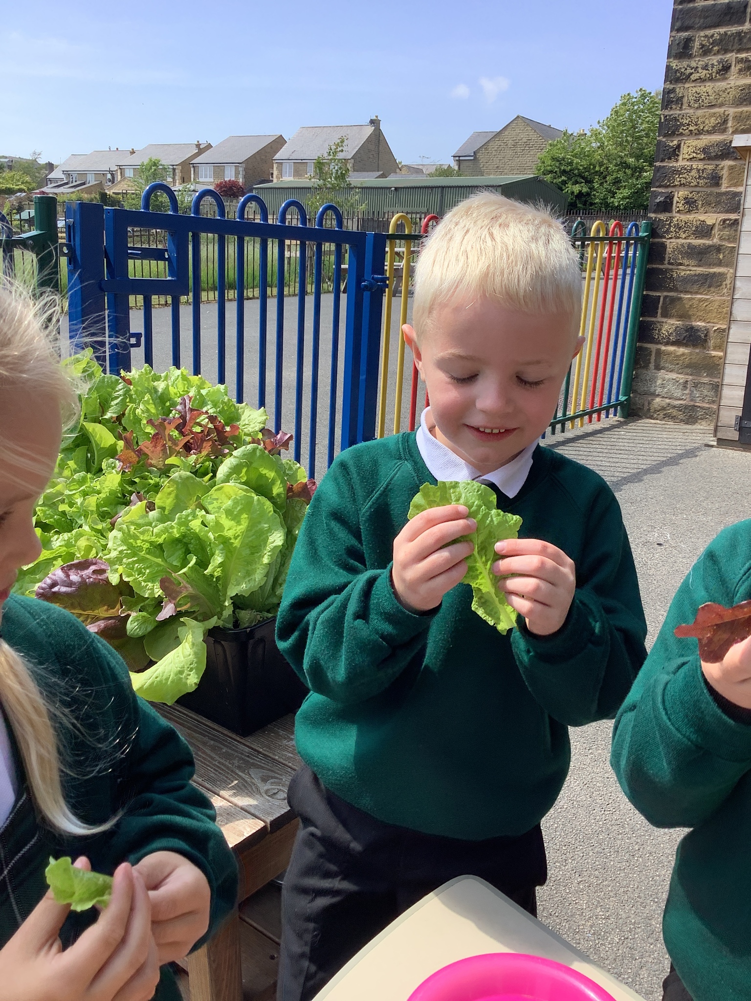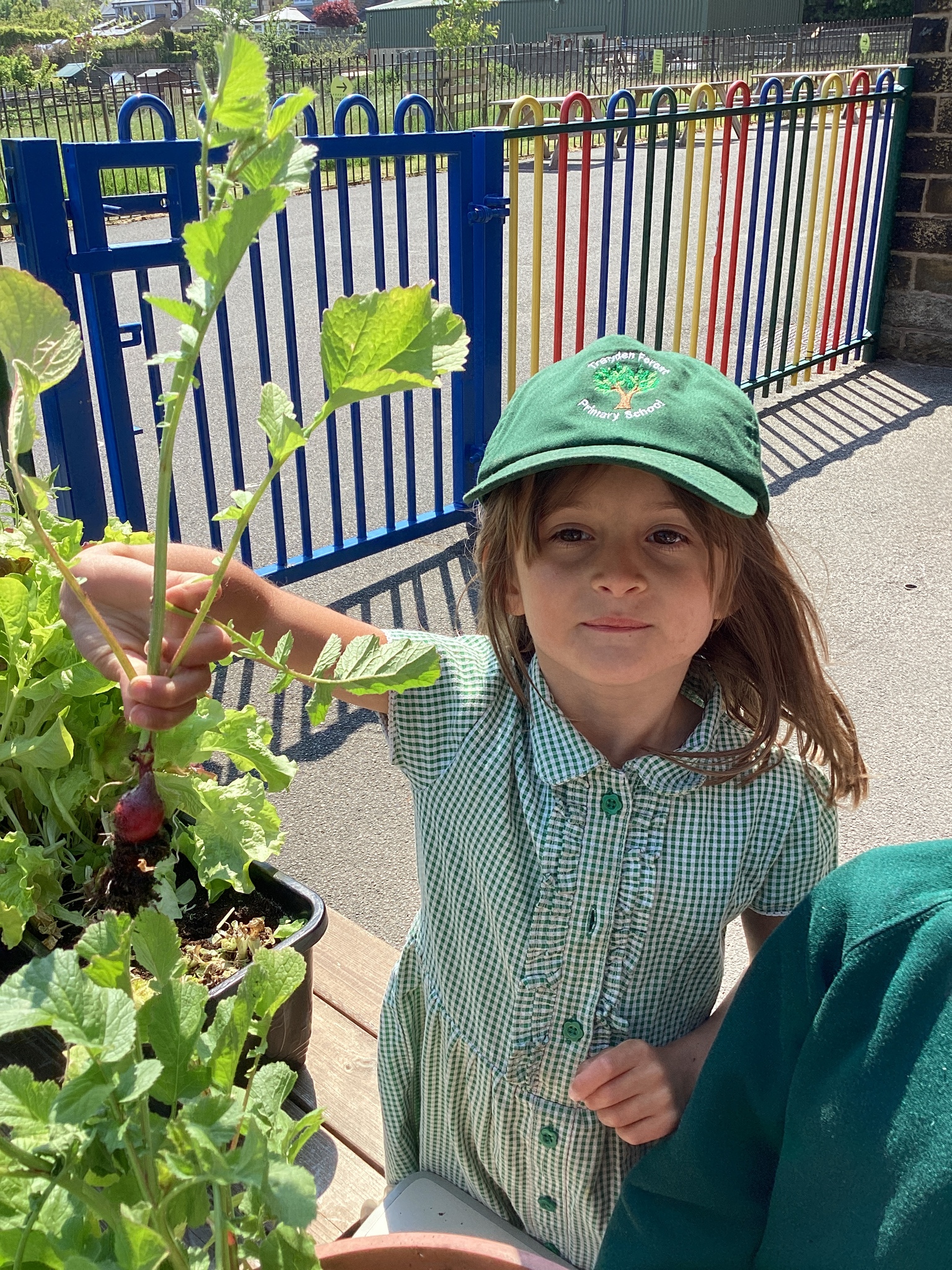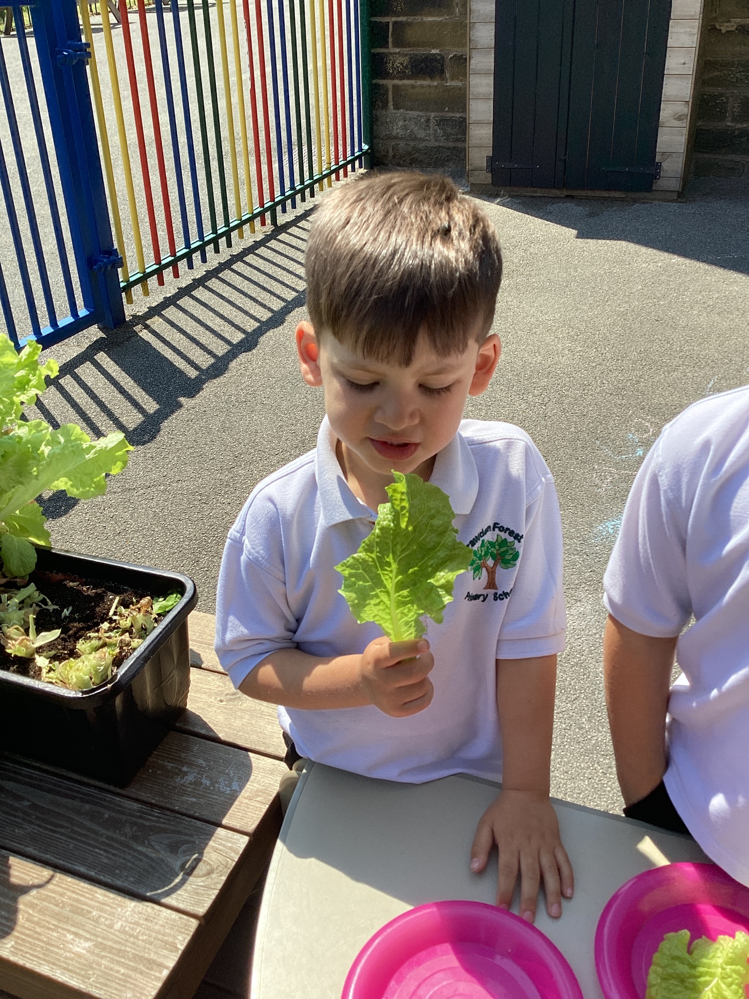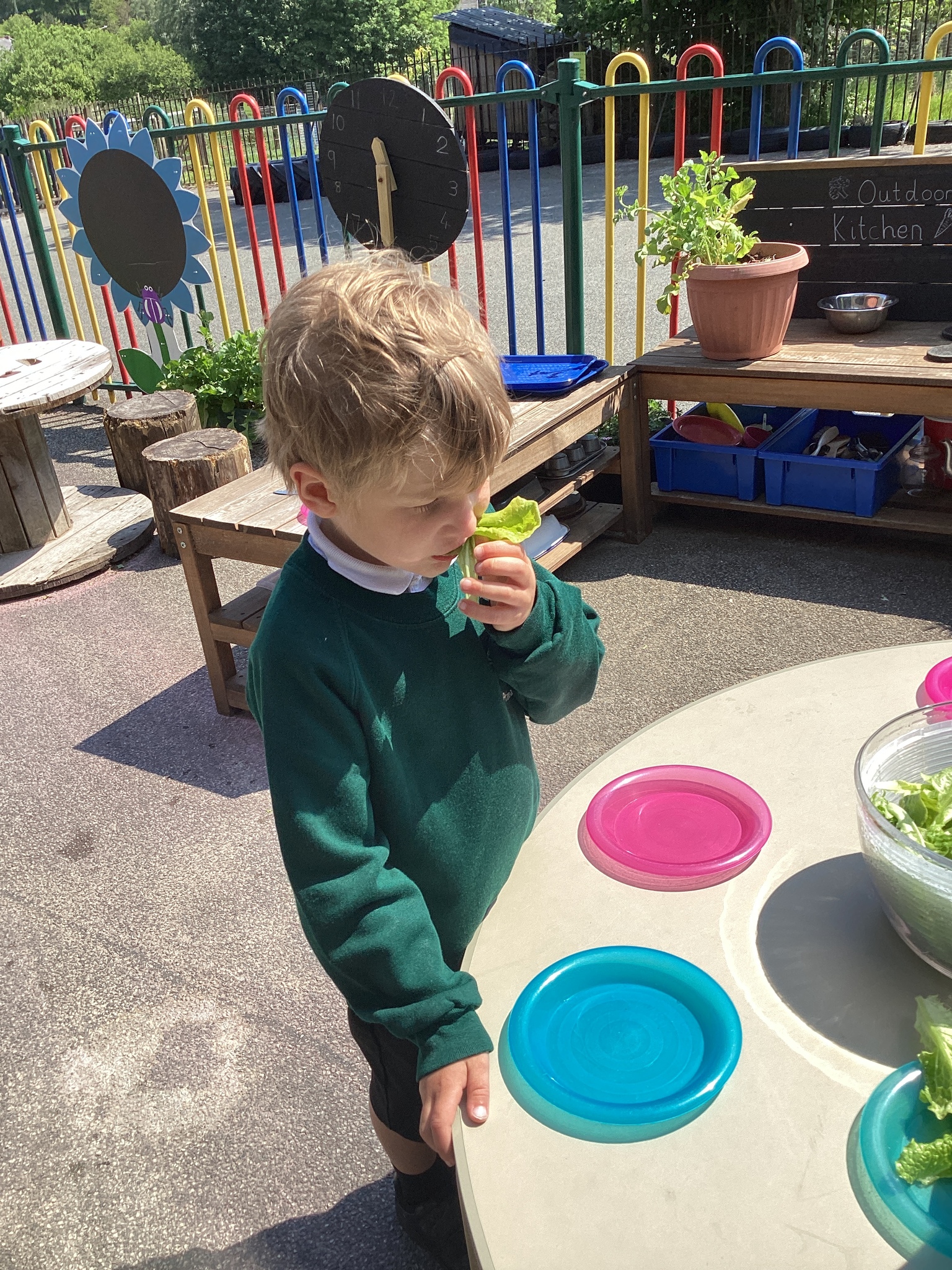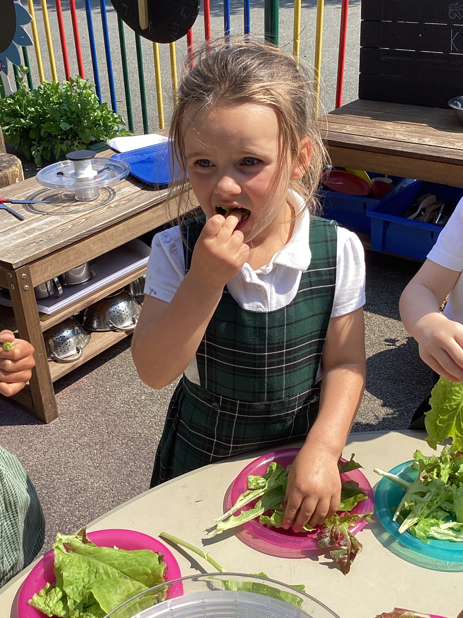 This week they have really enjoyed picking the mixed salad leaves and radishes and tasting them.