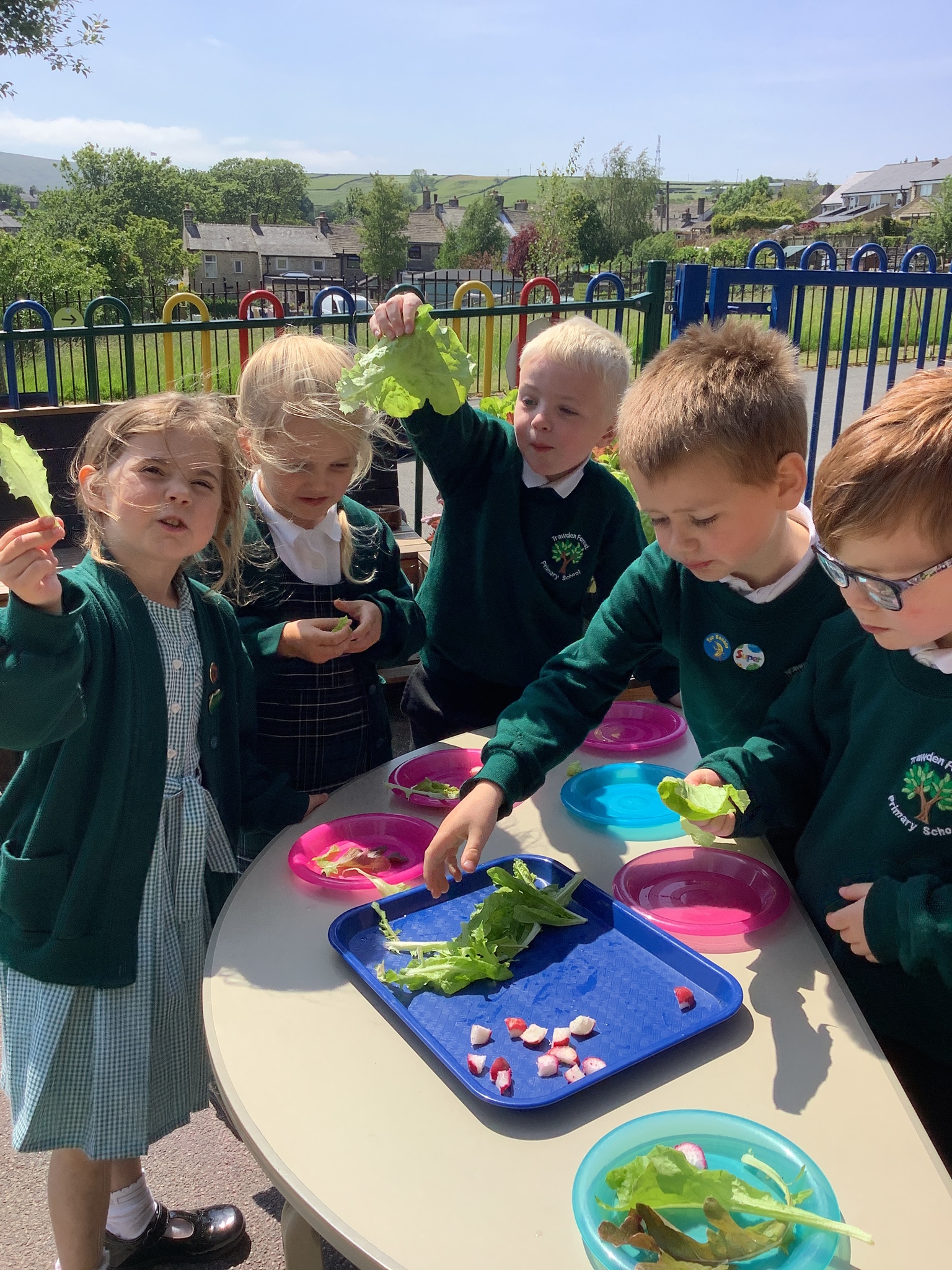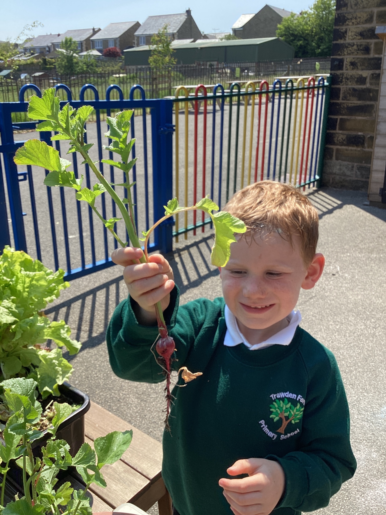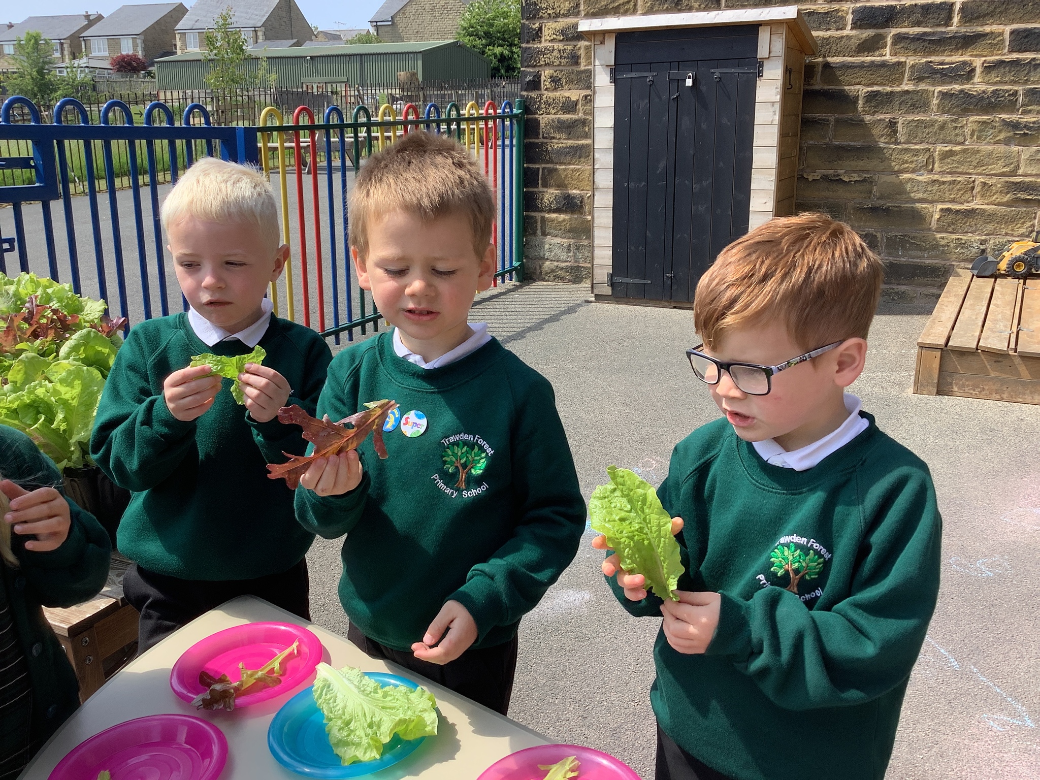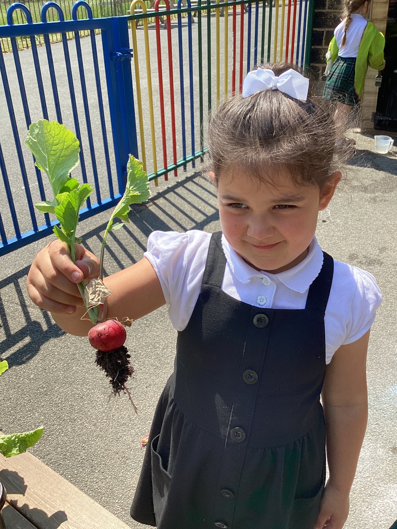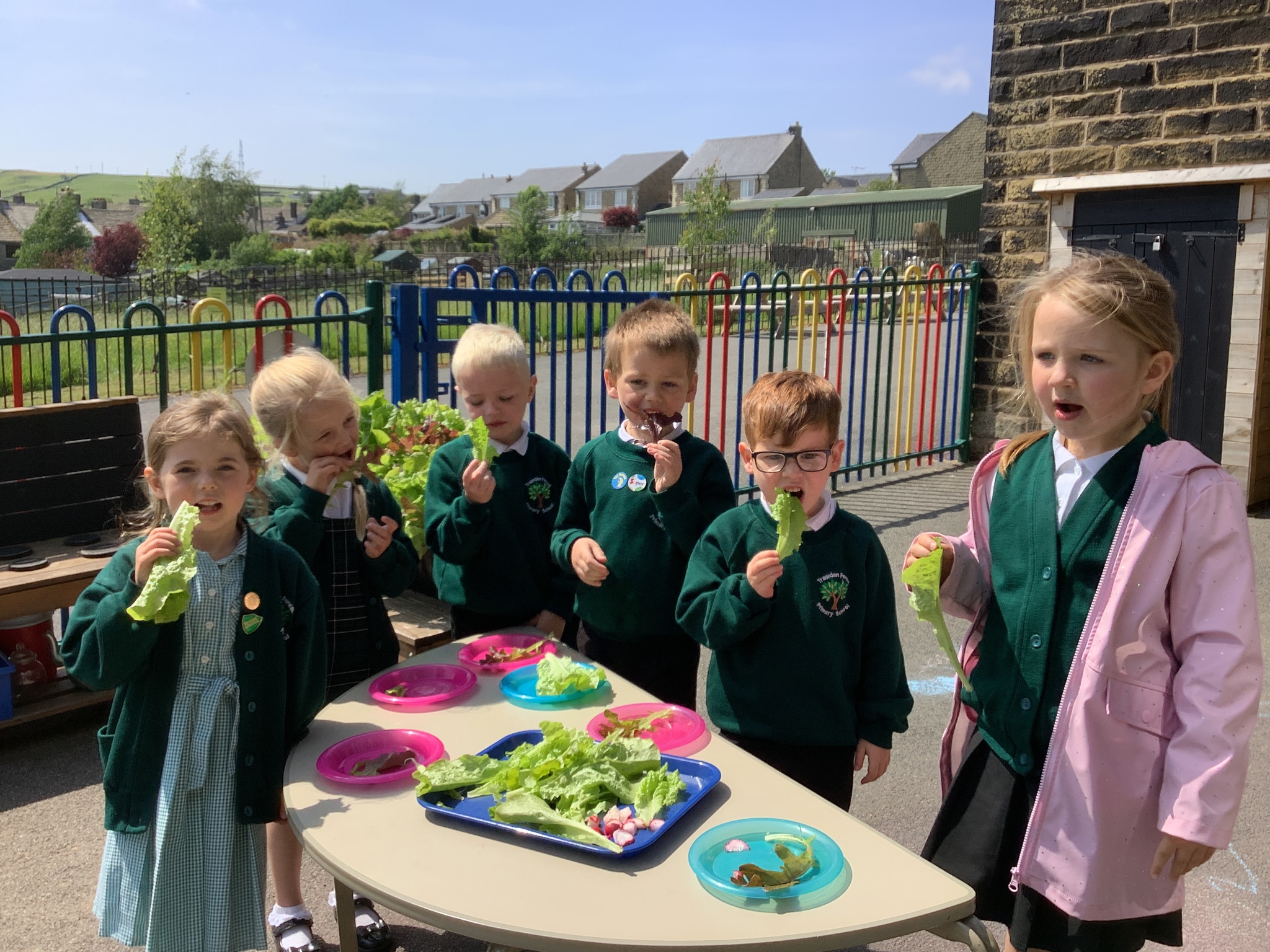 This week they have really enjoyed picking the mixed salad leaves and radishes and tasting them.