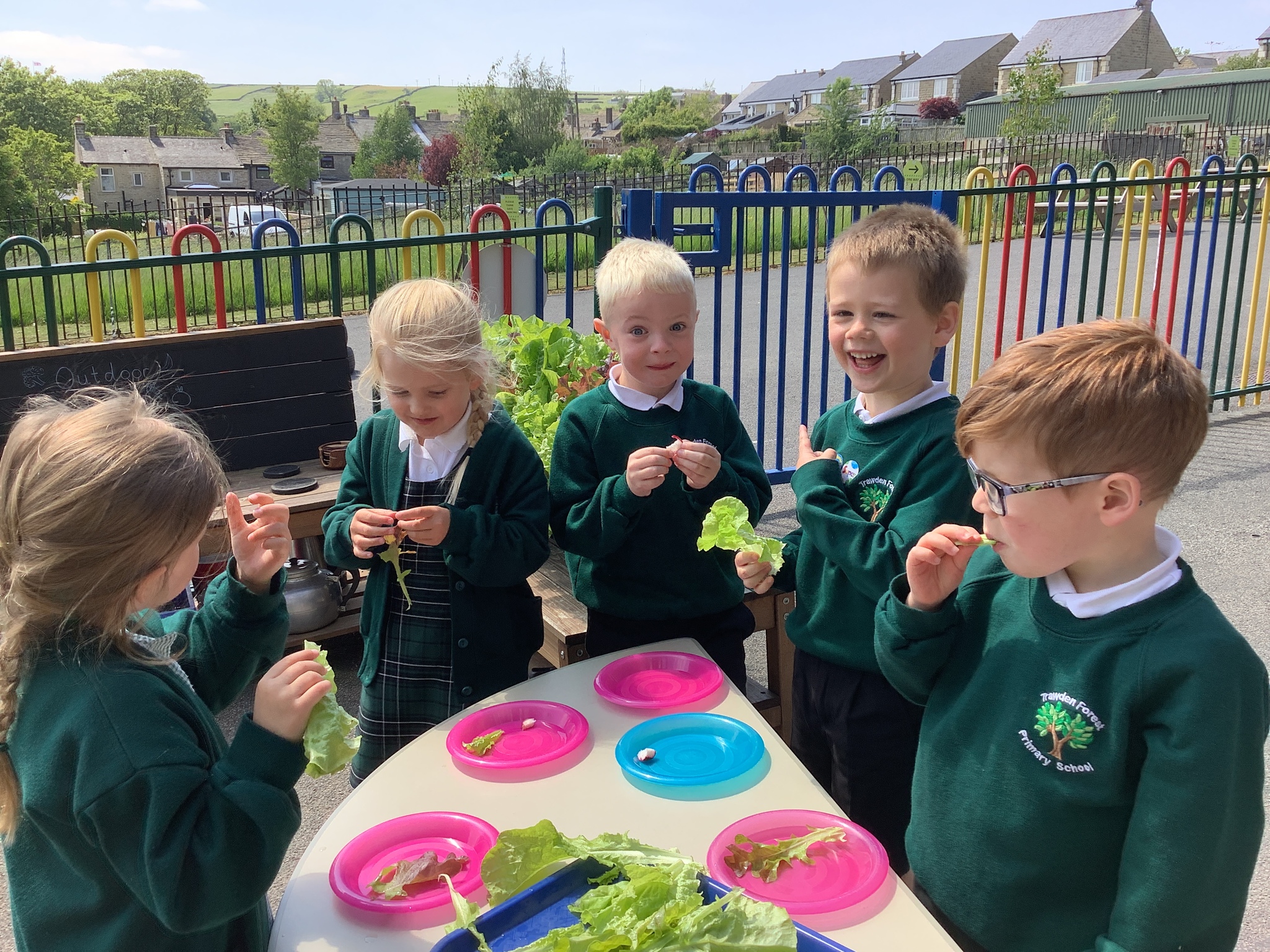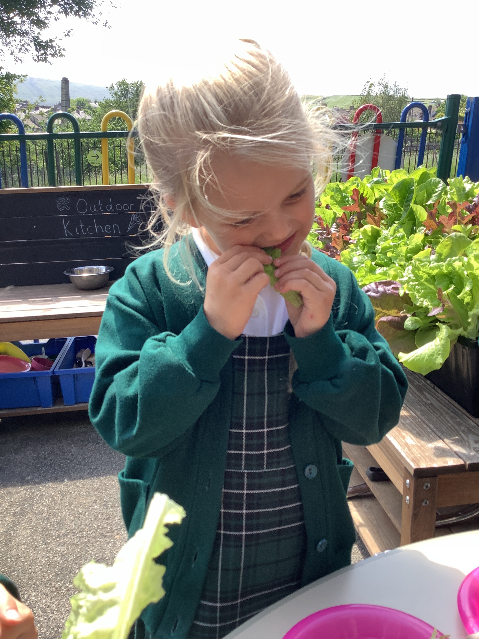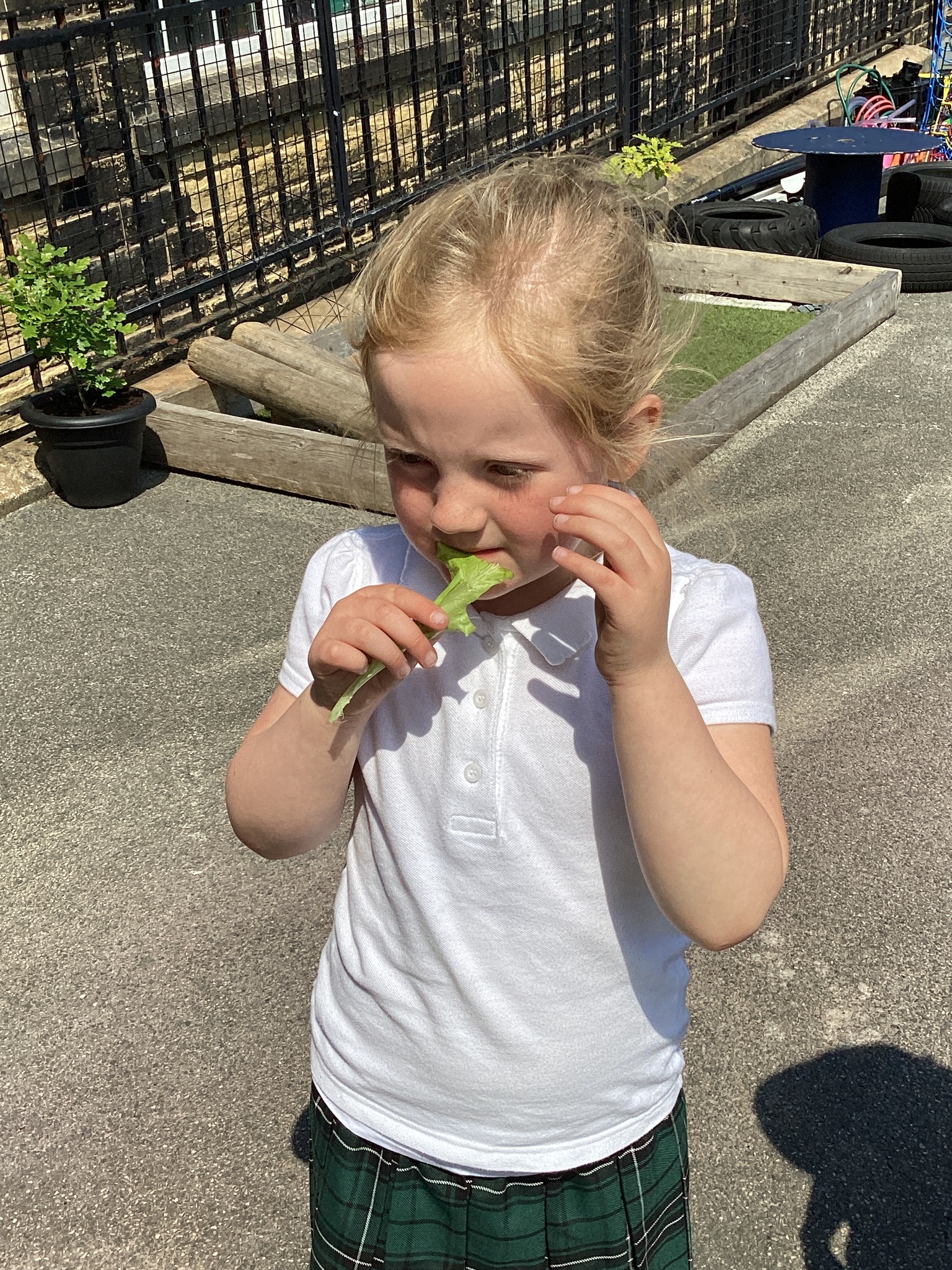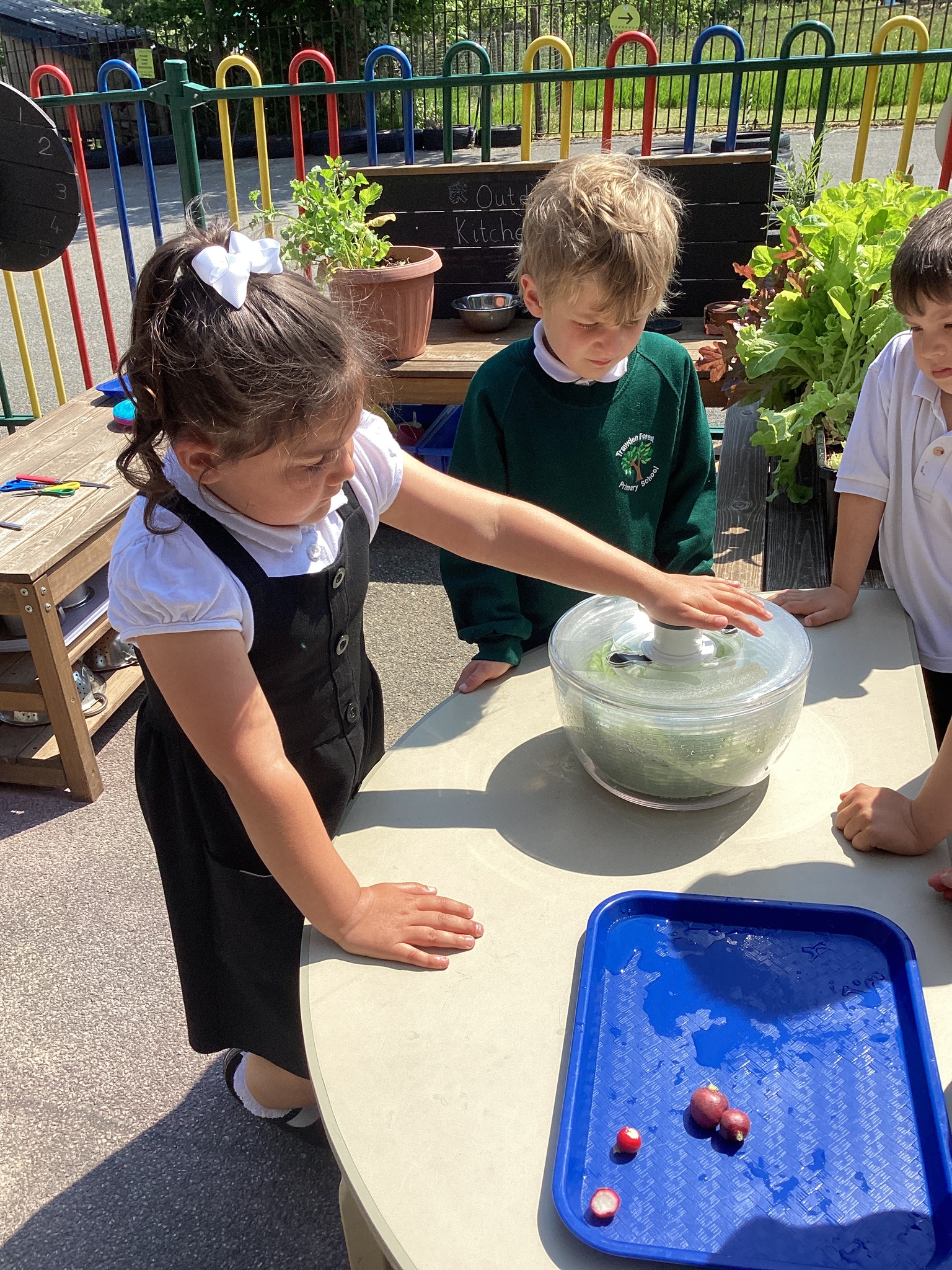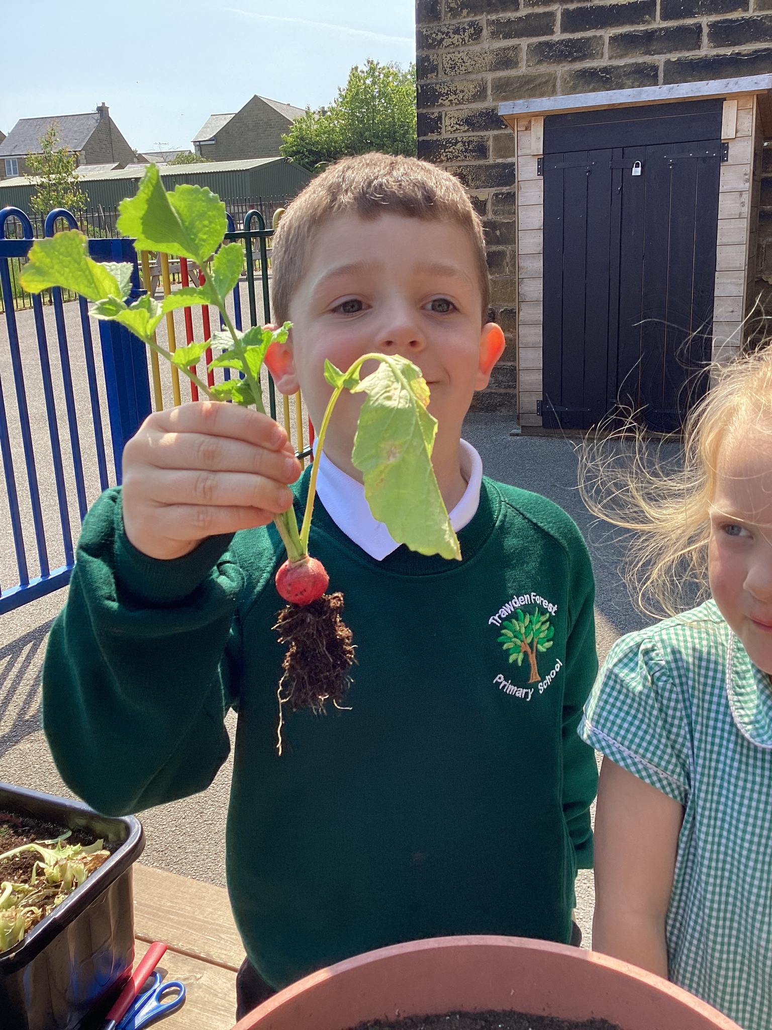 This week they have really enjoyed picking the mixed salad leaves and radishes and tasting them.